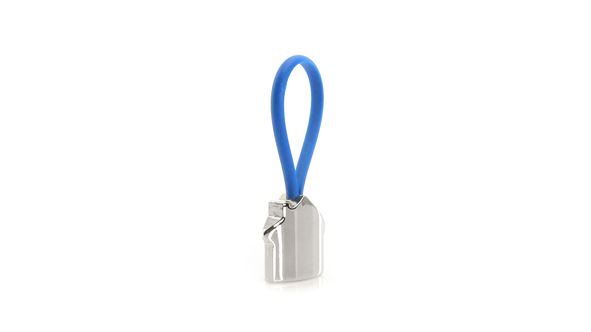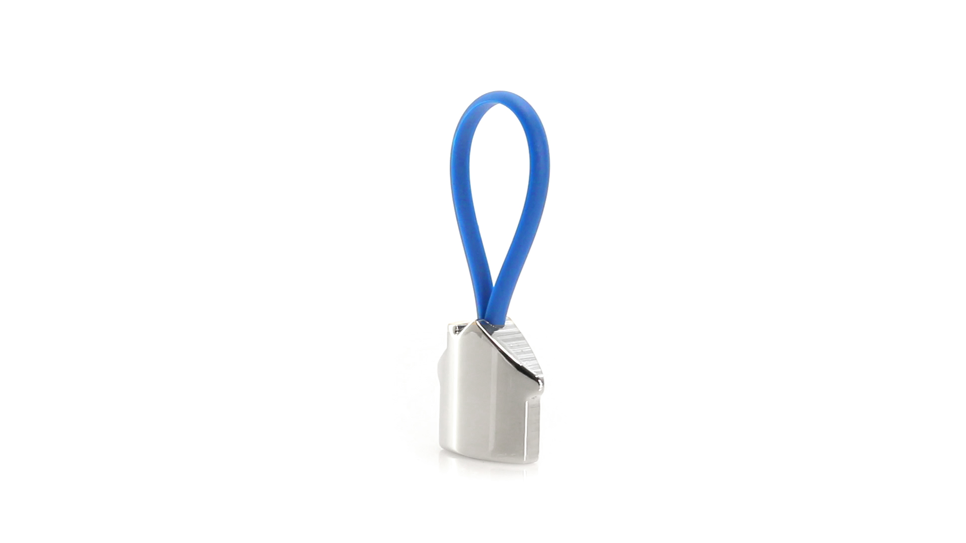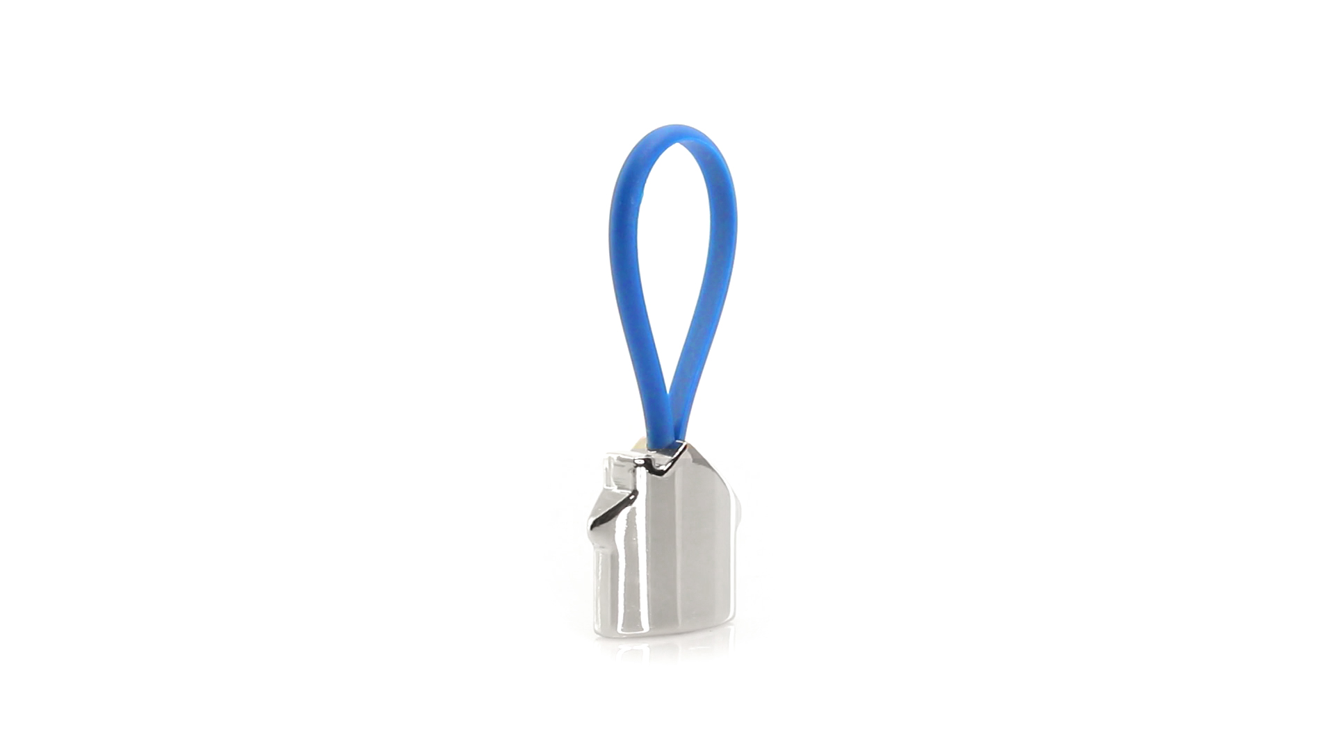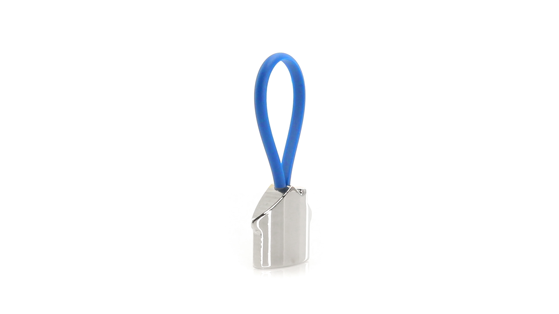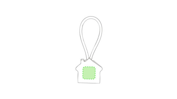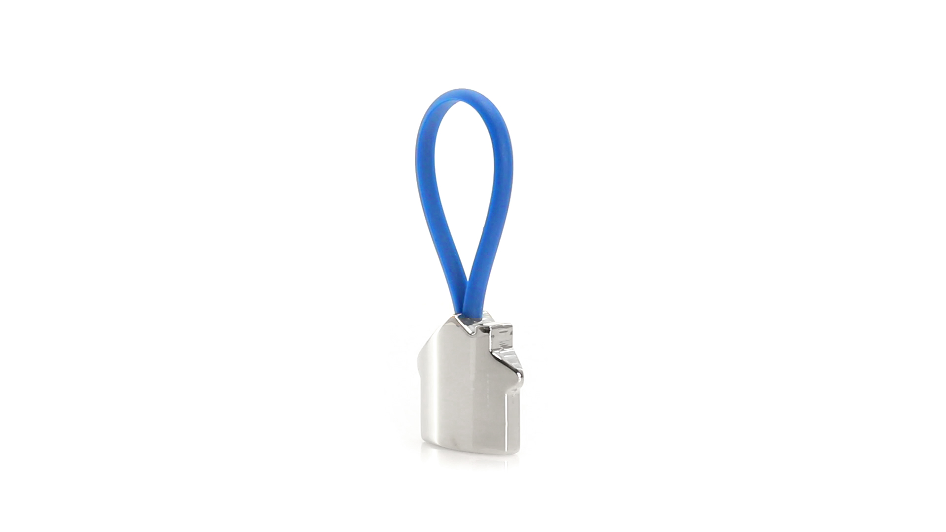 Metall-Schlüsselanhänger mit elegantem Haus-Design in 3D. Mit Gummiband in verschiedenen lebendigen Farben für die Befestigung der Schlüssel.