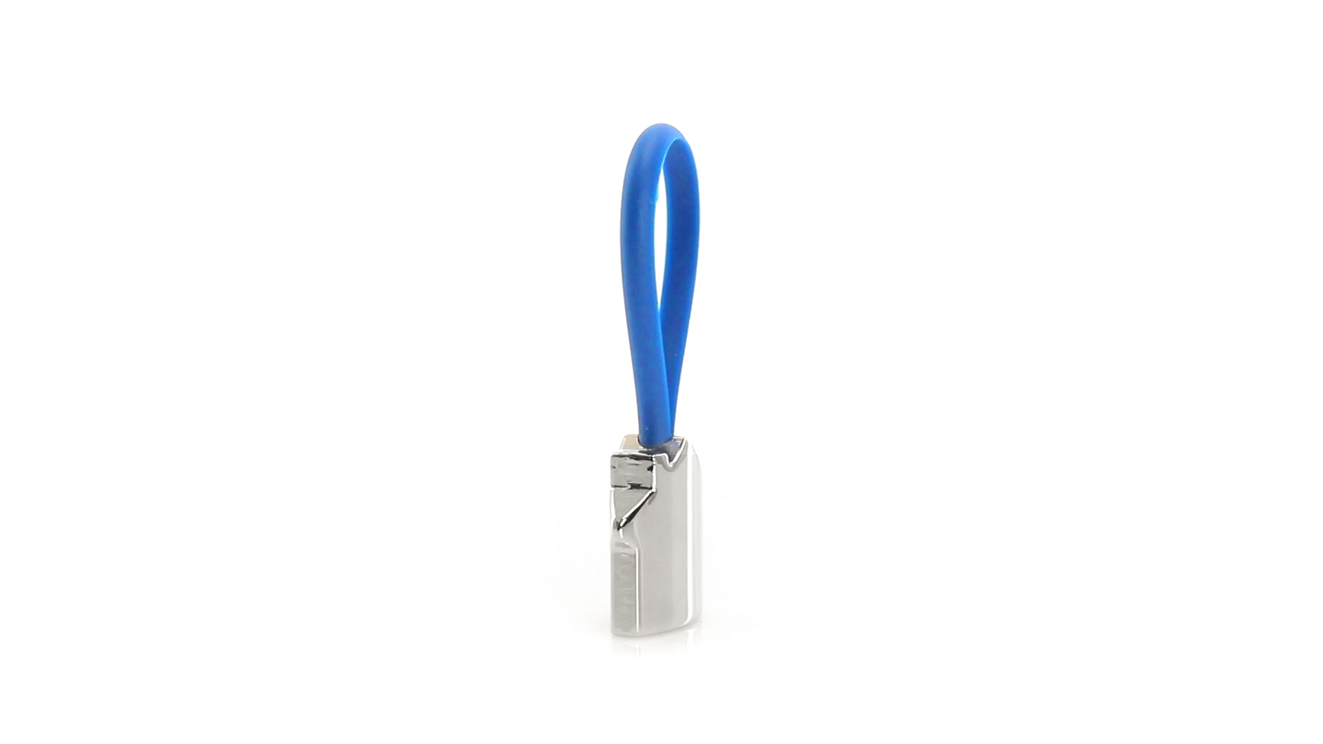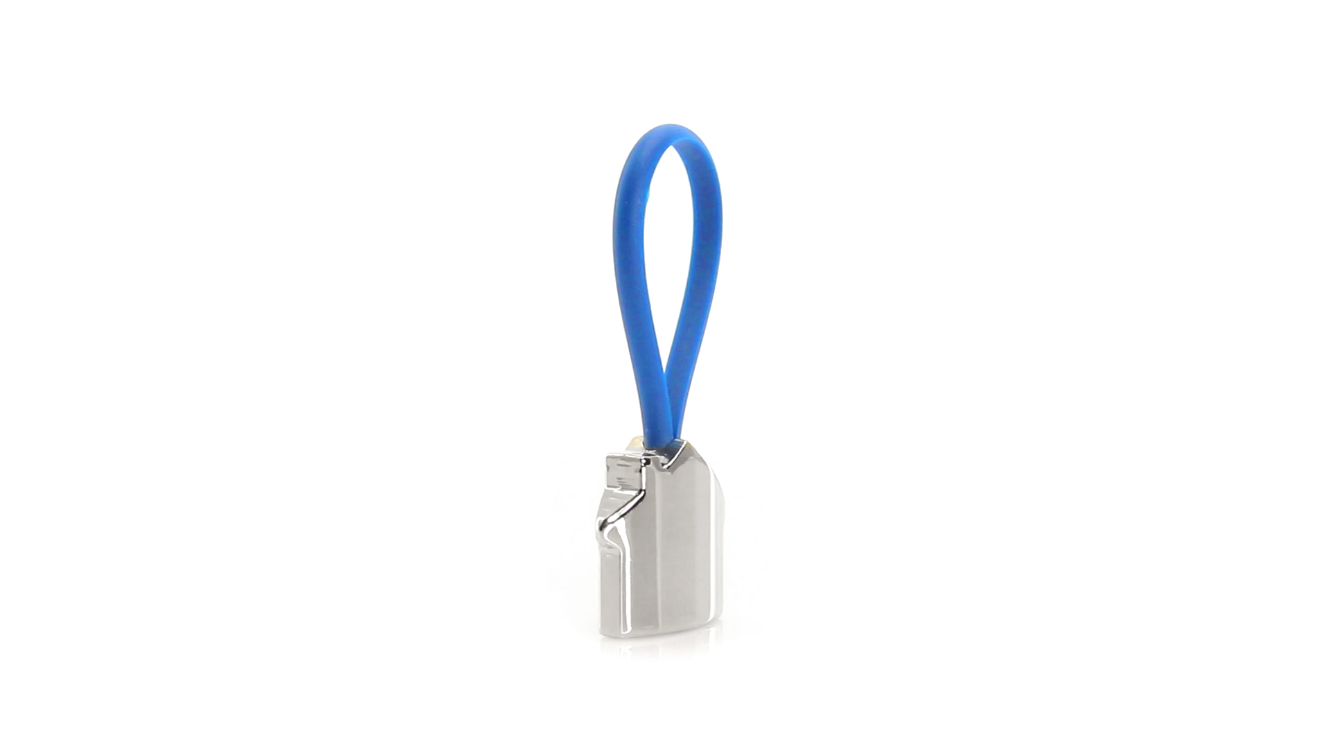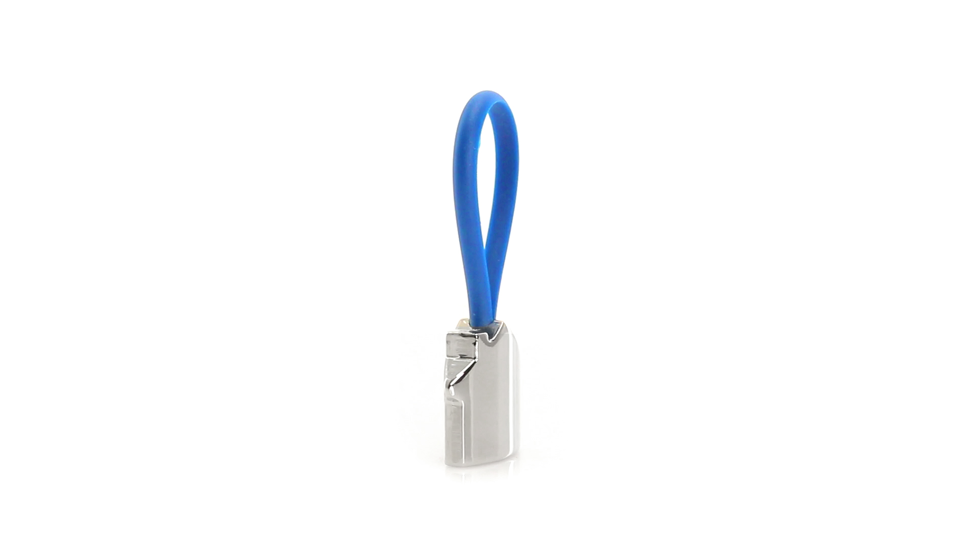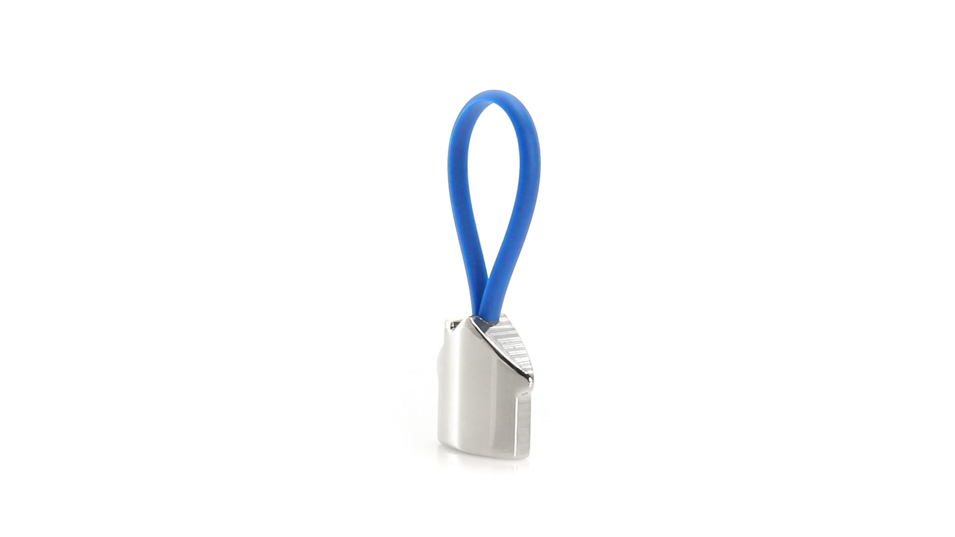 Metall-Schlüsselanhänger mit elegantem Haus-Design in 3D. Mit Gummiband in verschiedenen lebendigen Farben für die Befestigung der Schlüssel.