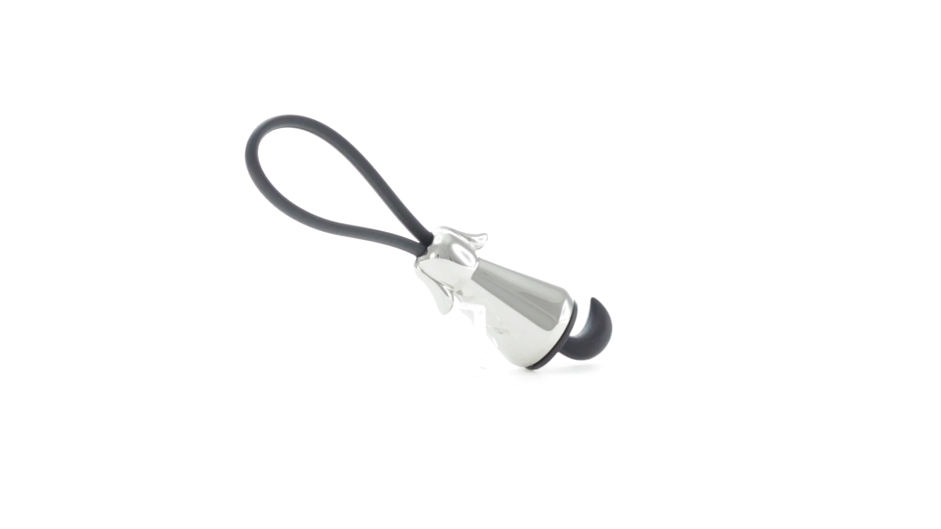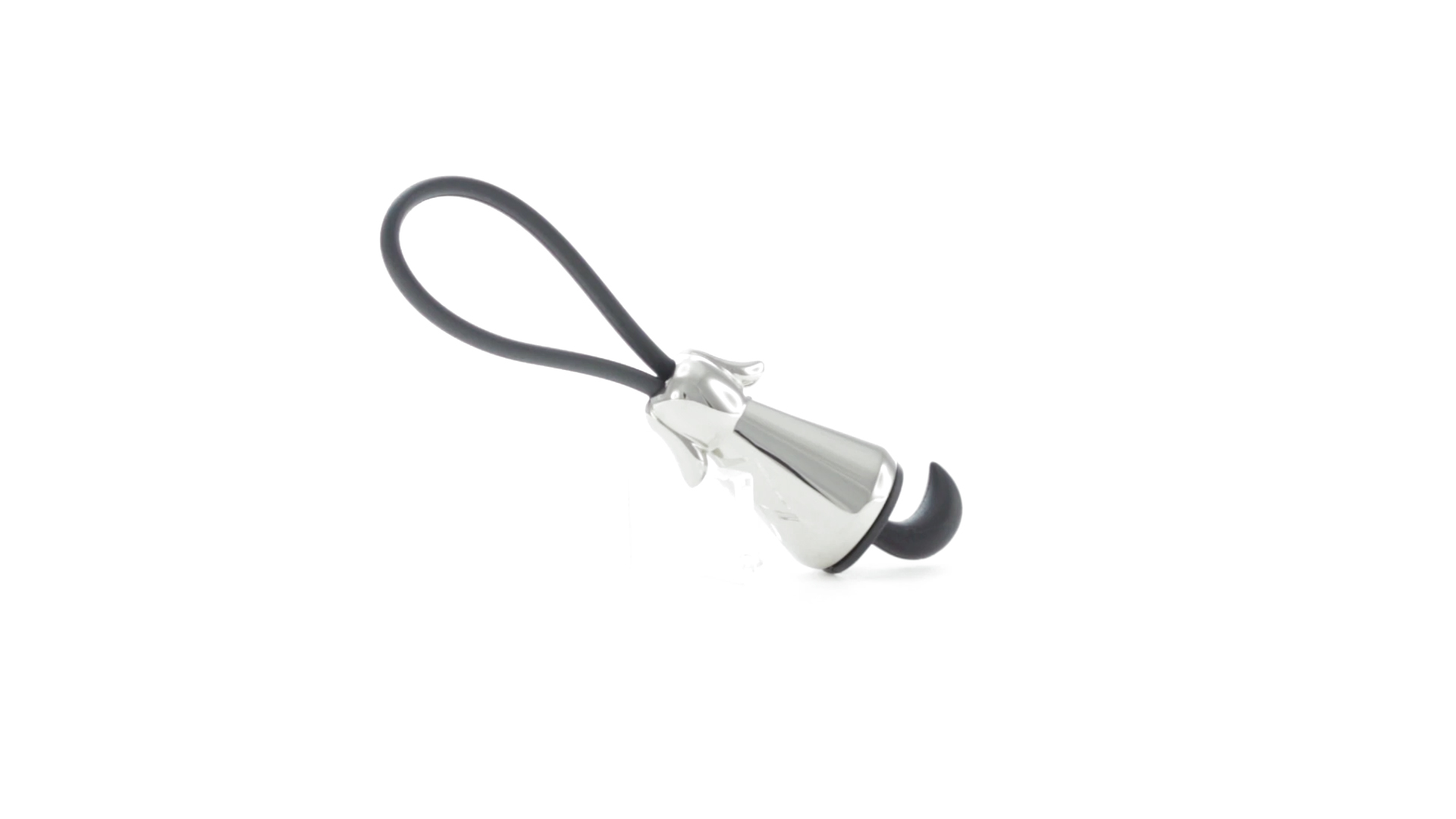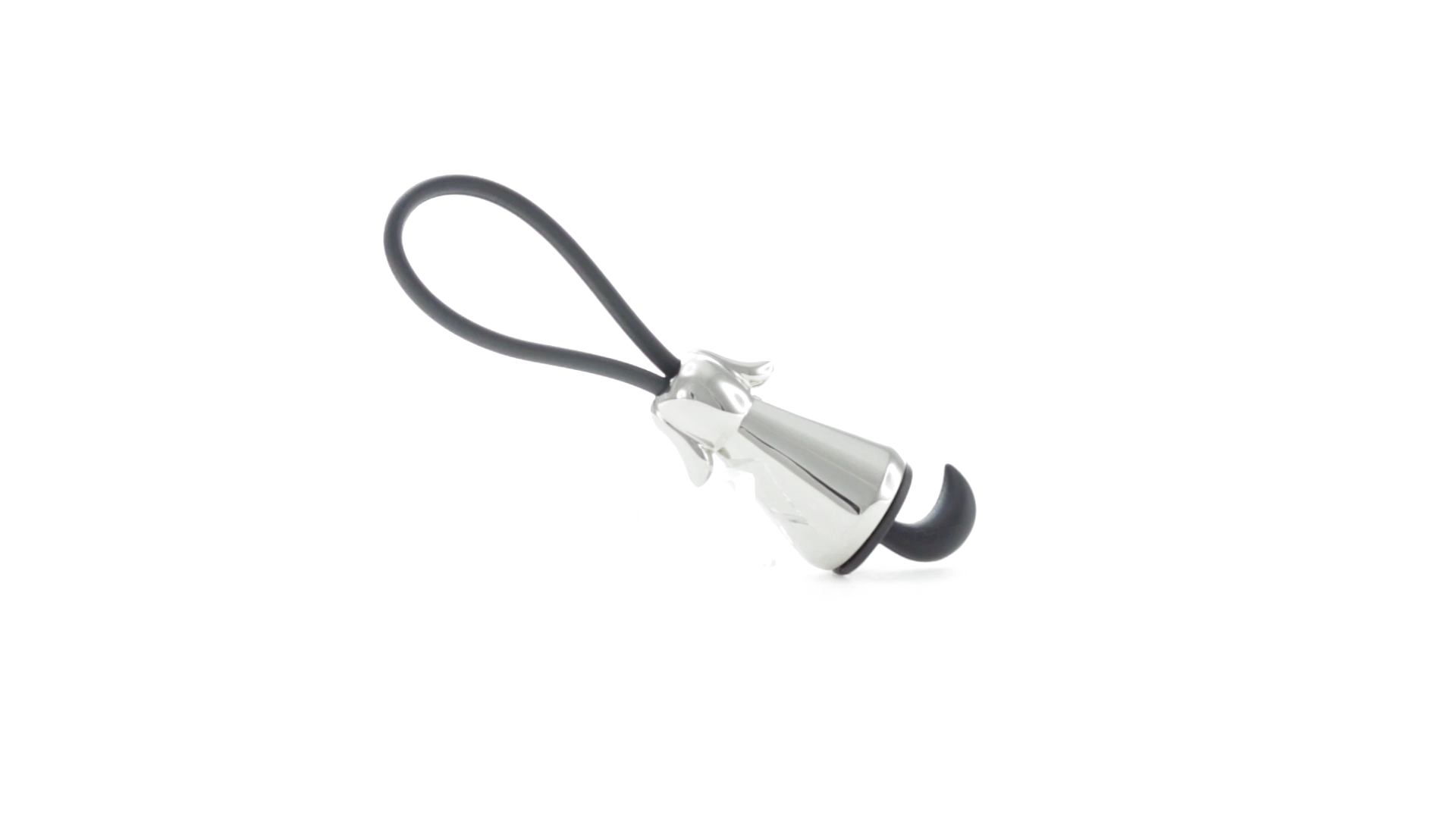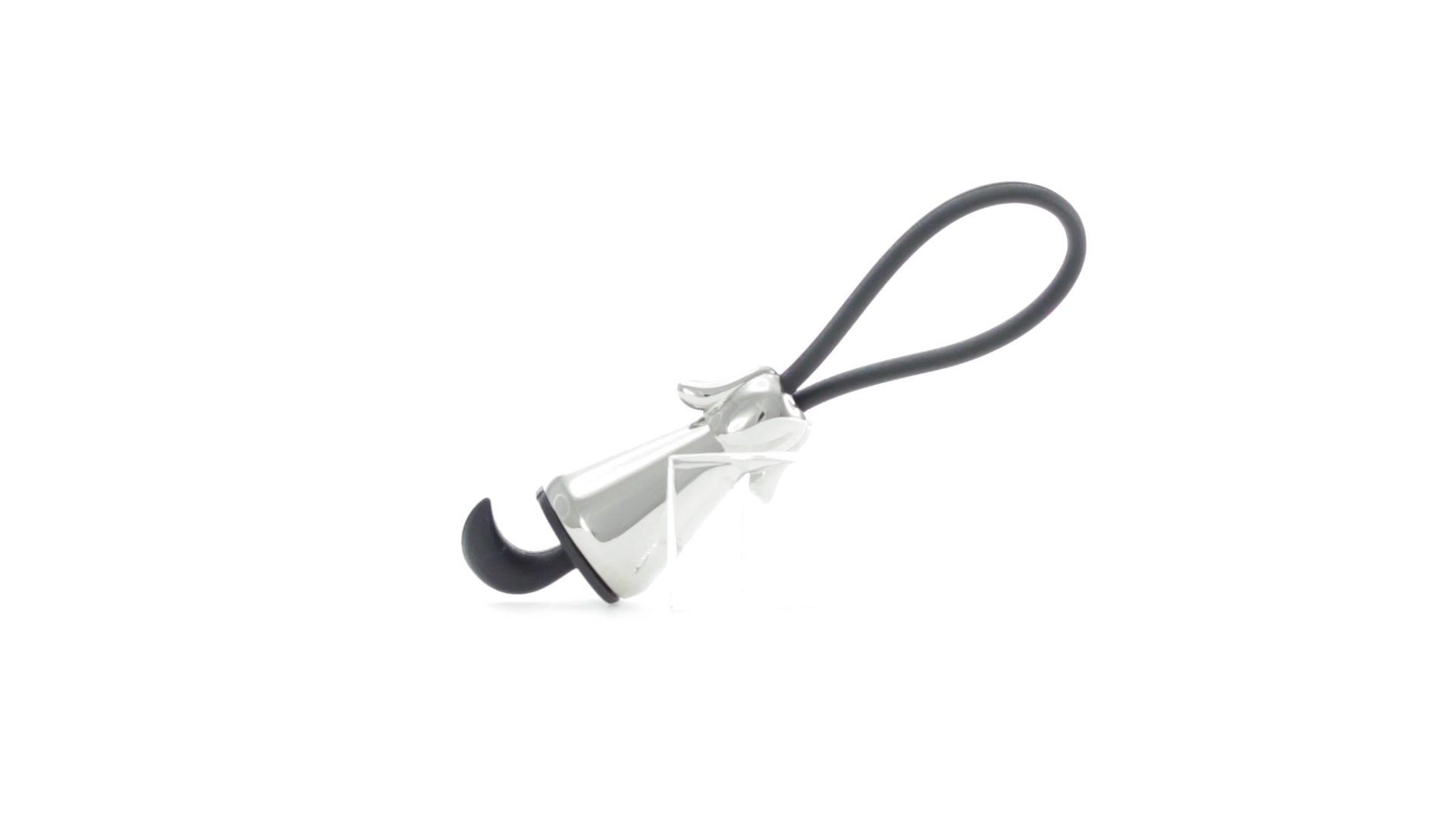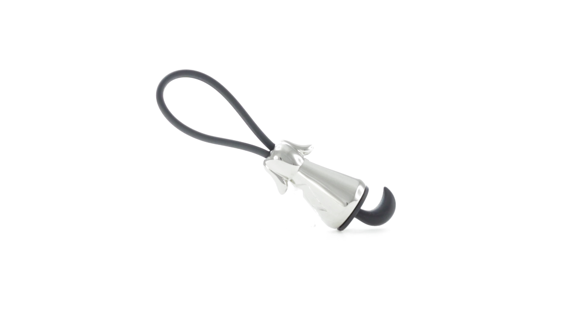Origineller Metall-Schlüsselanhänger in glänzender Ausführung mit minimalistischem Hundedesign. Mit robustem Silikonband in Schwarz.
