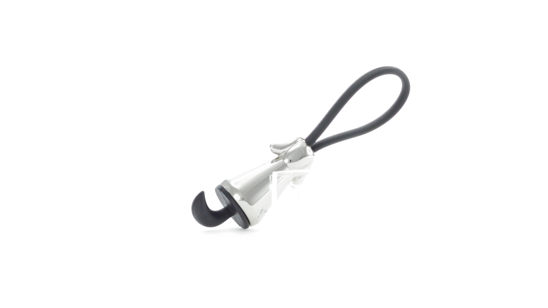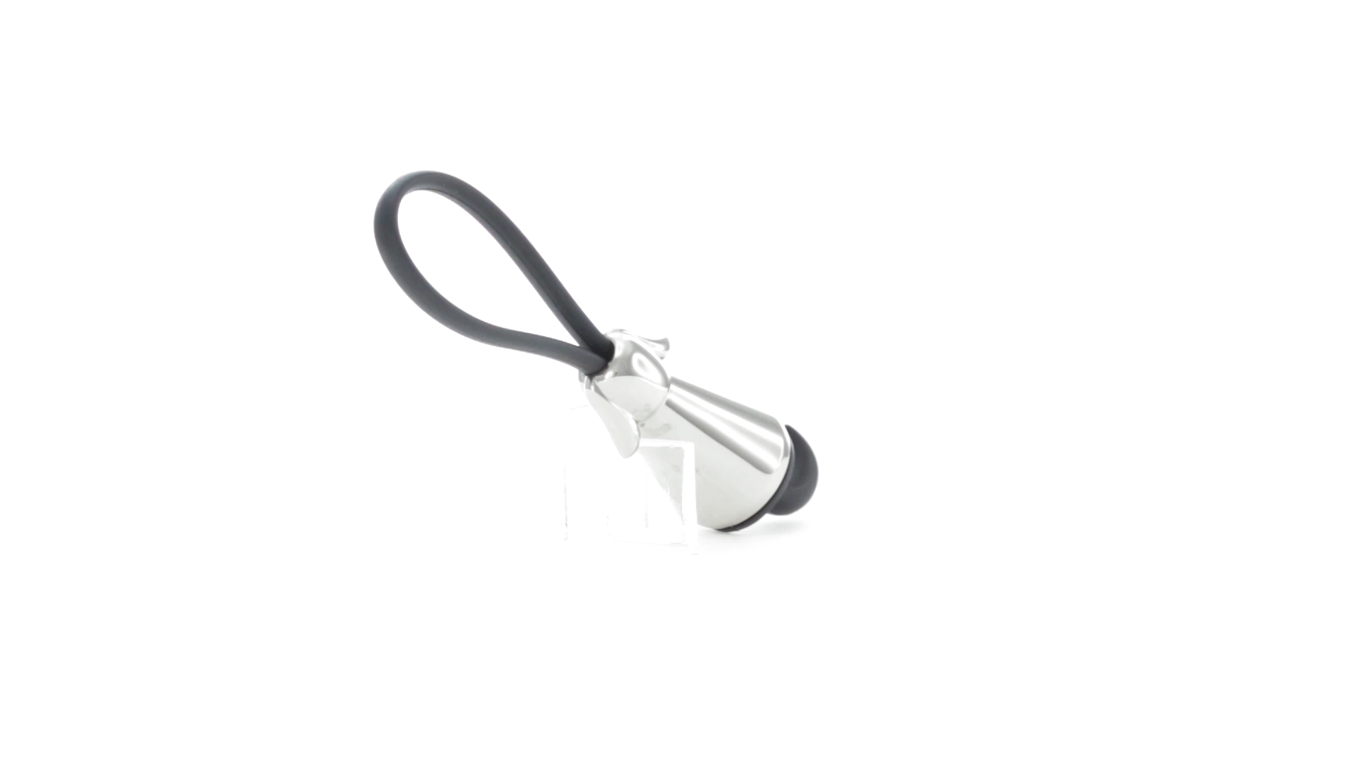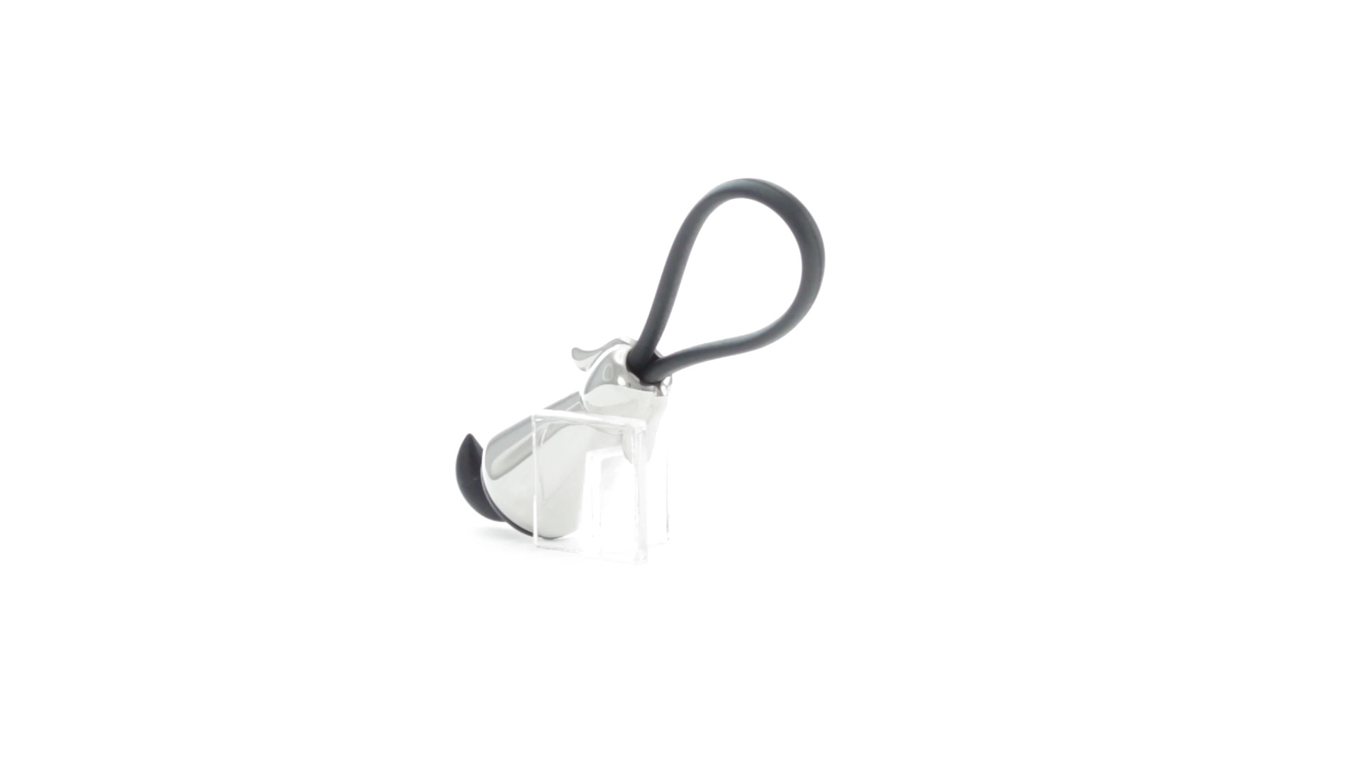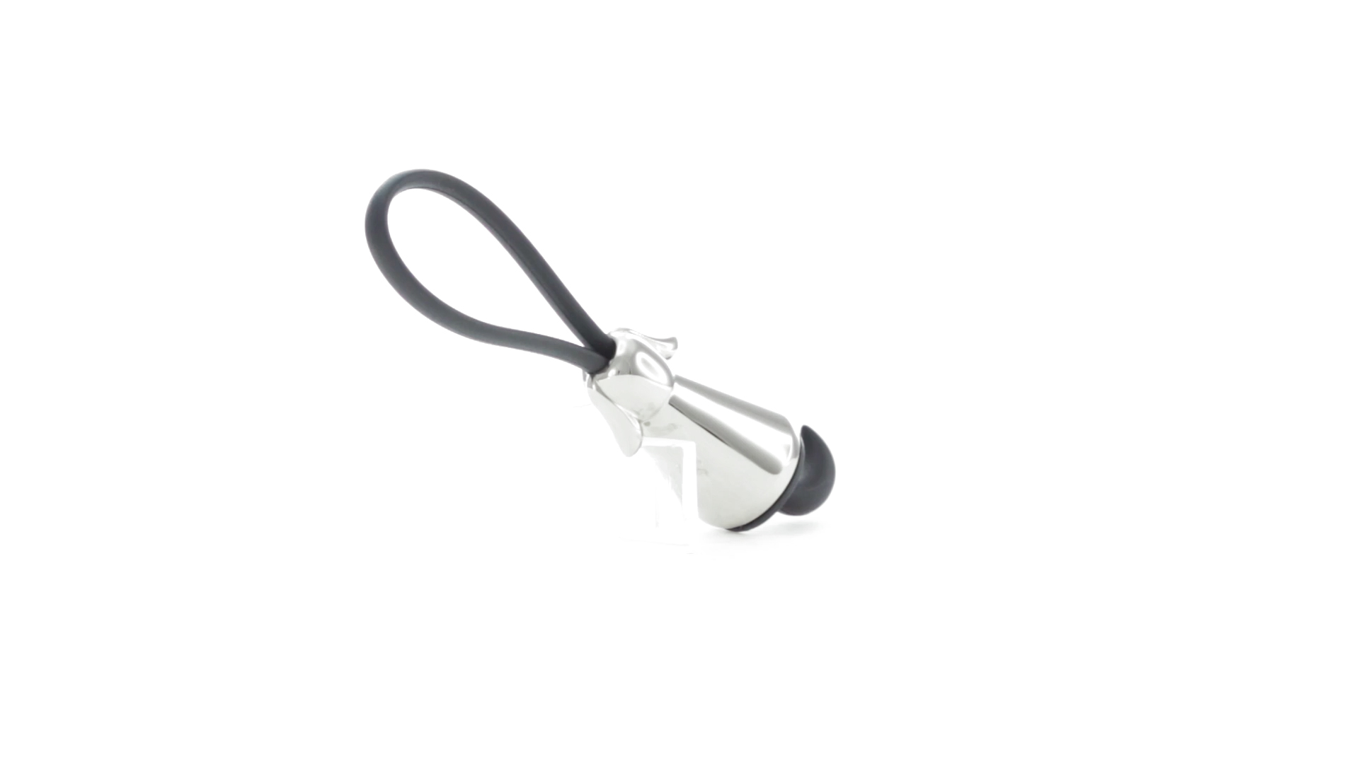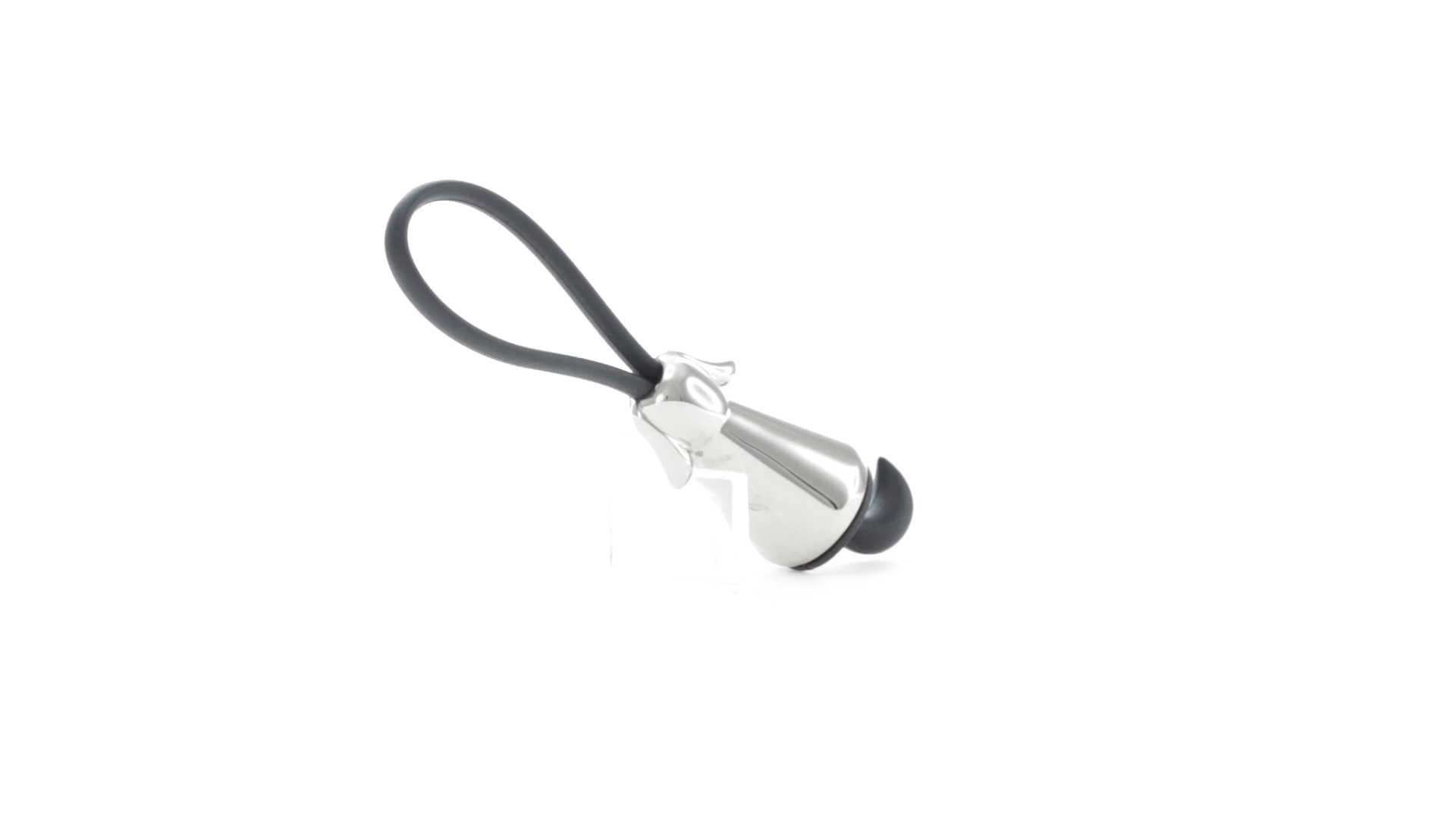 Origineller Metall-Schlüsselanhänger in glänzender Ausführung mit minimalistischem Hundedesign. Mit robustem Silikonband in Schwarz.