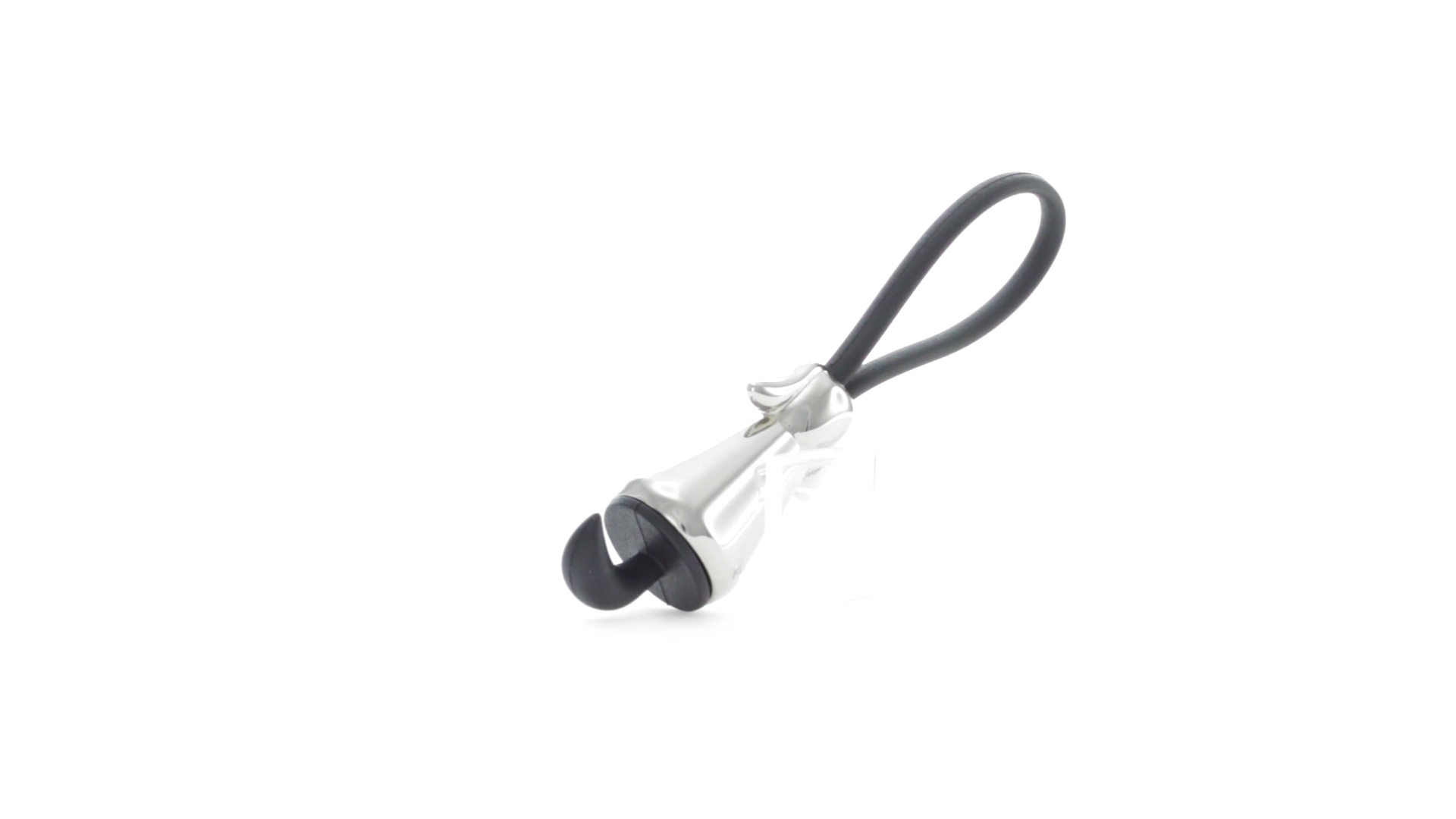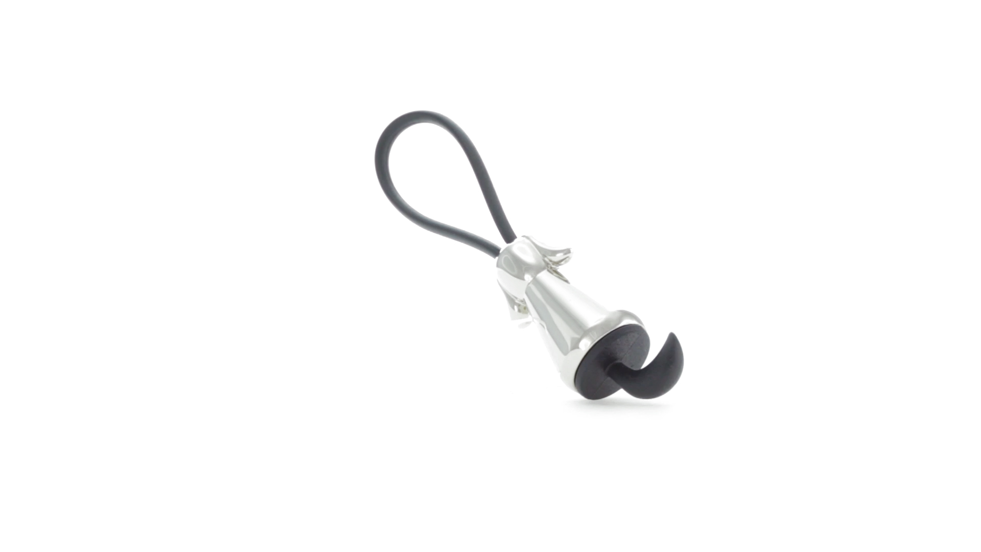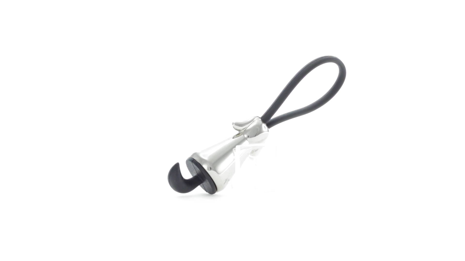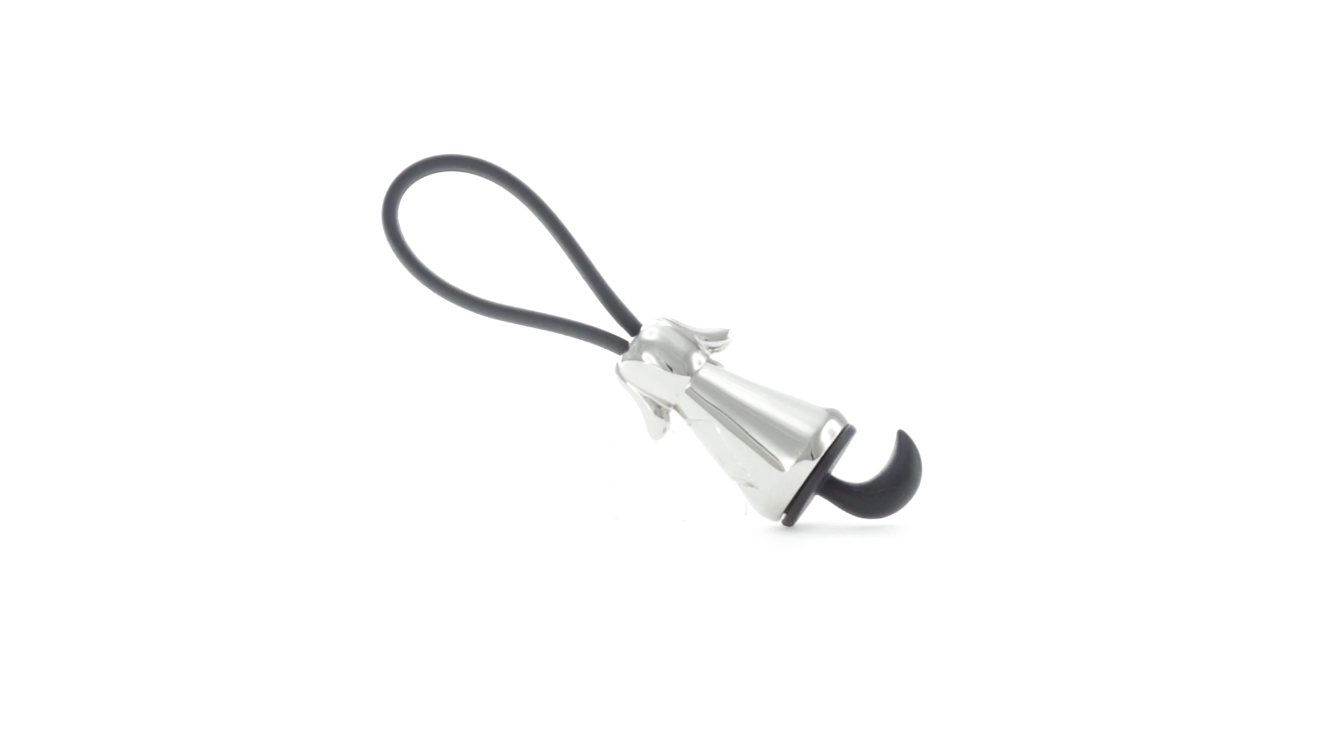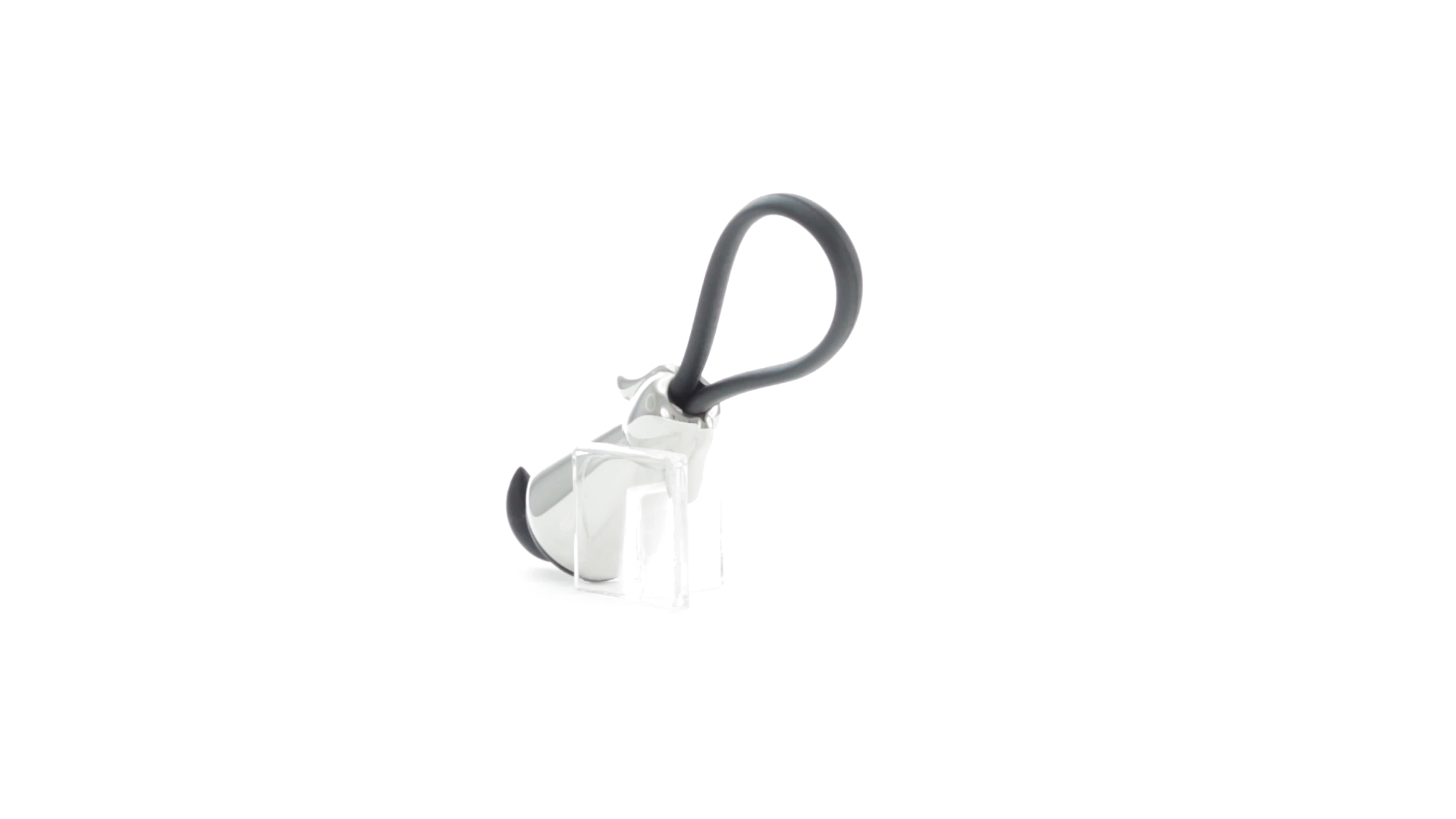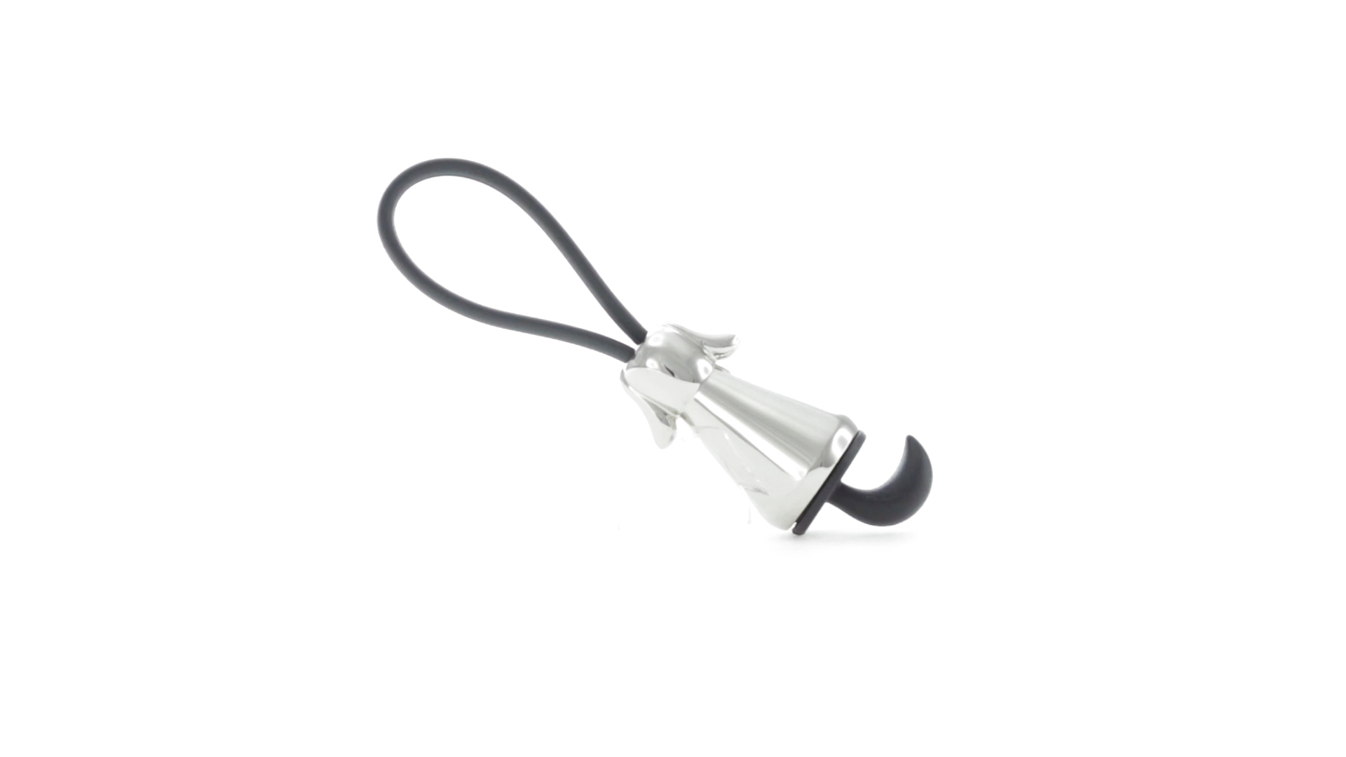 Origineller Metall-Schlüsselanhänger in glänzender Ausführung mit minimalistischem Hundedesign. Mit robustem Silikonband in Schwarz.