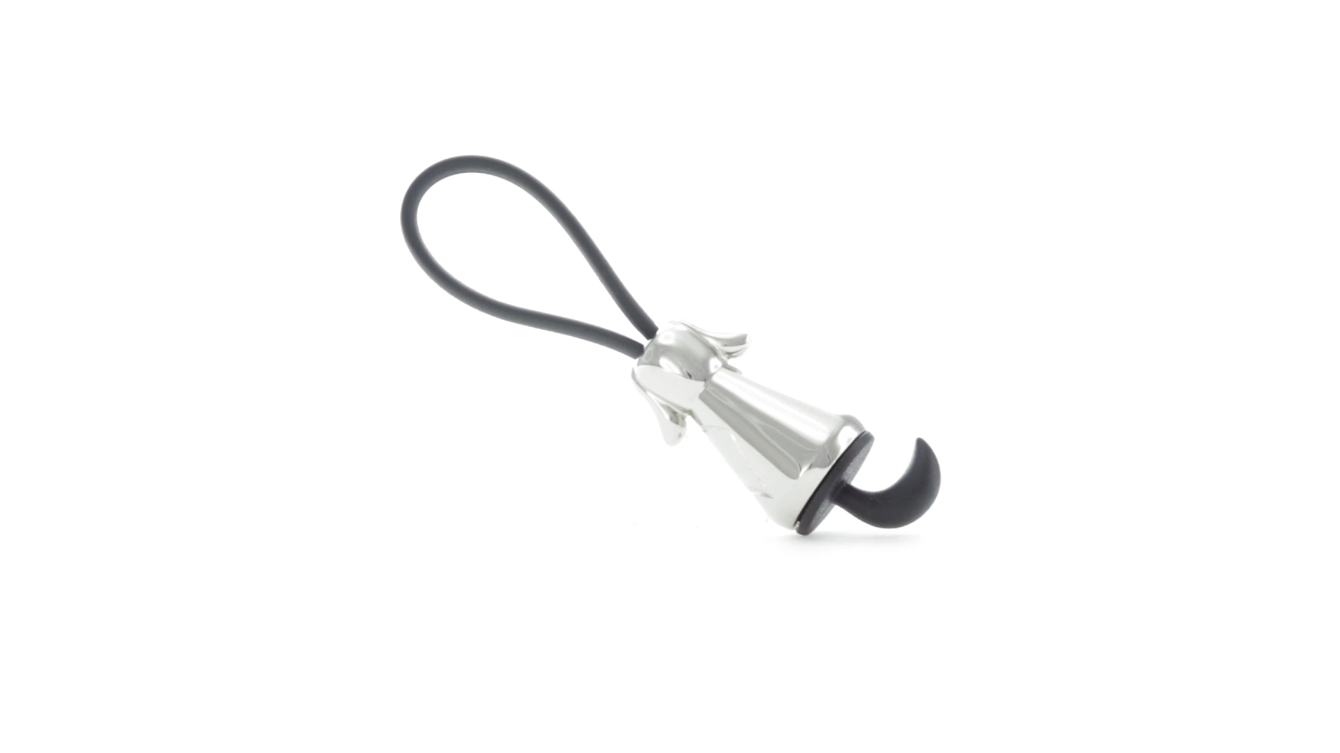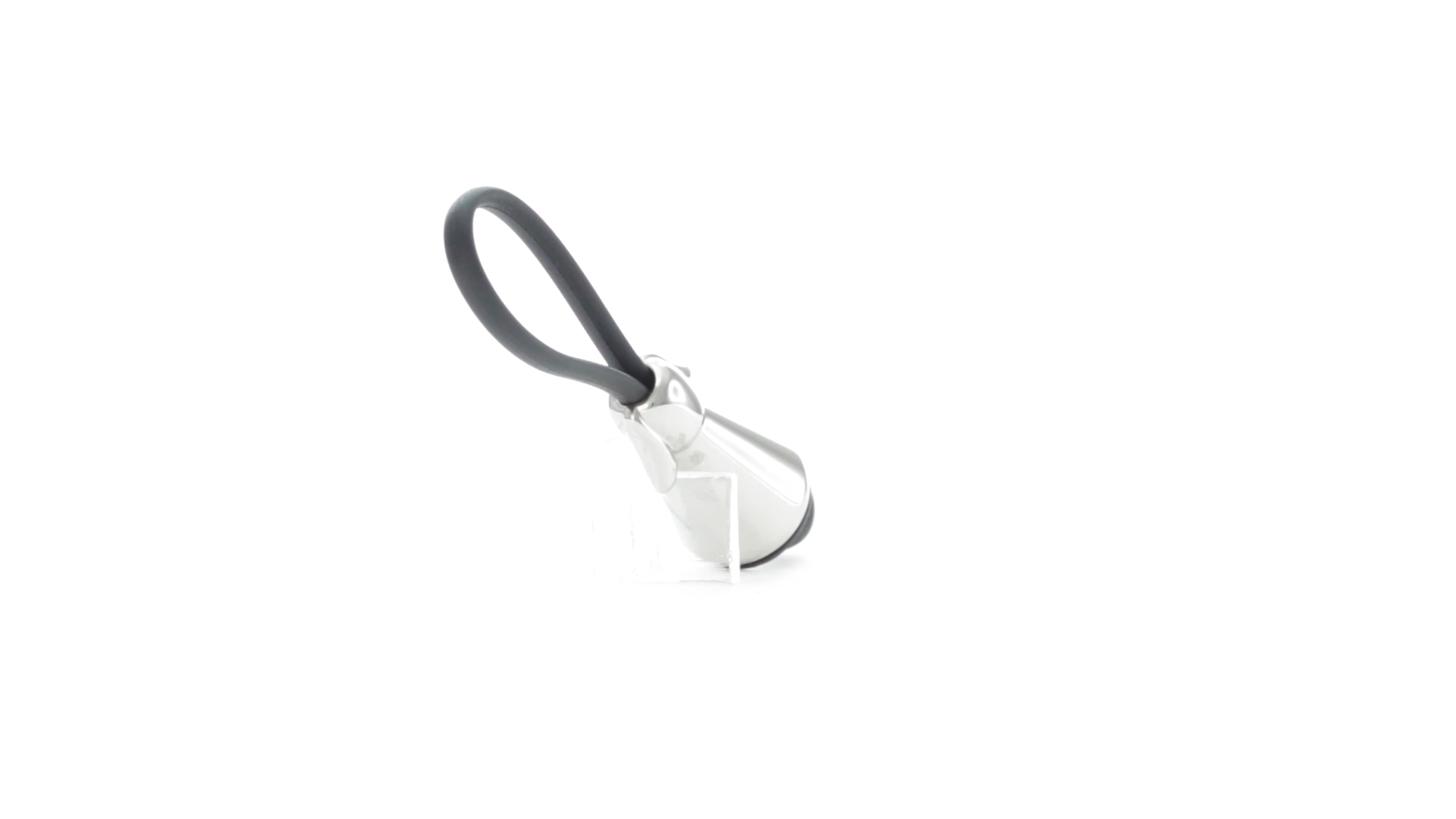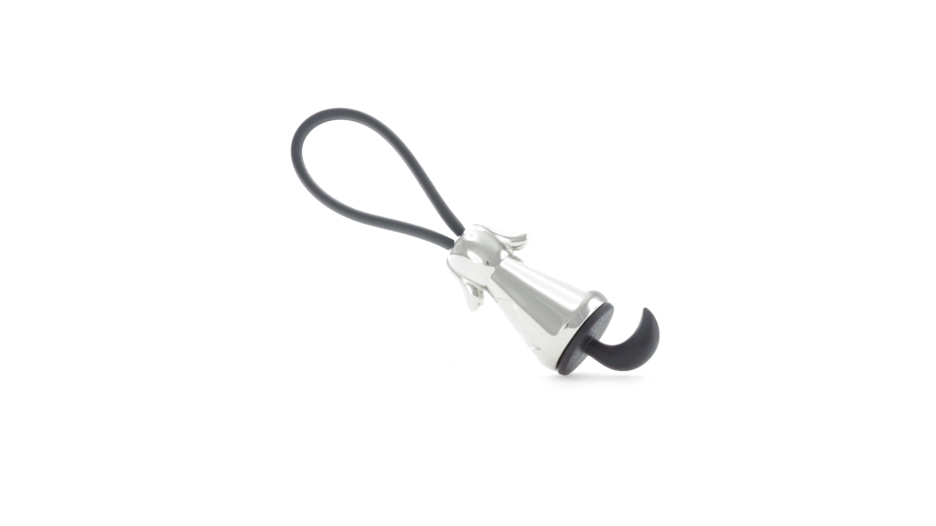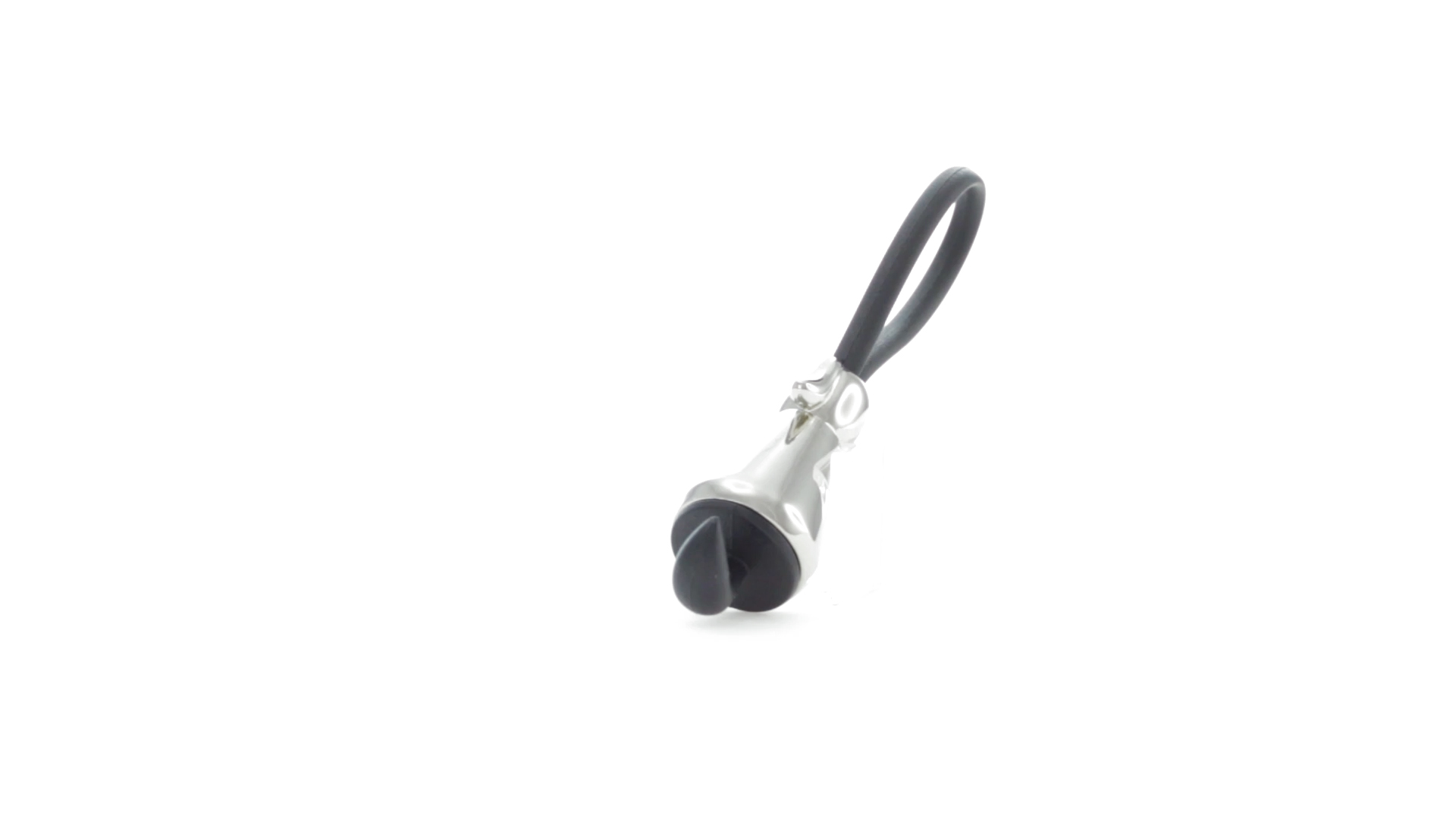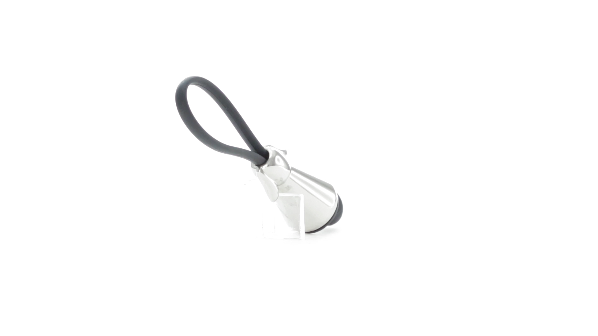 Origineller Metall-Schlüsselanhänger in glänzender Ausführung mit minimalistischem Hundedesign. Mit robustem Silikonband in Schwarz.
