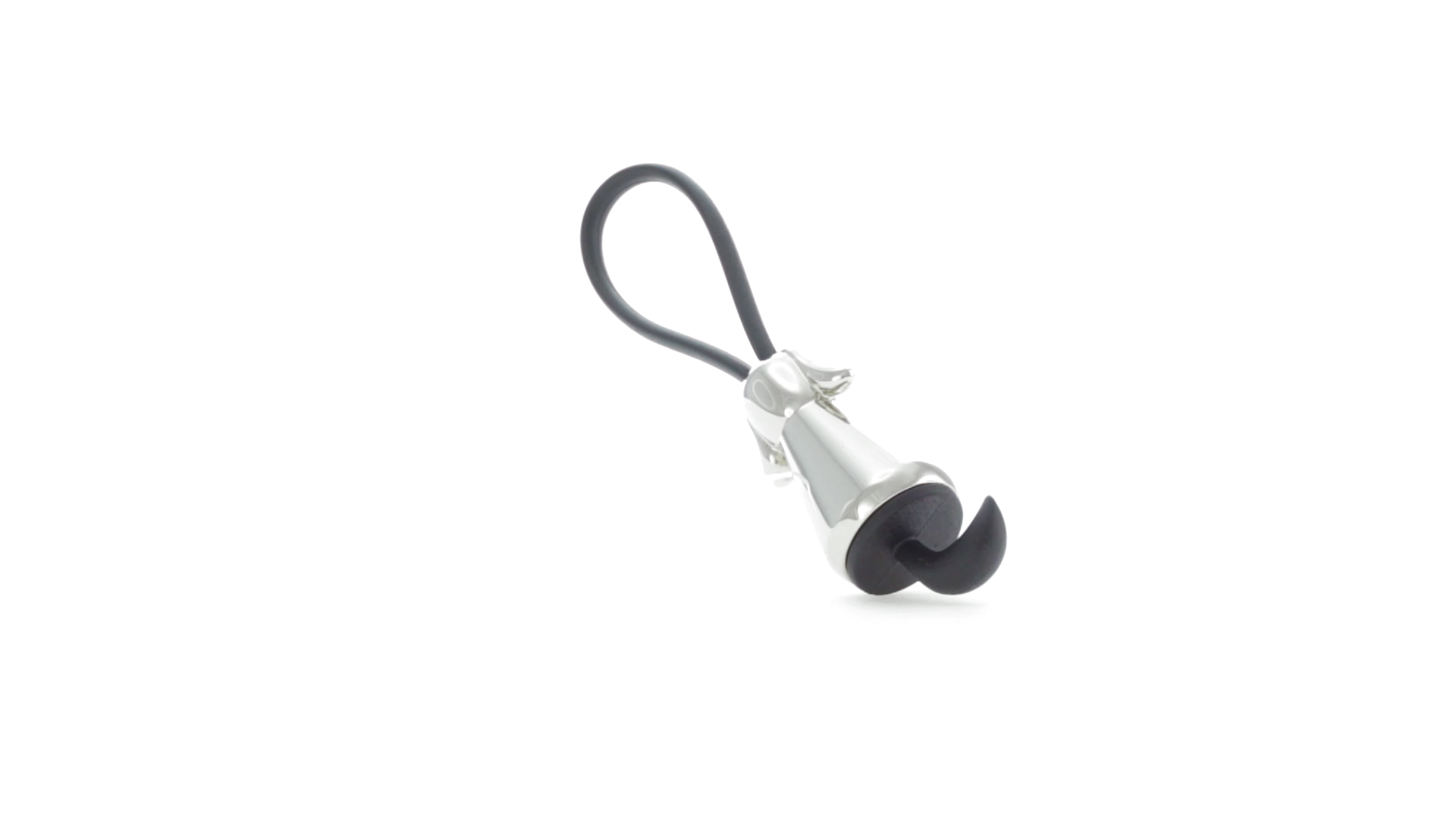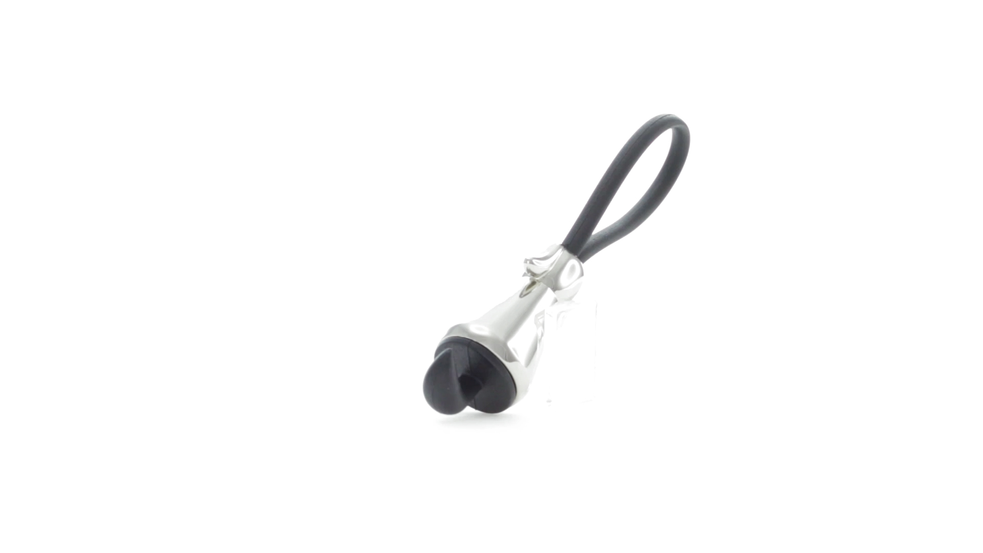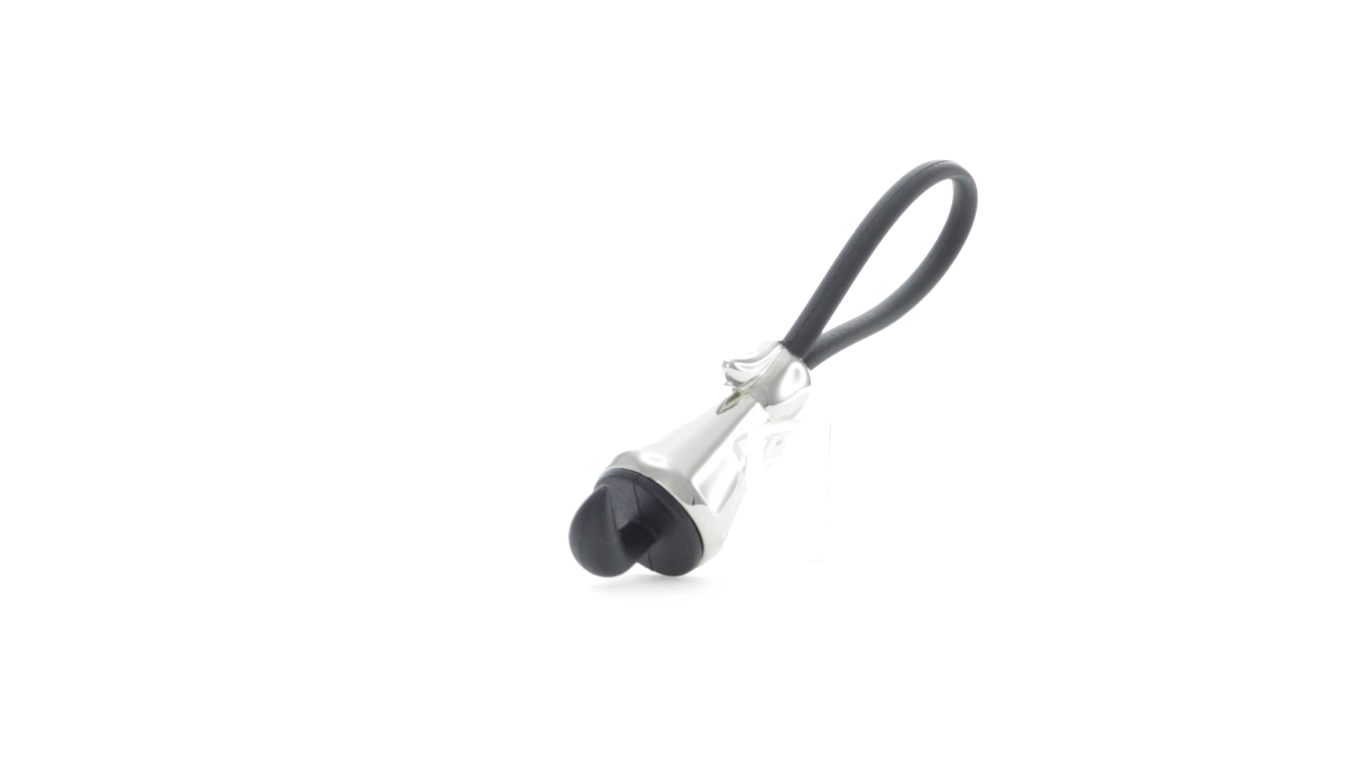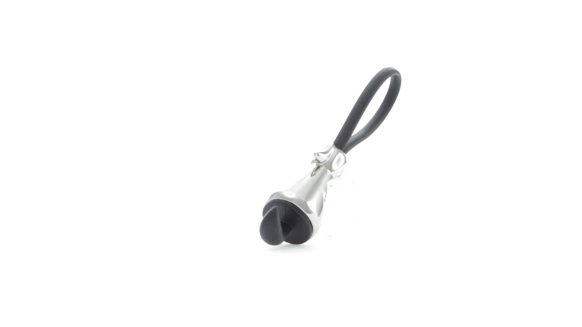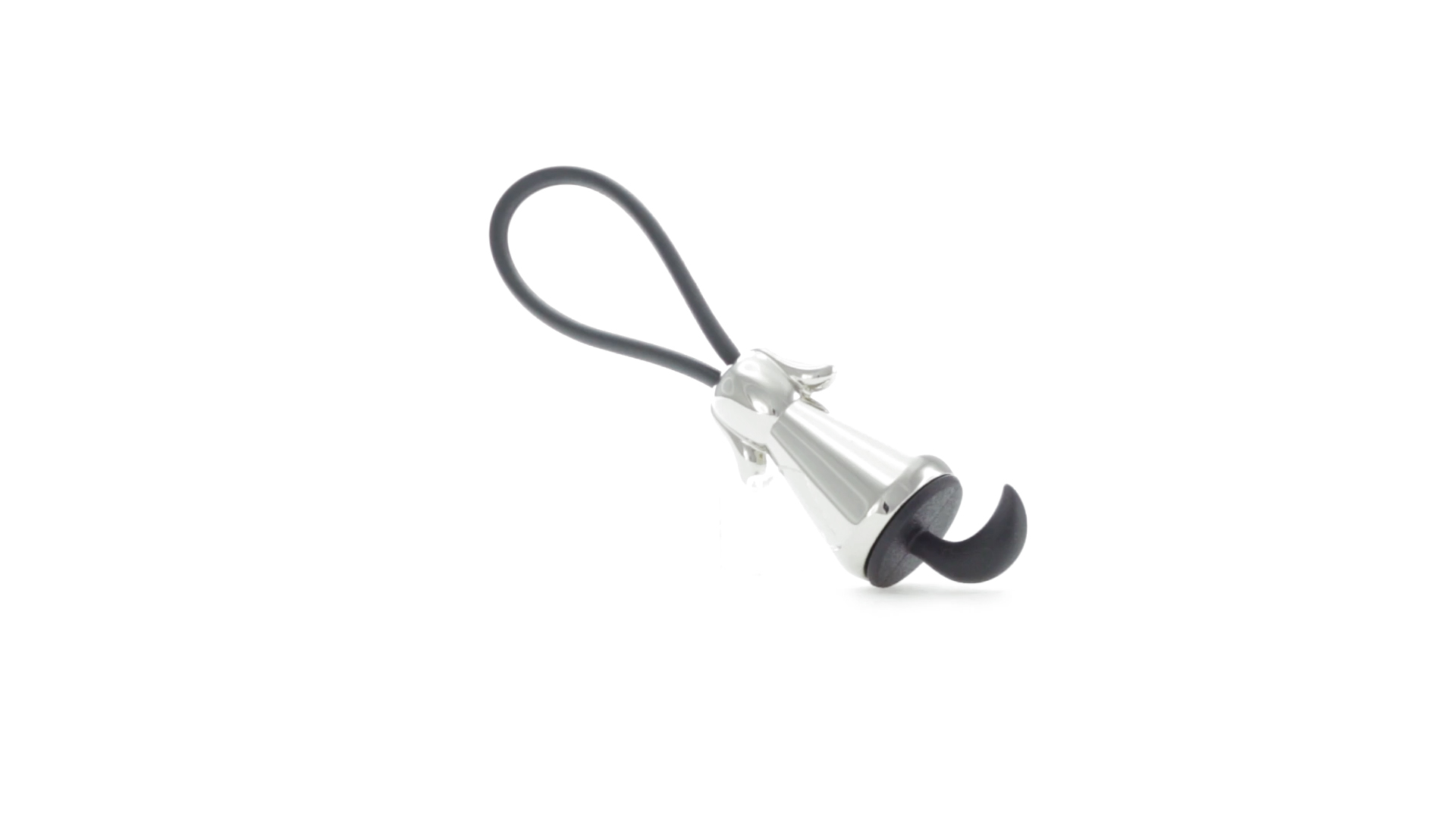 Origineller Metall-Schlüsselanhänger in glänzender Ausführung mit minimalistischem Hundedesign. Mit robustem Silikonband in Schwarz.