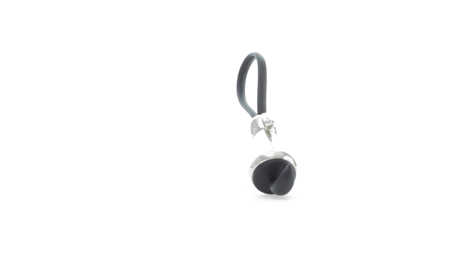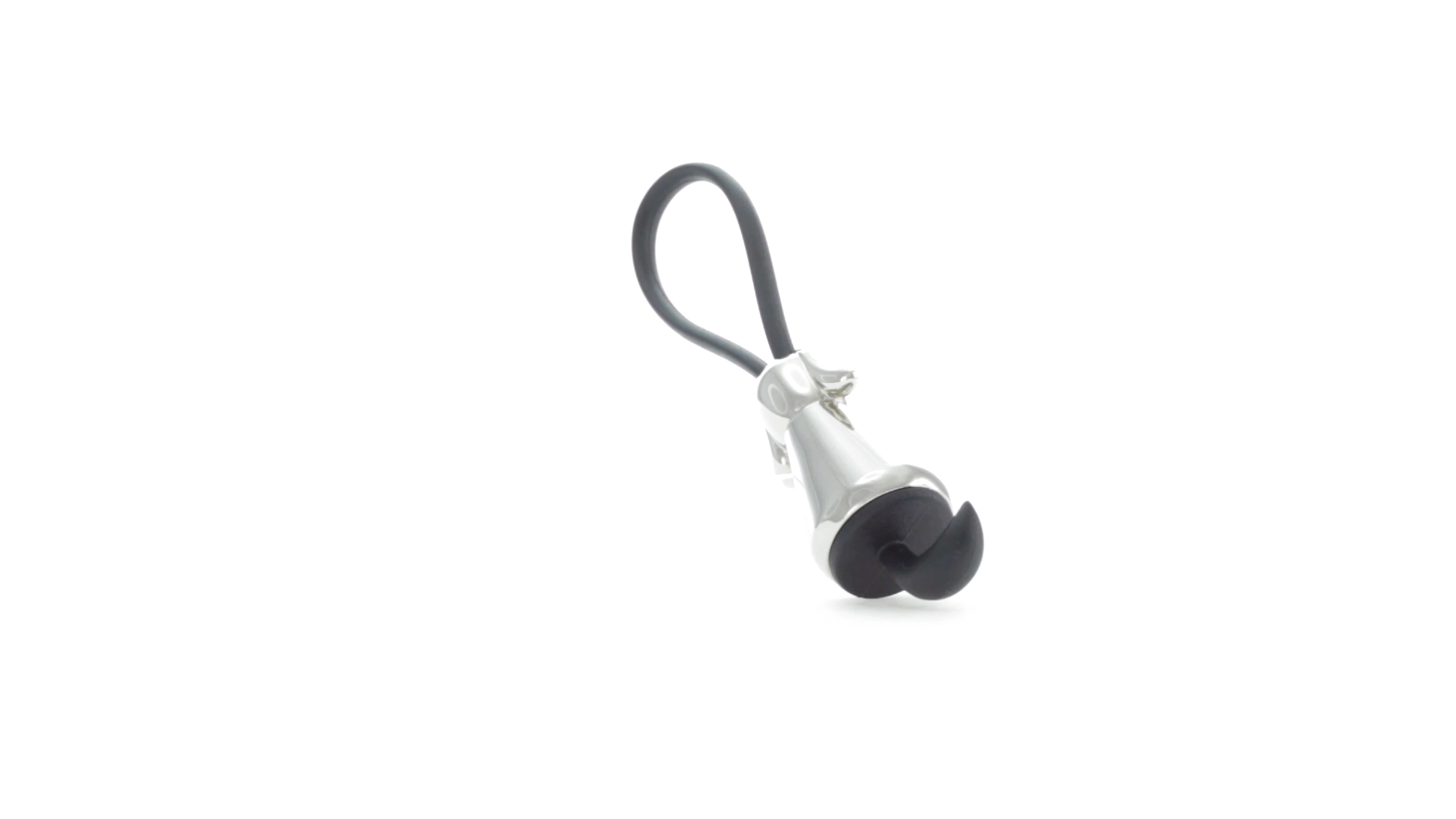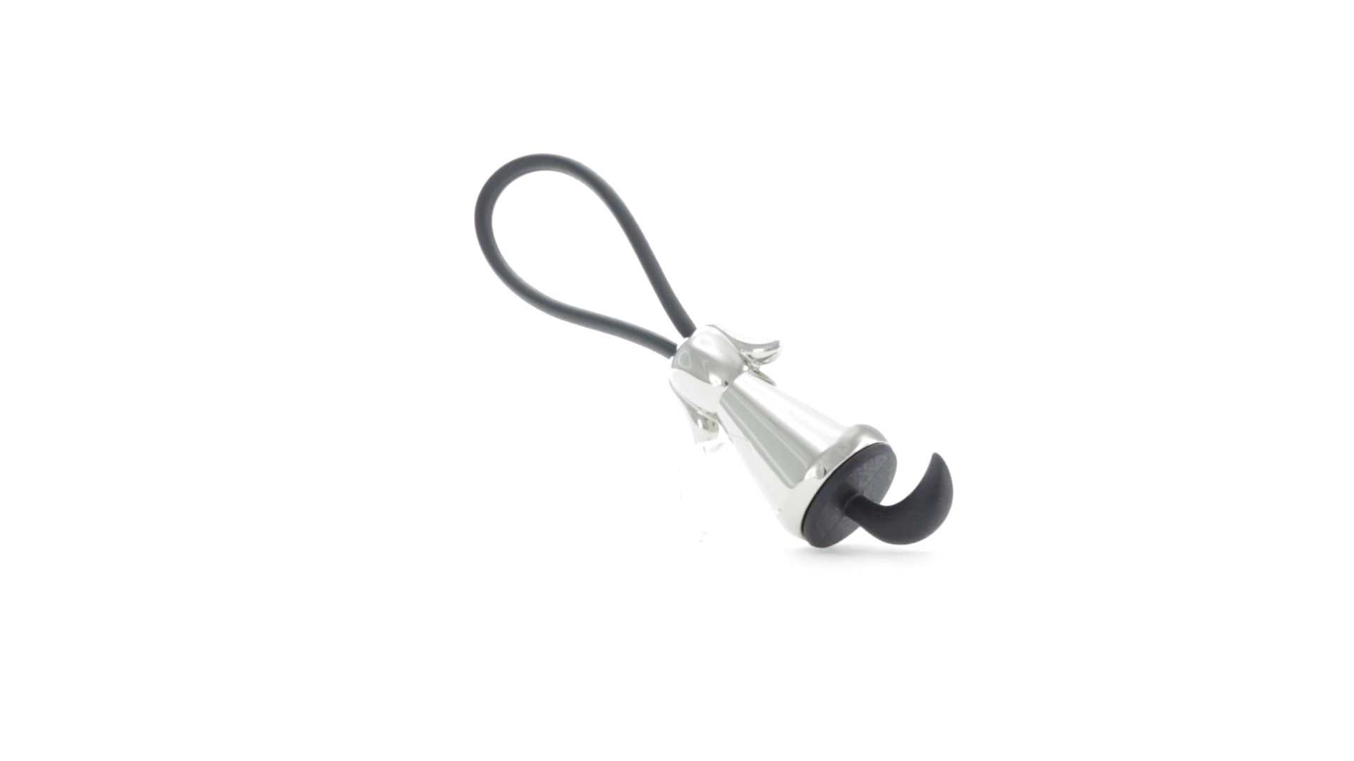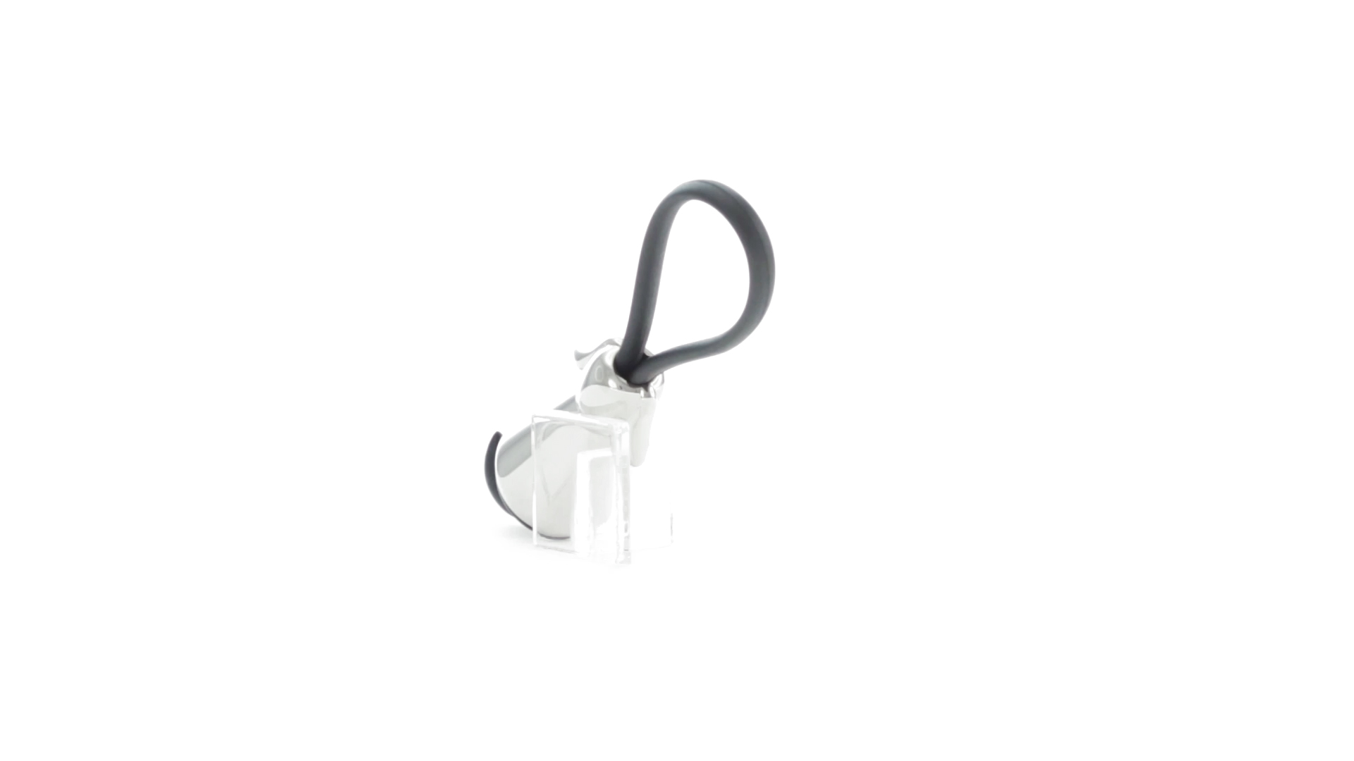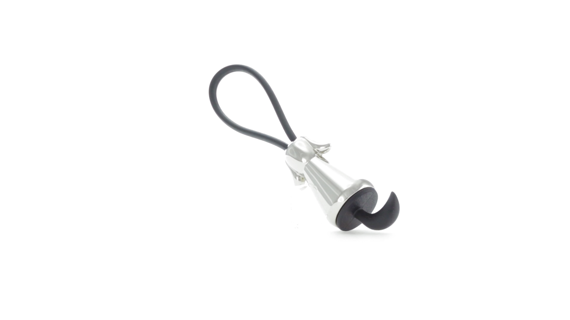 Origineller Metall-Schlüsselanhänger in glänzender Ausführung mit minimalistischem Hundedesign. Mit robustem Silikonband in Schwarz.