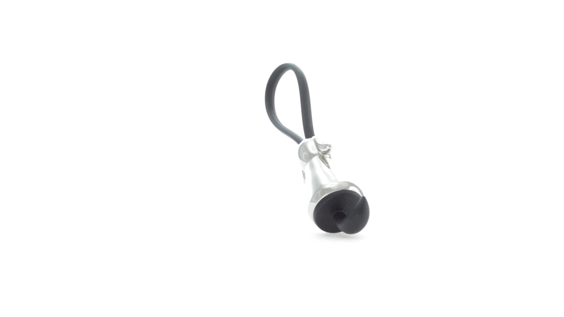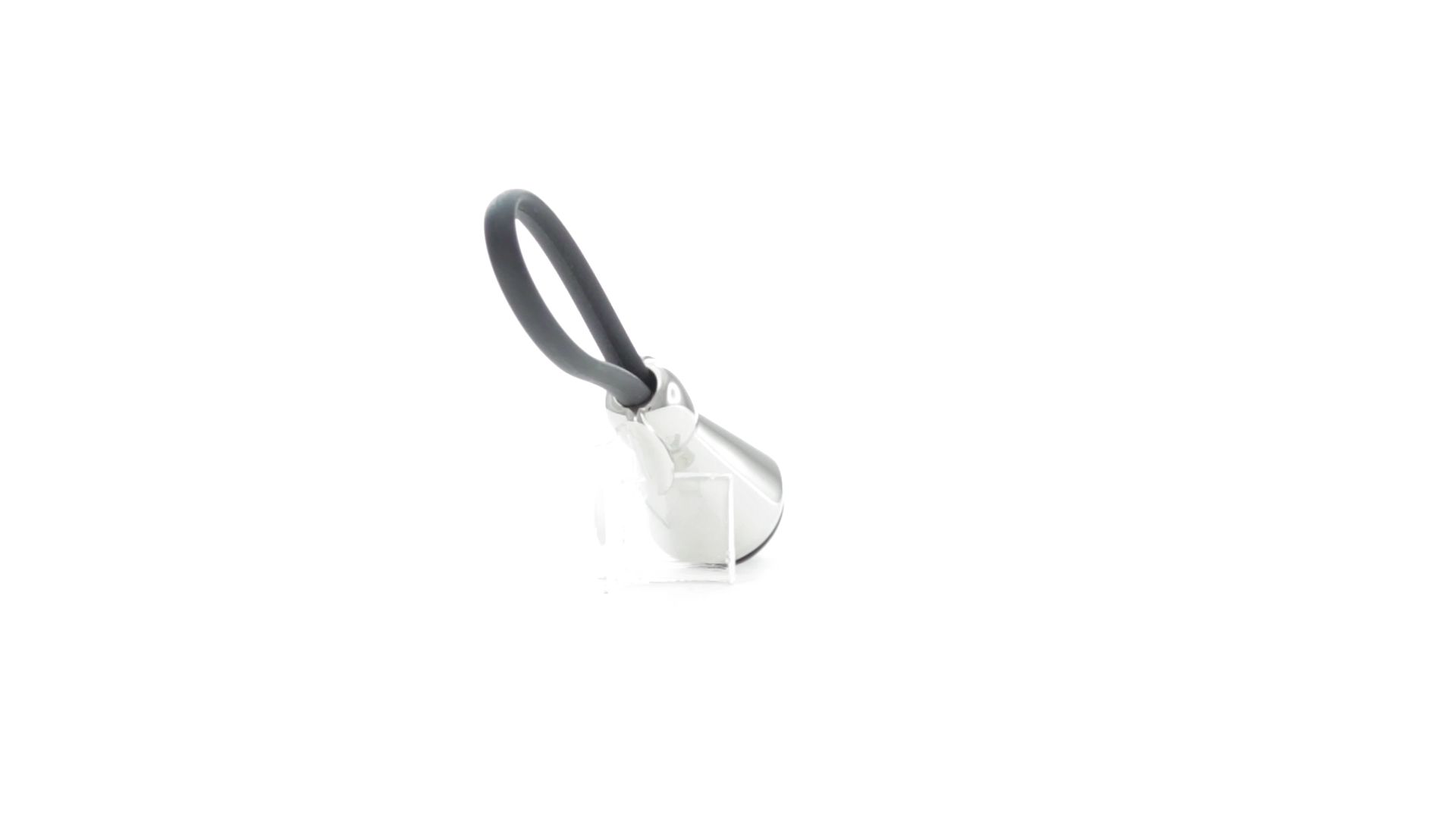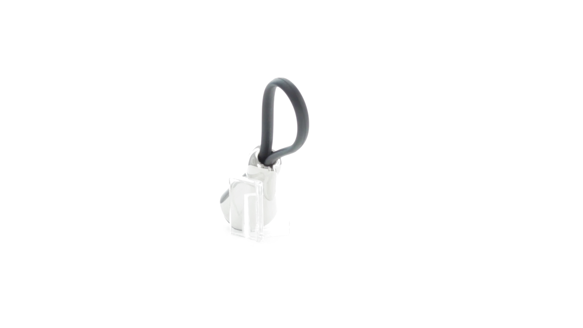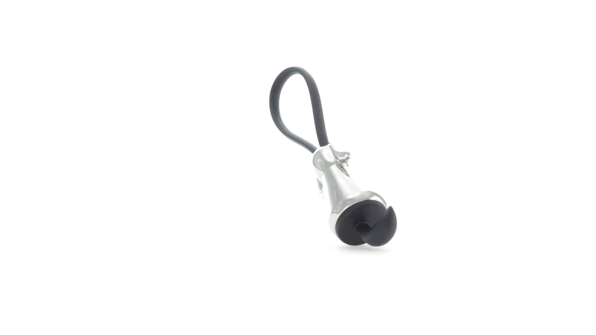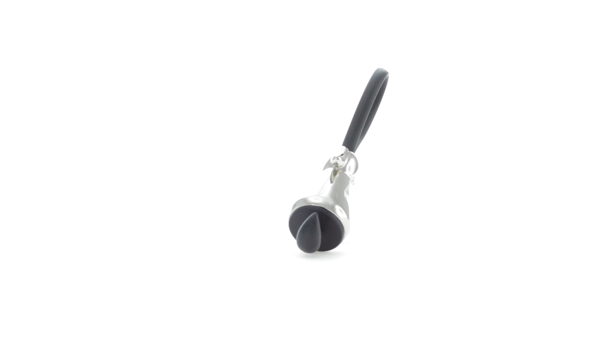 Origineller Metall-Schlüsselanhänger in glänzender Ausführung mit minimalistischem Hundedesign. Mit robustem Silikonband in Schwarz.