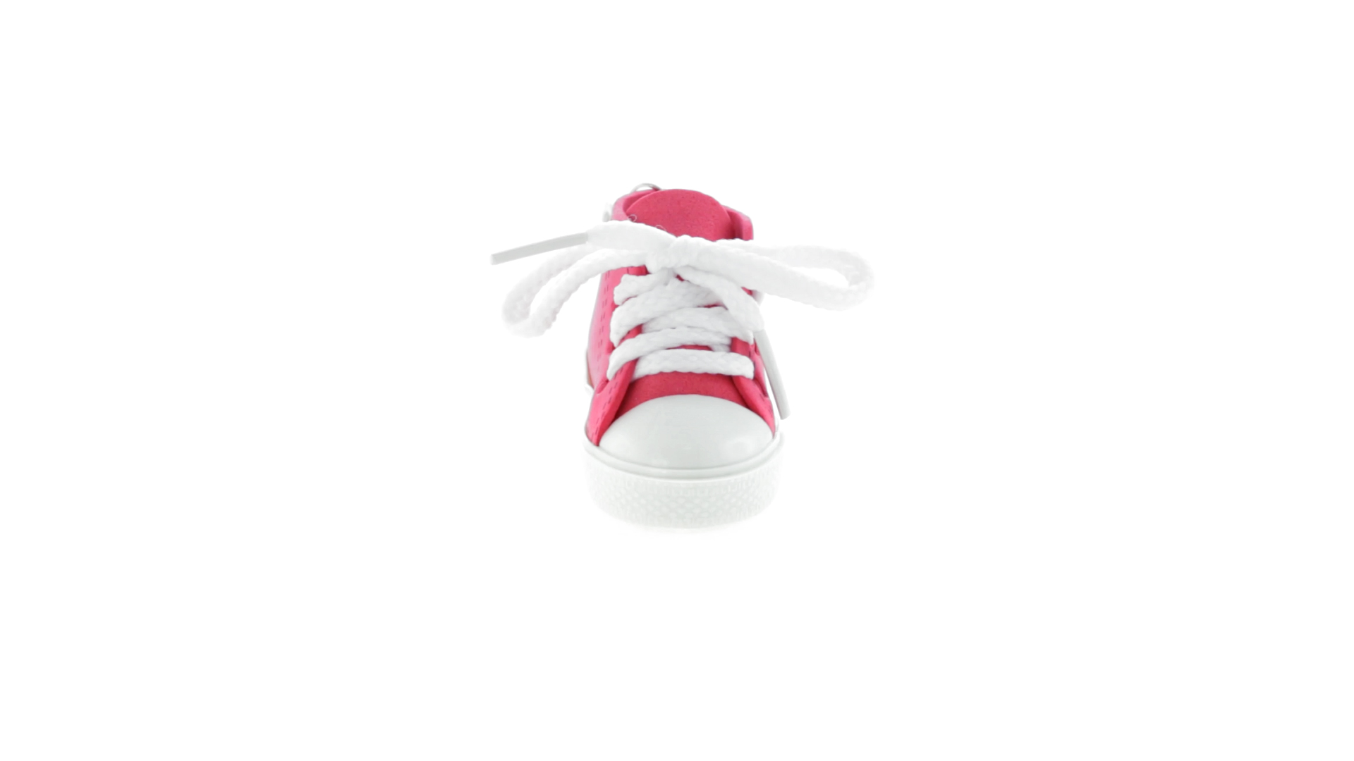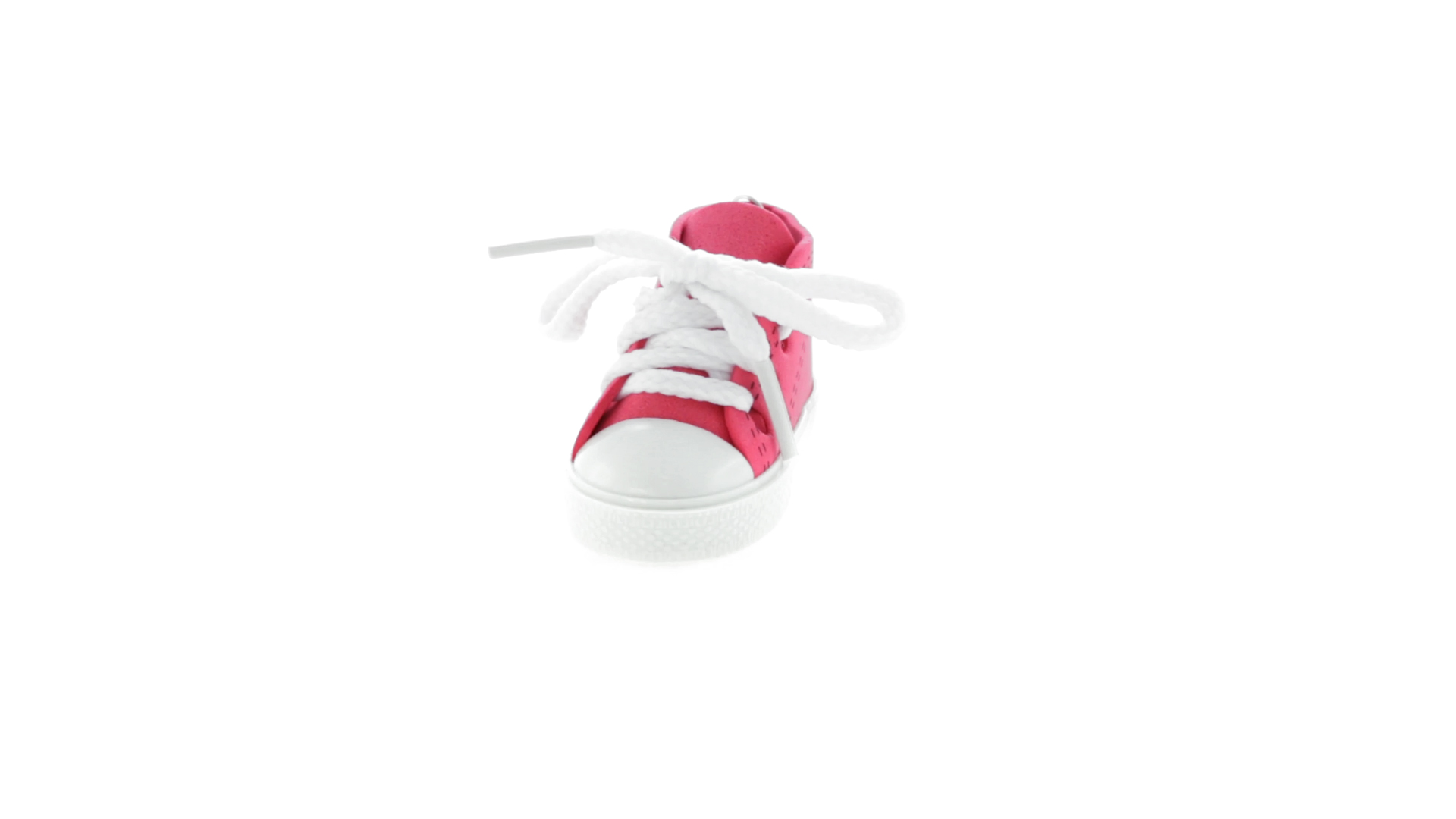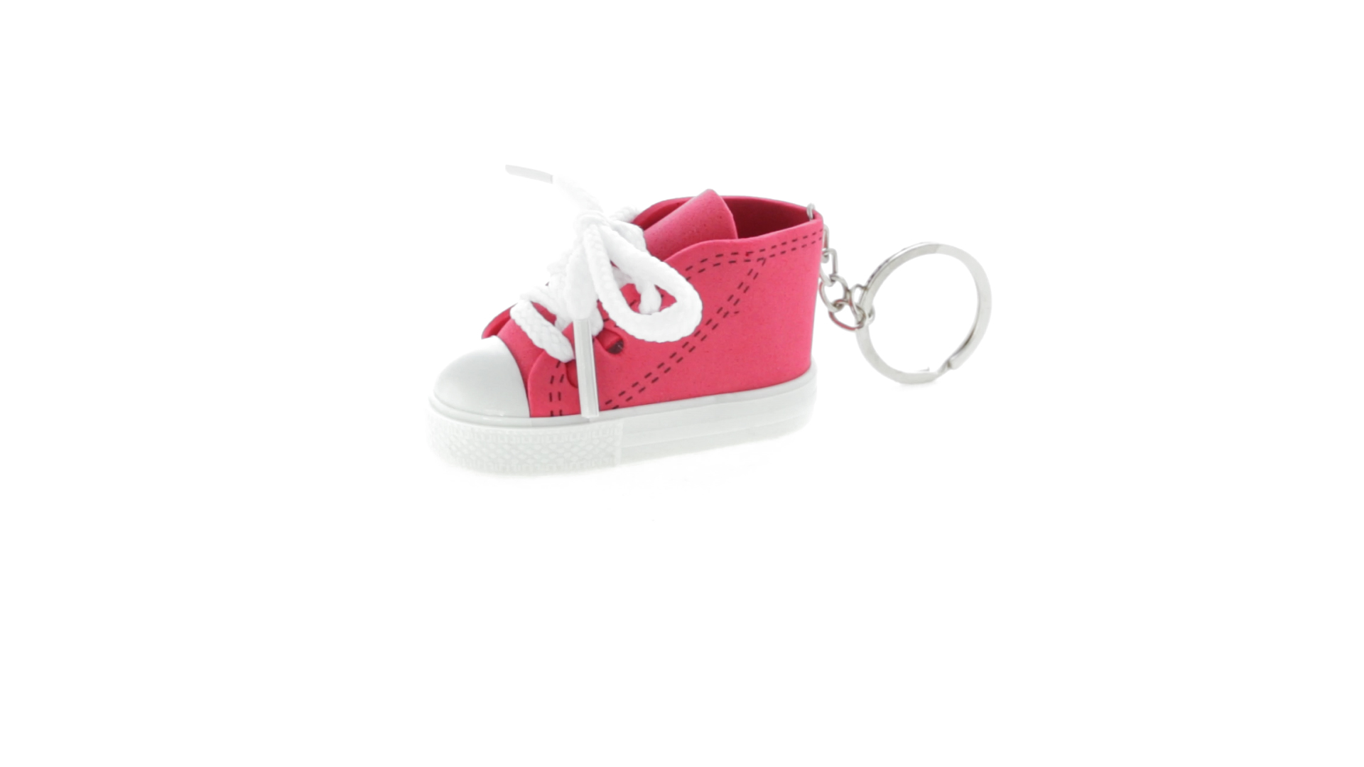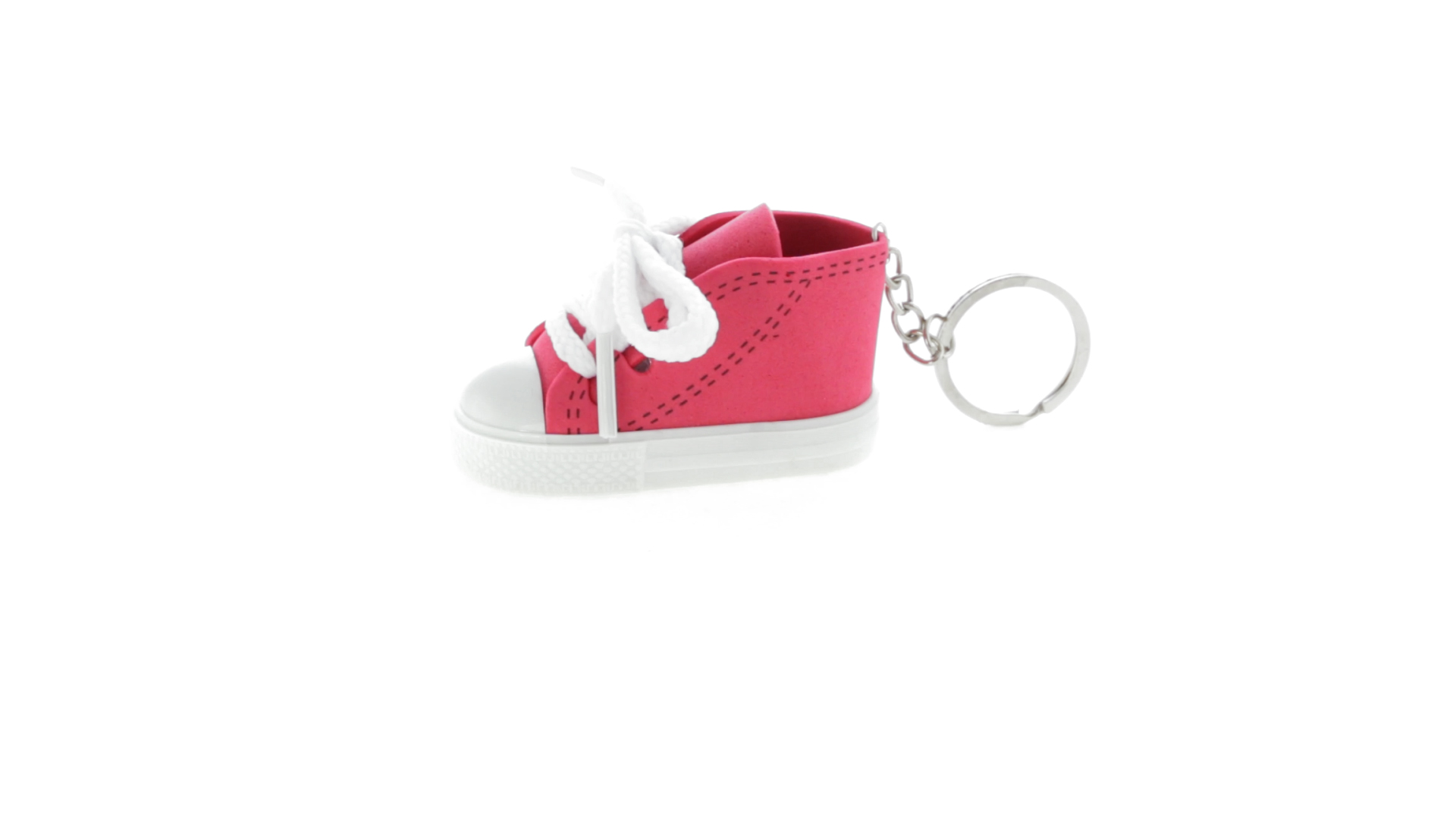 Origineller Schuh-Schlüsselanhänger aus PVC und EVA-Kunststoff mit lebhaftem zweifarbigem Design in verschiedenen Farben, mit weissen Schnürsenkeln.