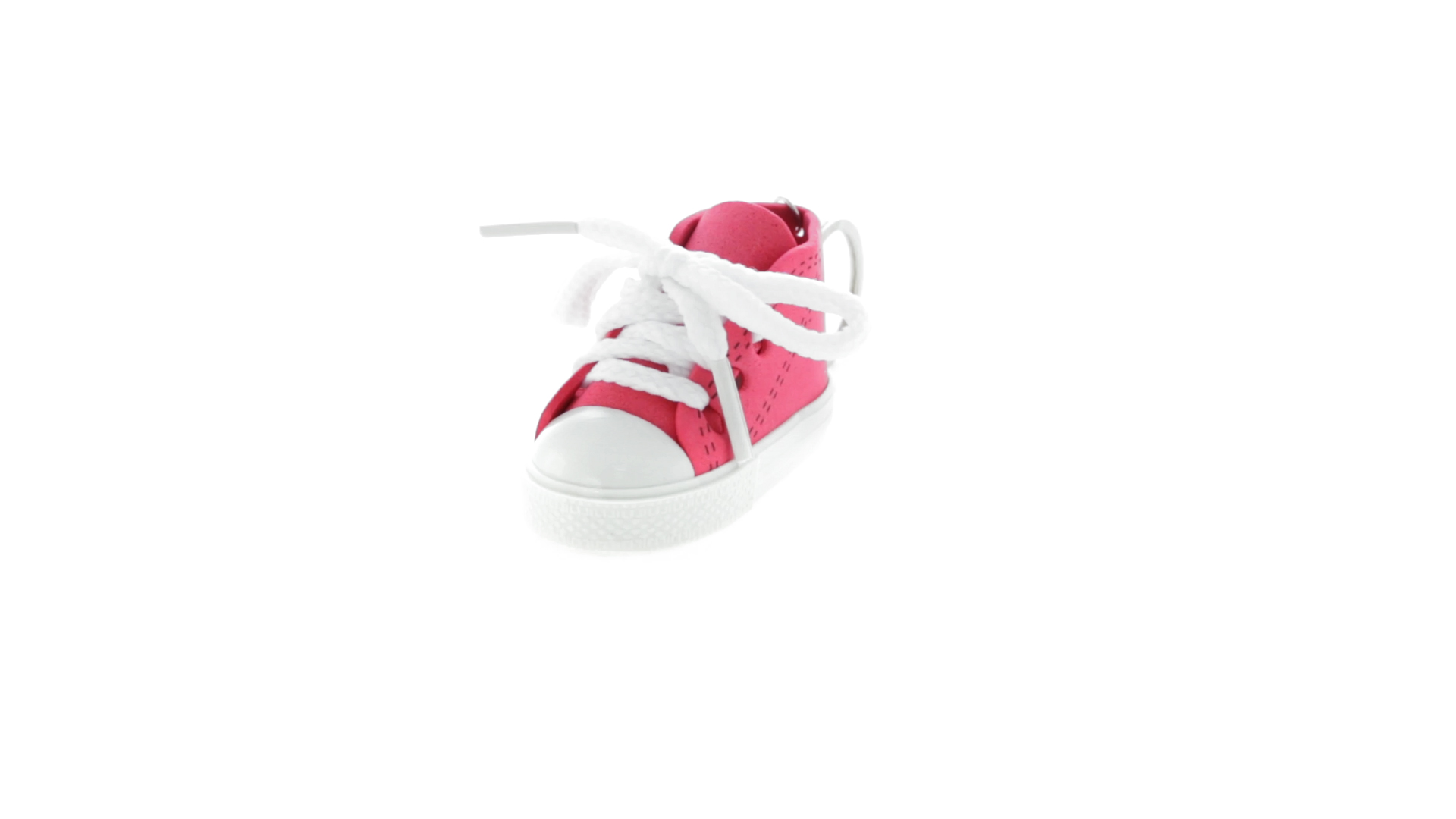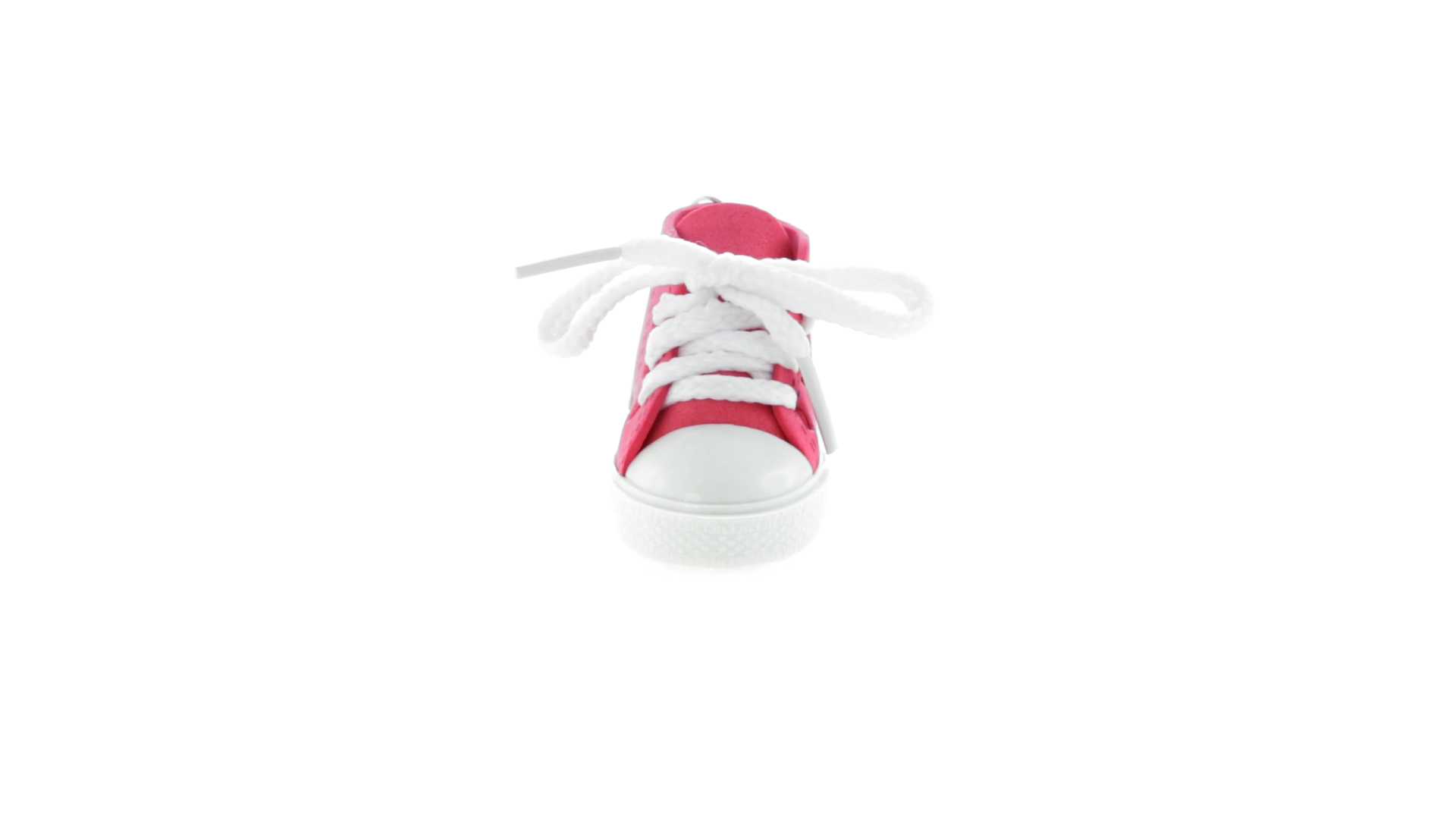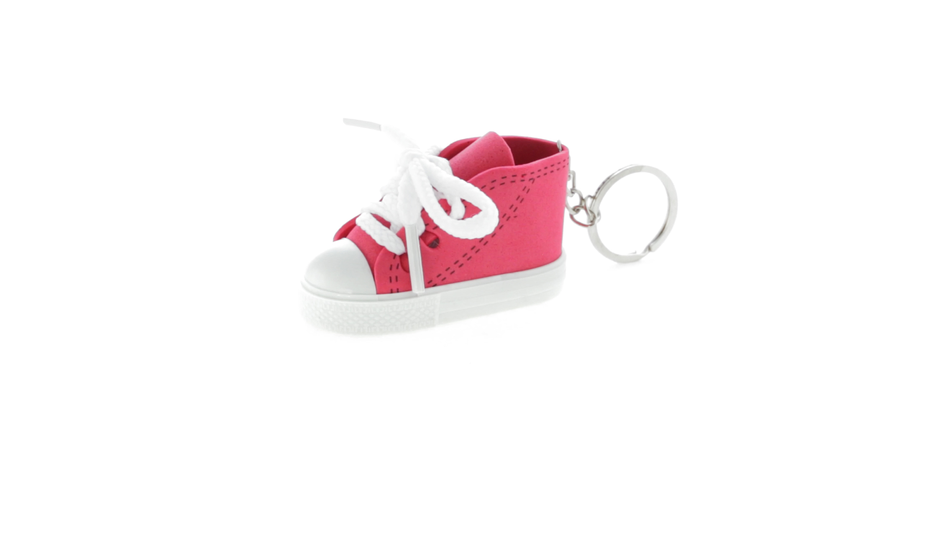 Origineller Schuh-Schlüsselanhänger aus PVC und EVA-Kunststoff mit lebhaftem zweifarbigem Design in verschiedenen Farben, mit weissen Schnürsenkeln.
