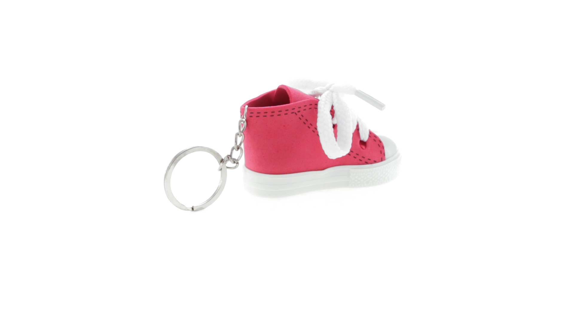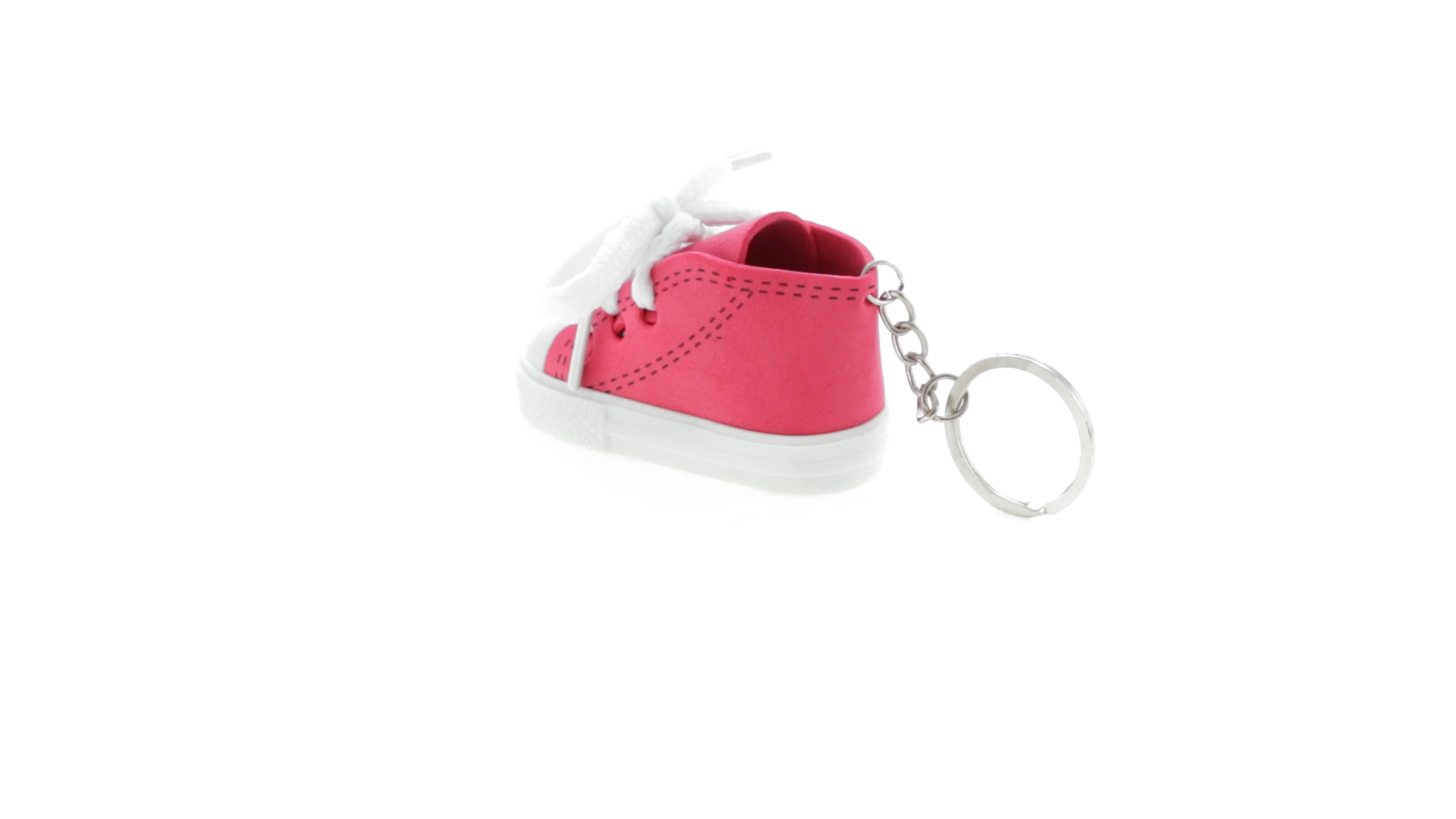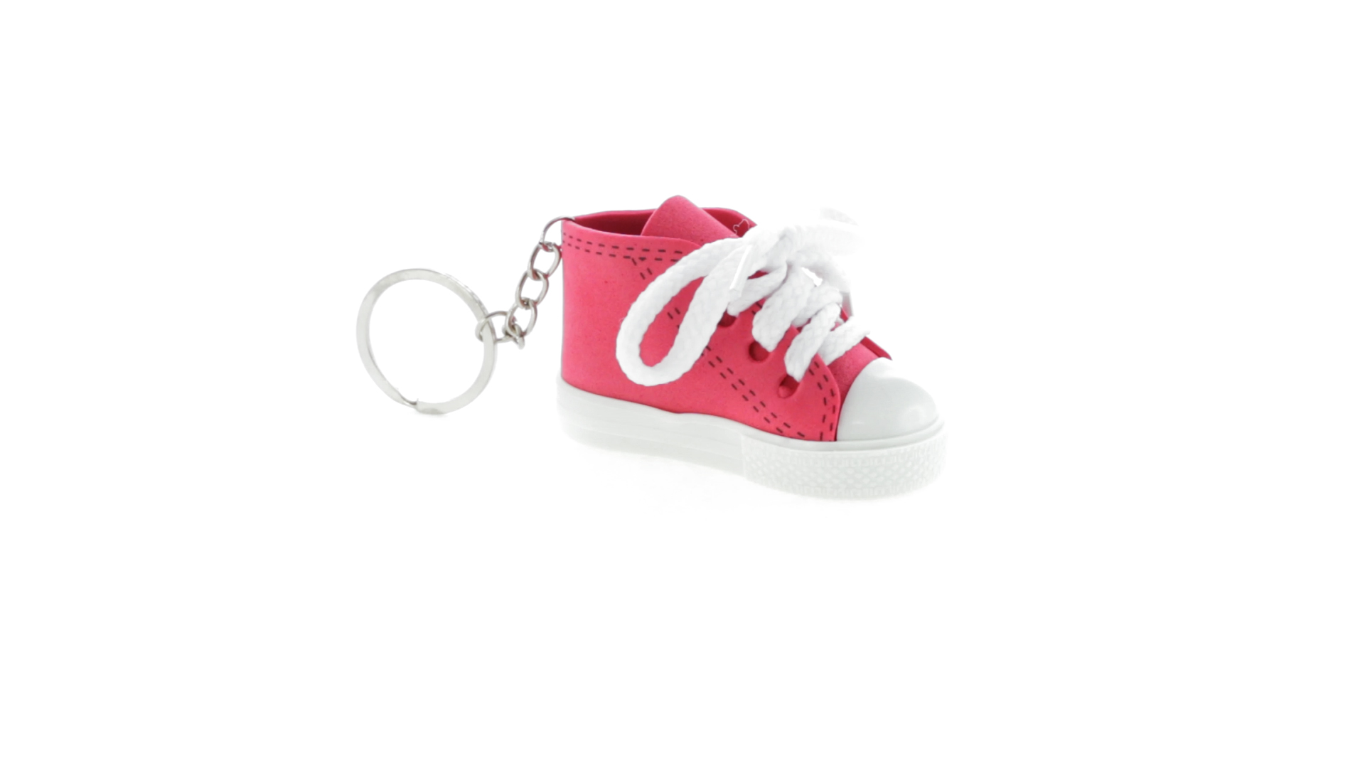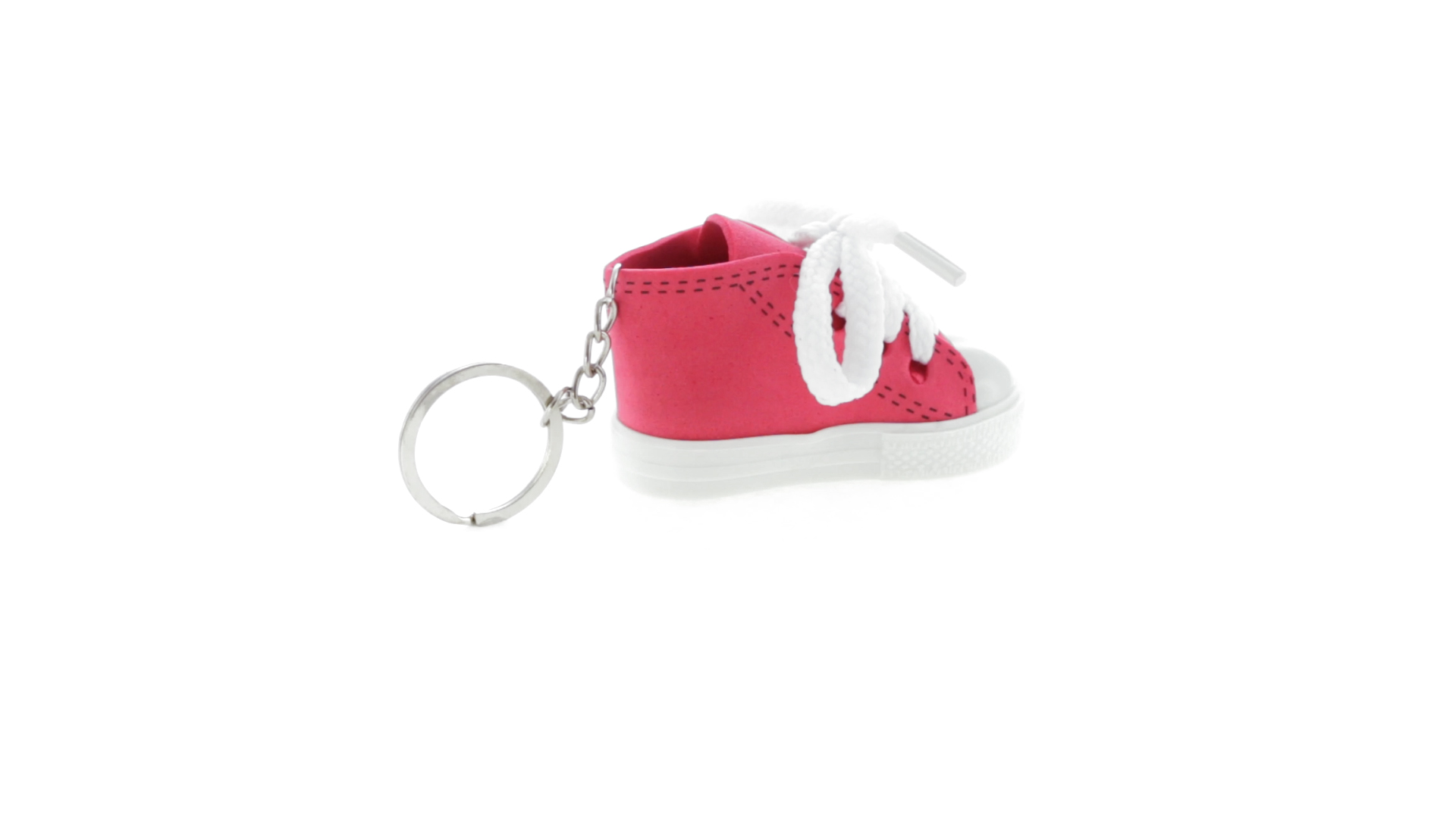 Origineller Schuh-Schlüsselanhänger aus PVC und EVA-Kunststoff mit lebhaftem zweifarbigem Design in verschiedenen Farben, mit weissen Schnürsenkeln.