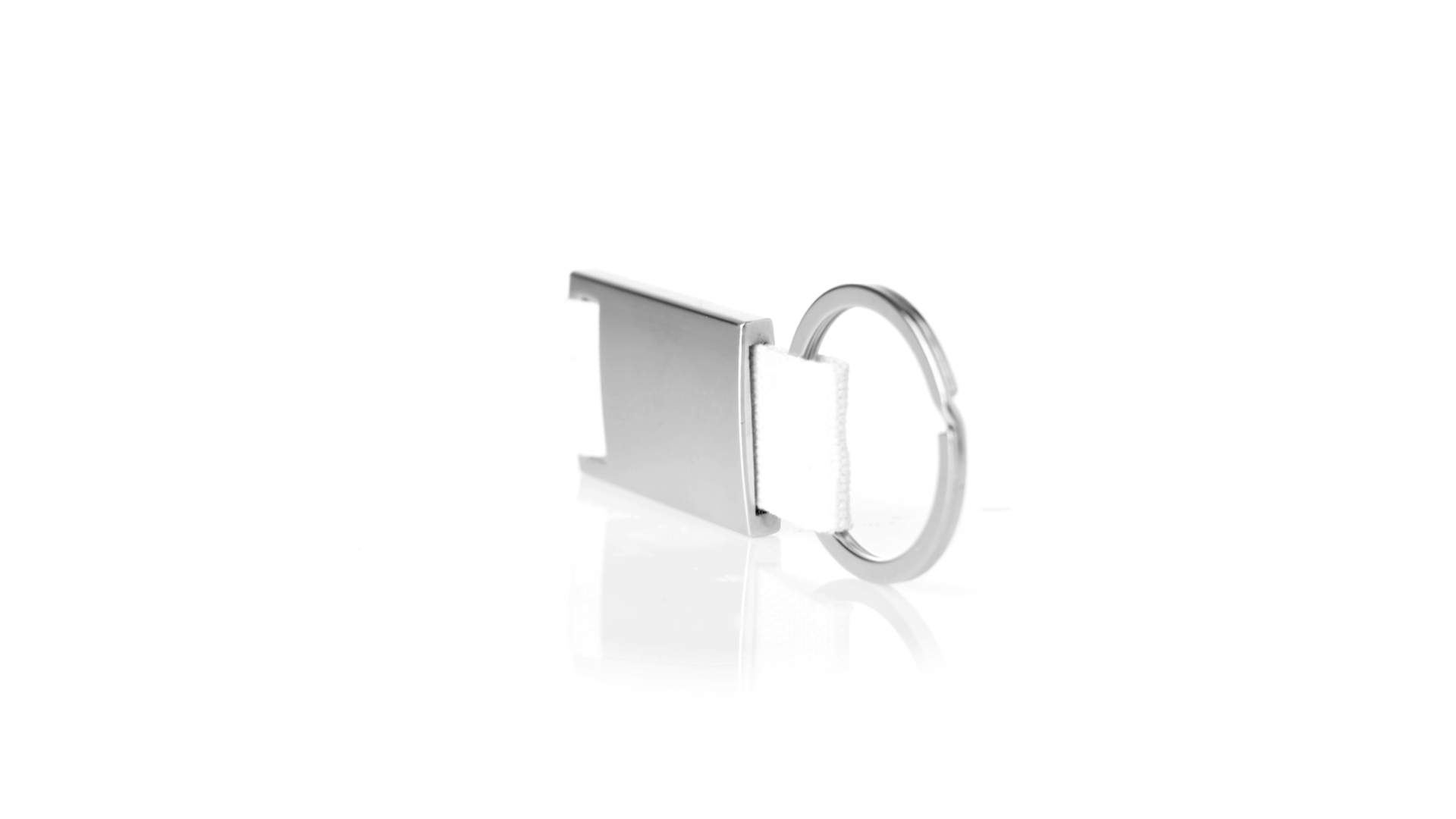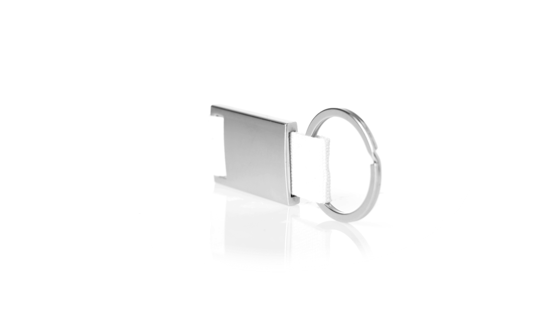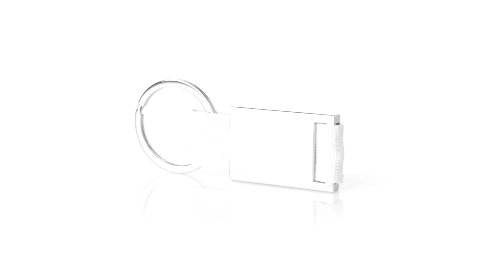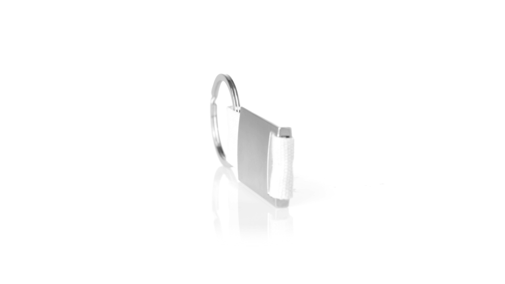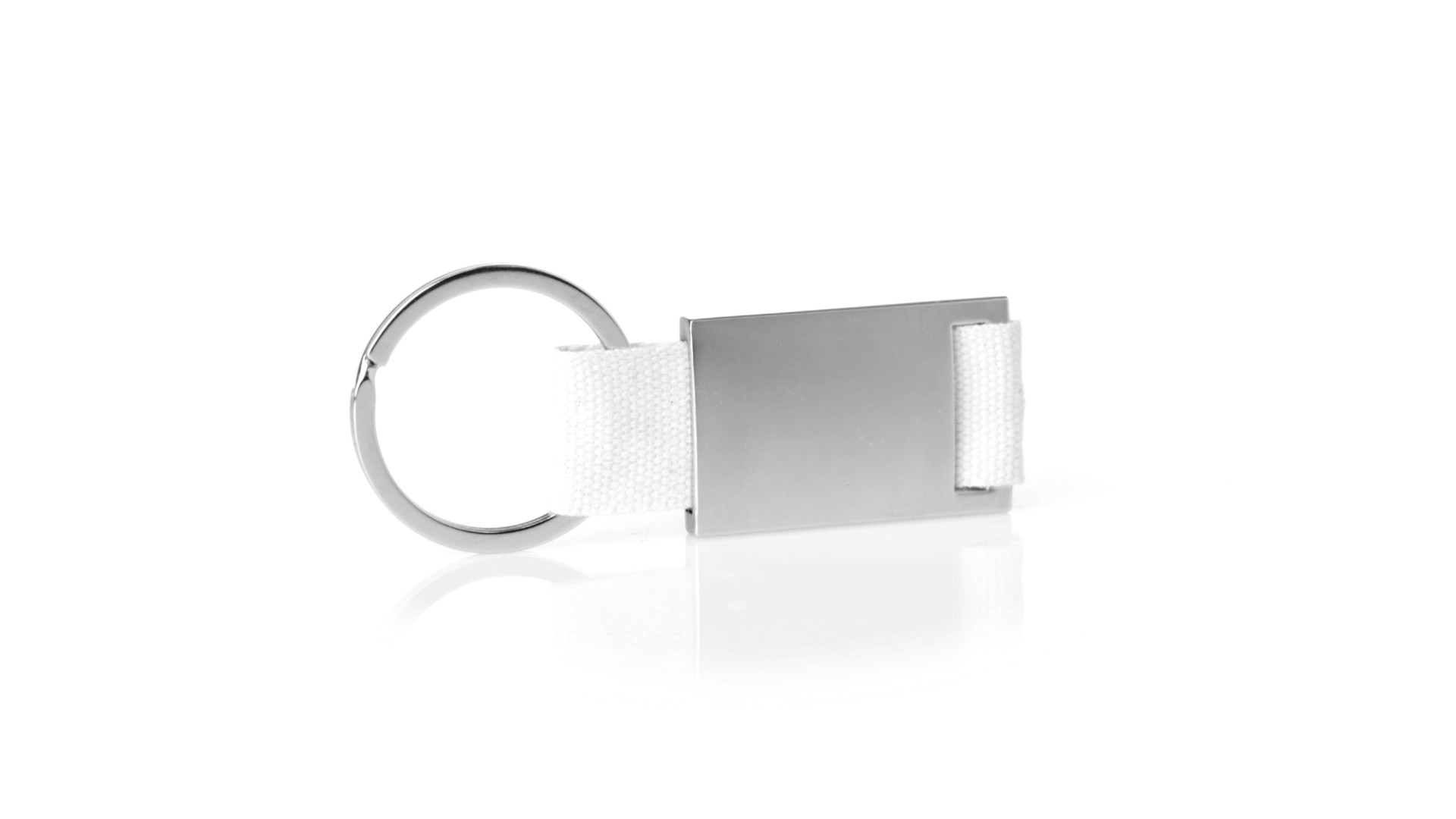 Schlüsselanhänger mit silberfarbenem Metallgehäuse. Baumwollband mit natürlichem Finish, mit breiter Brandingfläche und passendem Metallring. Präsentiert in einer individuellen Tasche mit Kraftkartoneinlage.