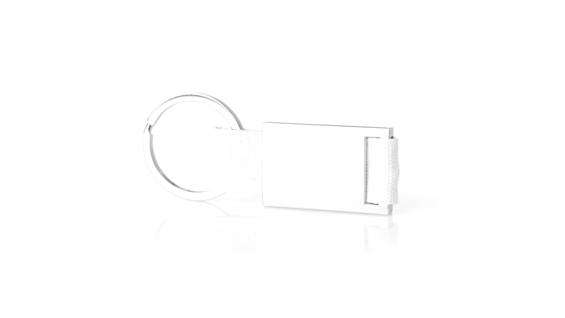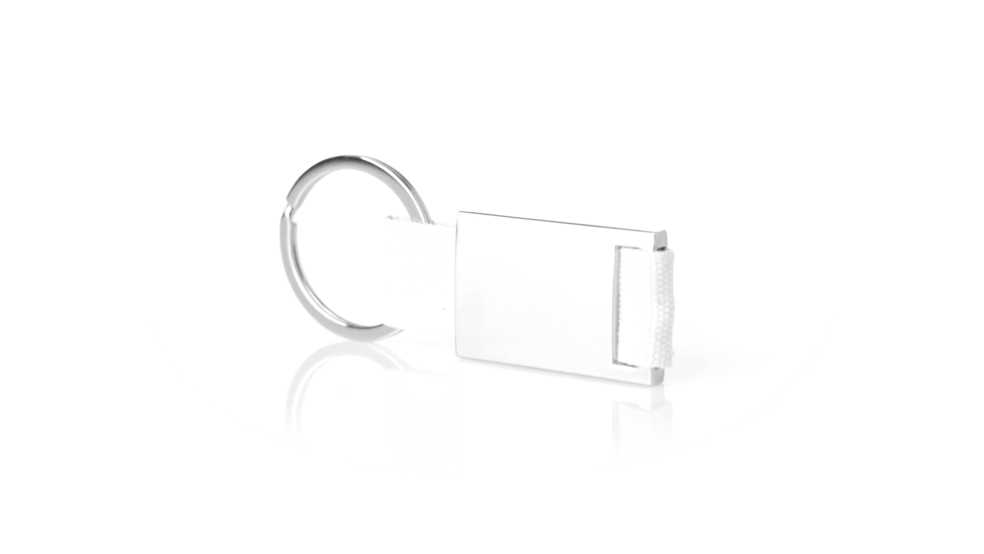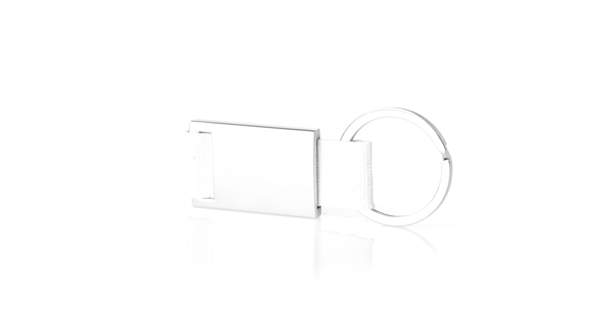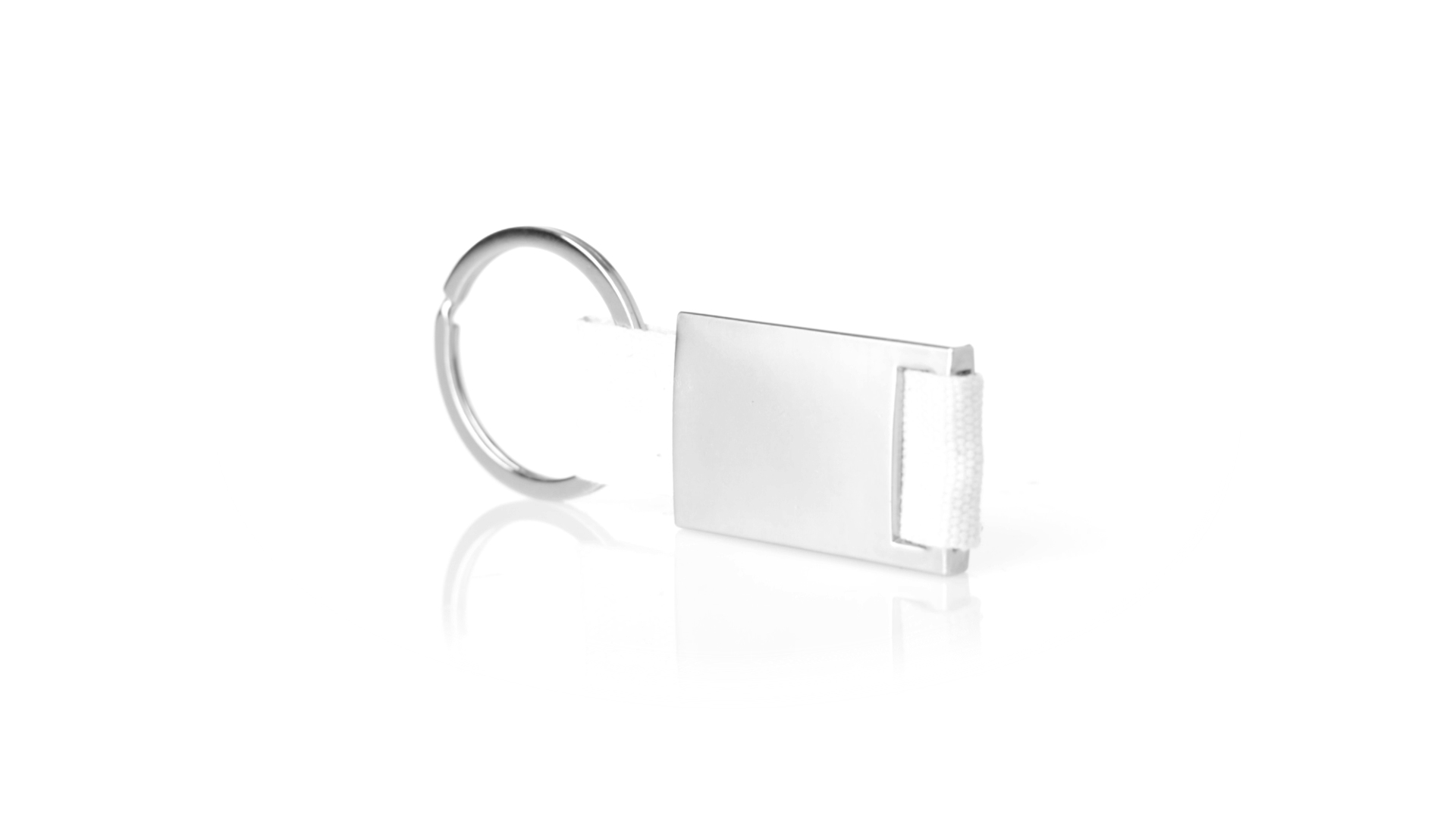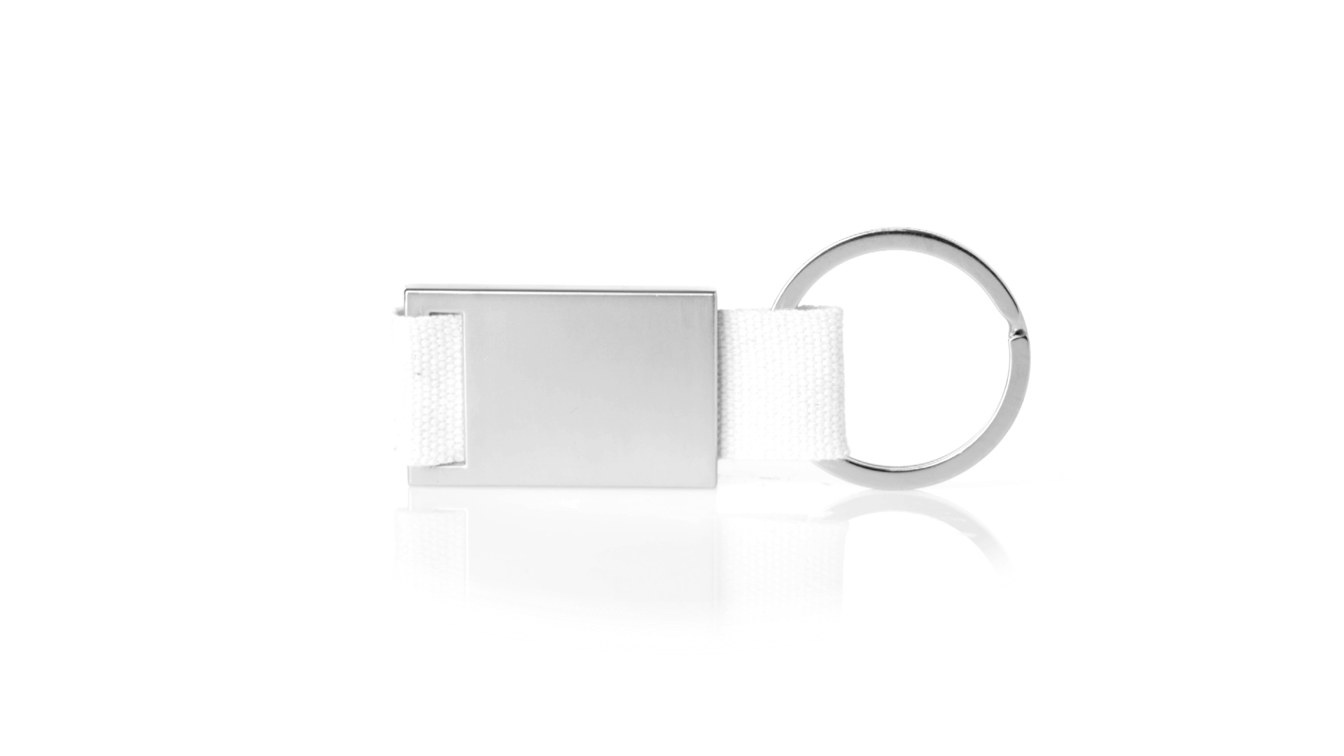 Schlüsselanhänger mit silberfarbenem Metallgehäuse. Baumwollband mit natürlichem Finish, mit breiter Brandingfläche und passendem Metallring. Präsentiert in einer individuellen Tasche mit Kraftkartoneinlage.