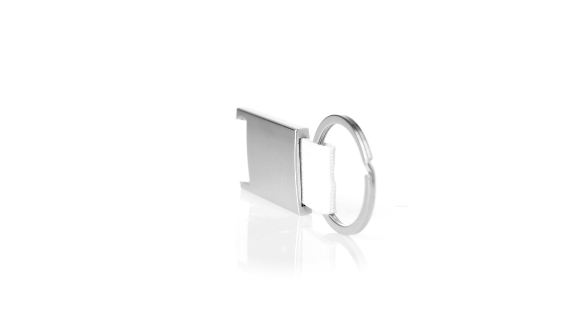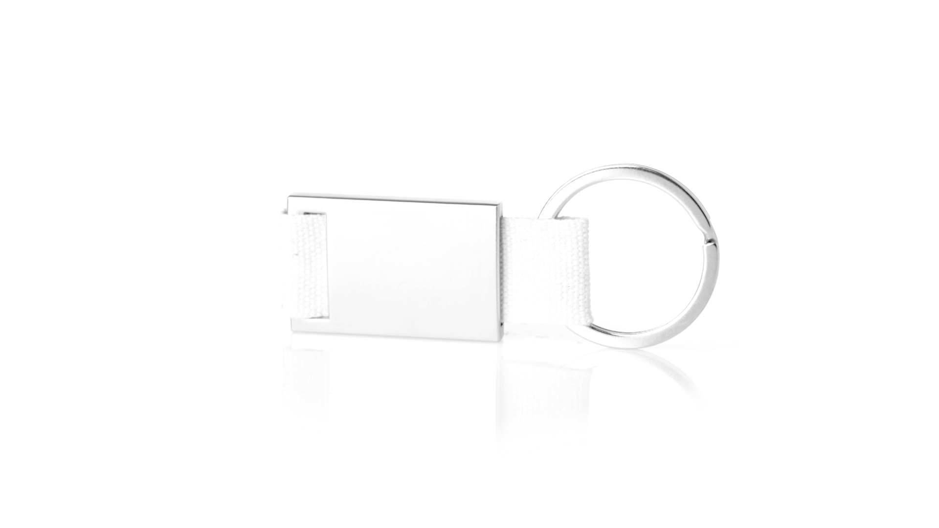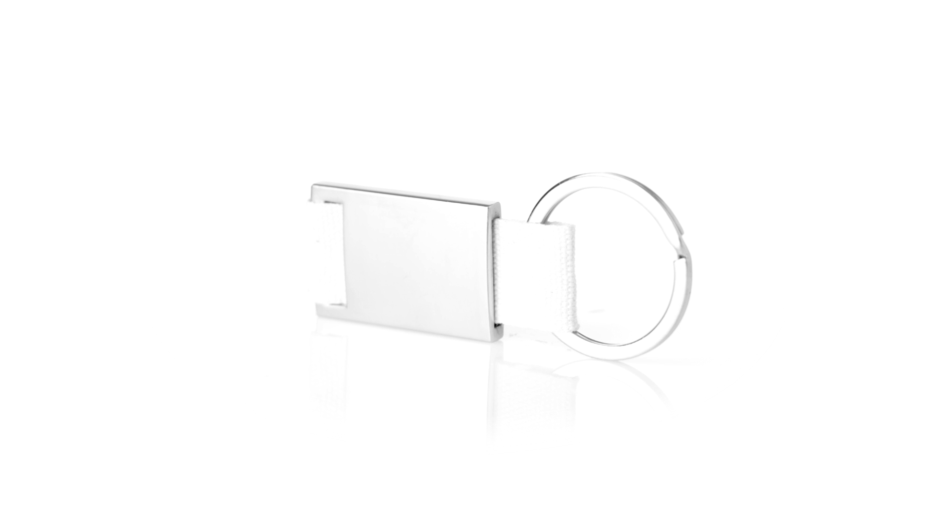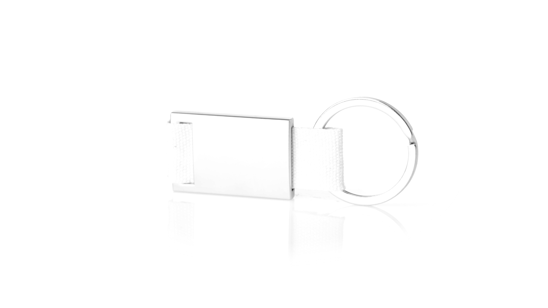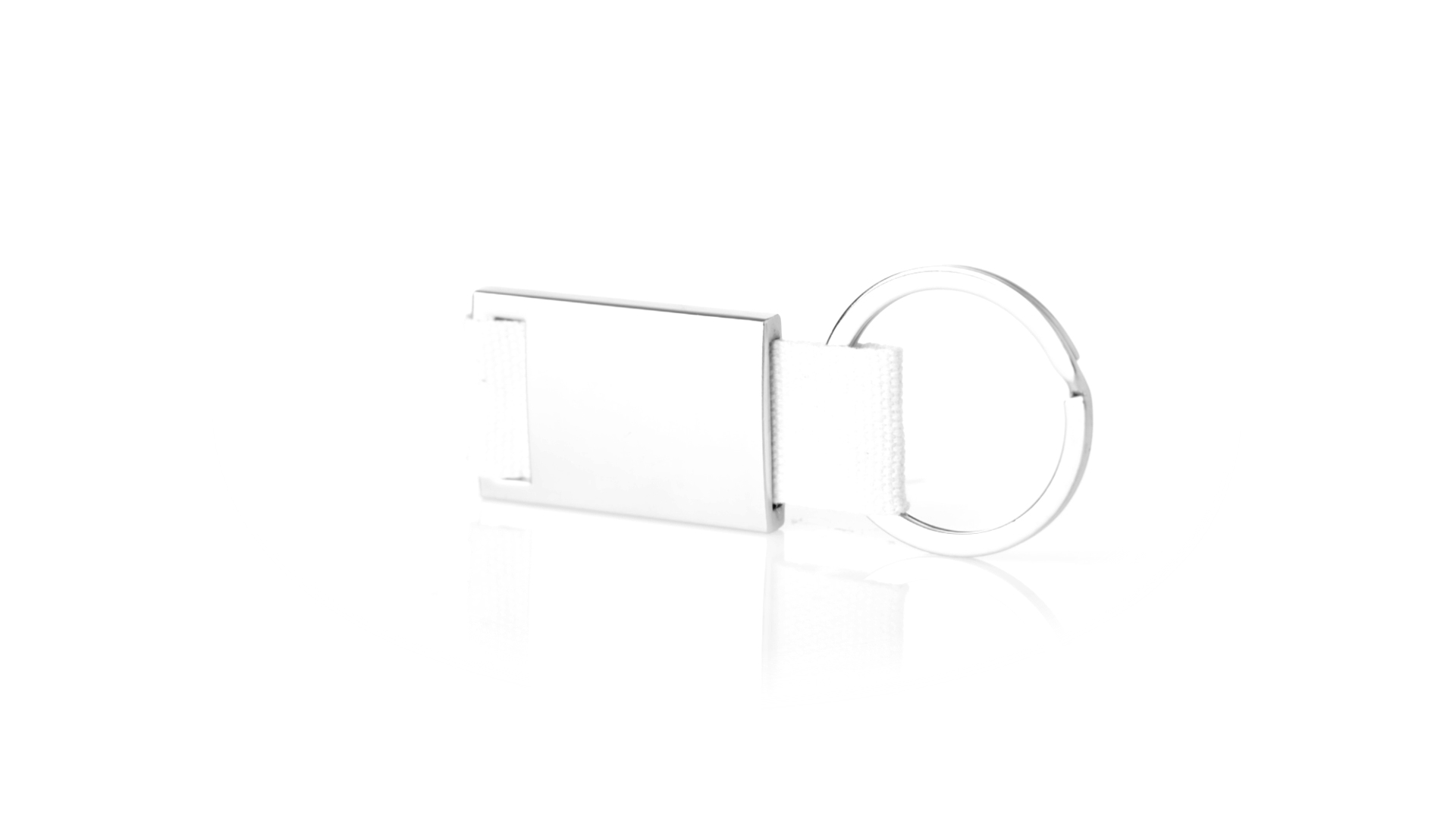 Schlüsselanhänger mit silberfarbenem Metallgehäuse. Baumwollband mit natürlichem Finish, mit breiter Brandingfläche und passendem Metallring. Präsentiert in einer individuellen Tasche mit Kraftkartoneinlage.