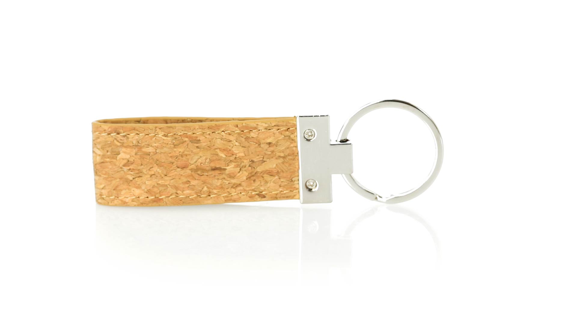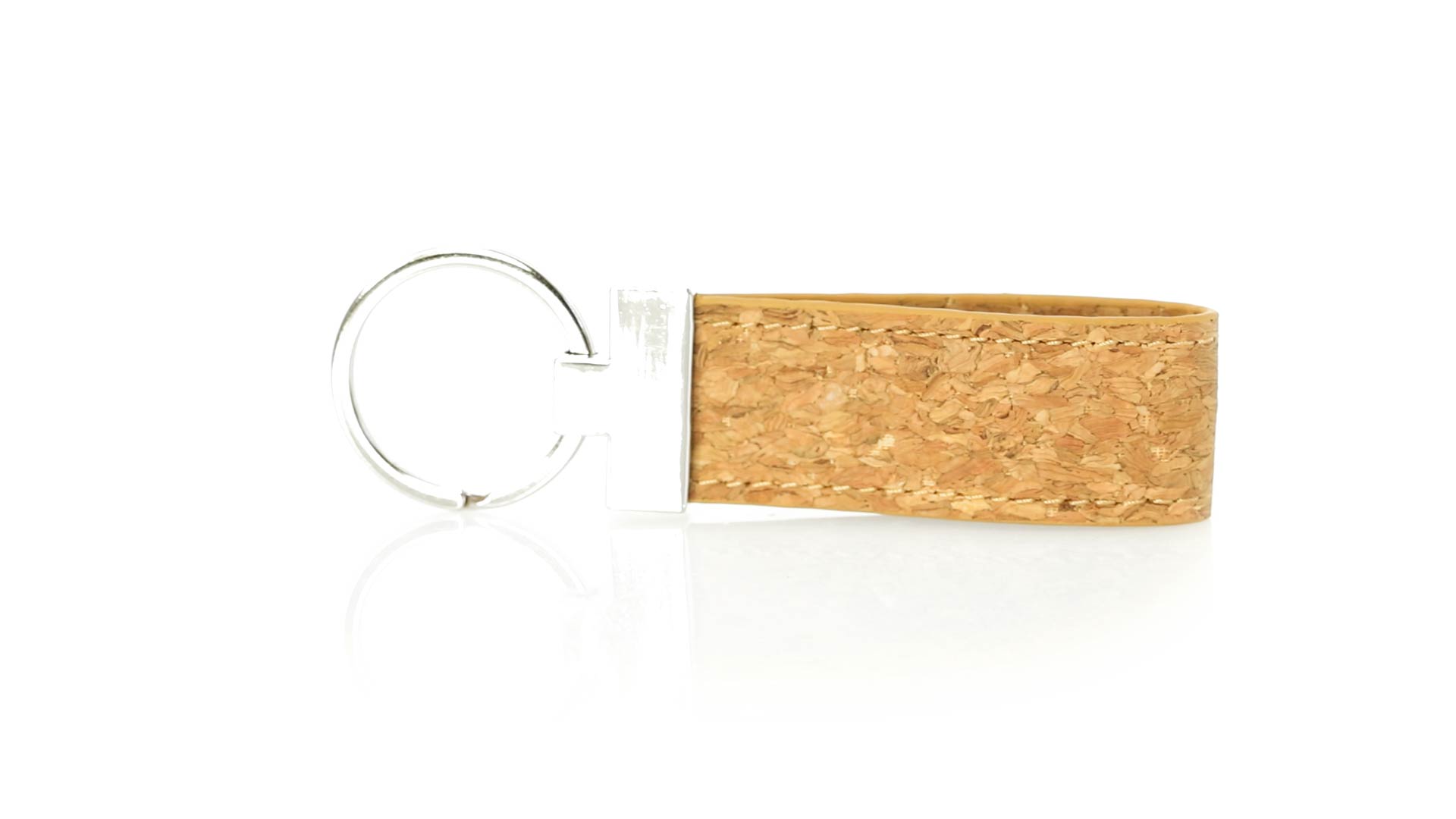 Schlüsselanhänger aus der Naturlinie aus Naturkork, mit Metallaccessoires. Präsentiert in einer individuellen, selbstschliessenden Tasche mit einer Innenkarte im Öko-Design.