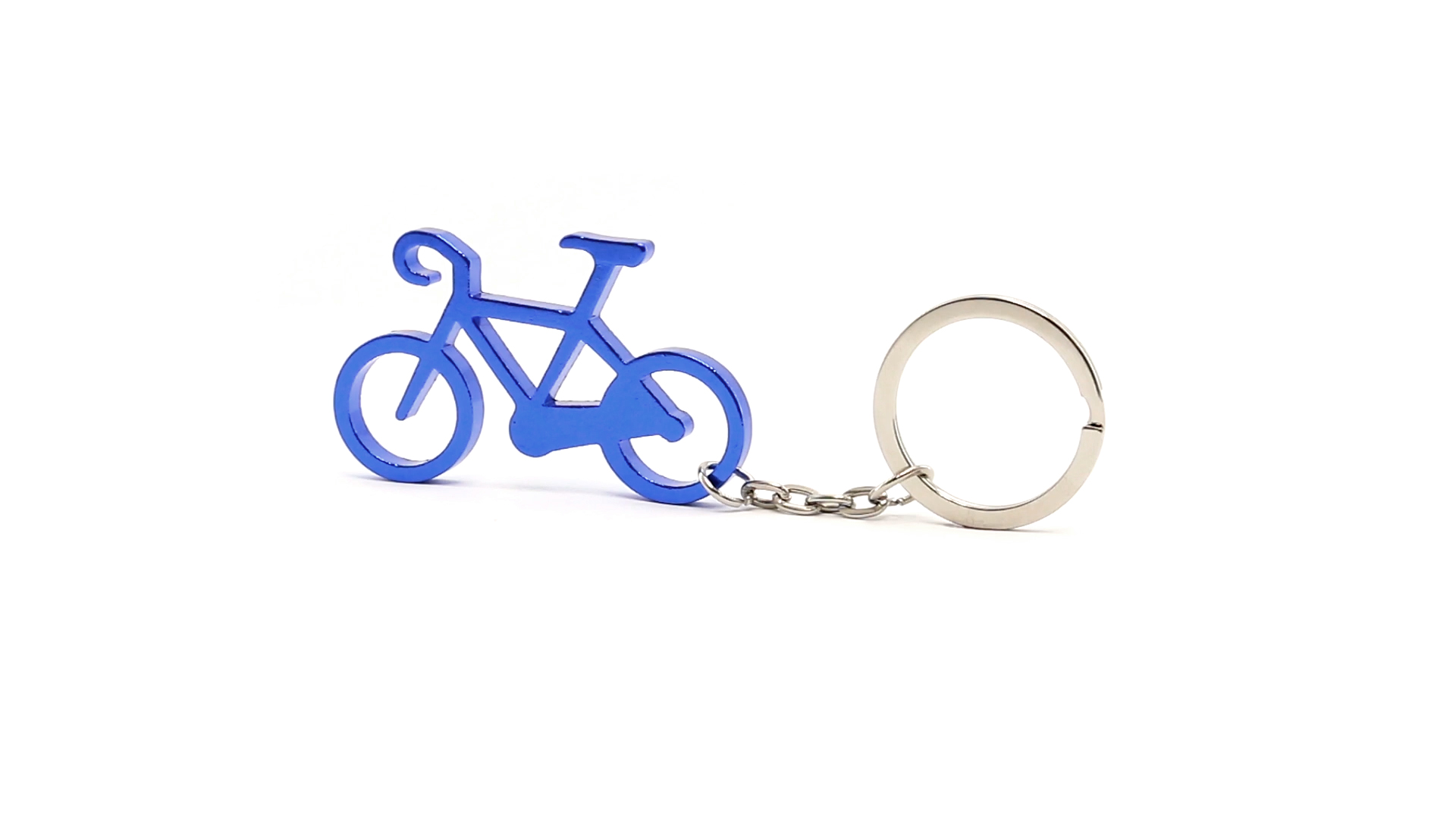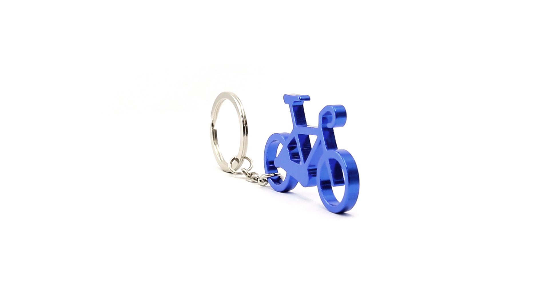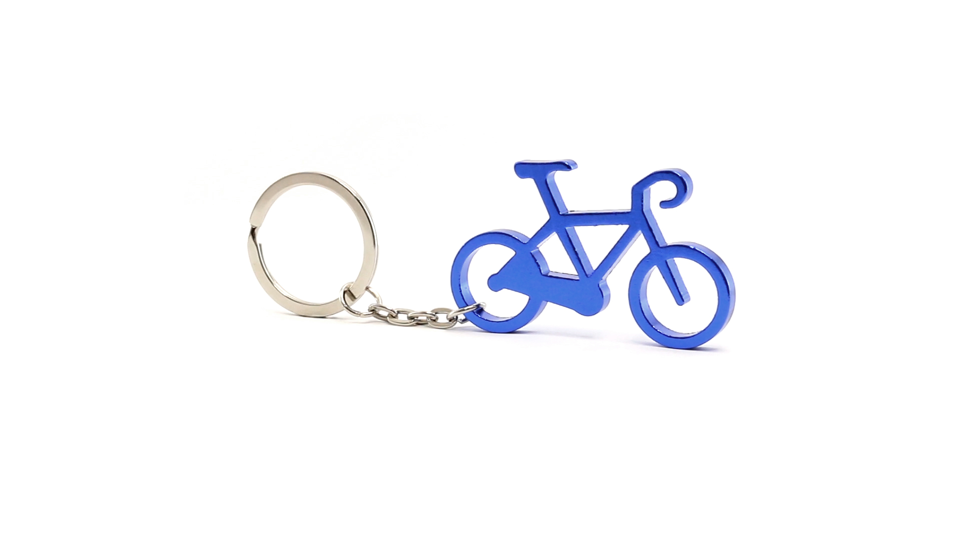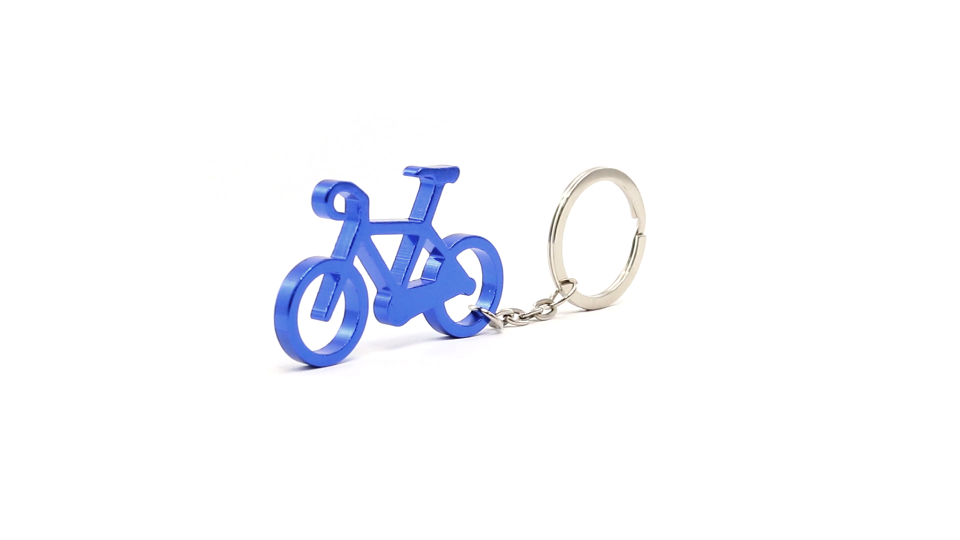 Schlüsselanhänger aus Aluminium mit Fahrrad-Form in verschiedenen lebendigen Farben. Speziell für den Laserdruck entwickelt.