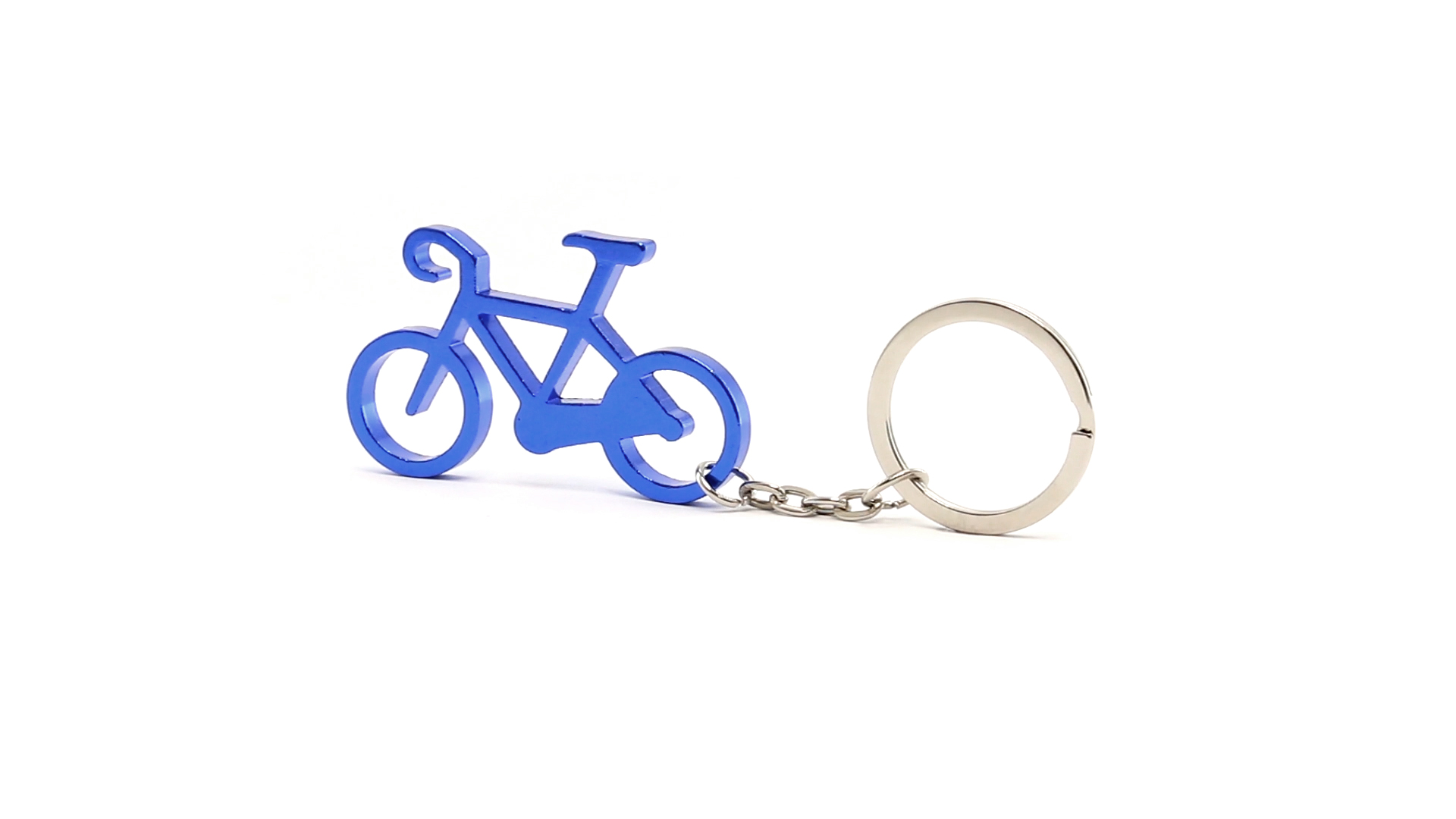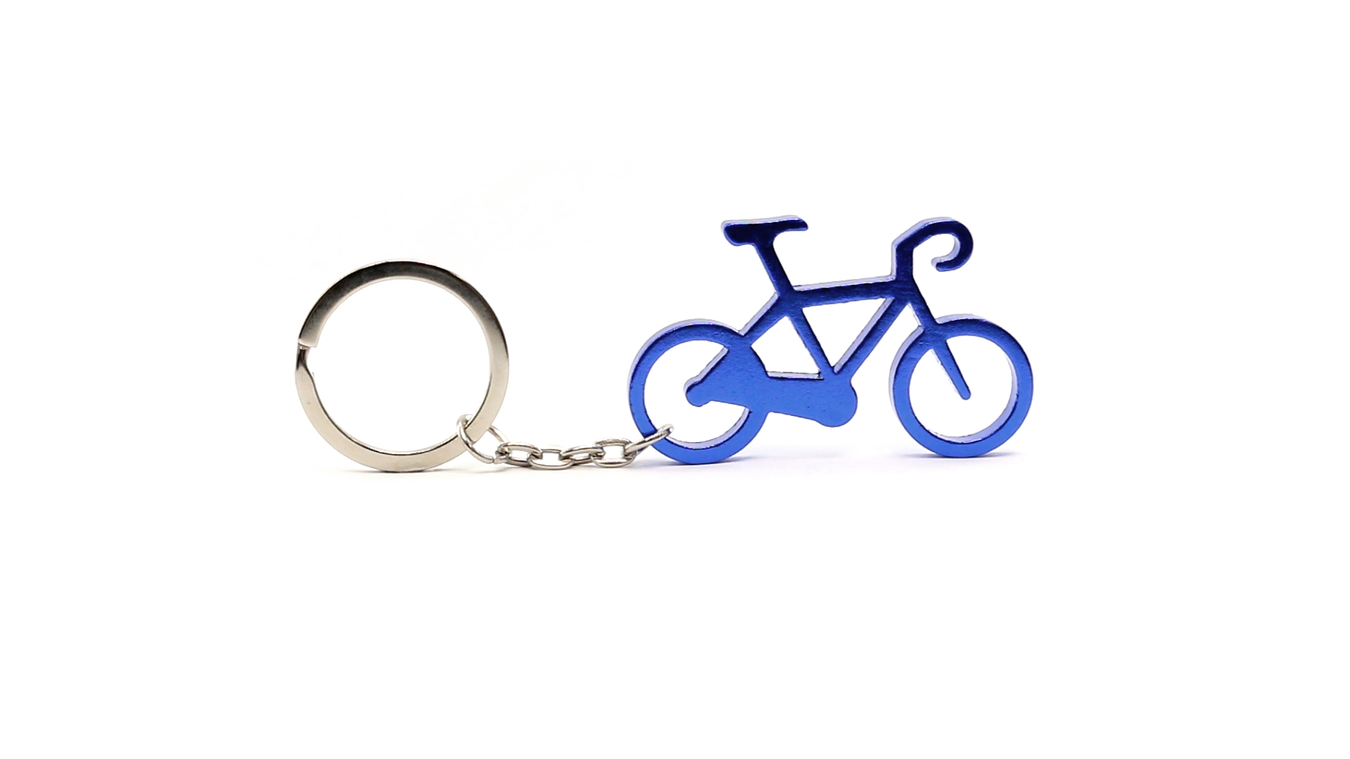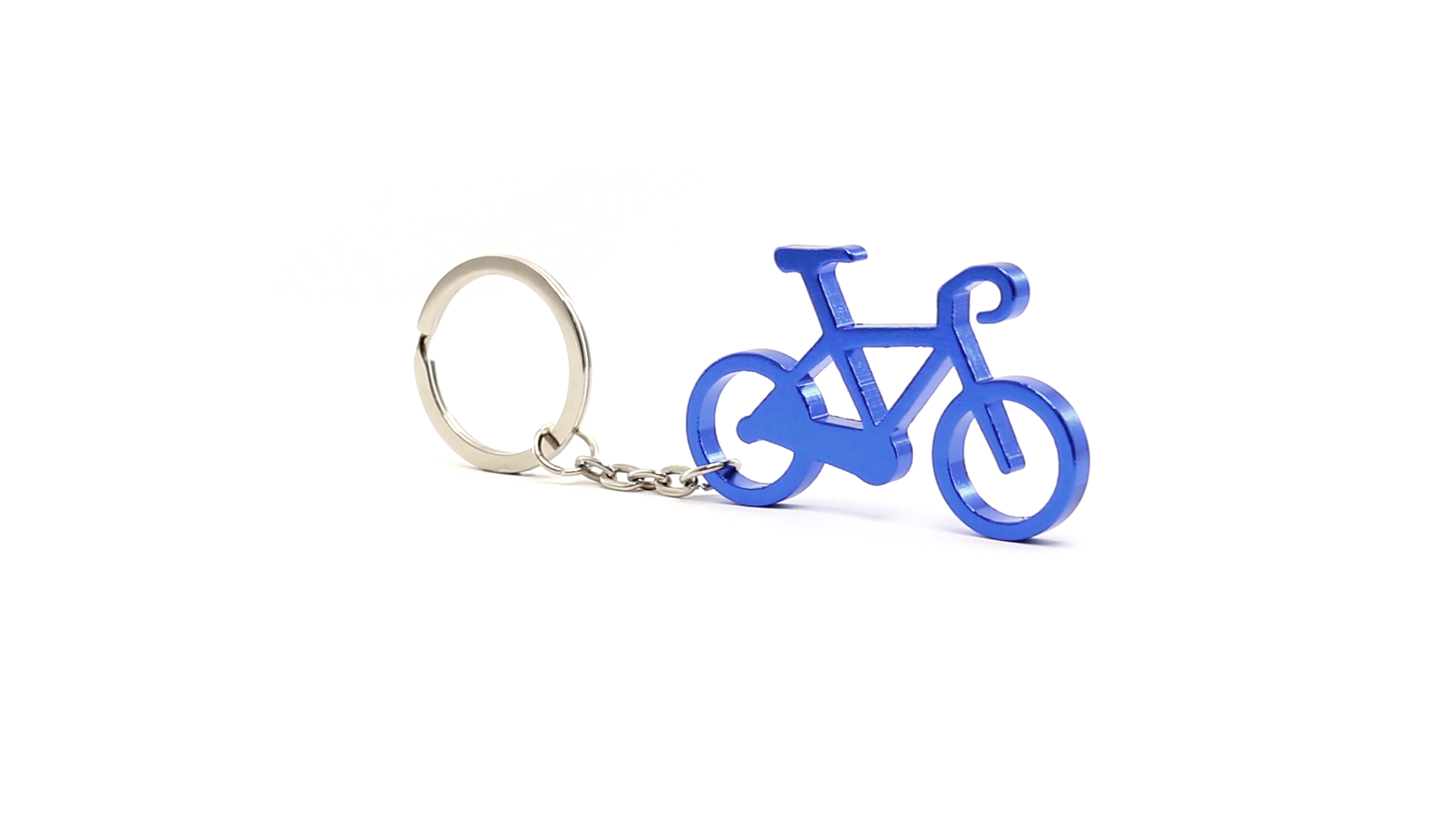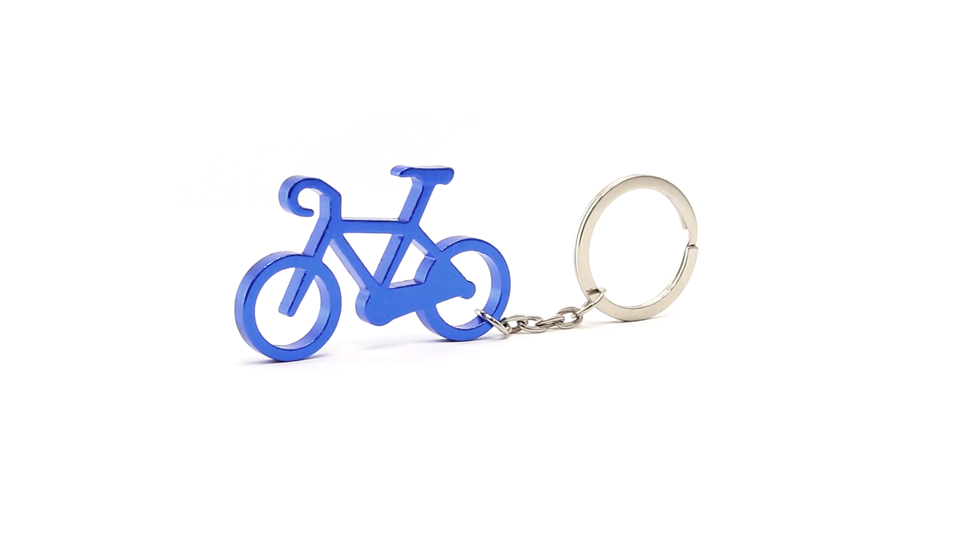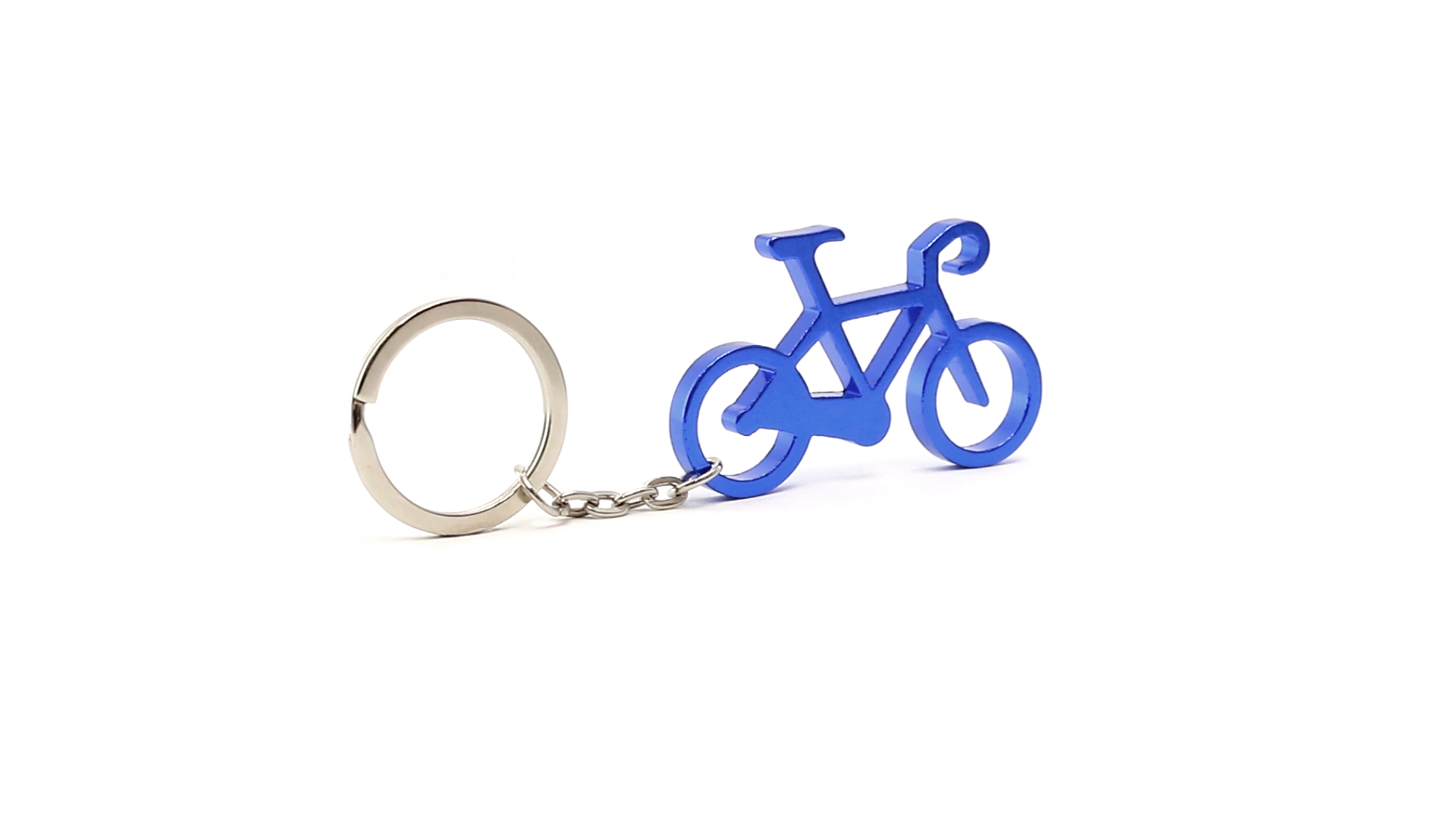 Schlüsselanhänger aus Aluminium mit Fahrrad-Form in verschiedenen lebendigen Farben. Speziell für den Laserdruck entwickelt.