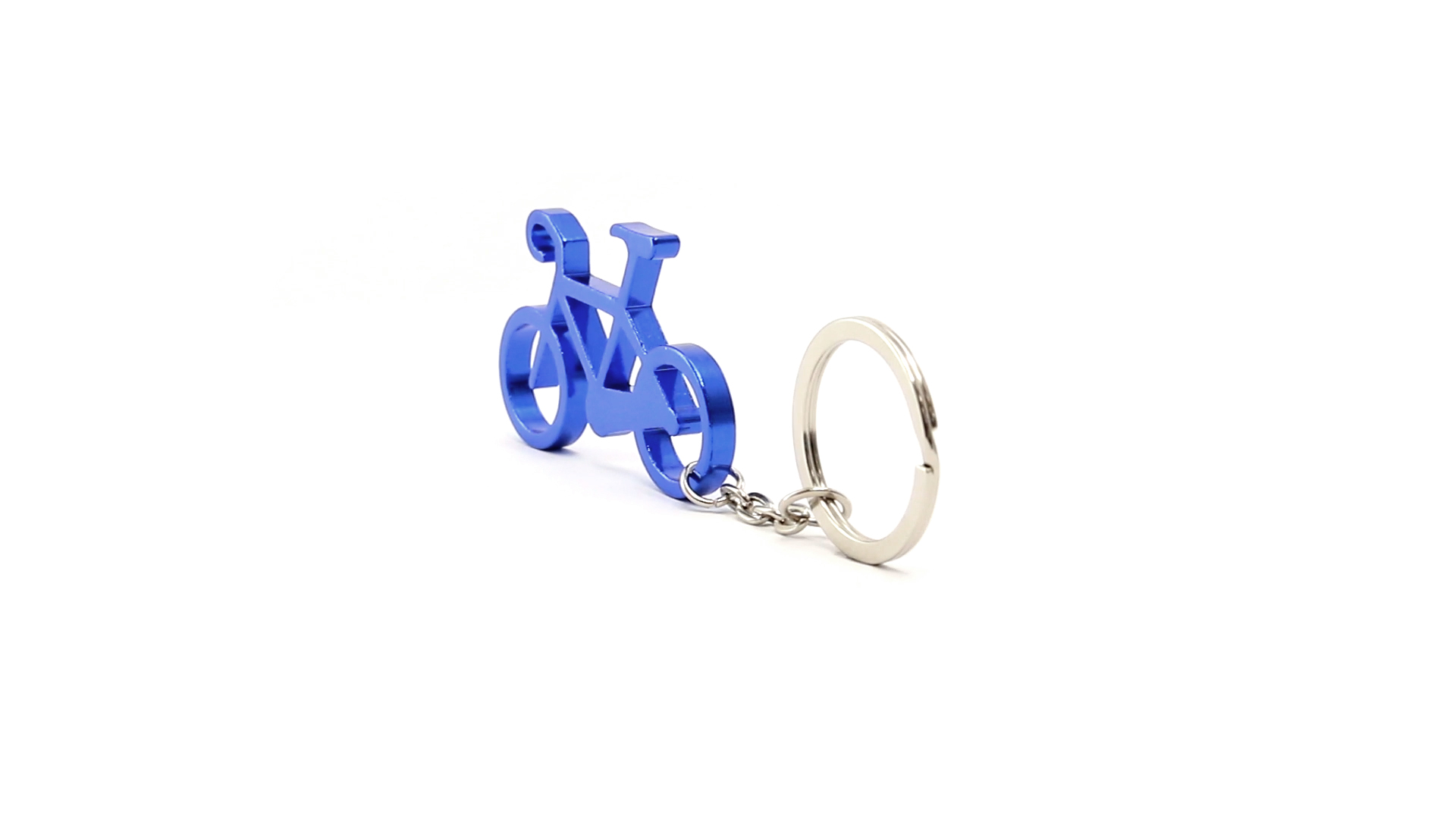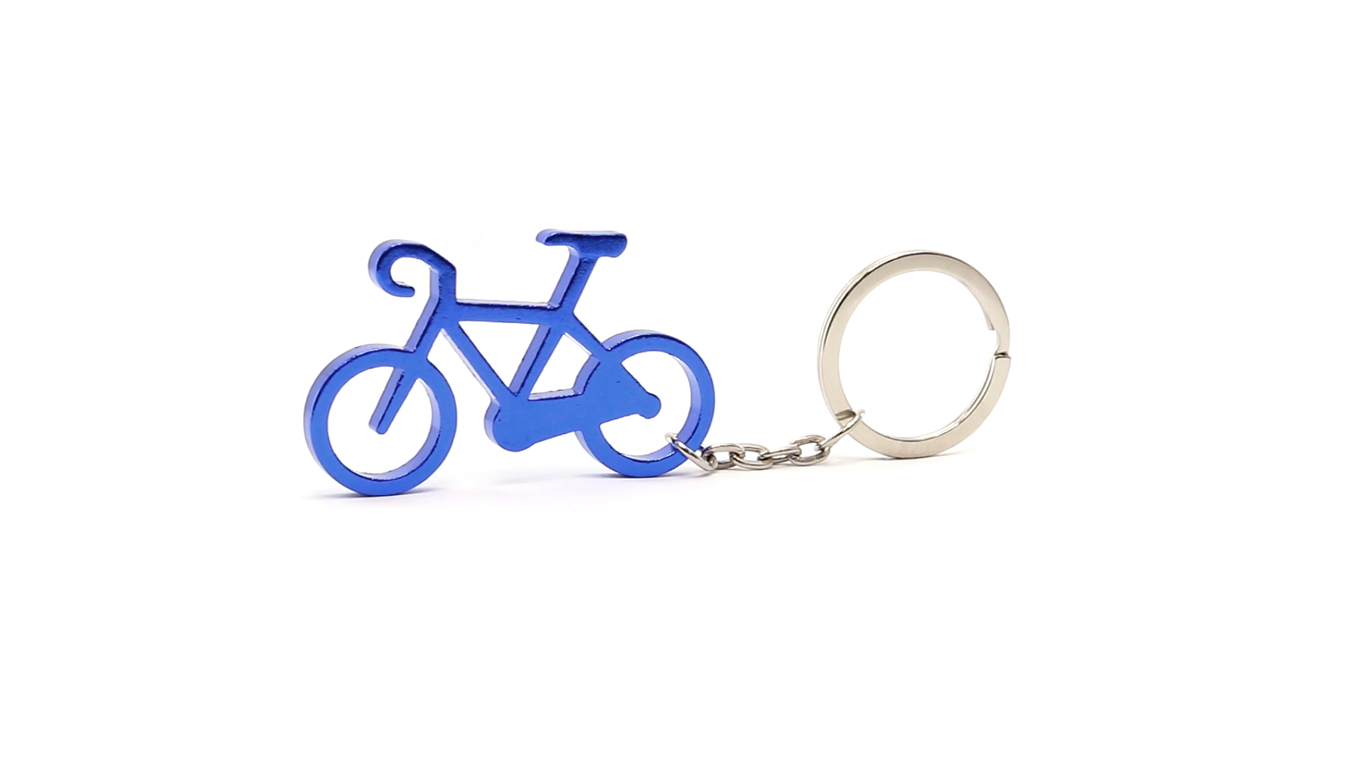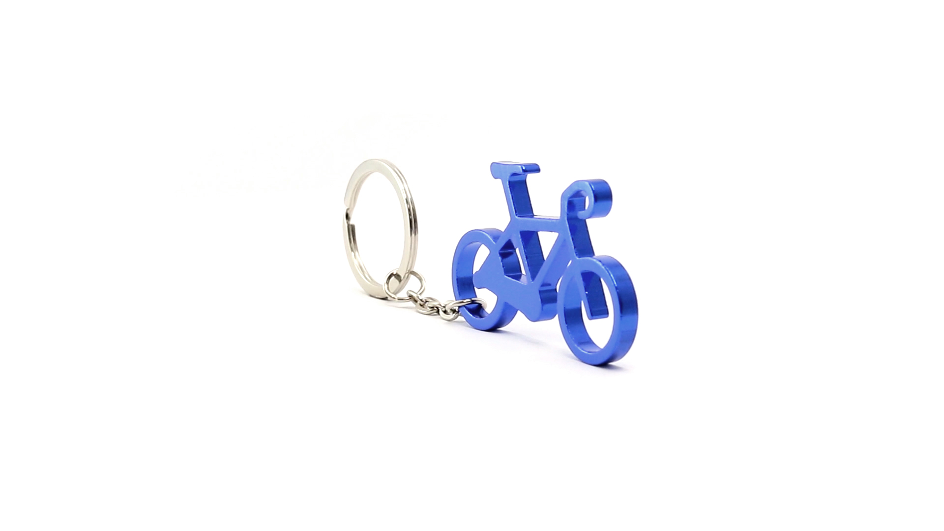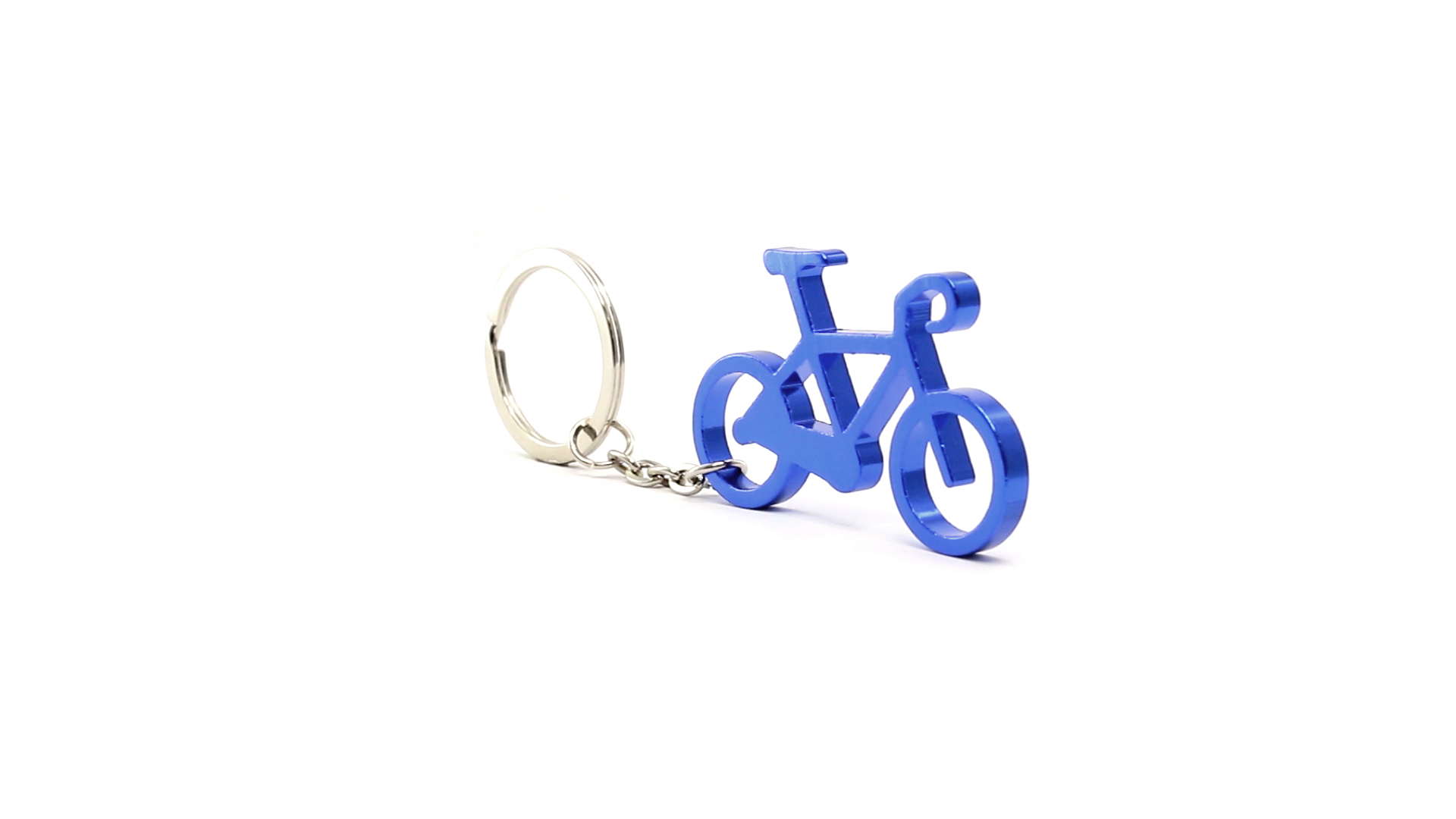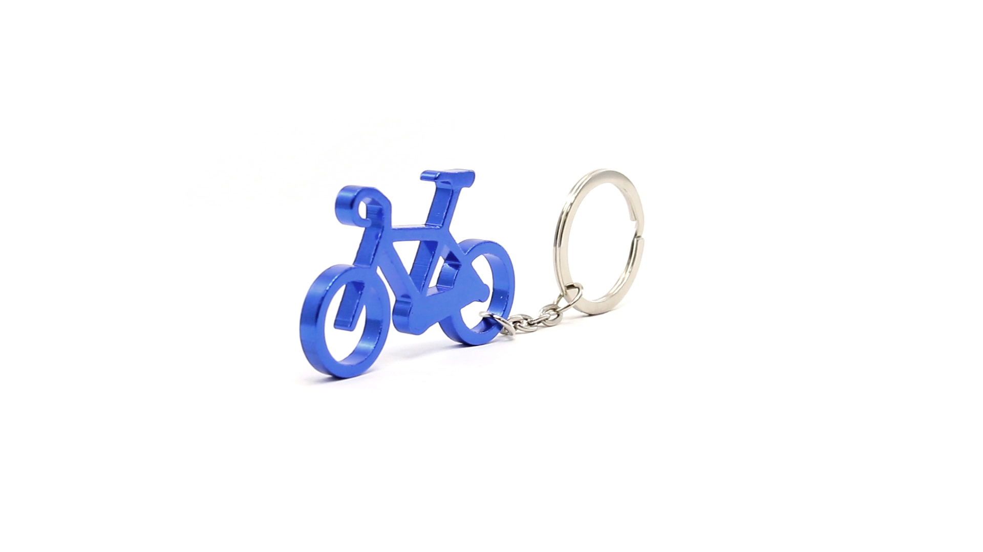 Schlüsselanhänger aus Aluminium mit Fahrrad-Form in verschiedenen lebendigen Farben. Speziell für den Laserdruck entwickelt.
