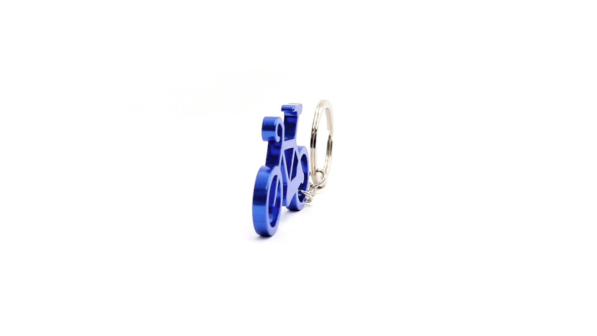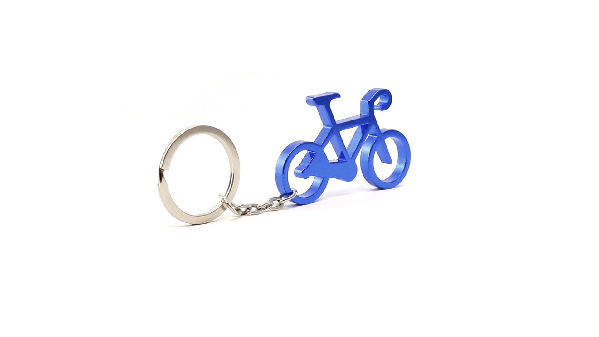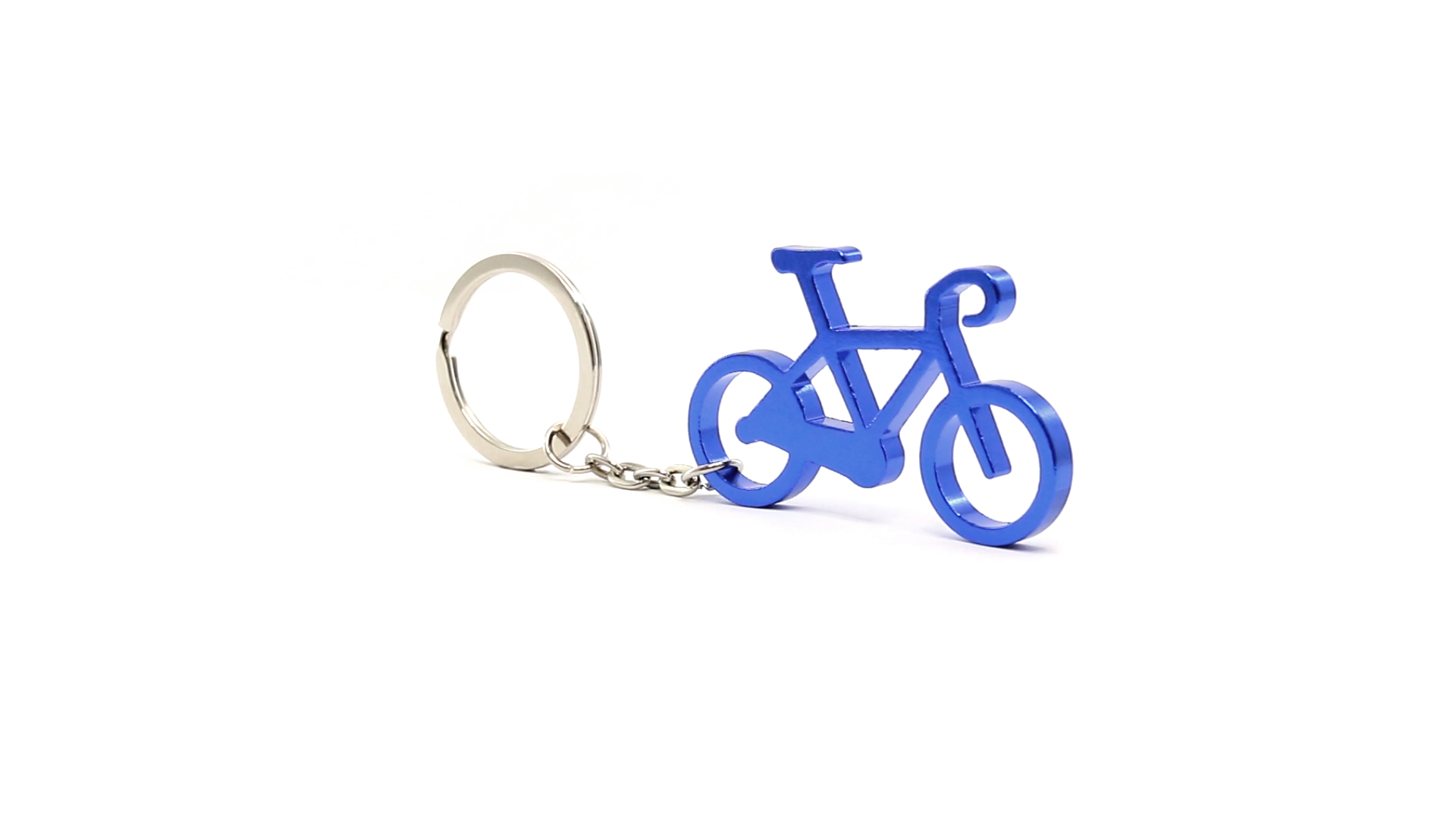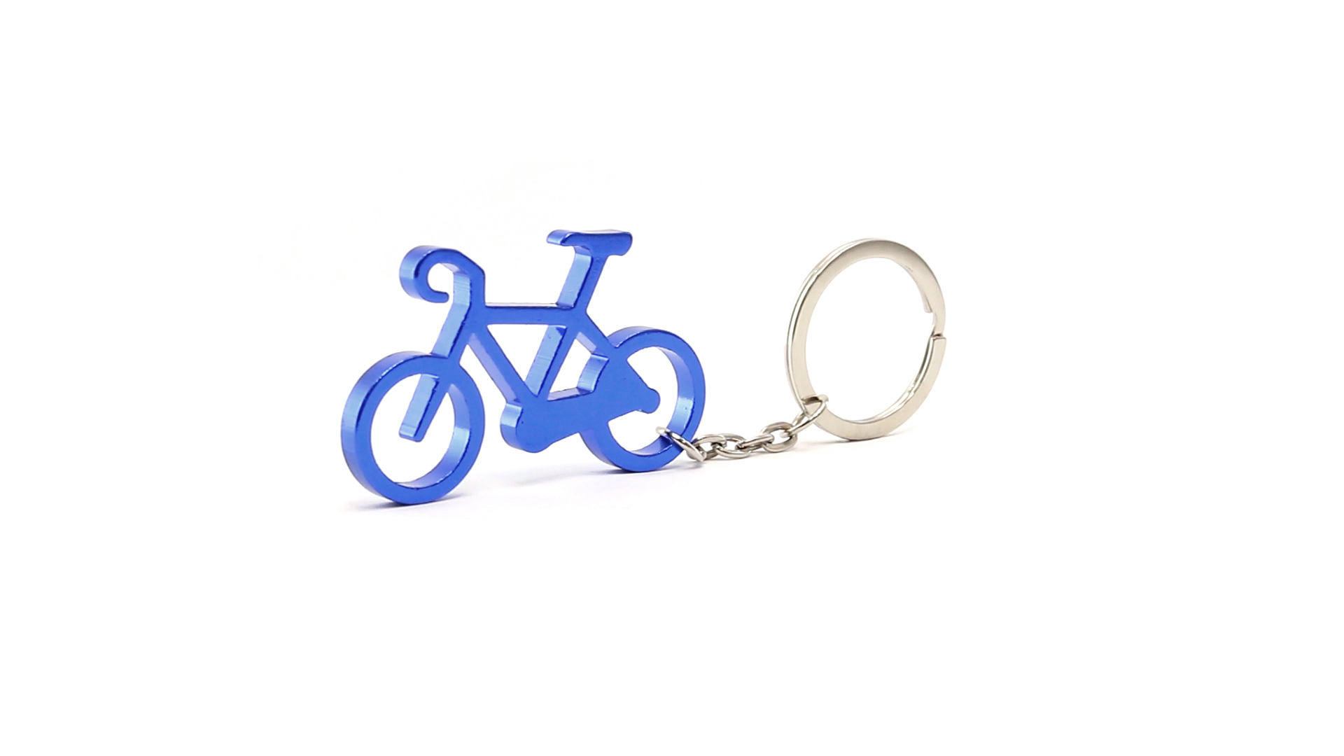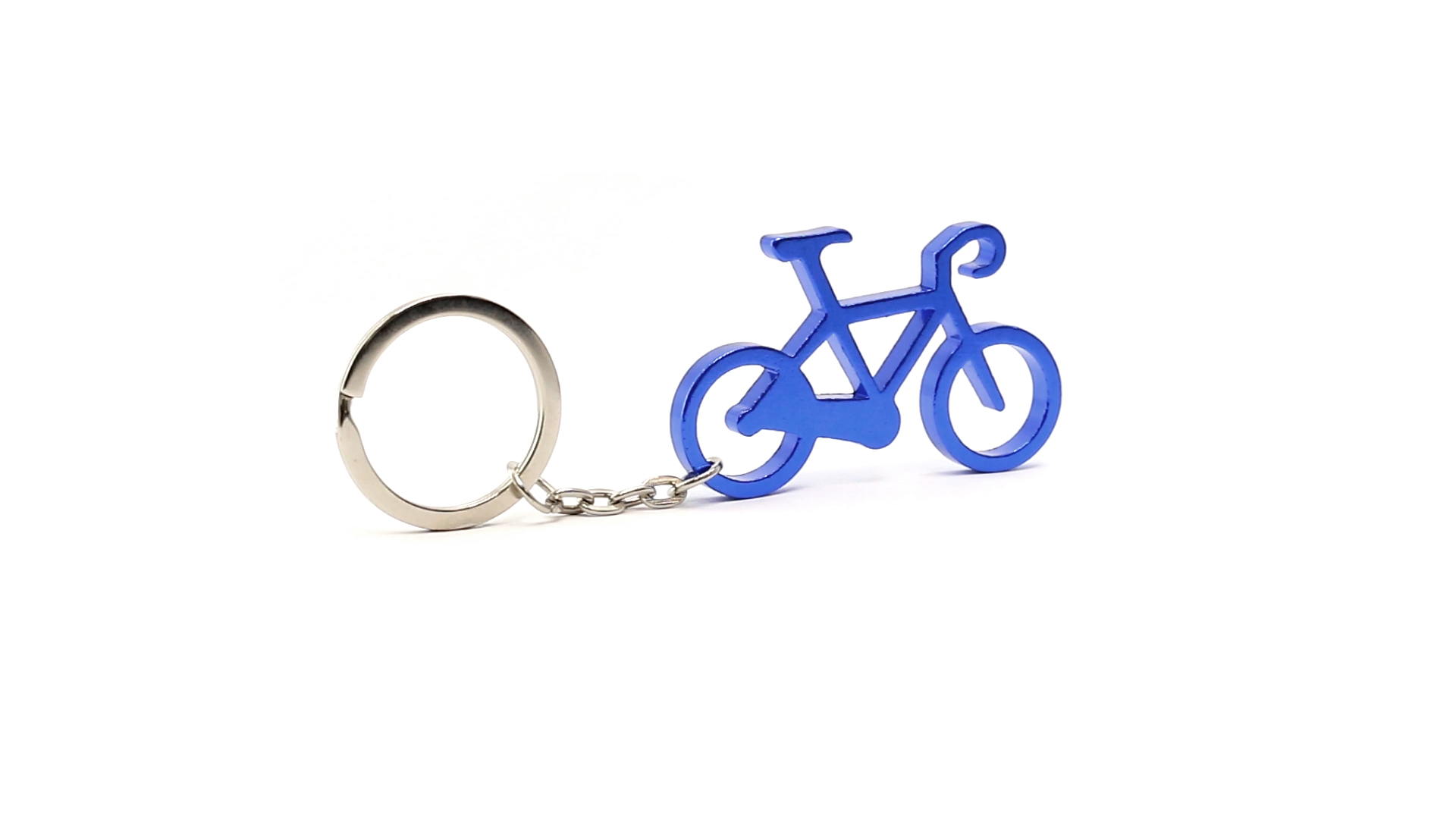 Schlüsselanhänger aus Aluminium mit Fahrrad-Form in verschiedenen lebendigen Farben. Speziell für den Laserdruck entwickelt.