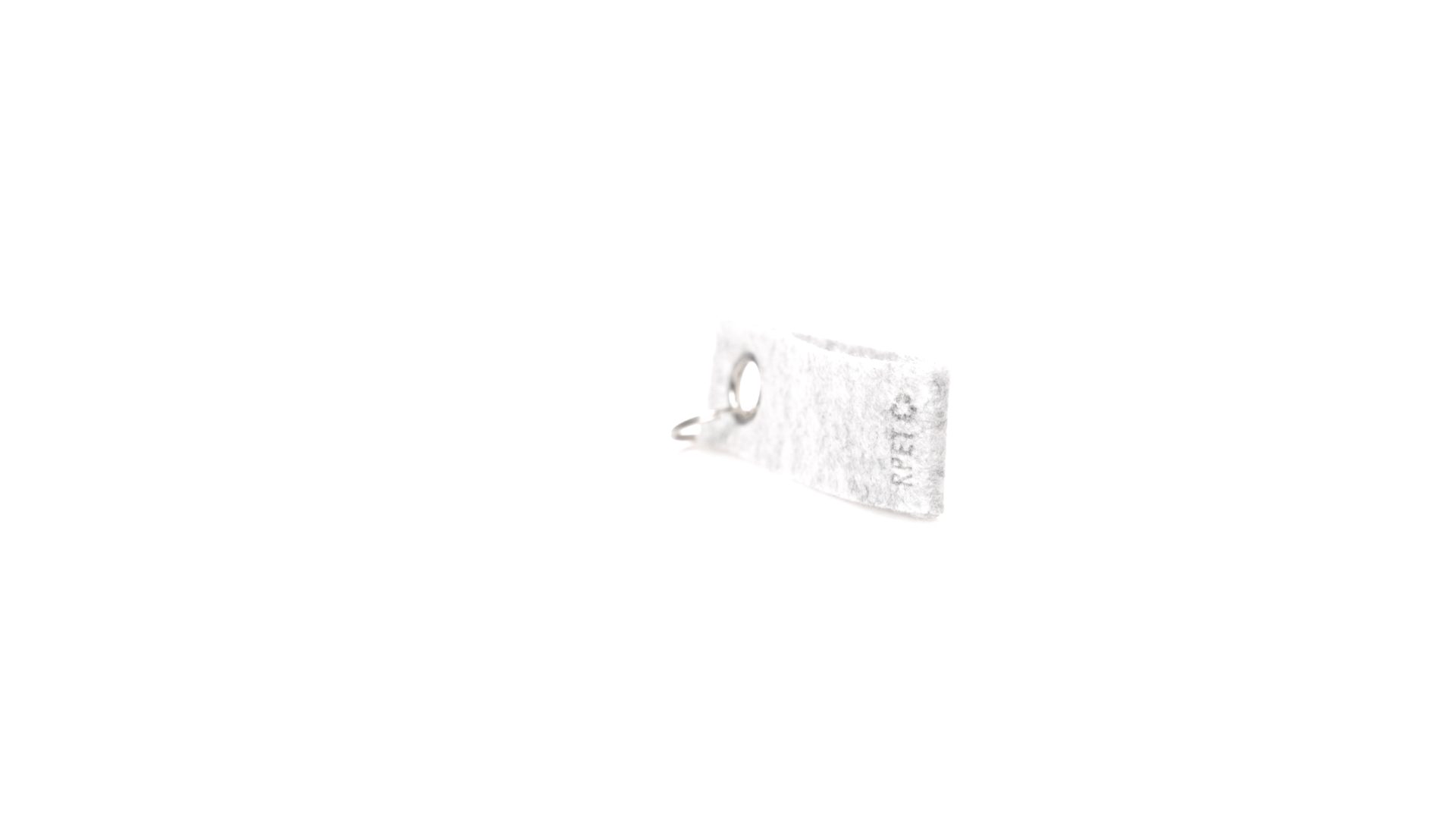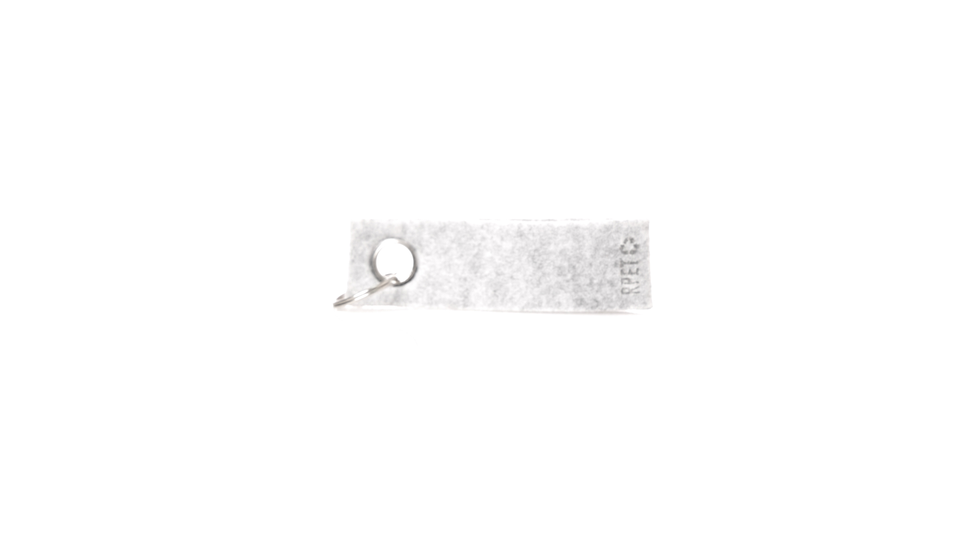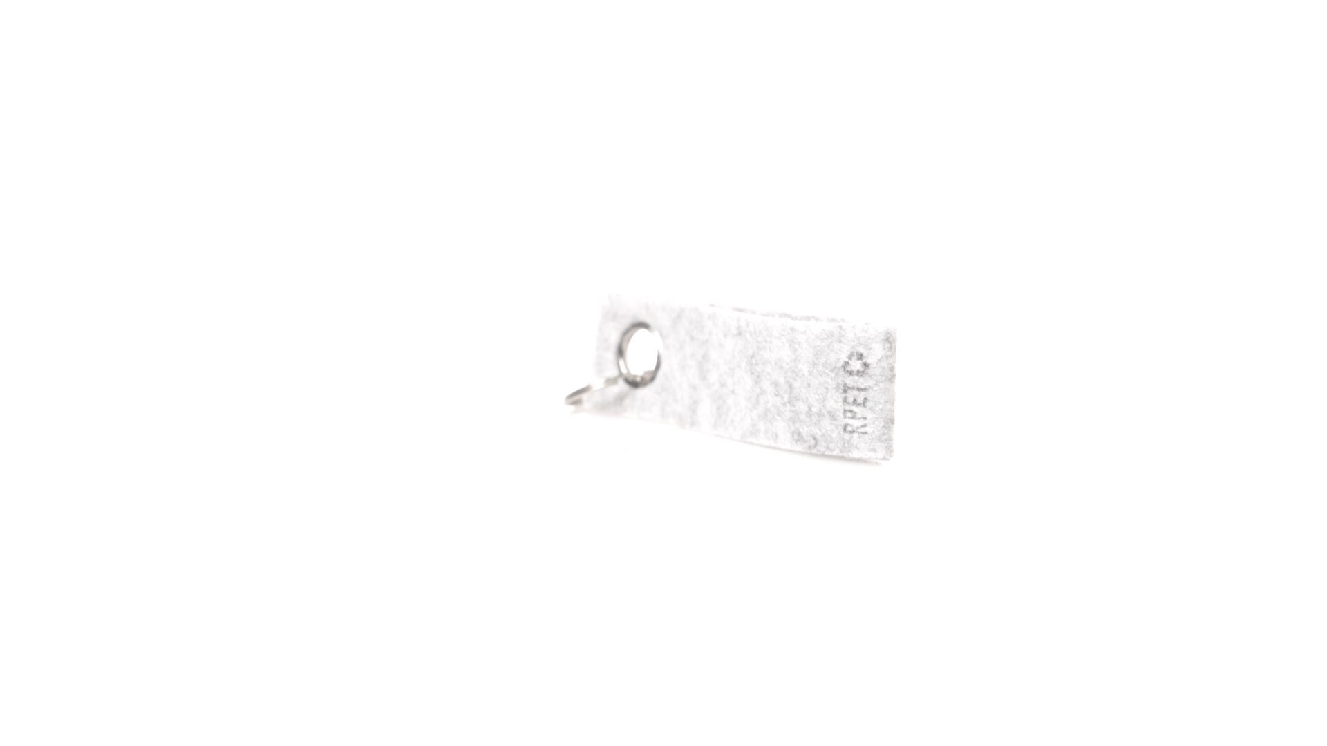 Eleganter Schlüsselanhänger mit Filz-RPET-Band und verchromter Metallöse. Mit dem unverwechselbaren Felt RPET auf dem Band und dem verchromten Metallring. Felt RPET ist das Ergebnis der Kombination der Recyclingprozesse von Kunststoffen mit der jahrtausendealten Technik der Filzherstellung, was zu einem Öko-Trend-Material führt, das nicht nur recycelten Ursprungs ist, sondern auch wiederverwertet werden kann.