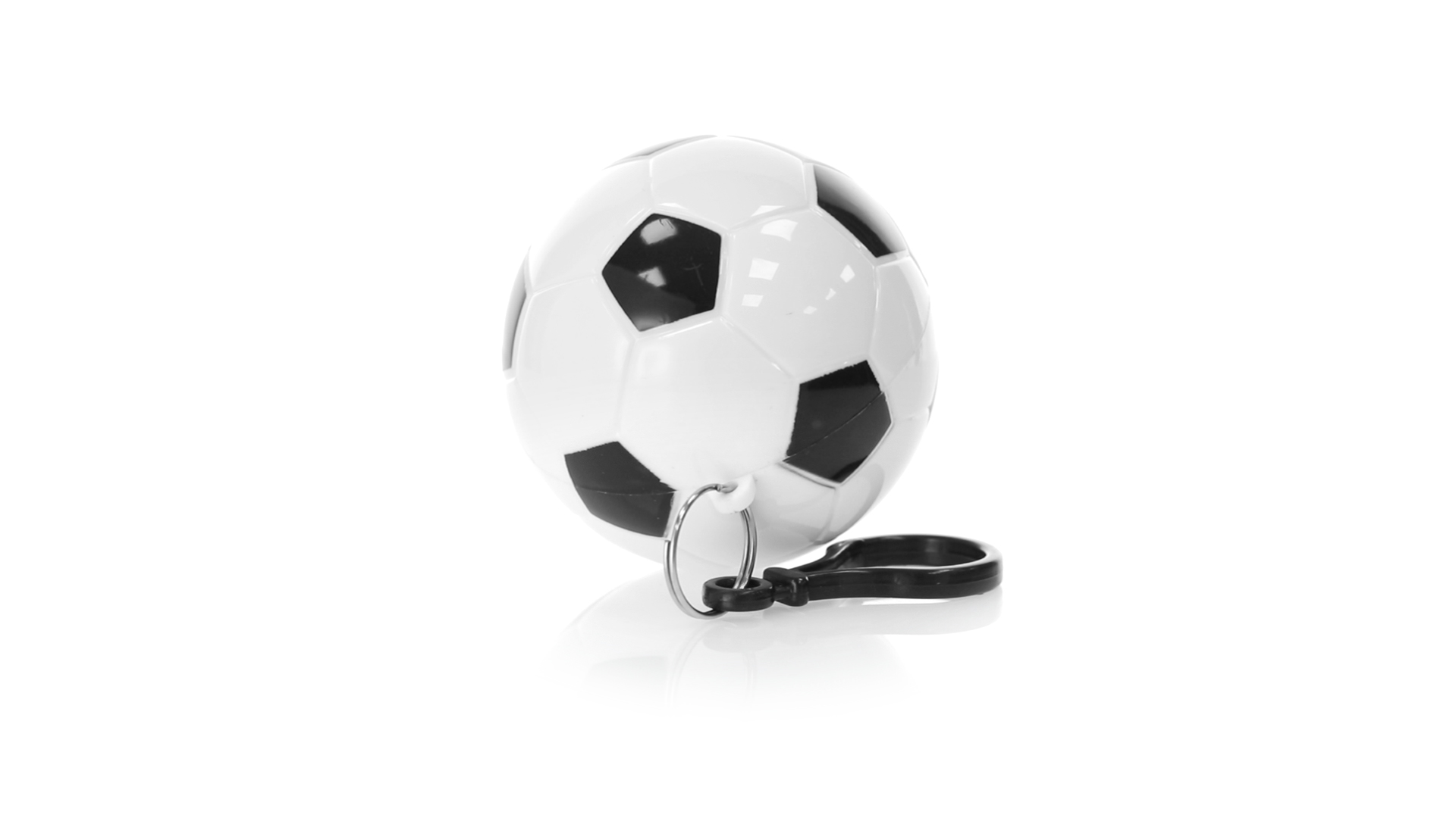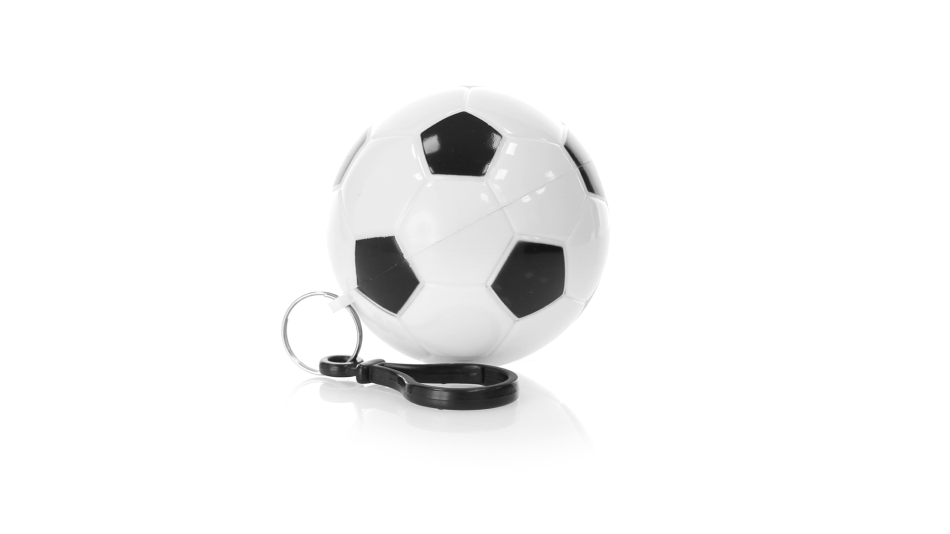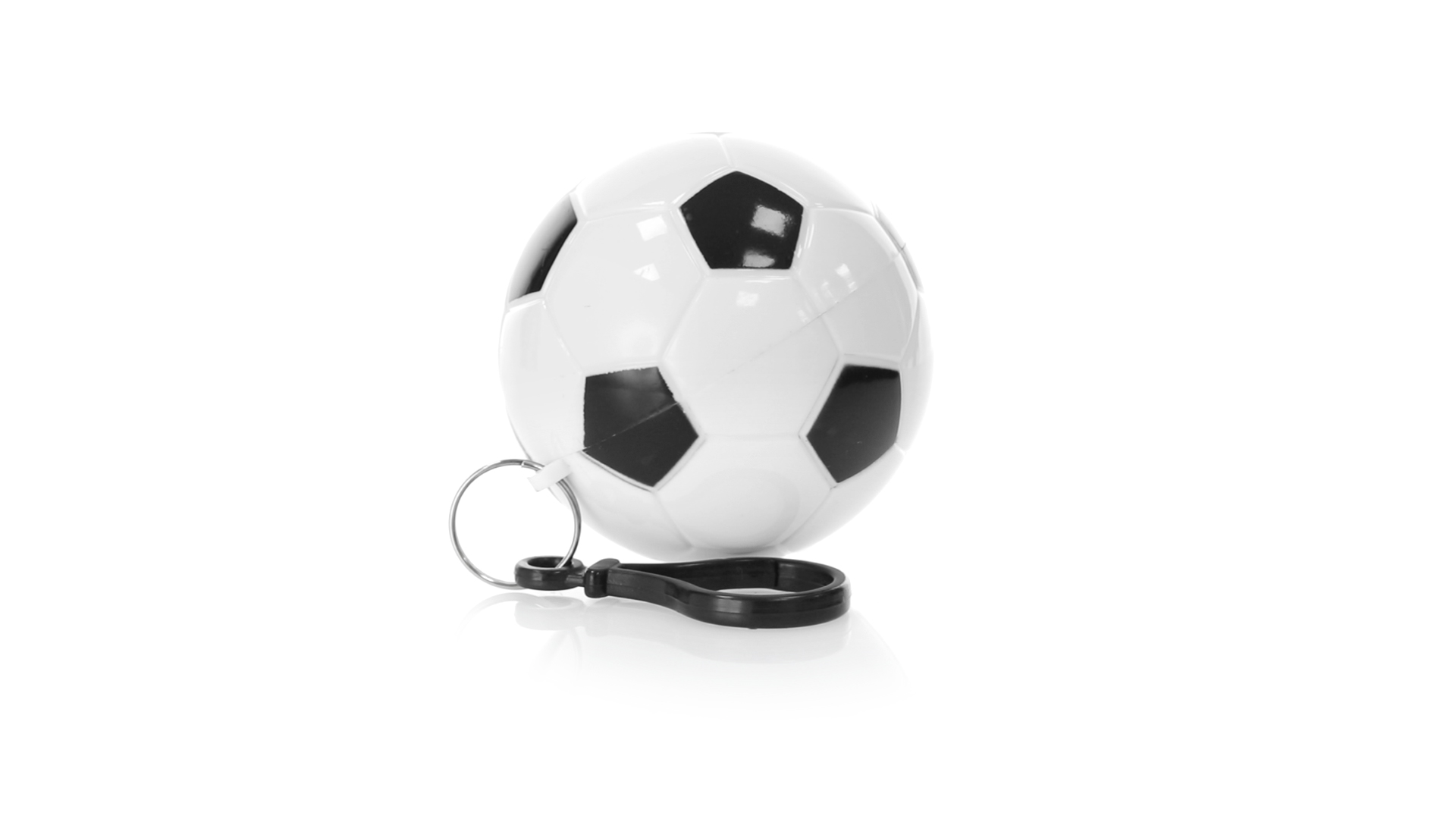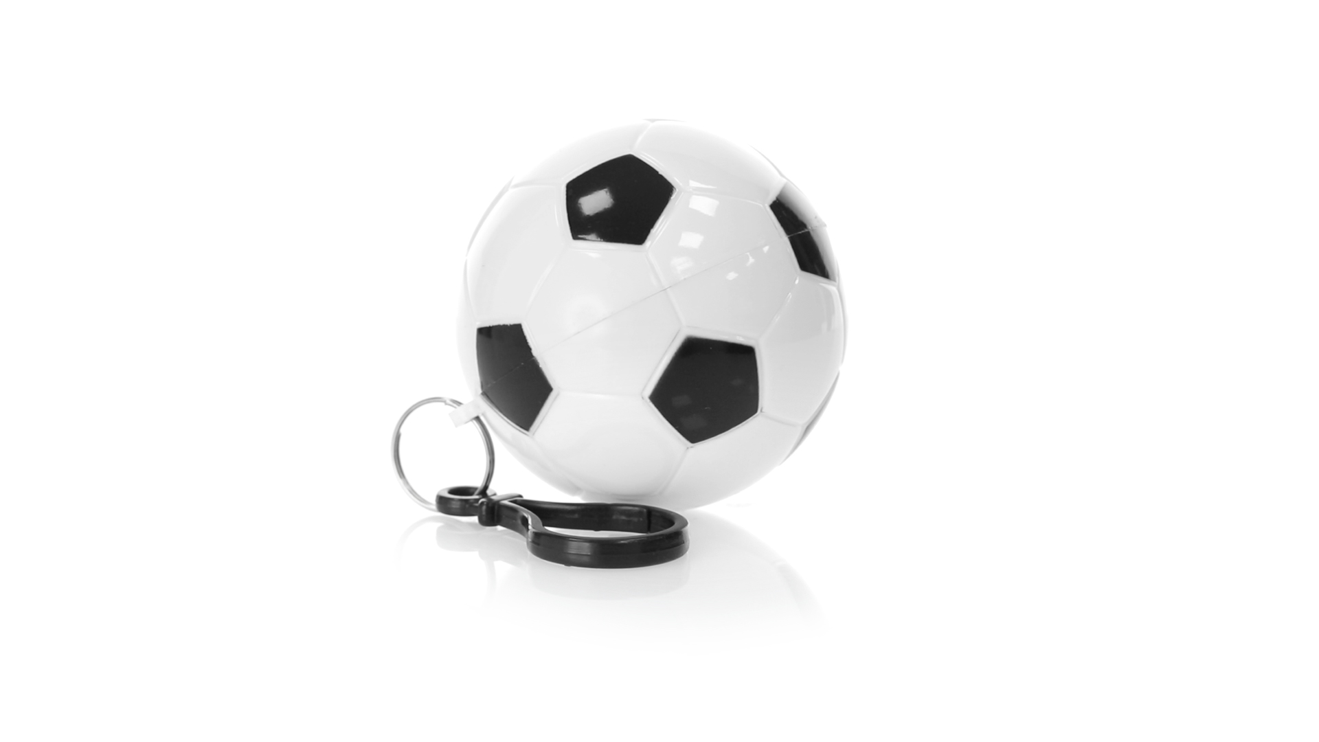 Poncho Schlüsselanhänger mit originellem Fussball-Design. Innenponcho in einer Erwachsenengrösse mit den Massen 120x90cm und aus LDPE. Inklusive Transportkarabiner, mit grosser Markierungsfläche