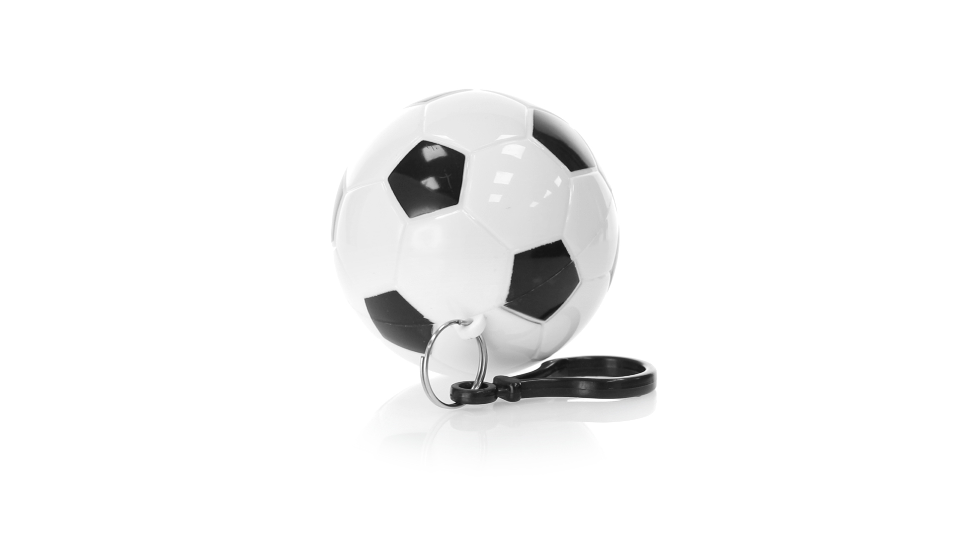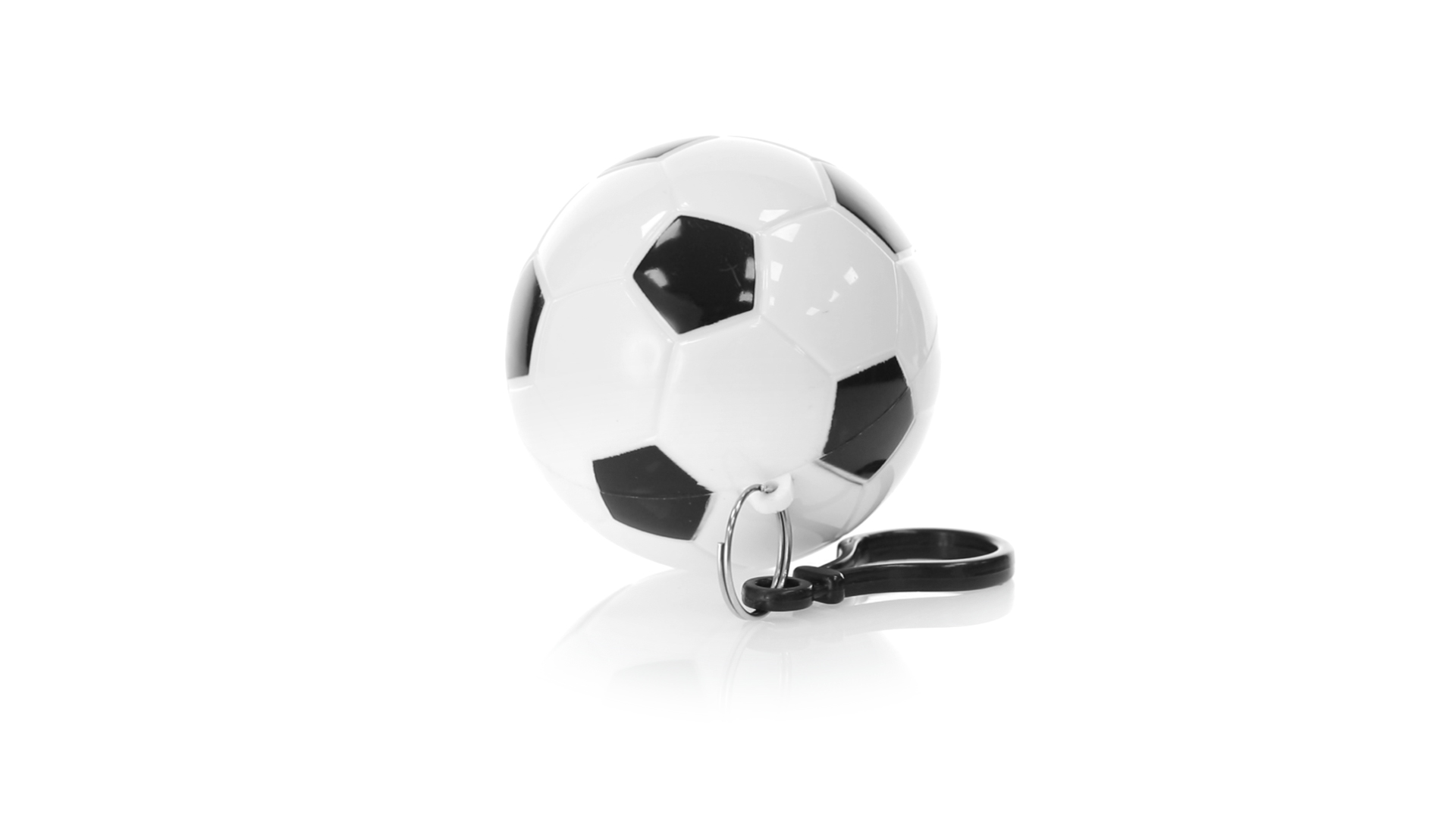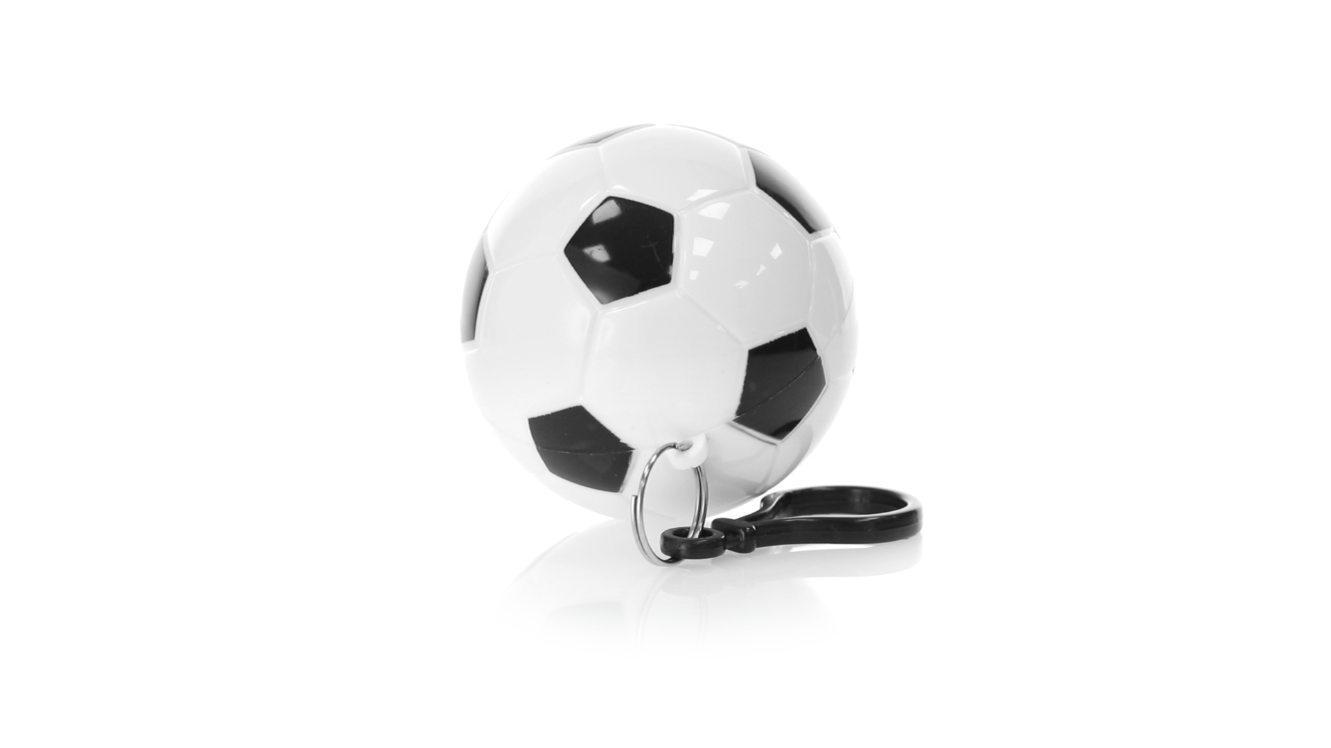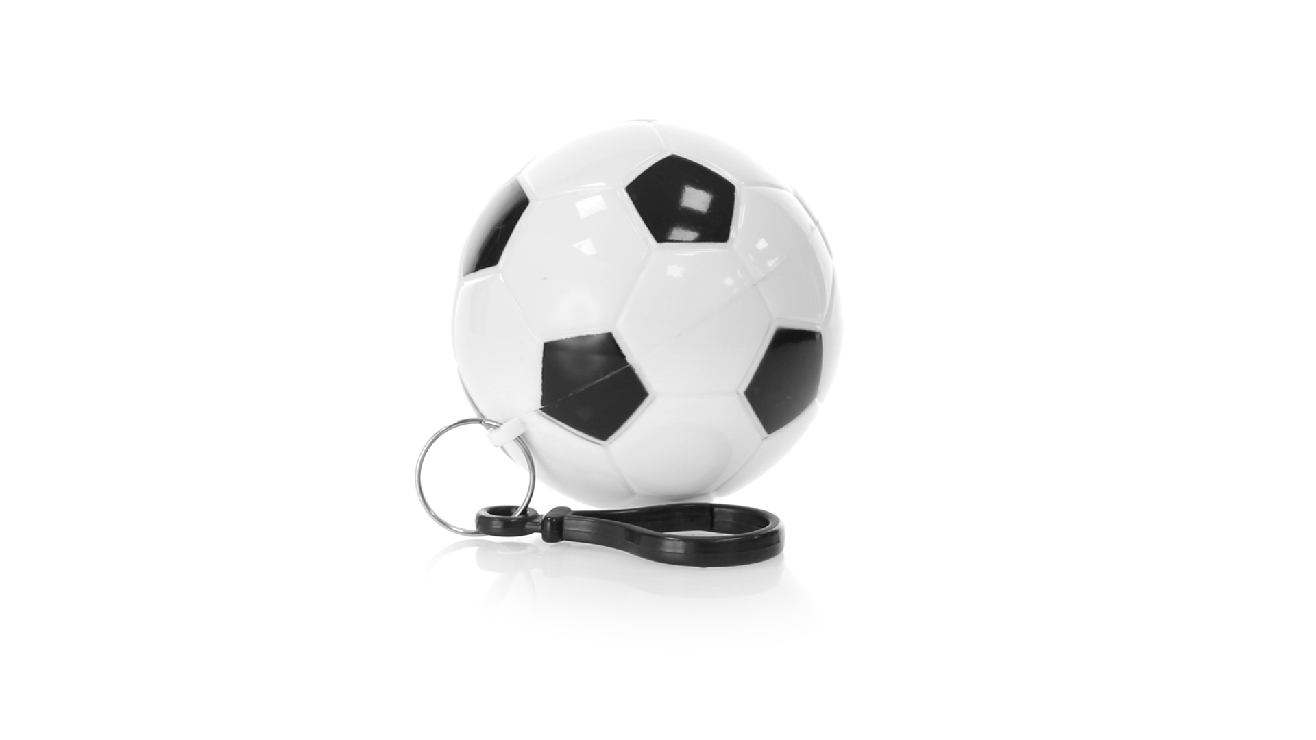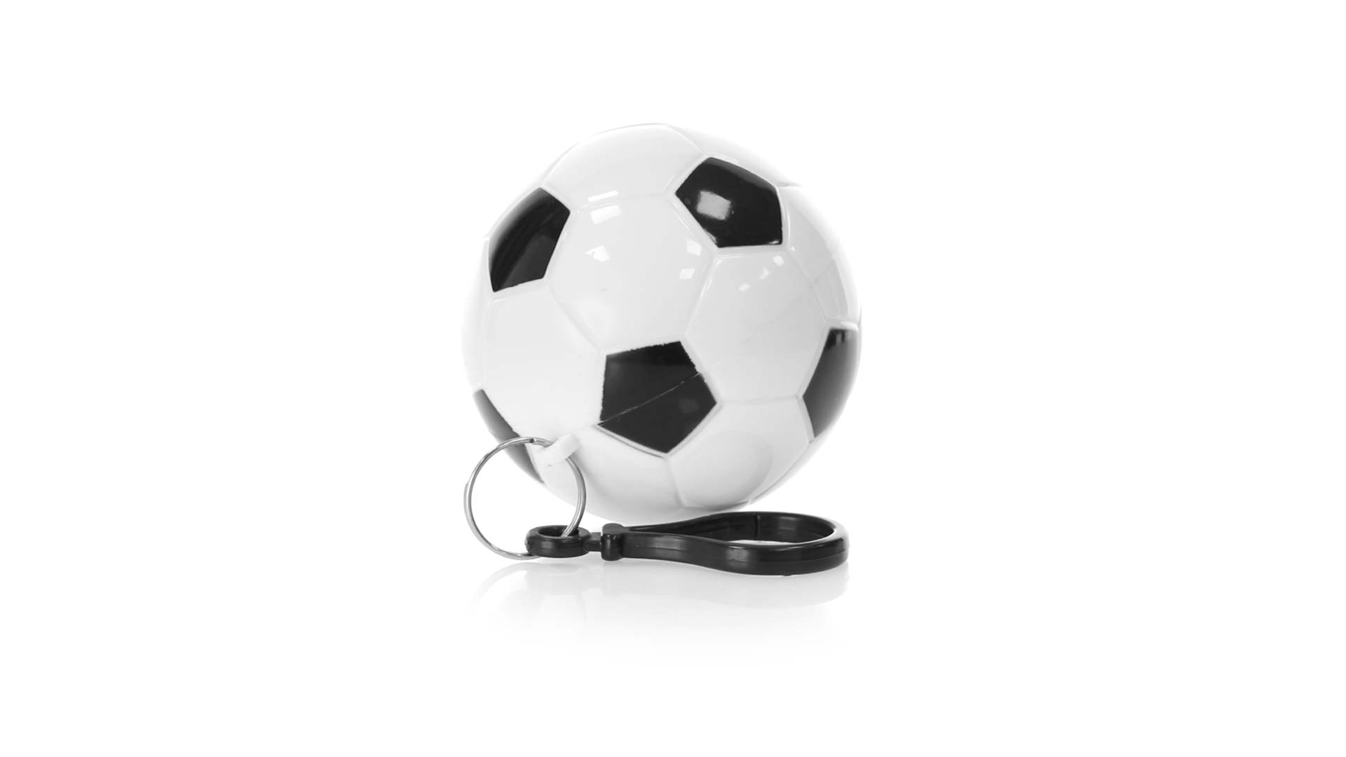 Poncho Schlüsselanhänger mit originellem Fussball-Design. Innenponcho in einer Erwachsenengrösse mit den Massen 120x90cm und aus LDPE. Inklusive Transportkarabiner, mit grosser Markierungsfläche