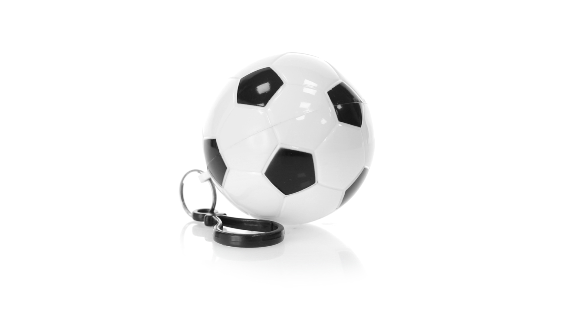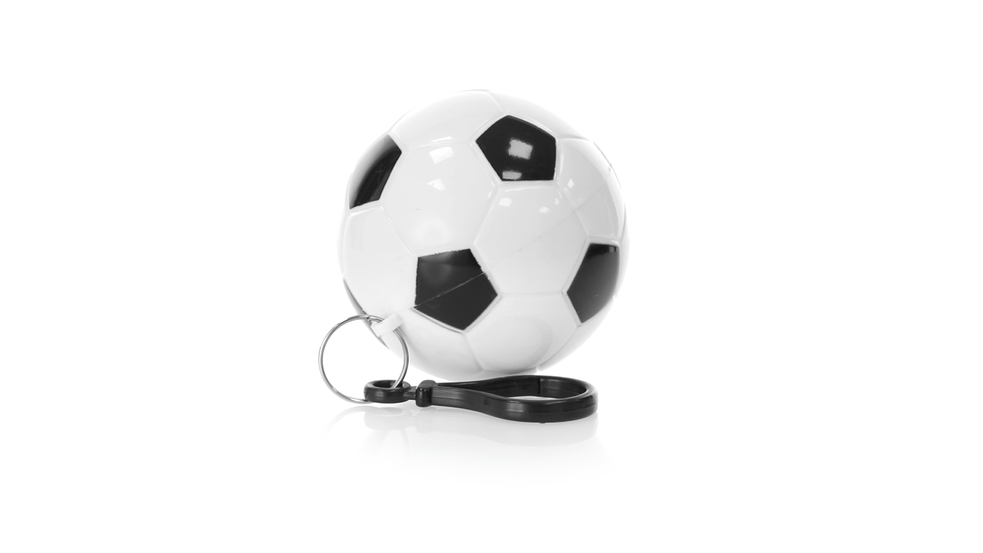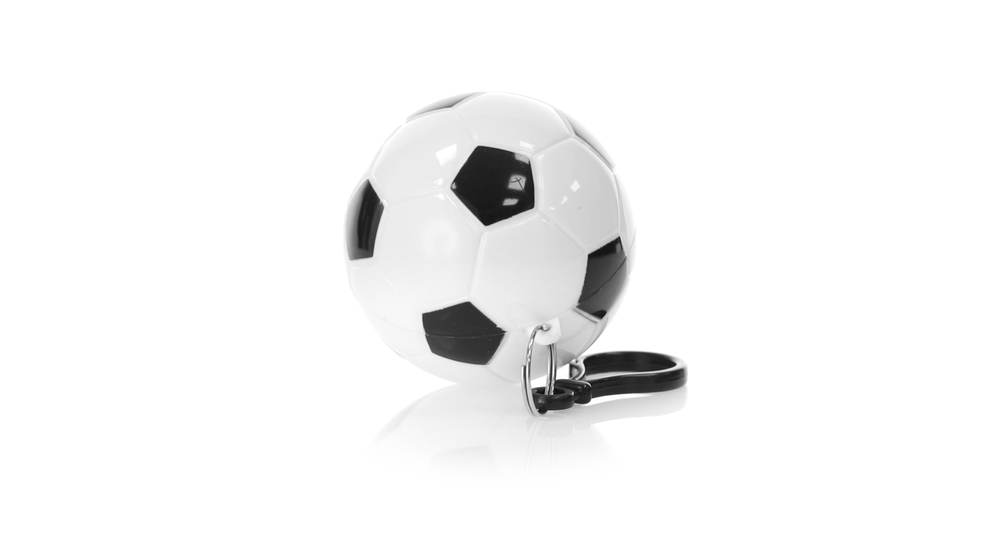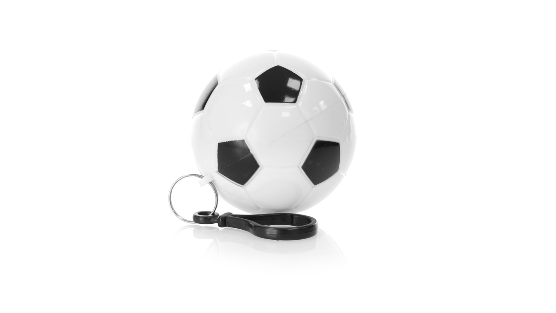 Poncho Schlüsselanhänger mit originellem Fussball-Design. Innenponcho in einer Erwachsenengrösse mit den Massen 120x90cm und aus LDPE. Inklusive Transportkarabiner, mit grosser Markierungsfläche