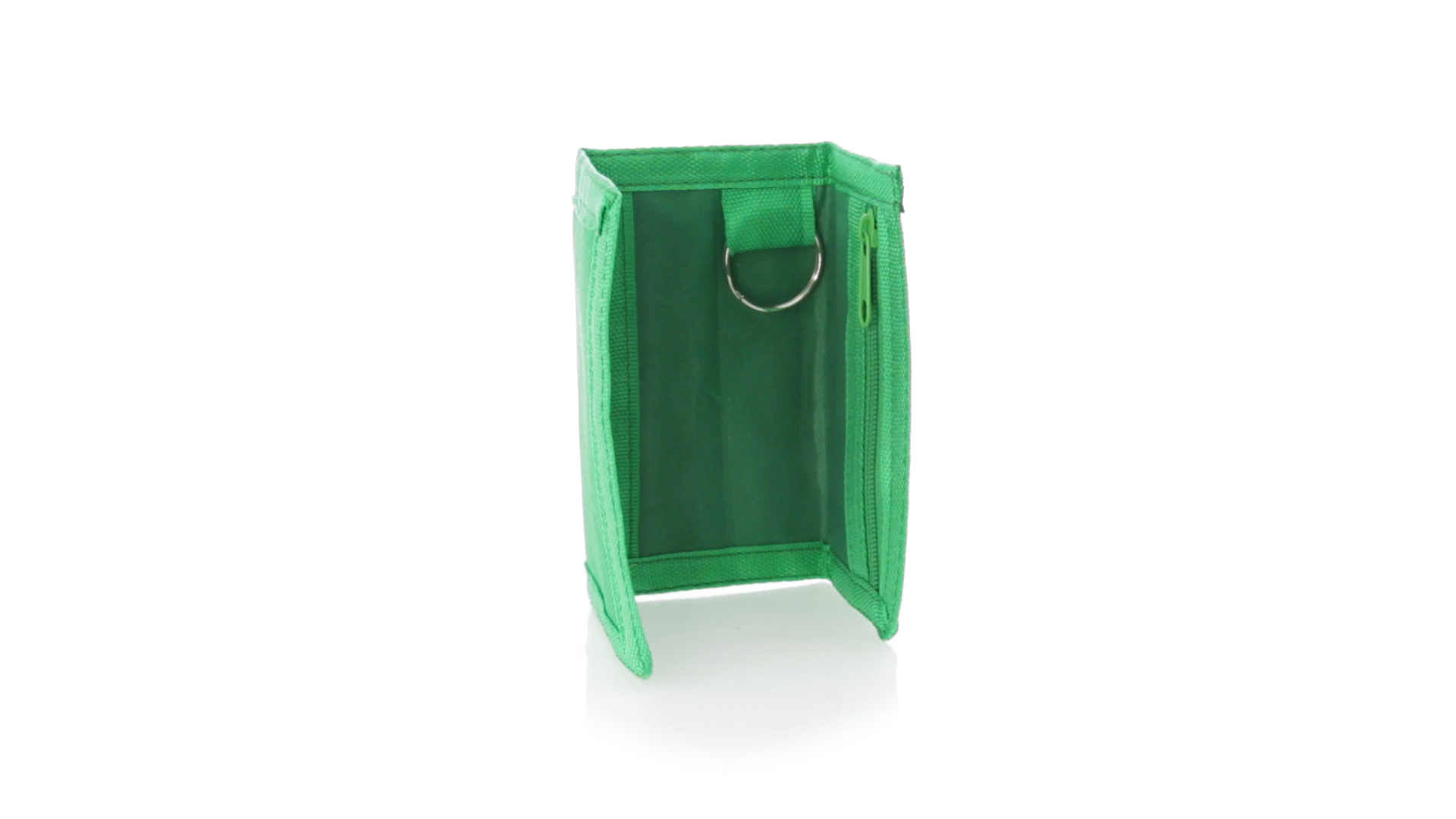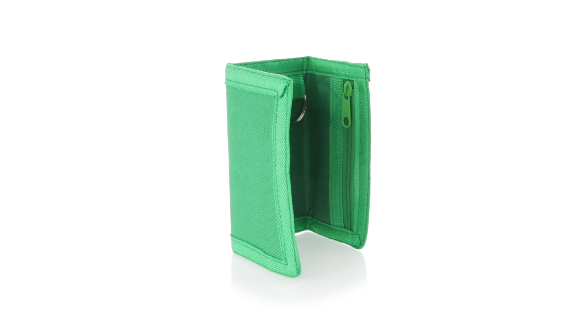 Geldbörse aus 600D Polyester in lebendigen Farben. Mit Schlüsselring und Klettverschluss. Im Inneren mit Reissverschluss-Münzfach und Kartenfach.
