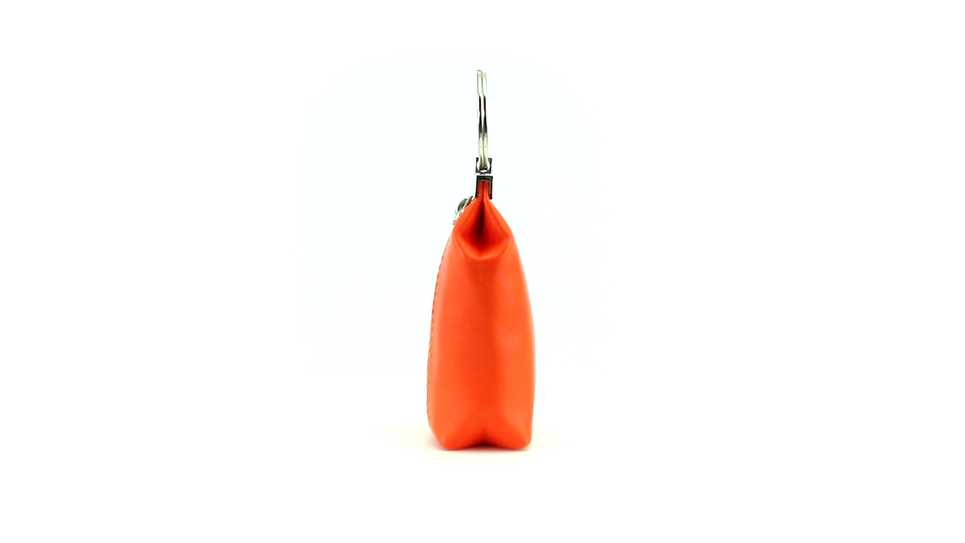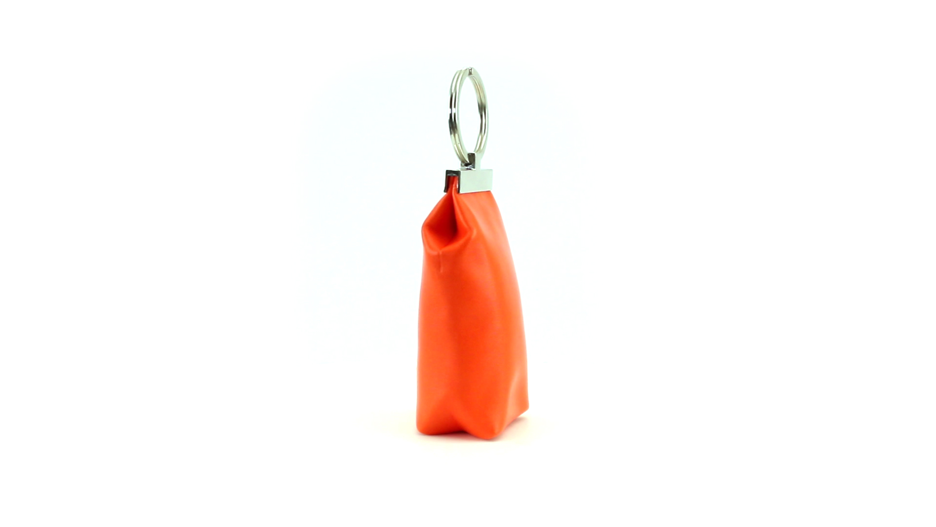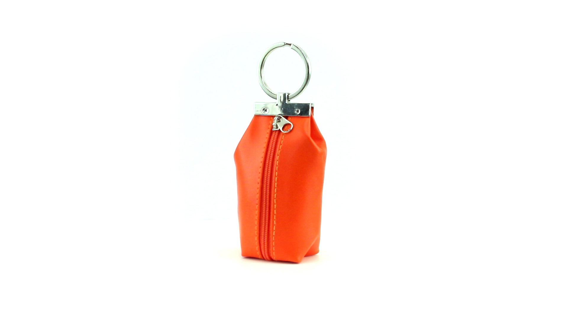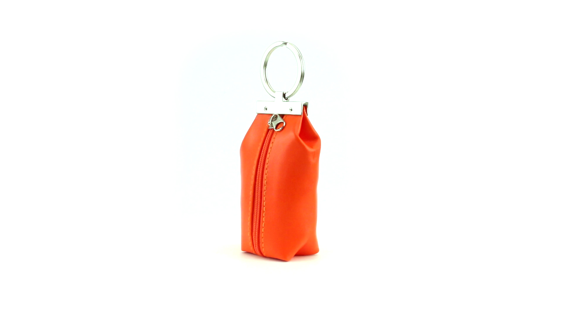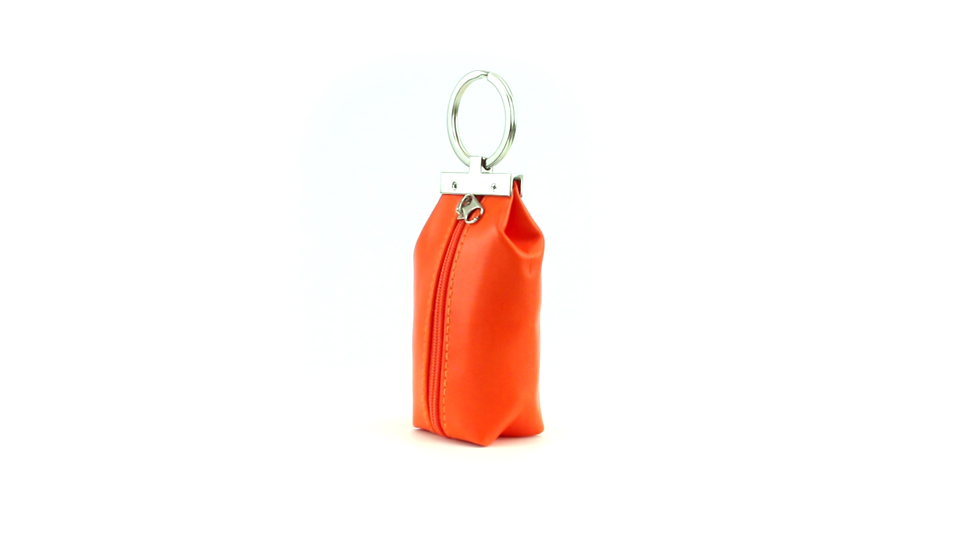 Originelle Schlüsselanhänger-Geldbörse aus weichem Kunstleder in verschiedenen kräftigen Farben. Hauptfach mit passendem Reissverschluss und Verstärkung für den Schlüsselring.