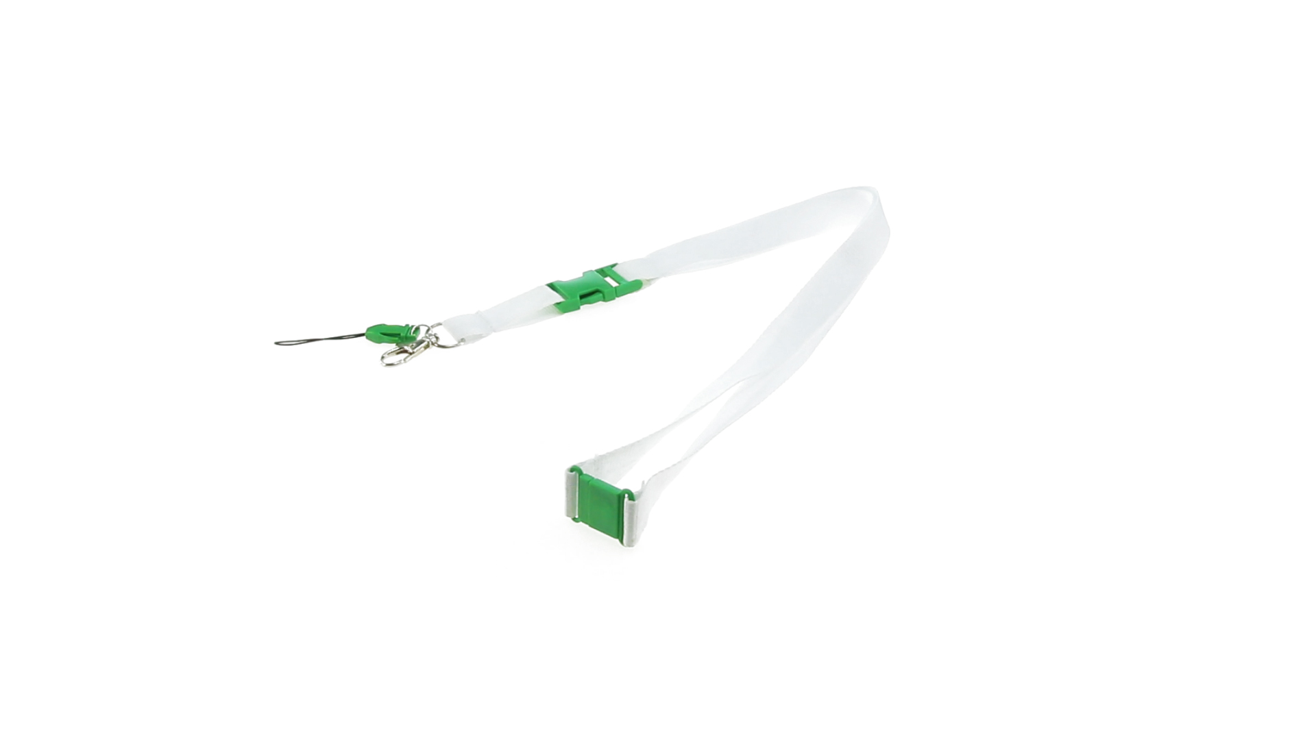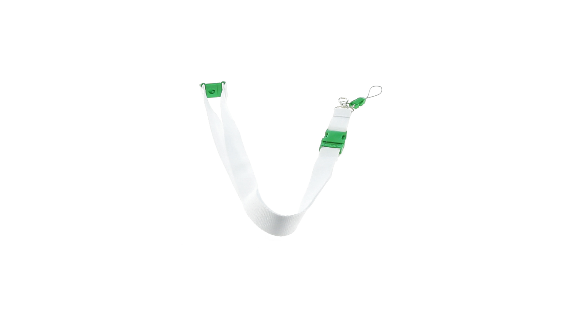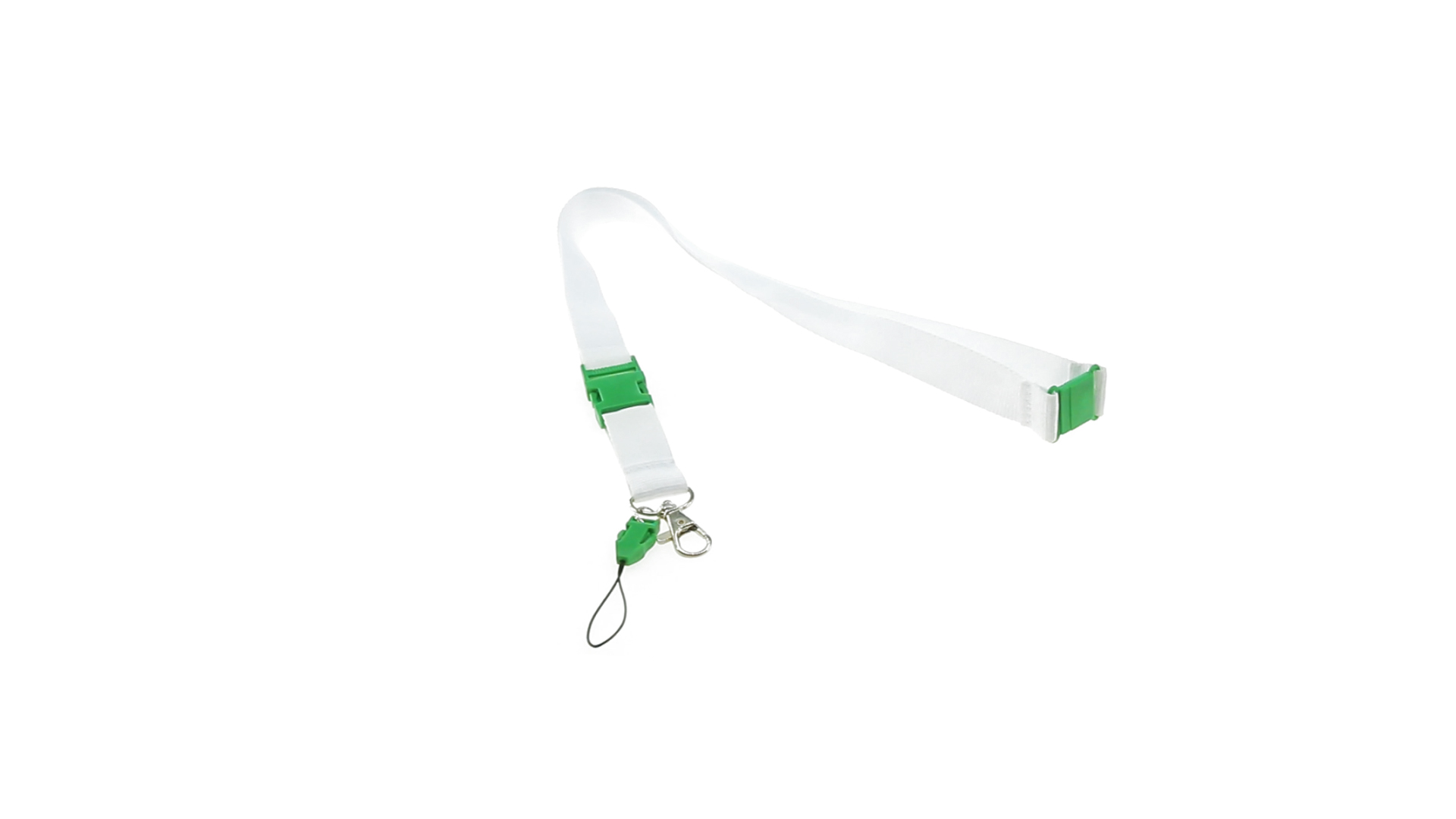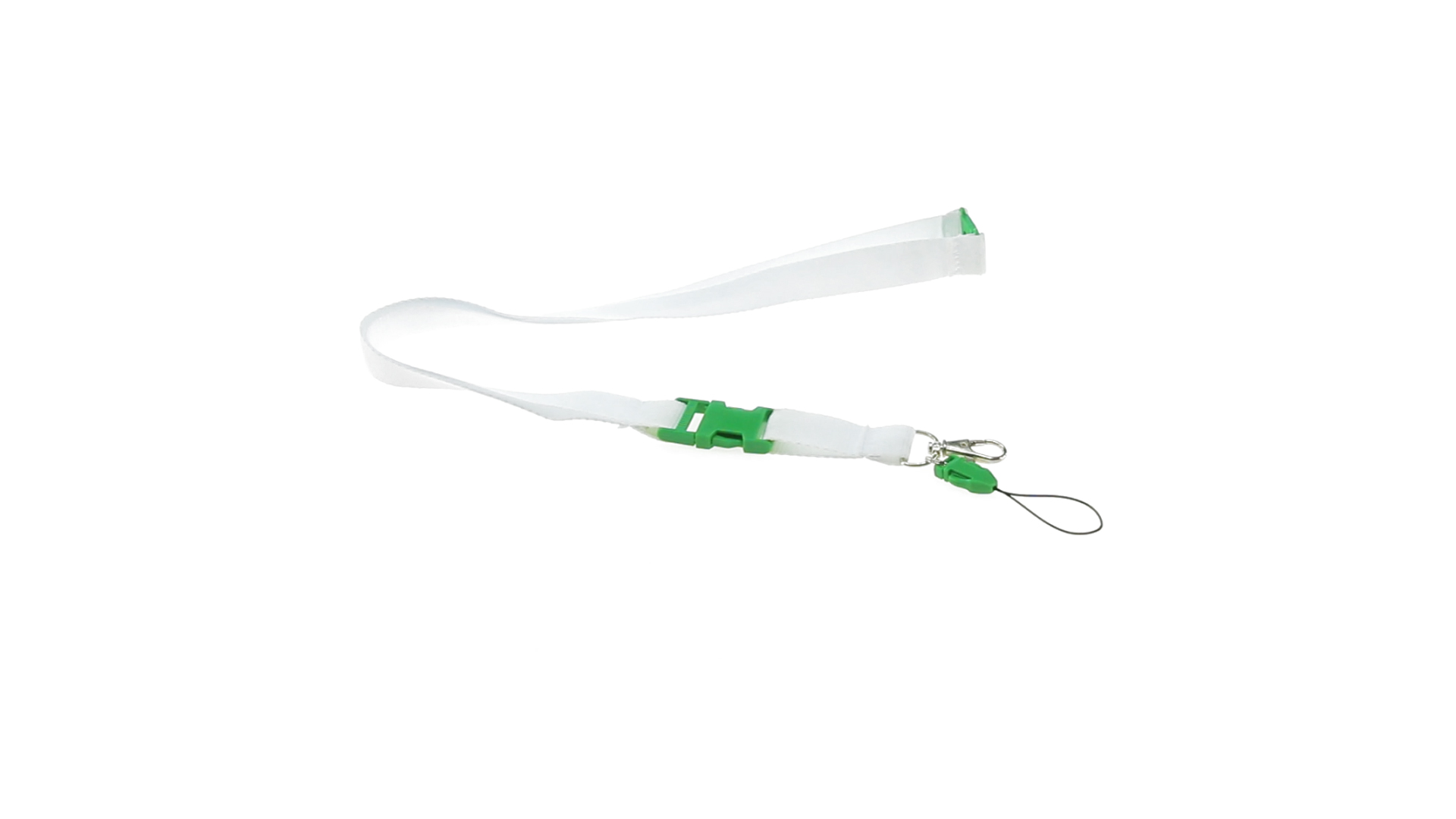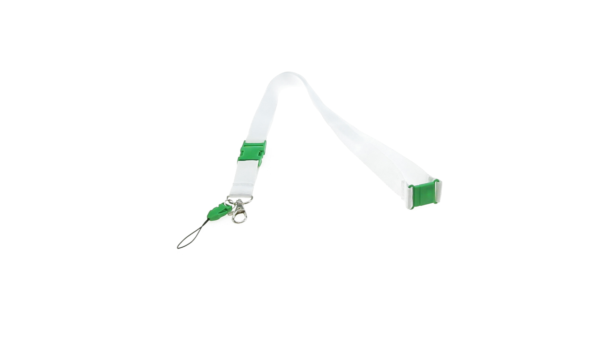 Lanyard aus resistentem, weichem Polyester in Weiss. Mit farblich passendem Klickverschluss in verschiedenen Farben sowie Metall-Karabiner und Schlaufe mit farblich passendem Klickverschluss. Speziell für den Sublimationsdruck entwickelt.