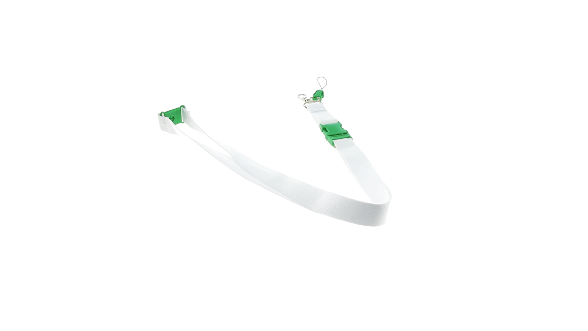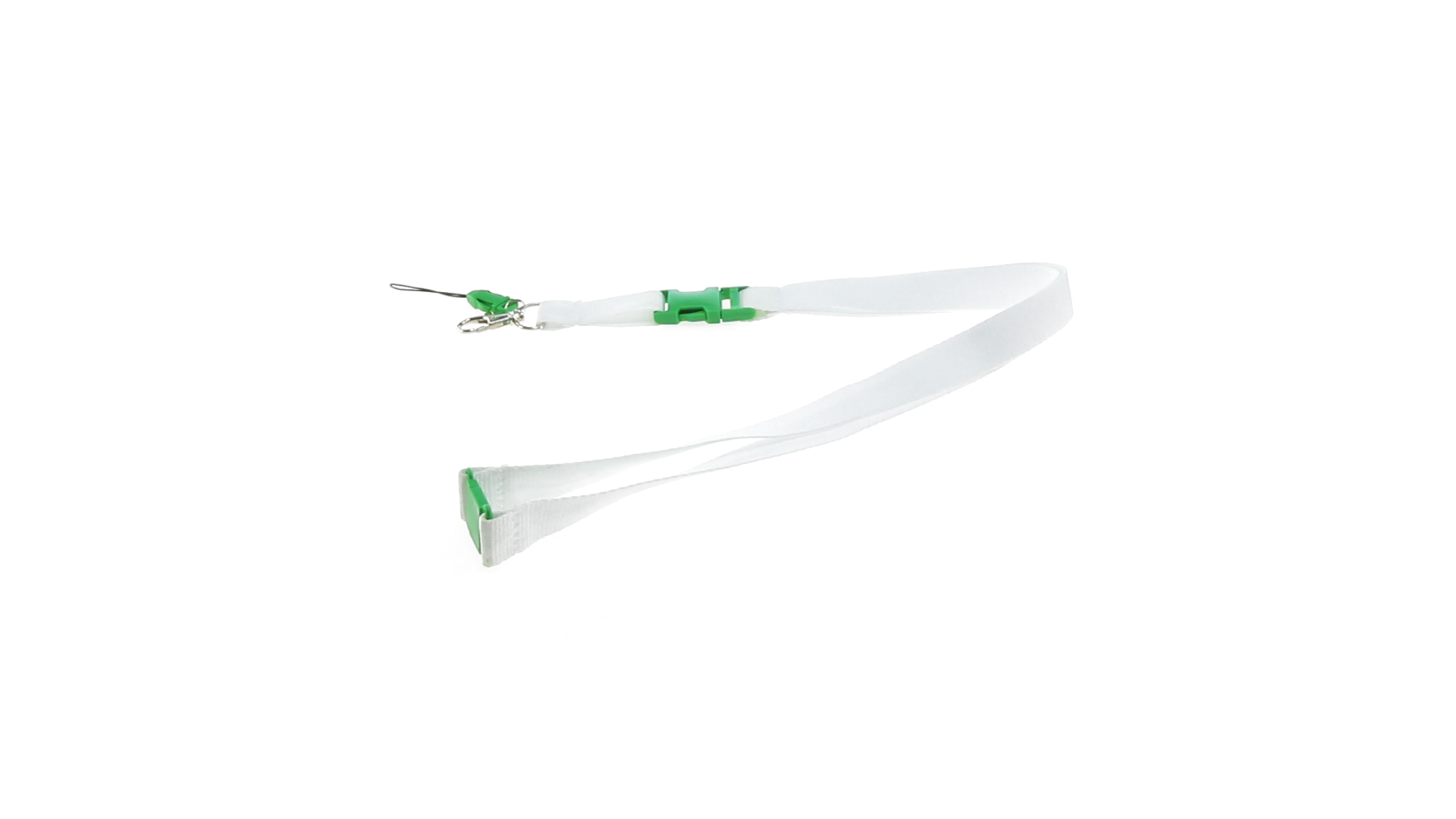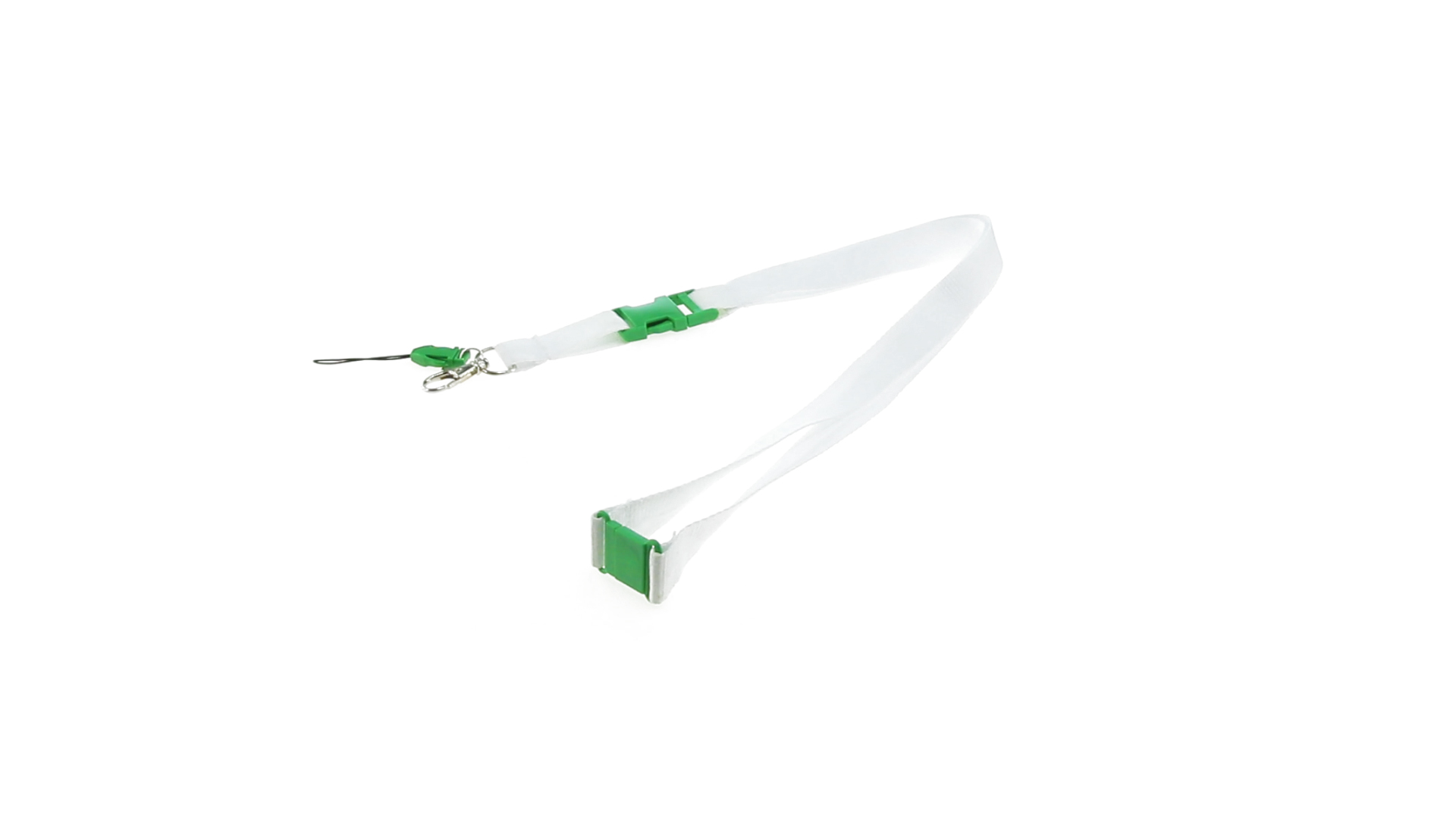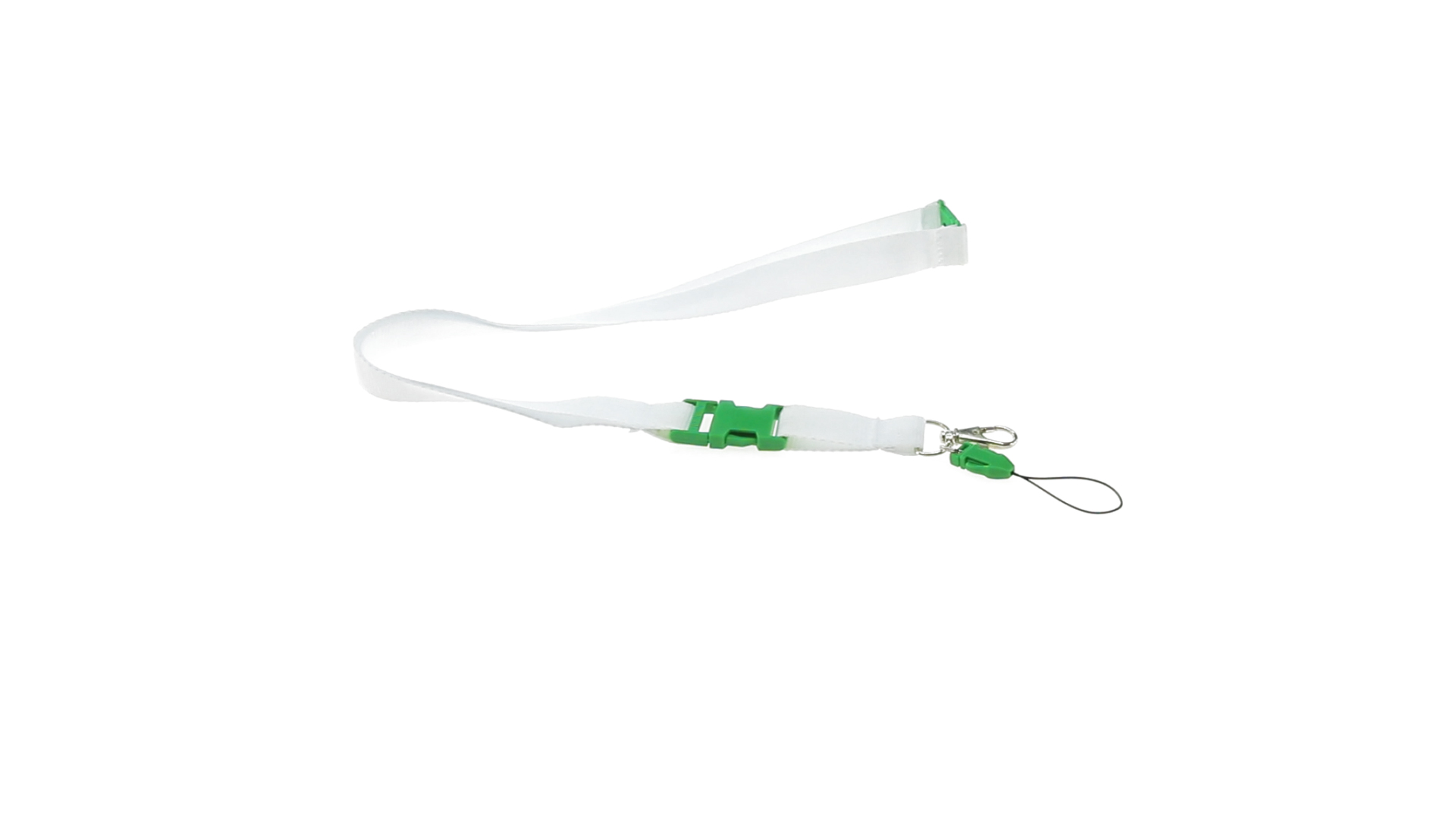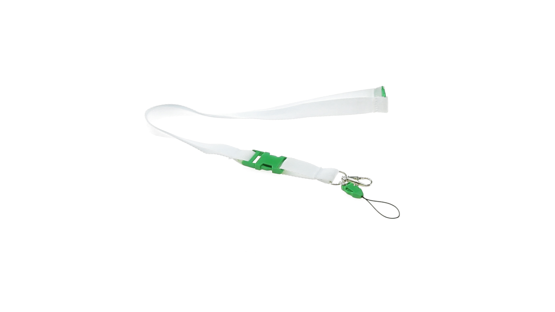 Lanyard aus resistentem, weichem Polyester in Weiss. Mit farblich passendem Klickverschluss in verschiedenen Farben sowie Metall-Karabiner und Schlaufe mit farblich passendem Klickverschluss. Speziell für den Sublimationsdruck entwickelt.