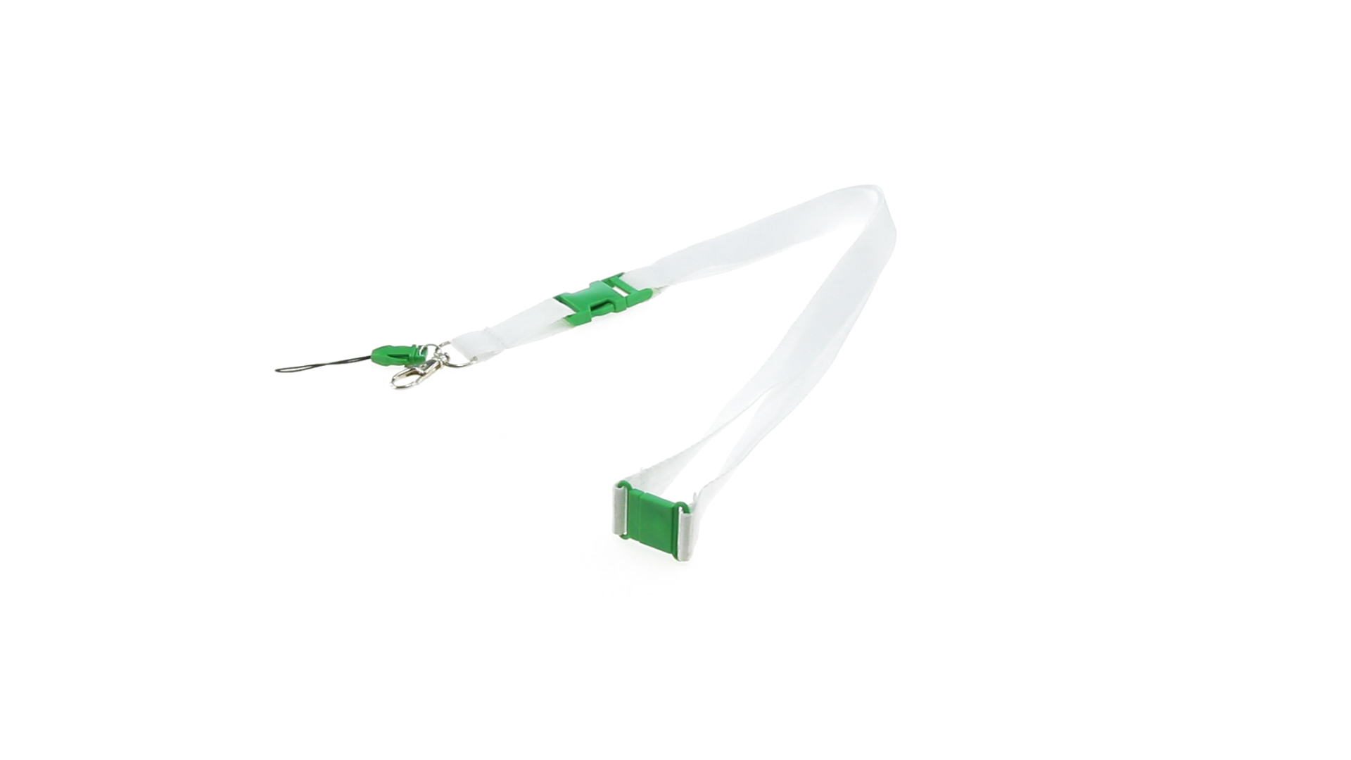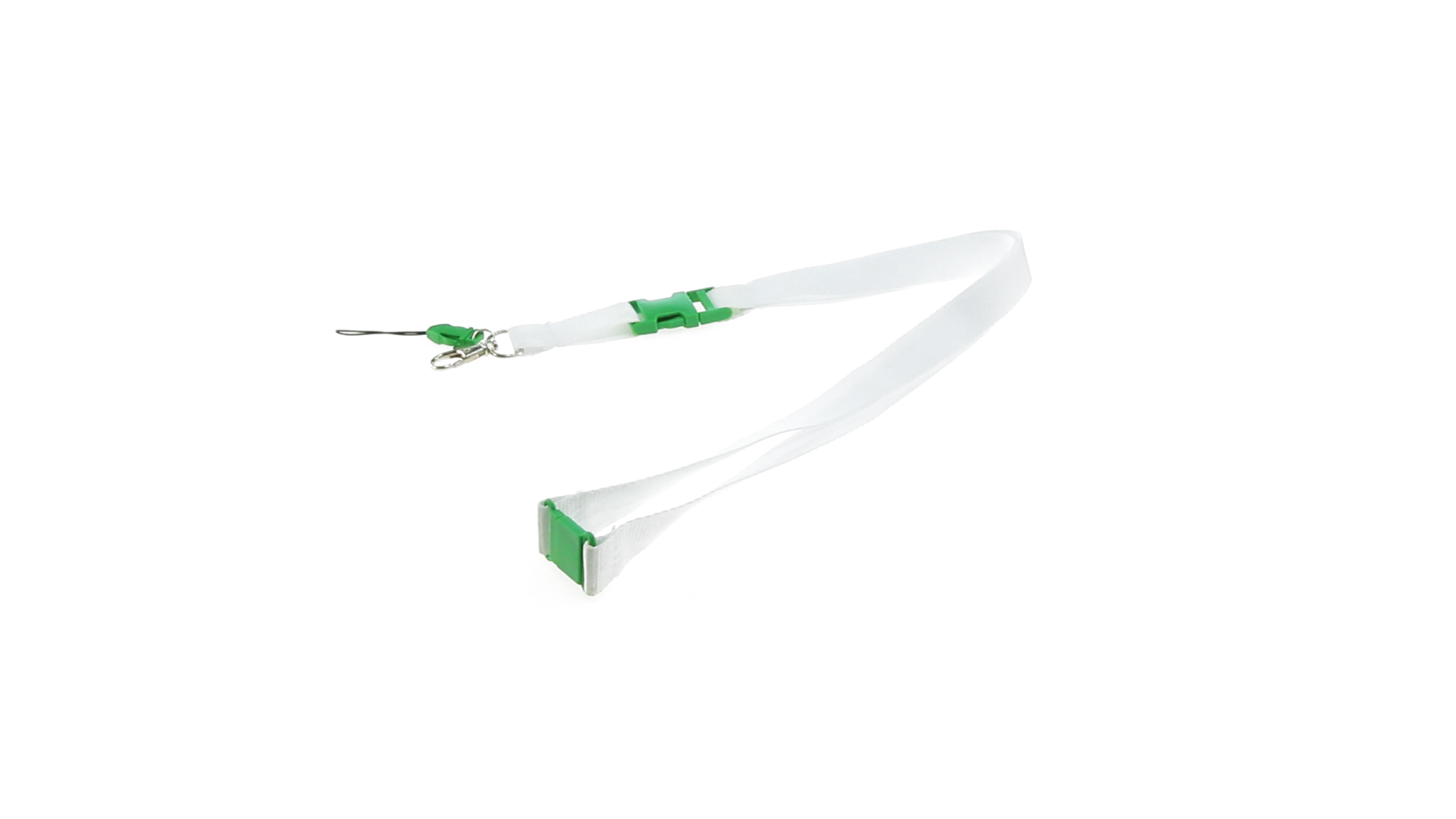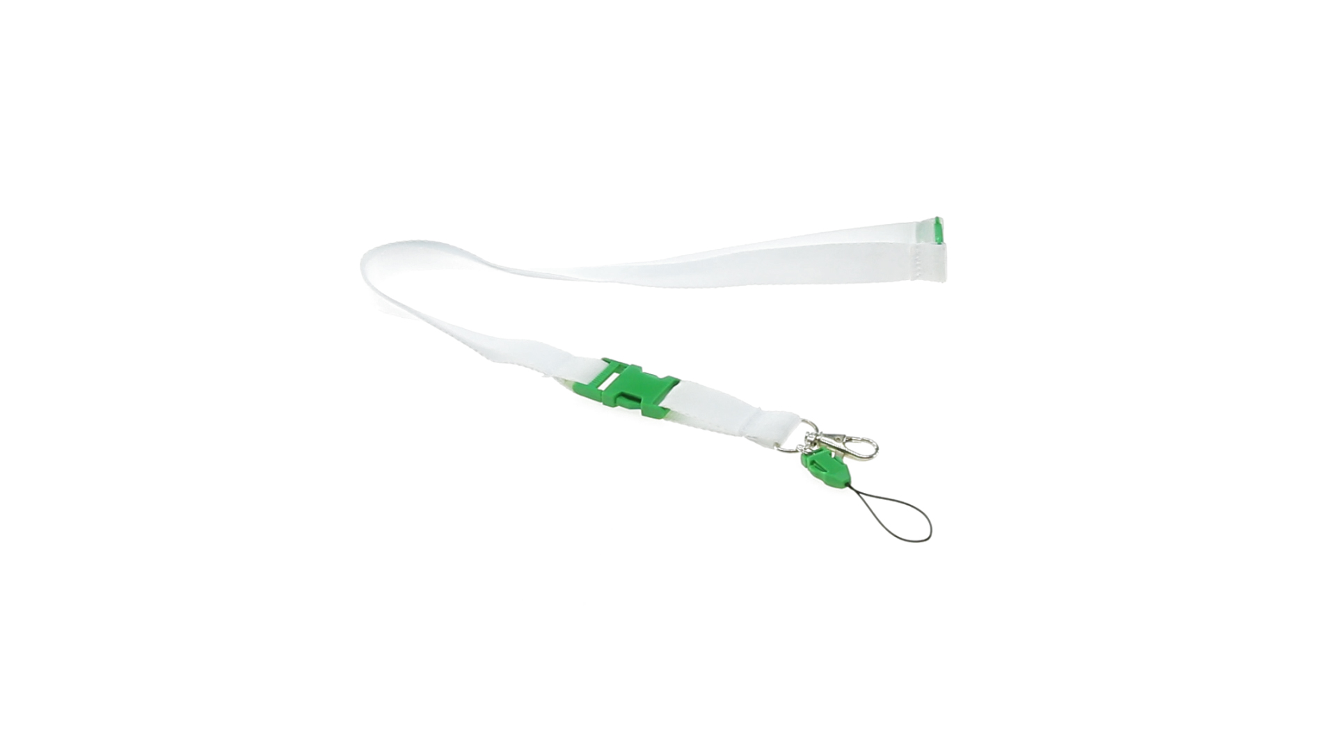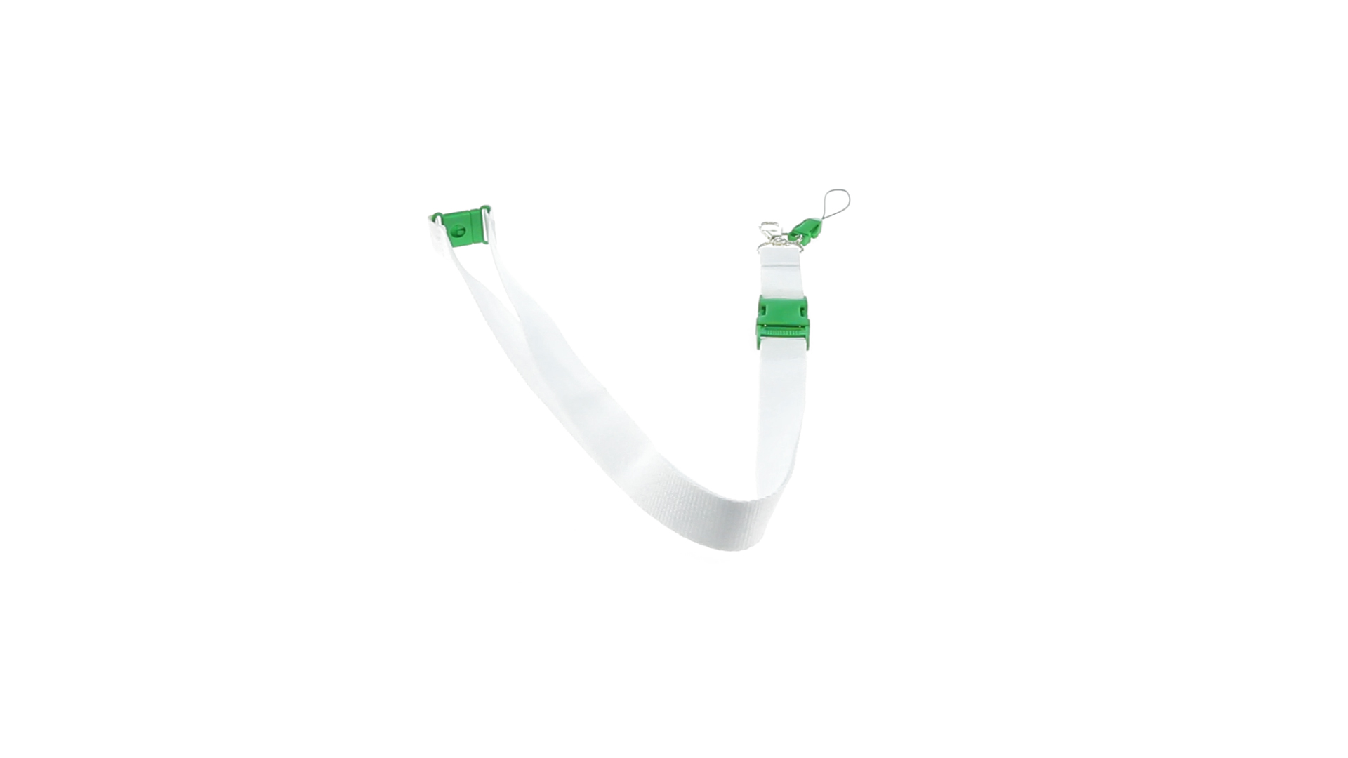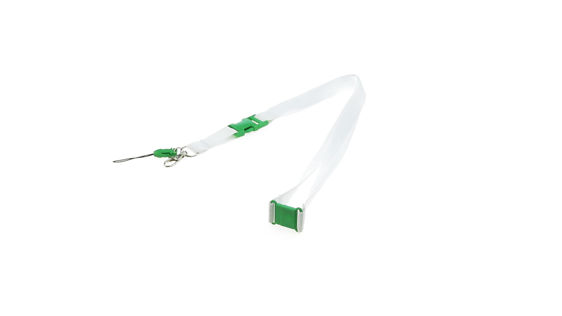 Lanyard aus resistentem, weichem Polyester in Weiss. Mit farblich passendem Klickverschluss in verschiedenen Farben sowie Metall-Karabiner und Schlaufe mit farblich passendem Klickverschluss. Speziell für den Sublimationsdruck entwickelt.