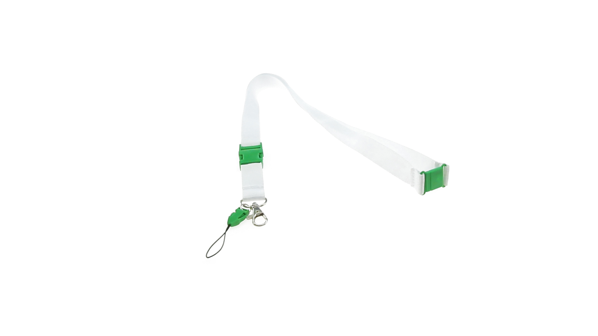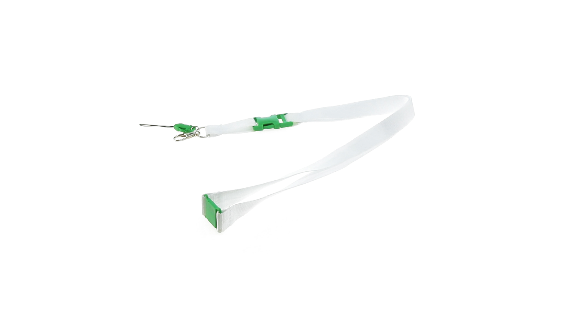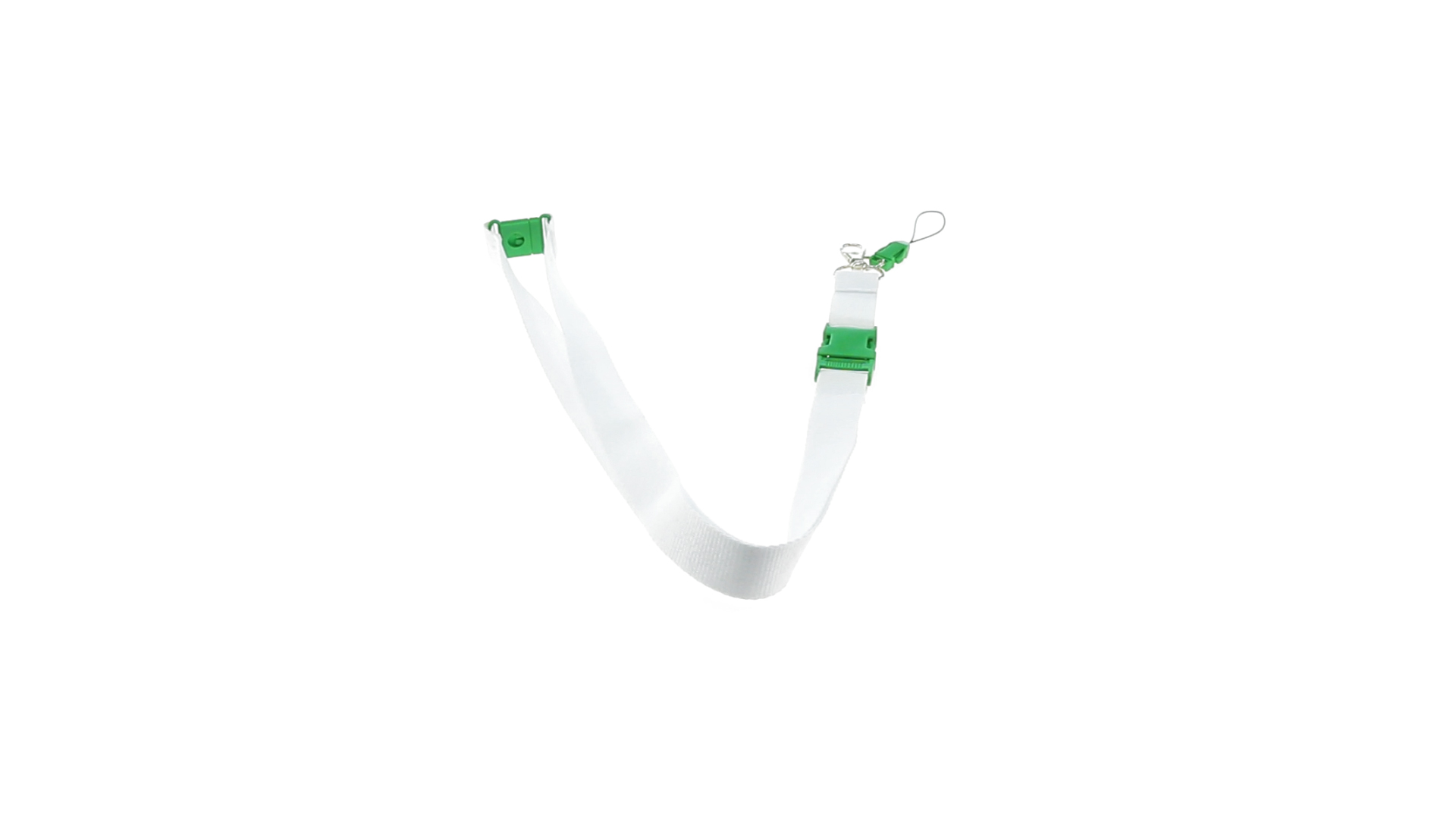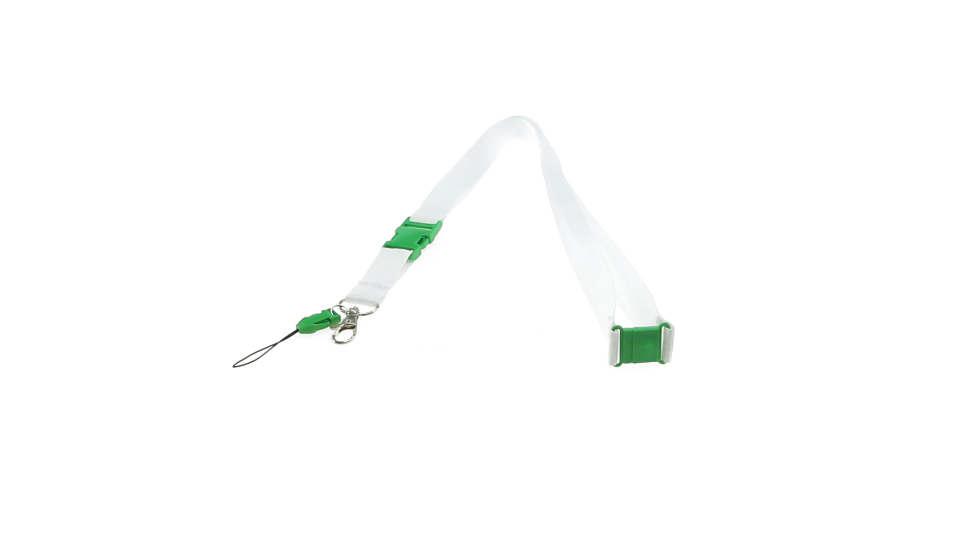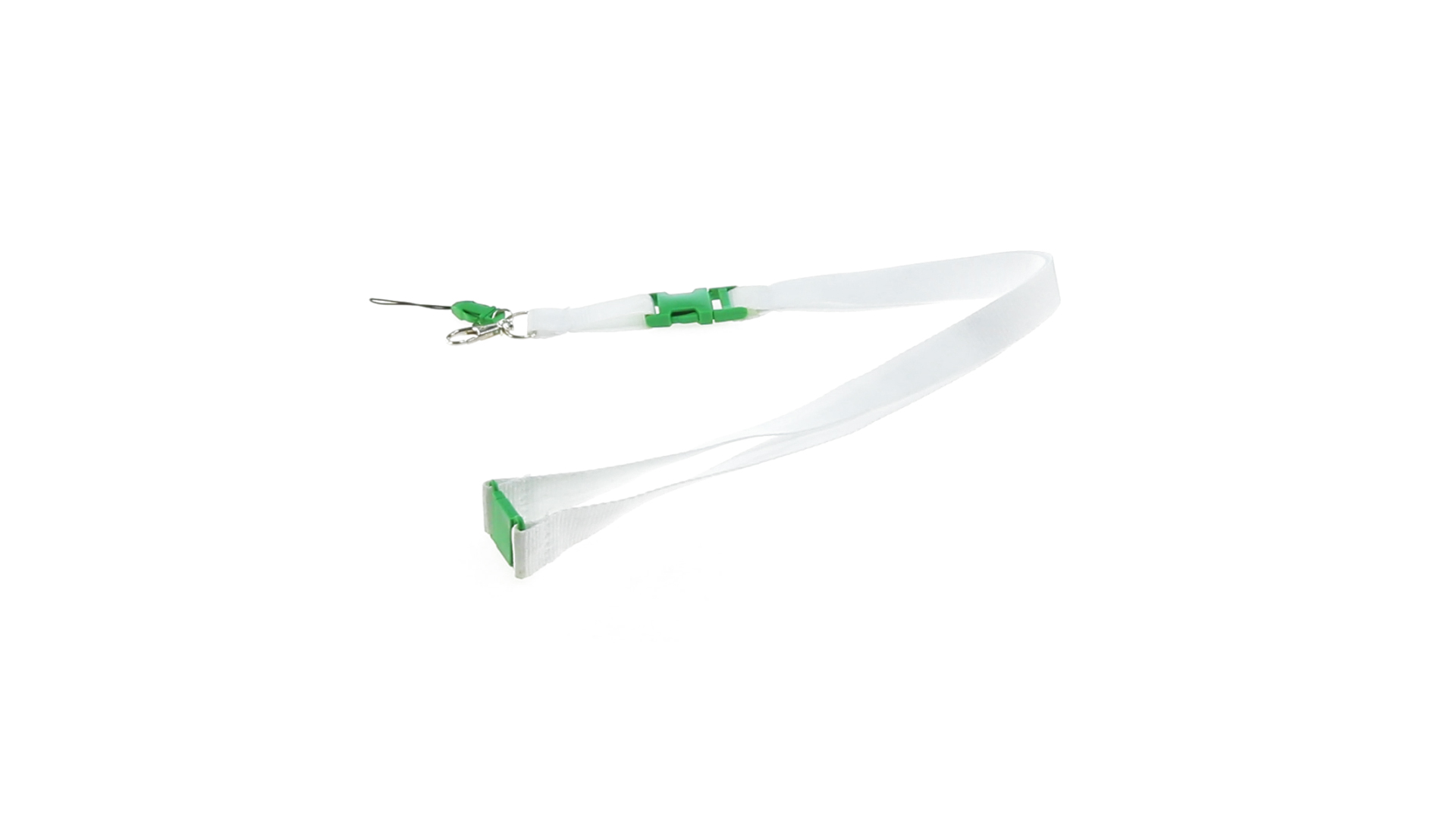 Lanyard aus resistentem, weichem Polyester in Weiss. Mit farblich passendem Klickverschluss in verschiedenen Farben sowie Metall-Karabiner und Schlaufe mit farblich passendem Klickverschluss. Speziell für den Sublimationsdruck entwickelt.