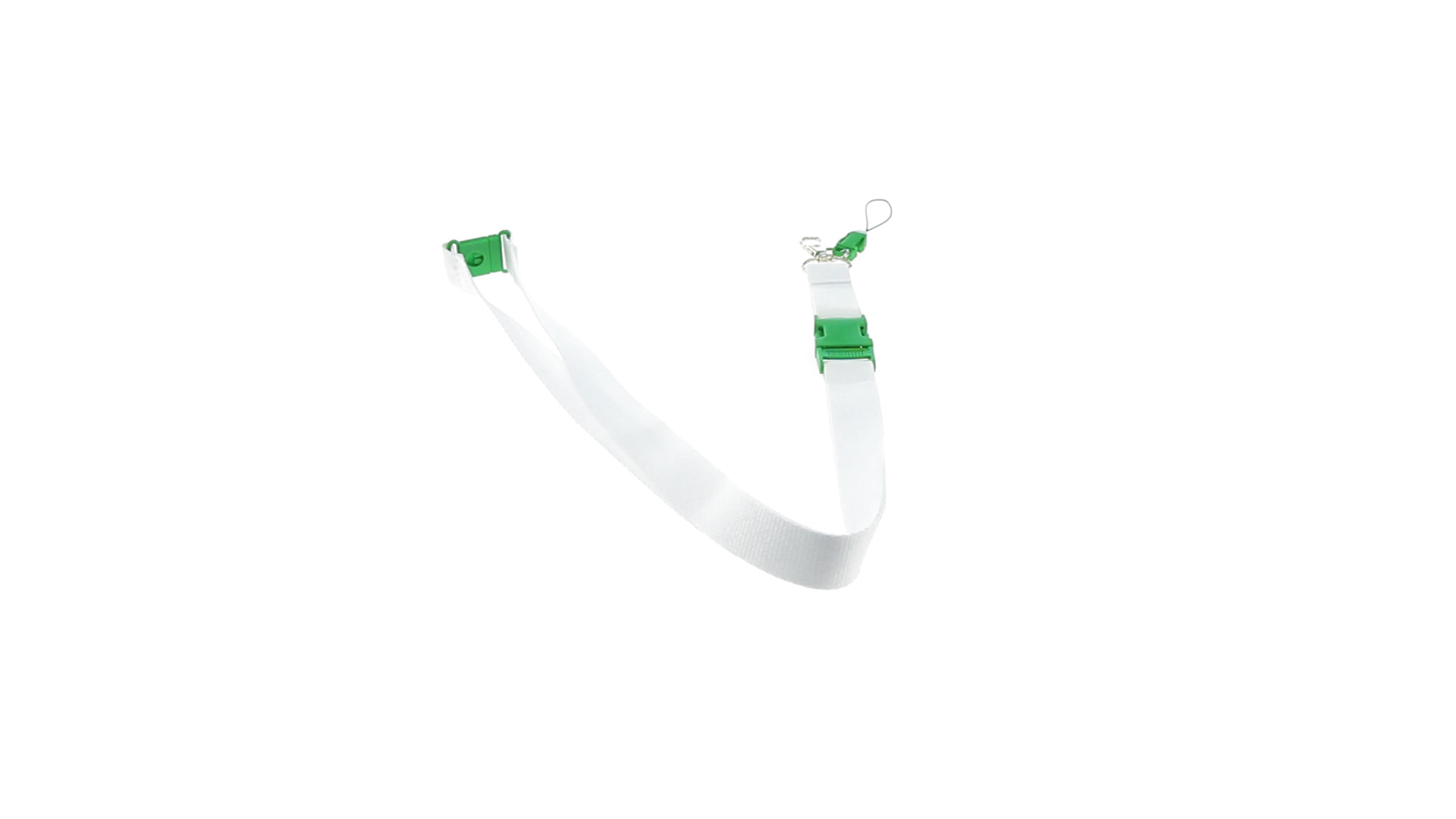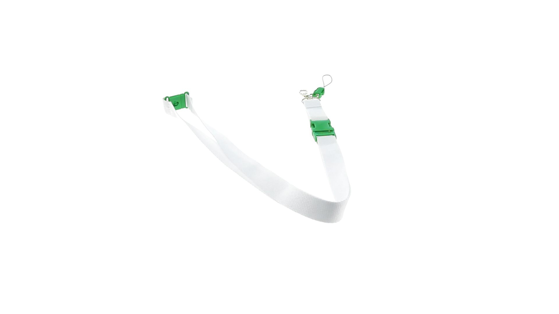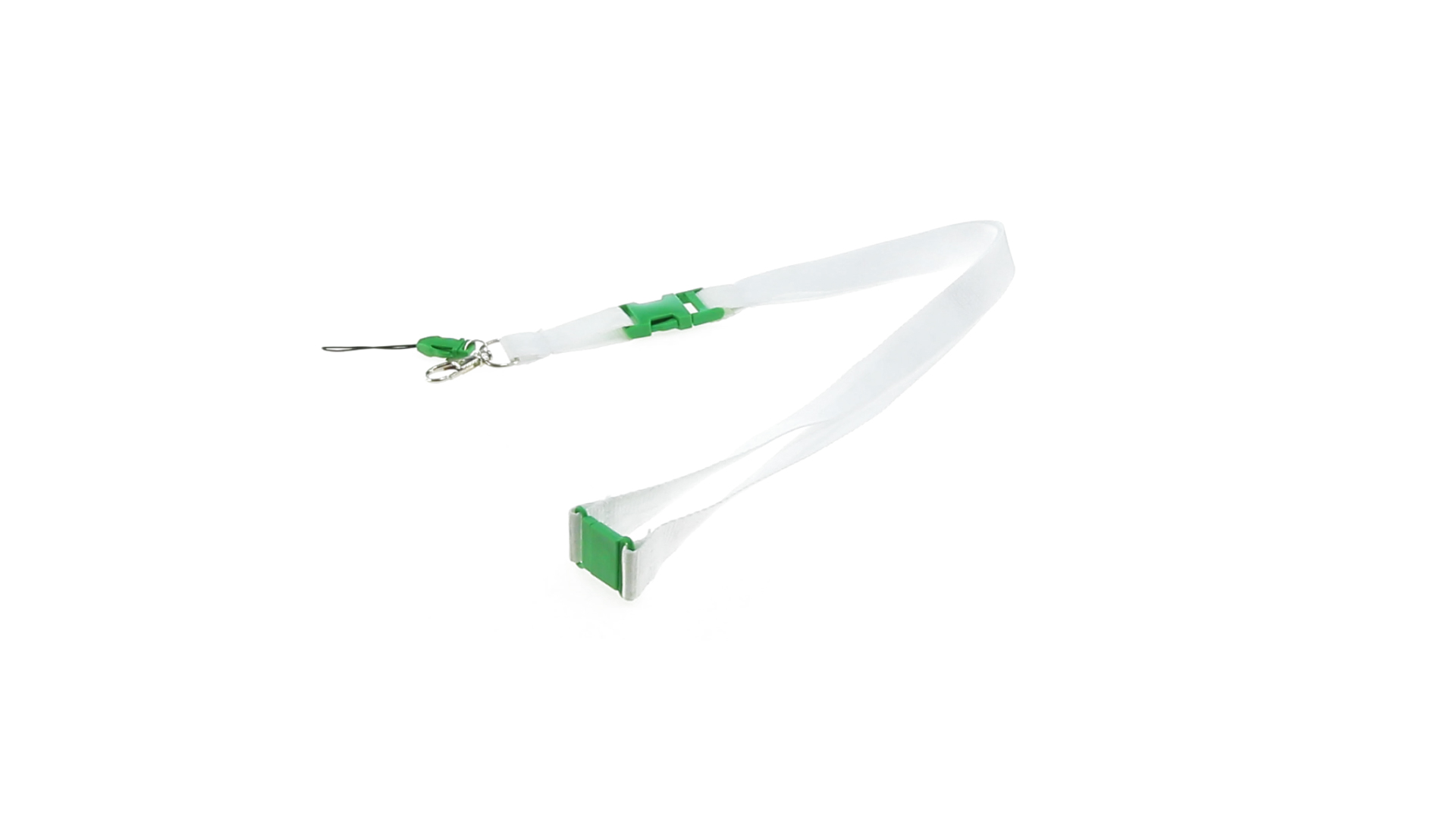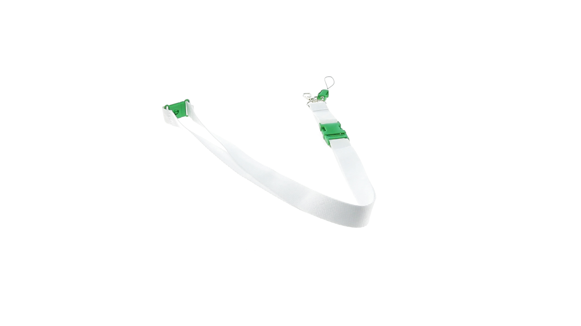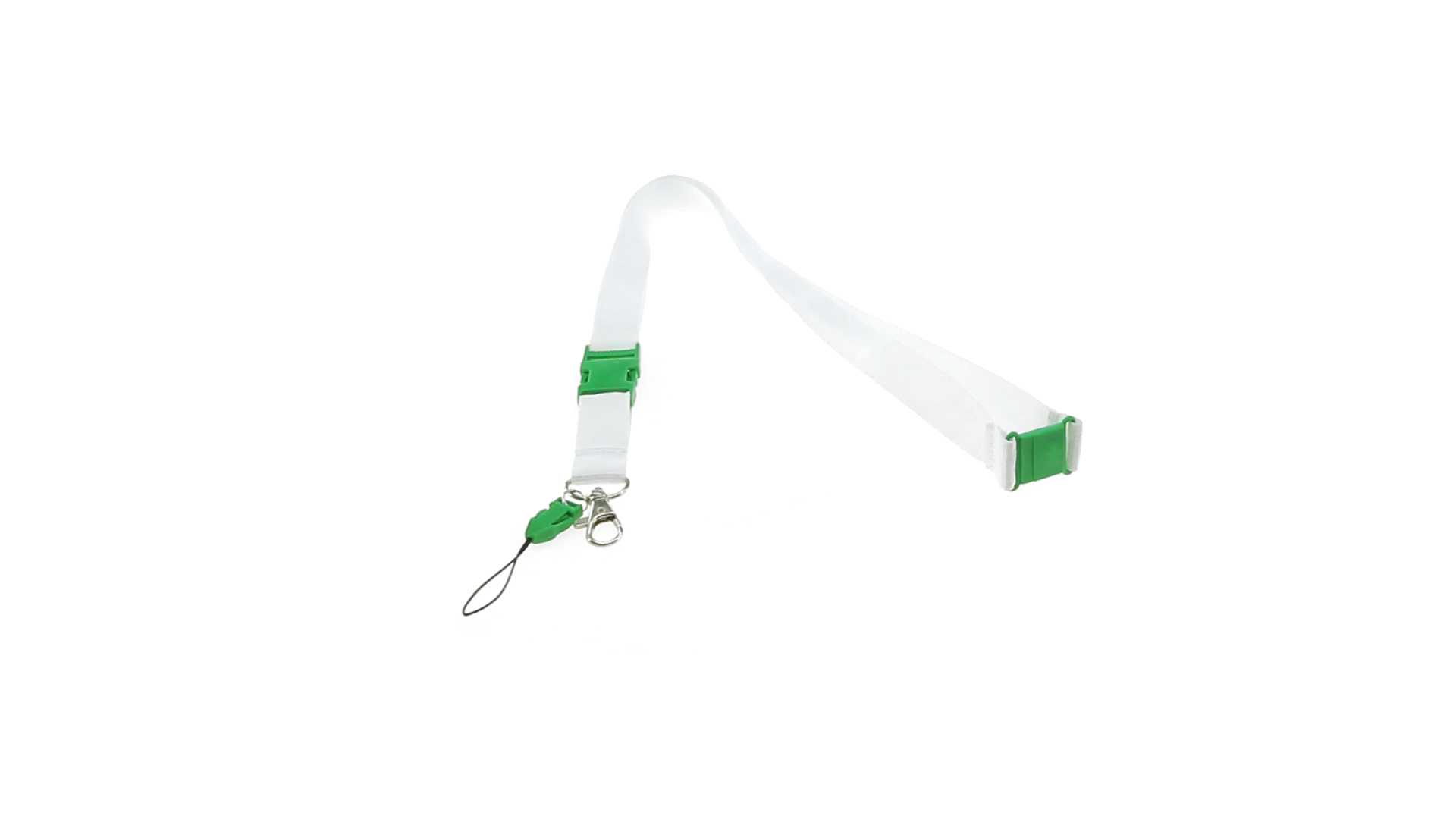 Lanyard aus resistentem, weichem Polyester in Weiss. Mit farblich passendem Klickverschluss in verschiedenen Farben sowie Metall-Karabiner und Schlaufe mit farblich passendem Klickverschluss. Speziell für den Sublimationsdruck entwickelt.