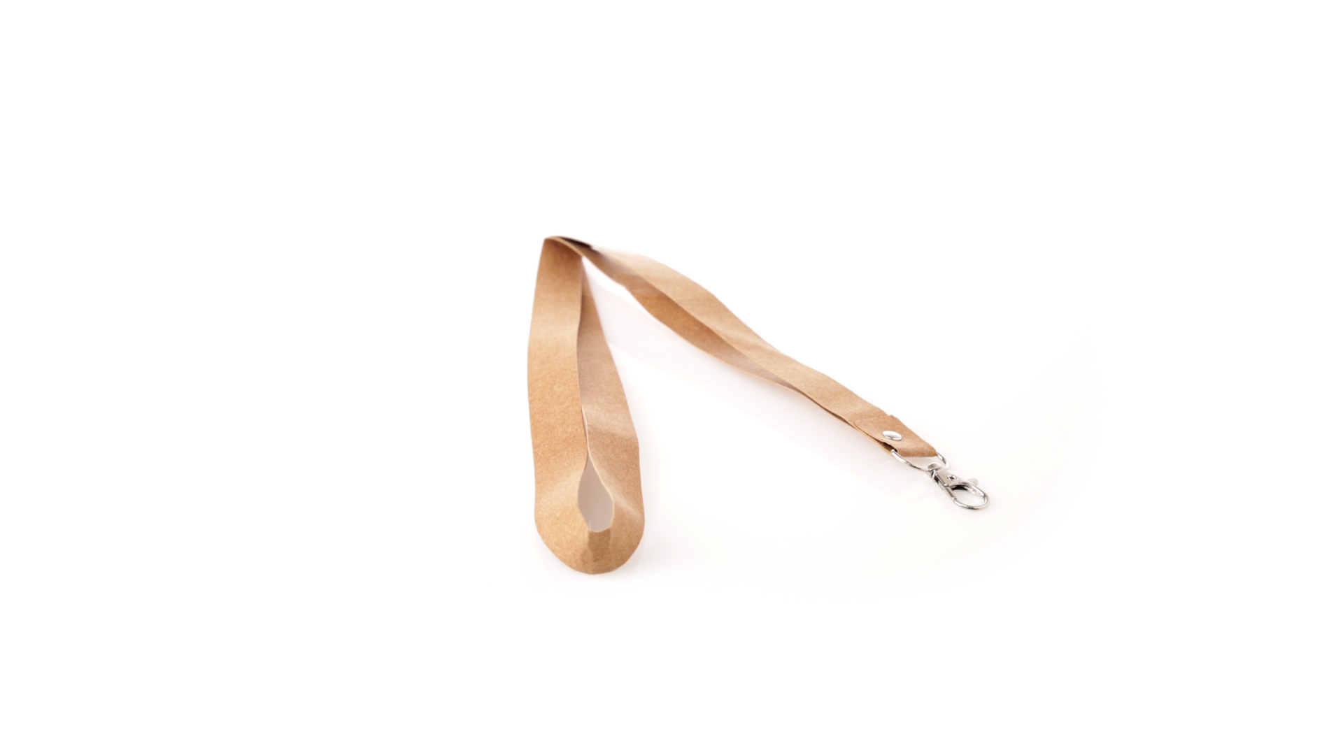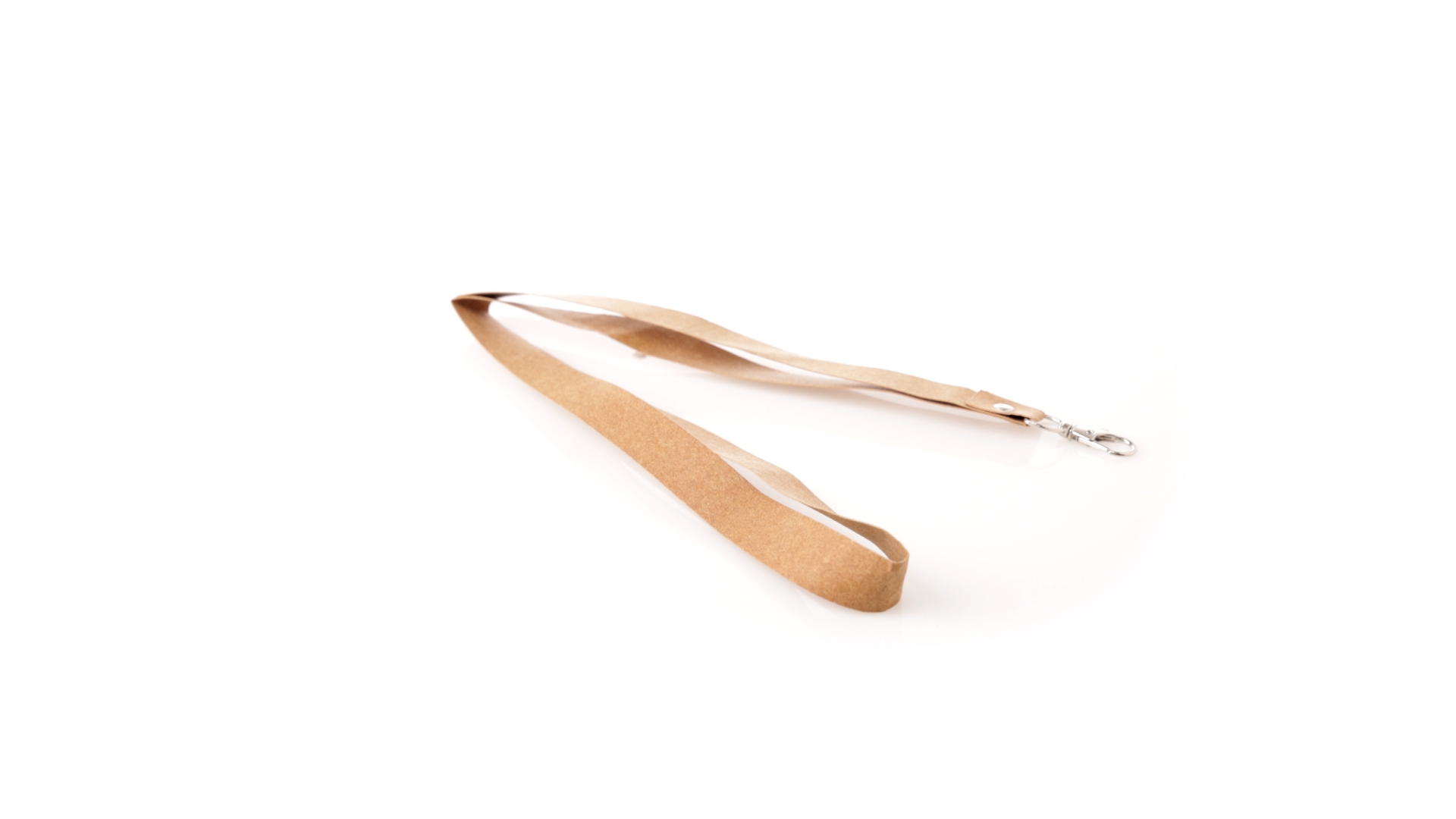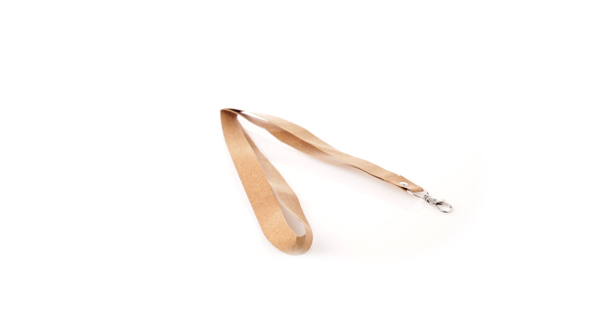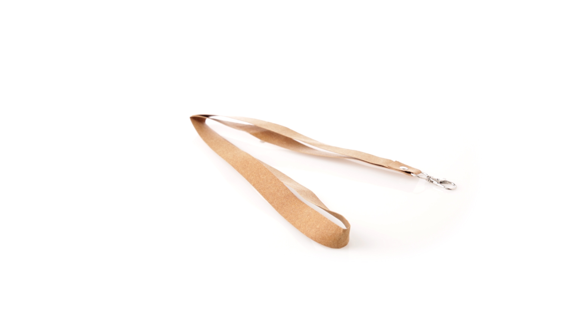 Natur Linie Lanyard aus stabilem Recyclingkarton. Mit drehbarem Metallkarabiner.