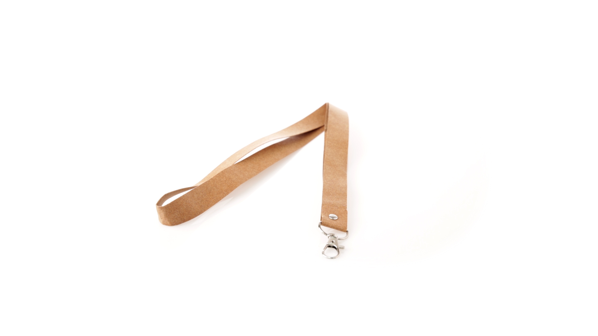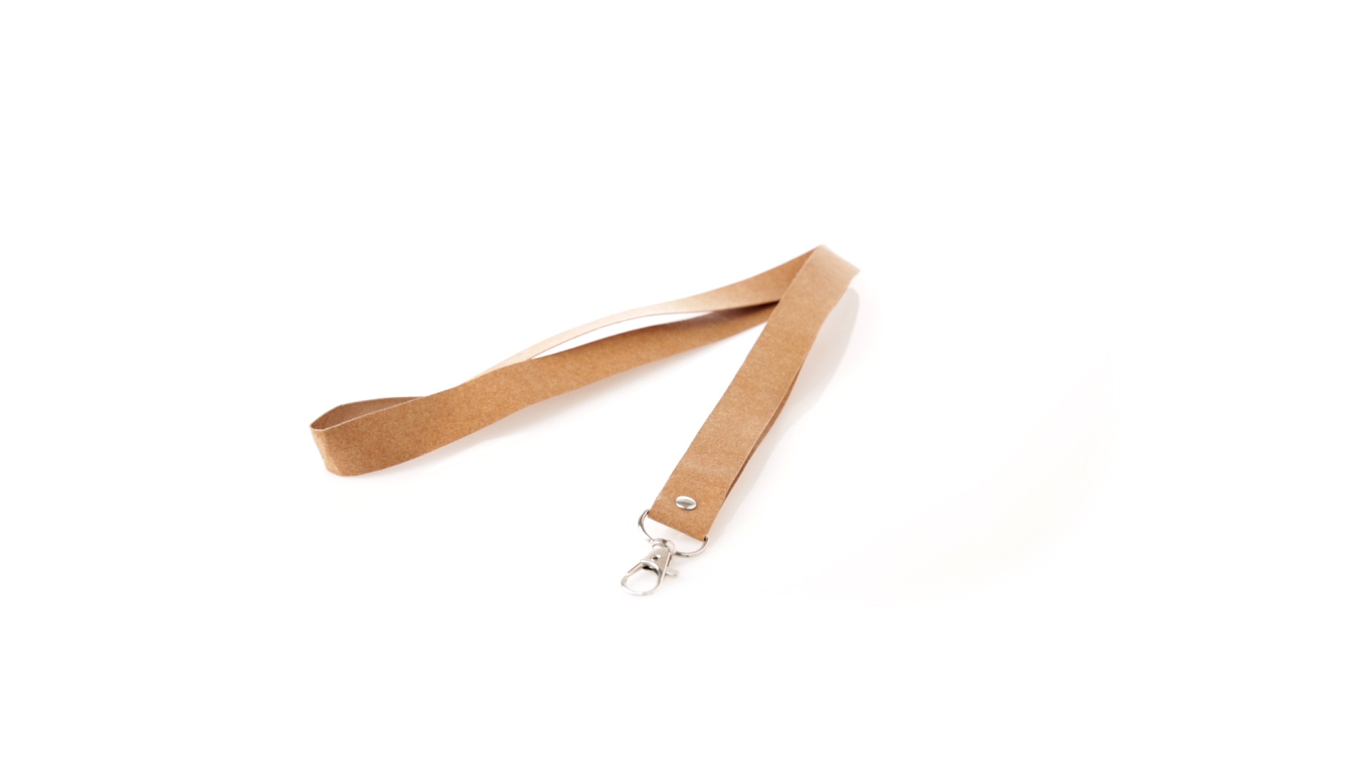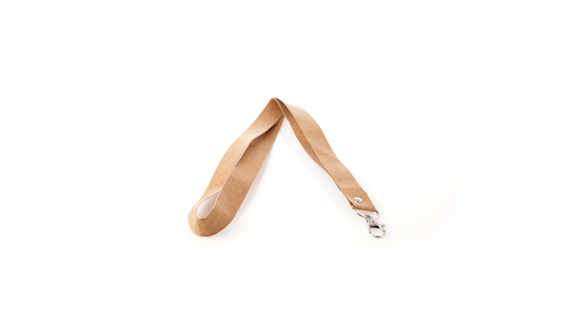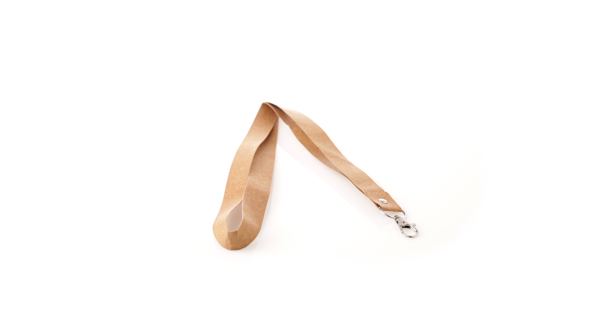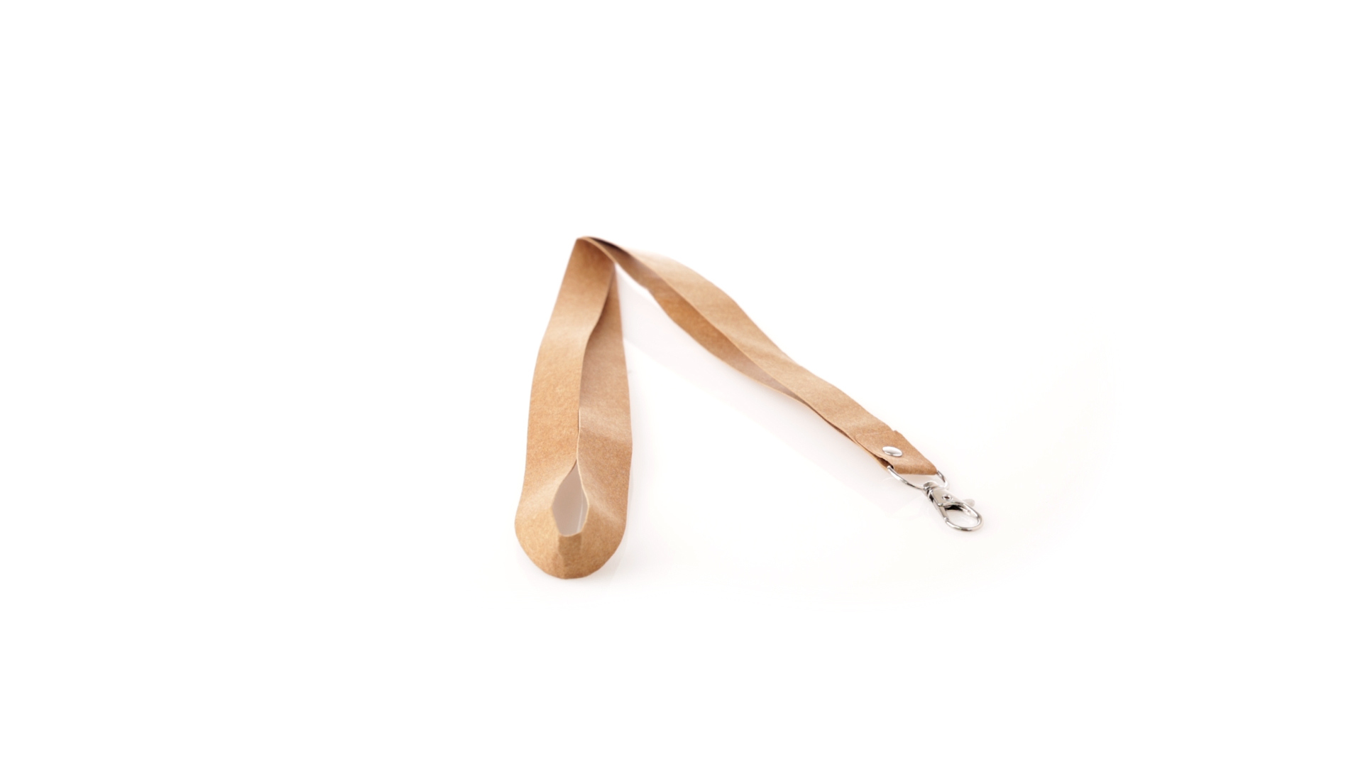 Natur Linie Lanyard aus stabilem Recyclingkarton. Mit drehbarem Metallkarabiner.