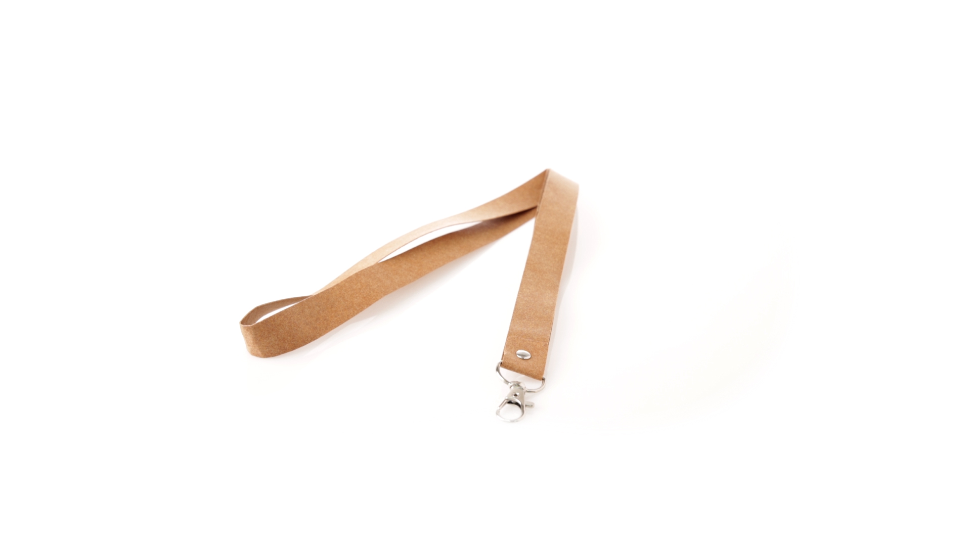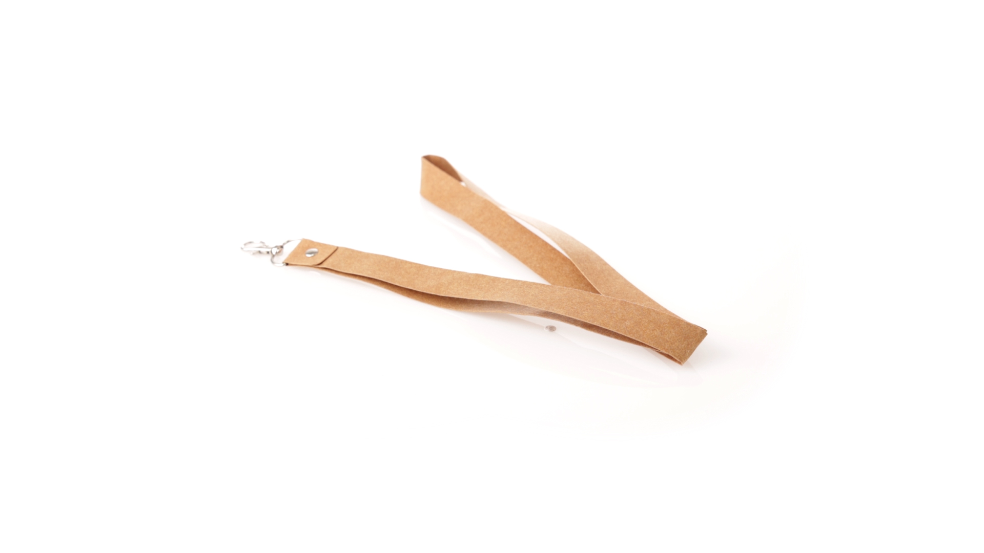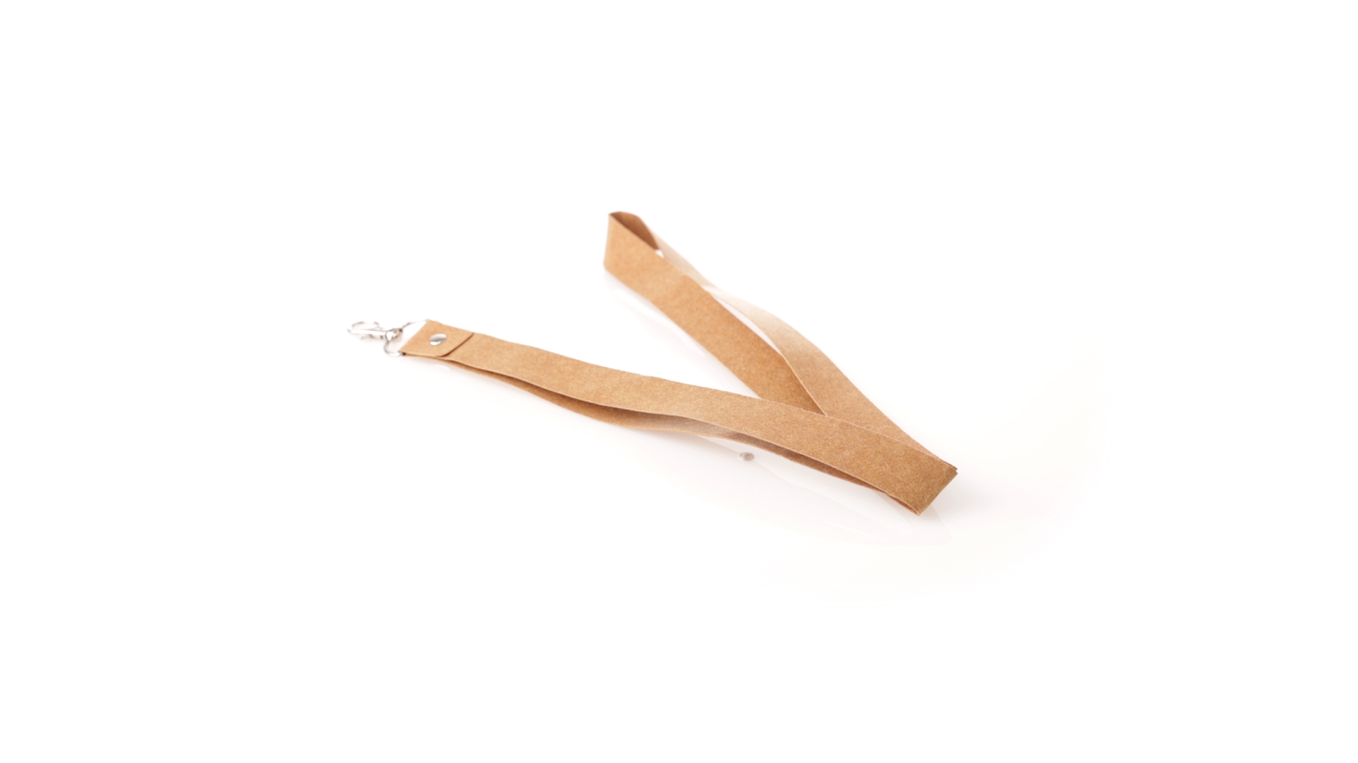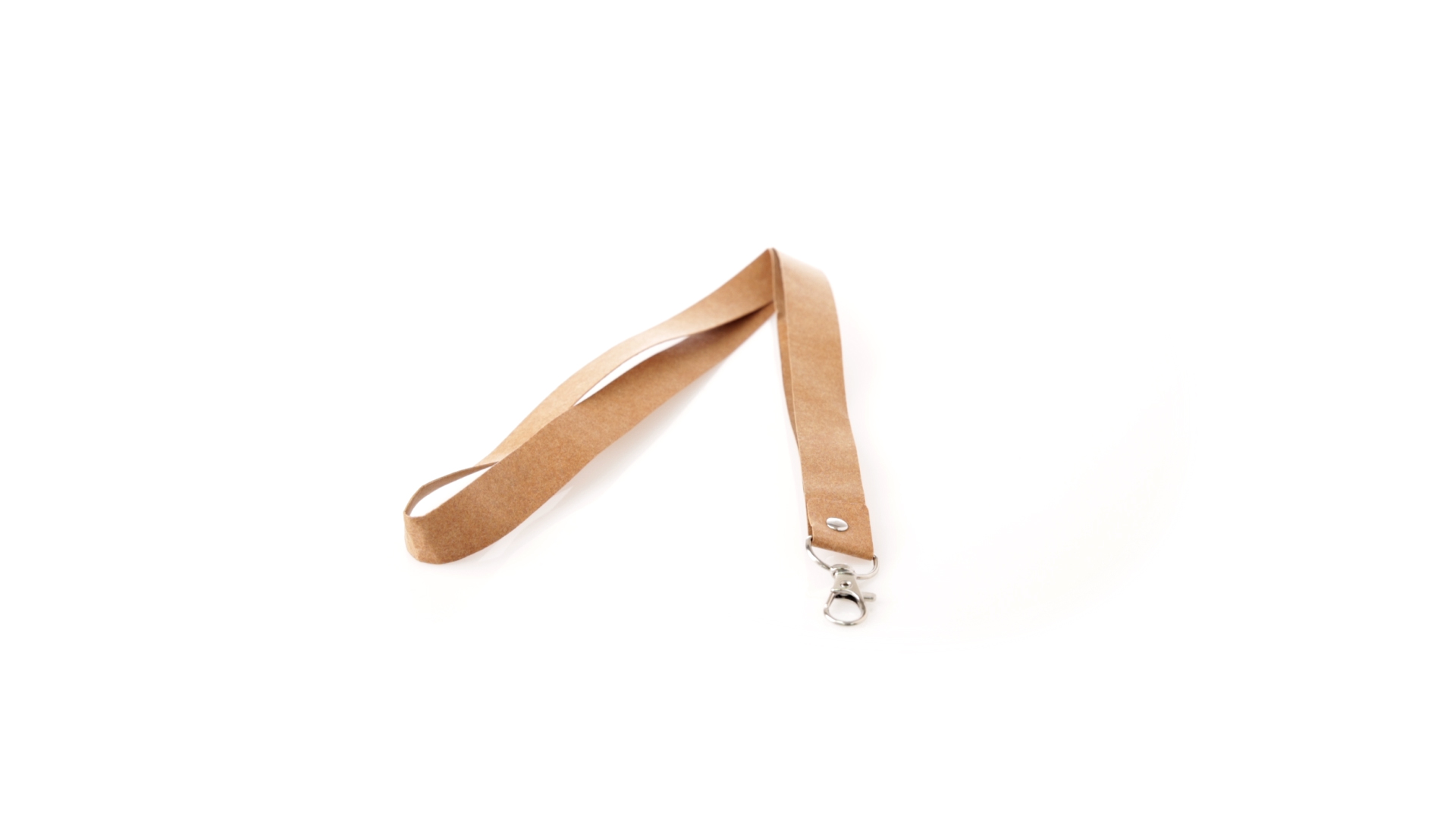 Natur Linie Lanyard aus stabilem Recyclingkarton. Mit drehbarem Metallkarabiner.