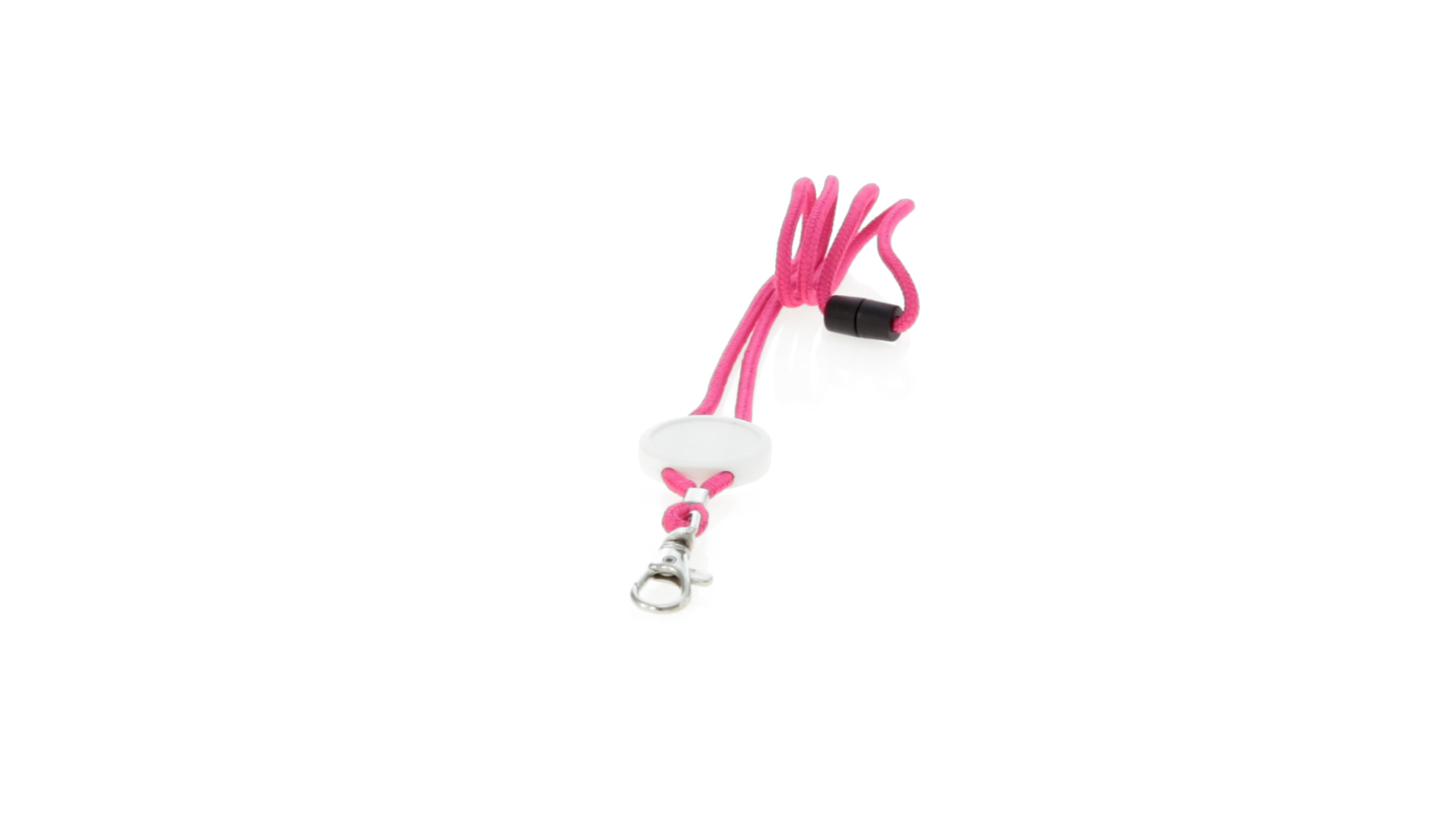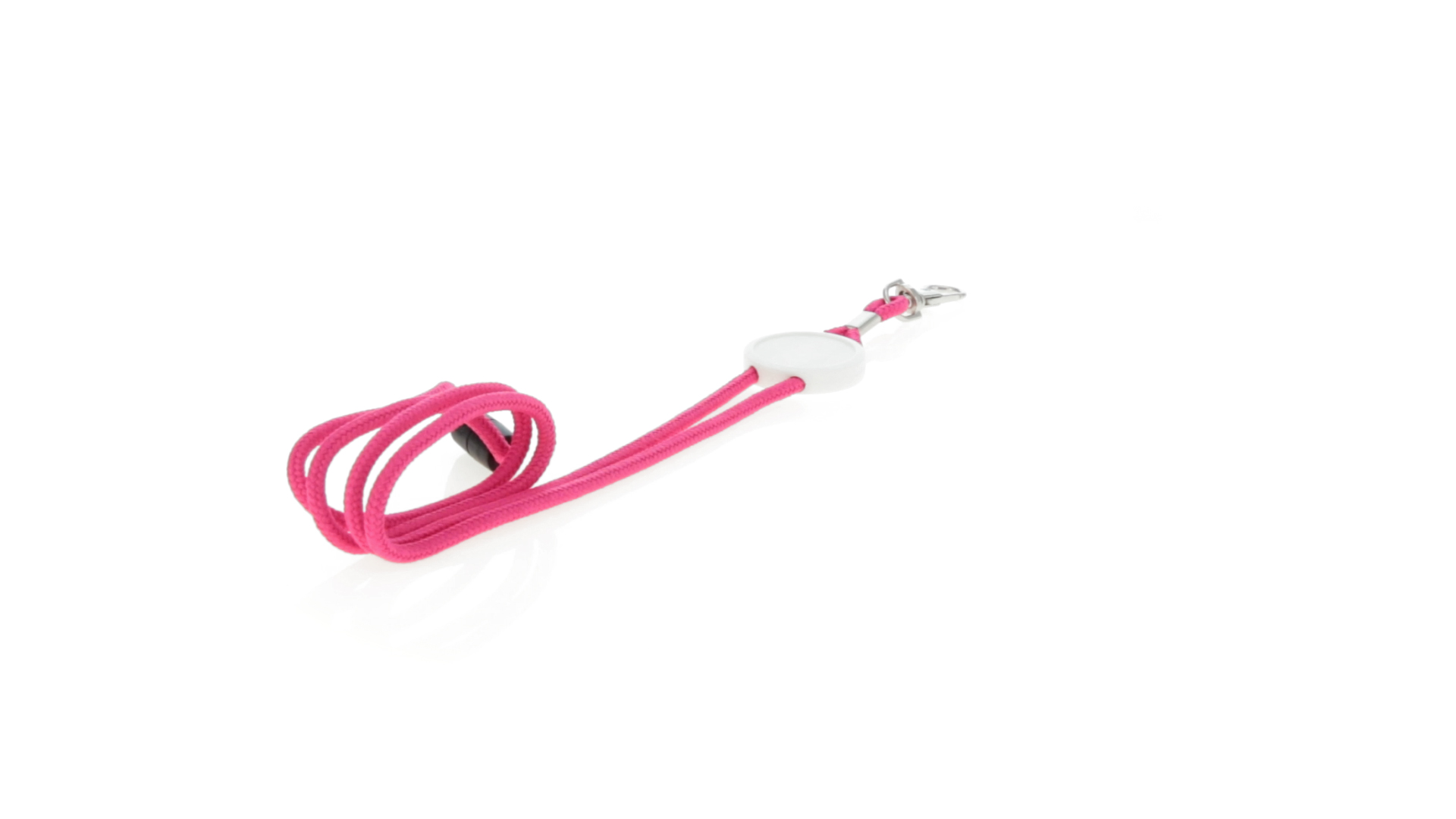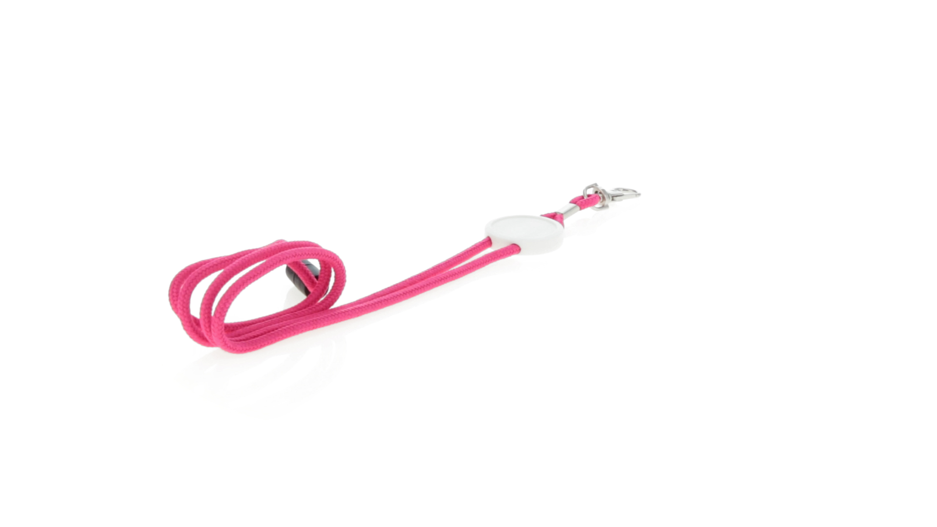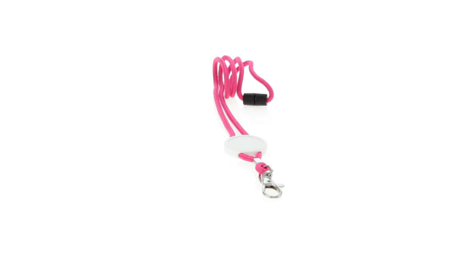 Lanyard mit robuster Kordel aus weichem Polyester in verschiedenen lebendigen Farben. Mit Klickverschluss am Nacken, Befestigungskarabiner aus Metall und zentraler Fläche zum Bedrucken.