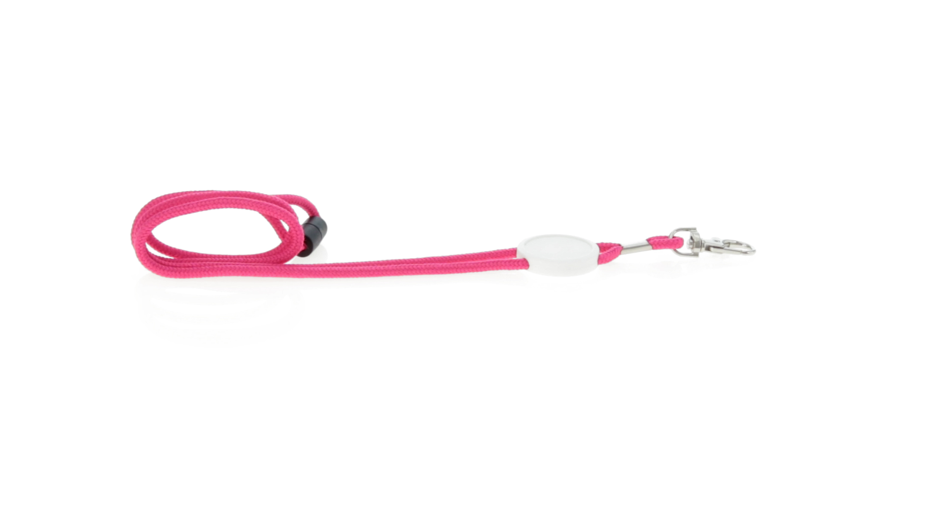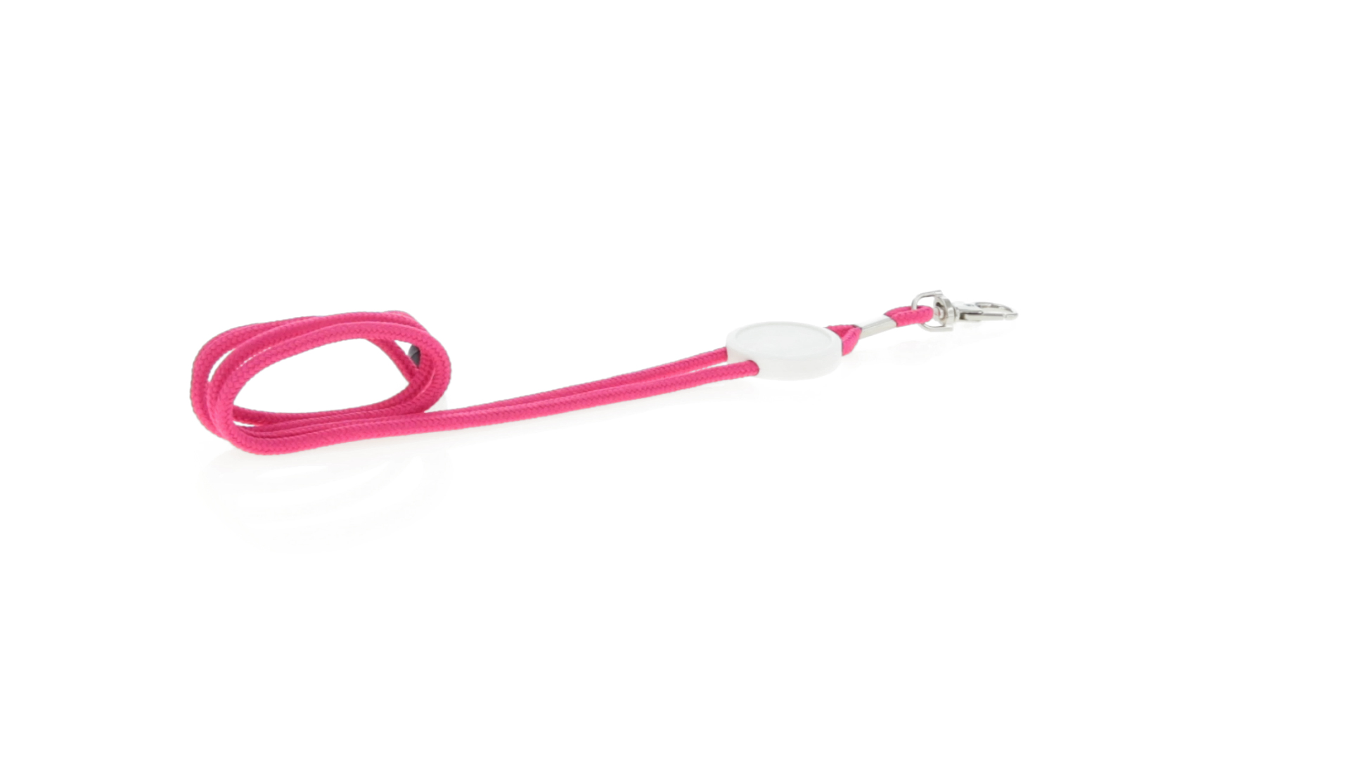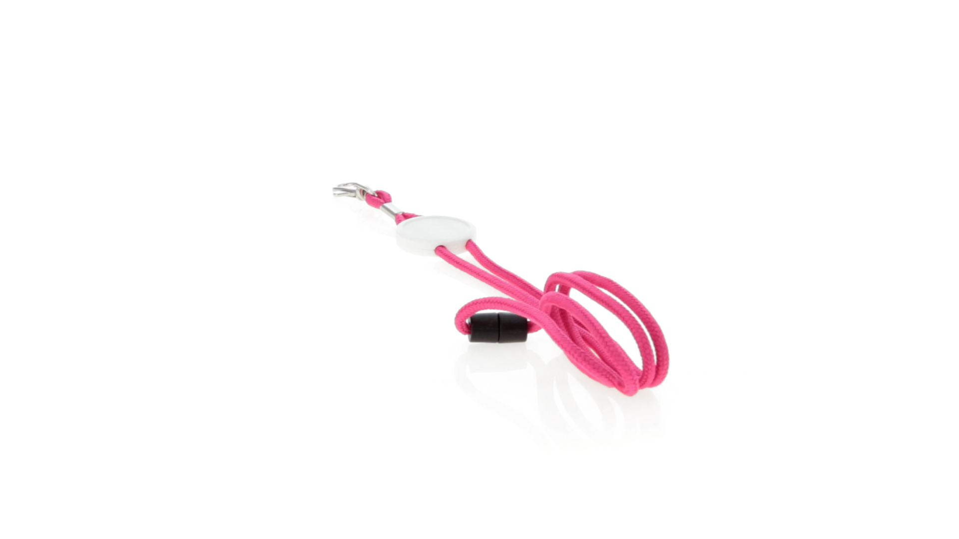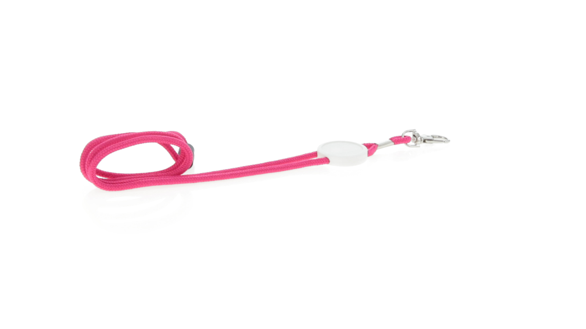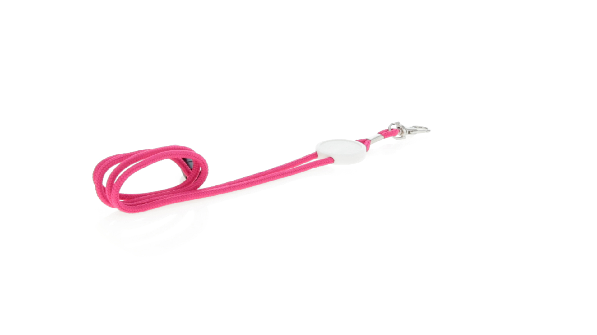 Lanyard mit robuster Kordel aus weichem Polyester in verschiedenen lebendigen Farben. Mit Klickverschluss am Nacken, Befestigungskarabiner aus Metall und zentraler Fläche zum Bedrucken.
