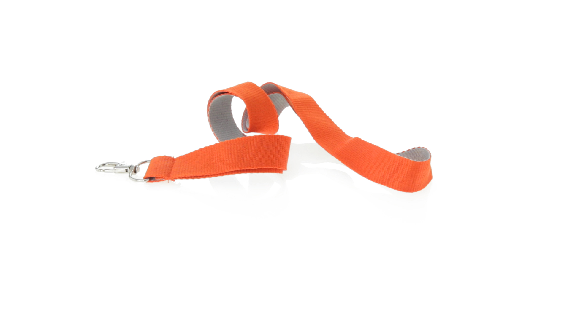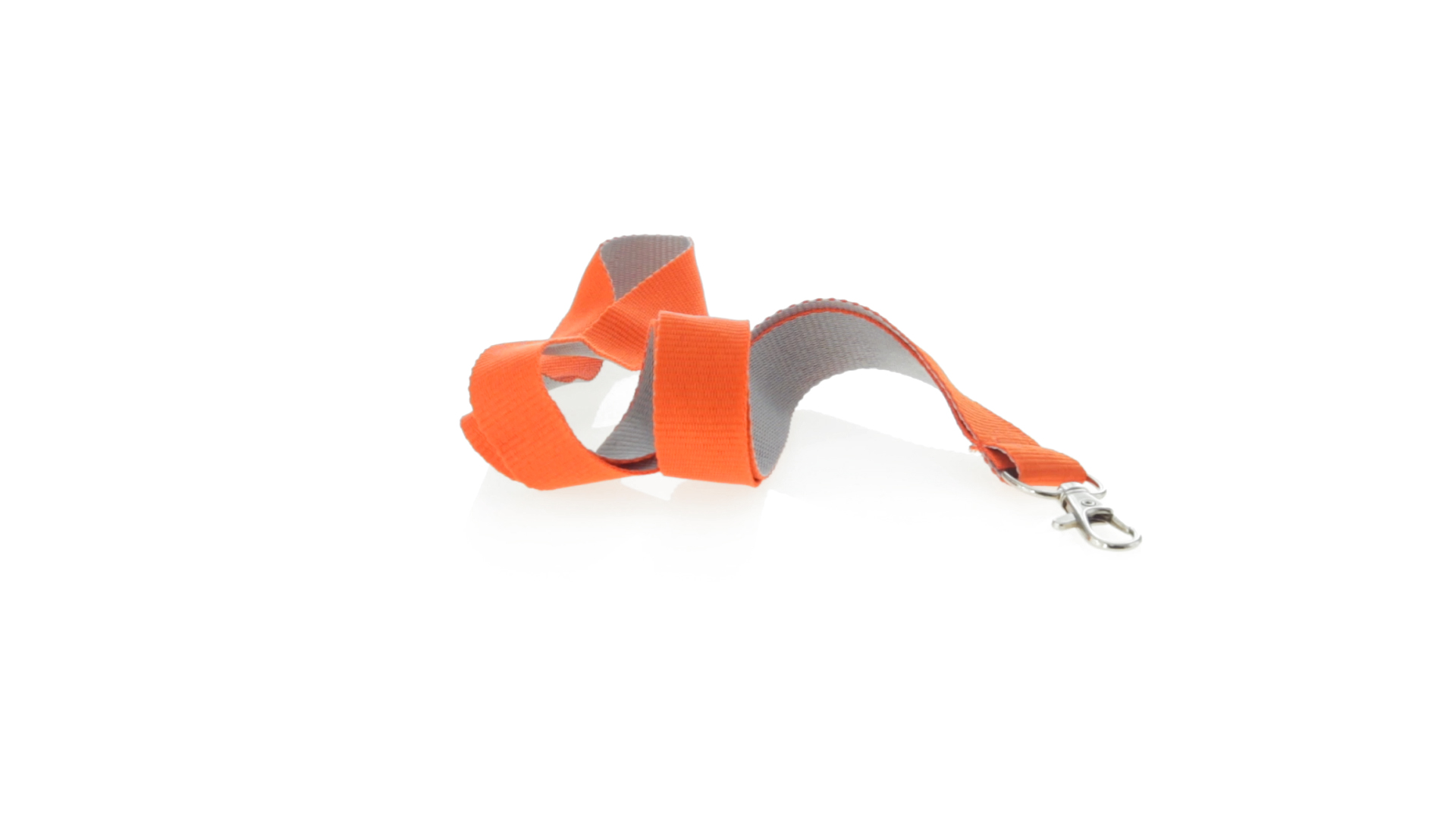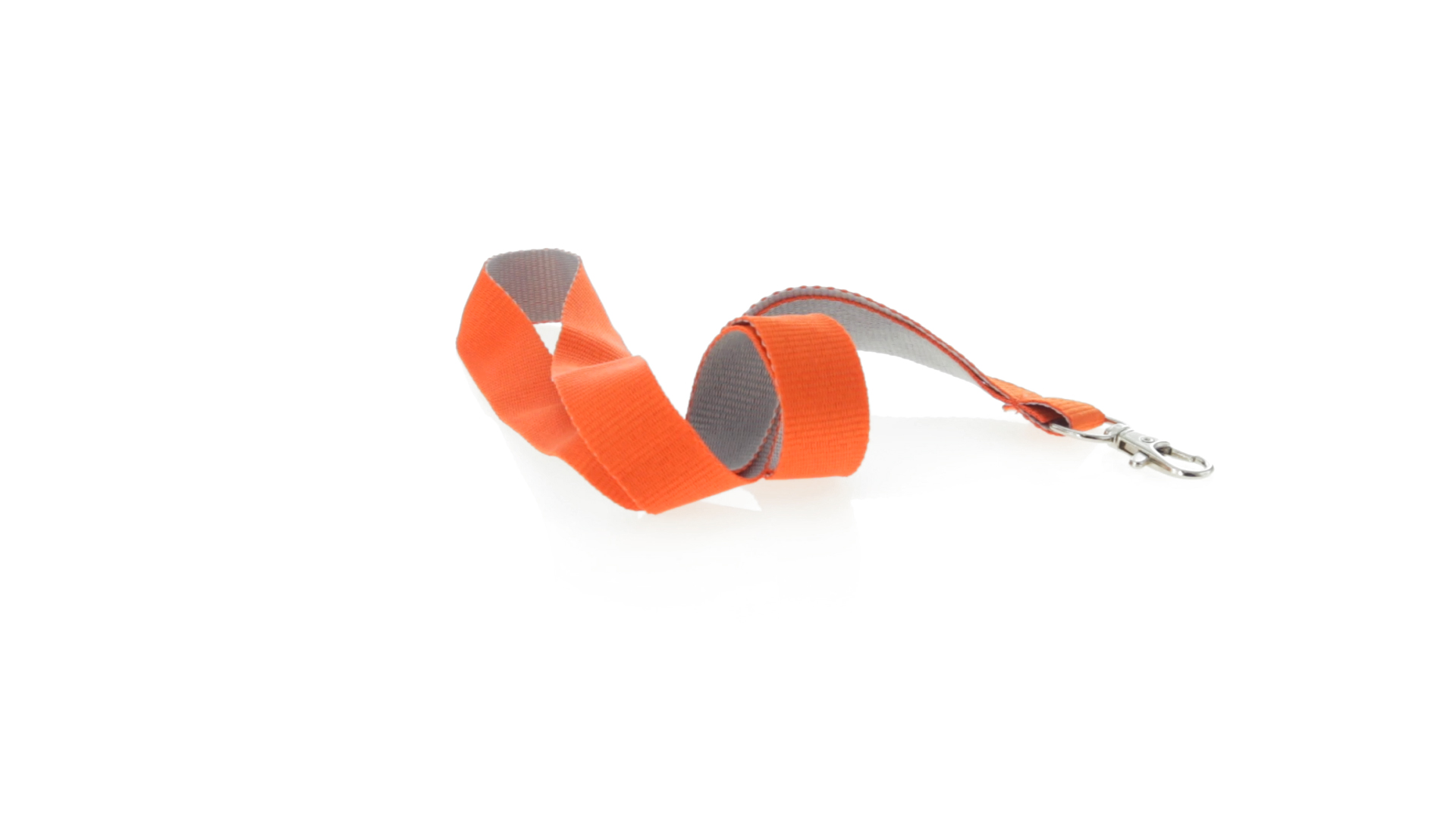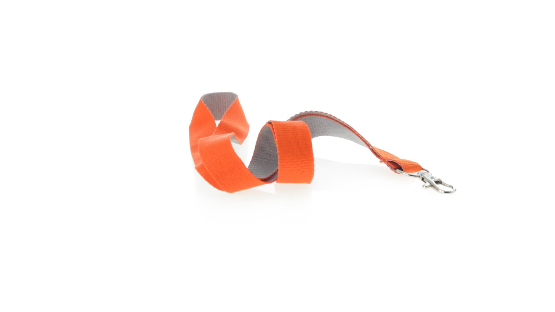 Origineller Lanyard aus resistentem Polyester mit zweifarbigem Design in lebendigen Farben mit Metallkarabiner.