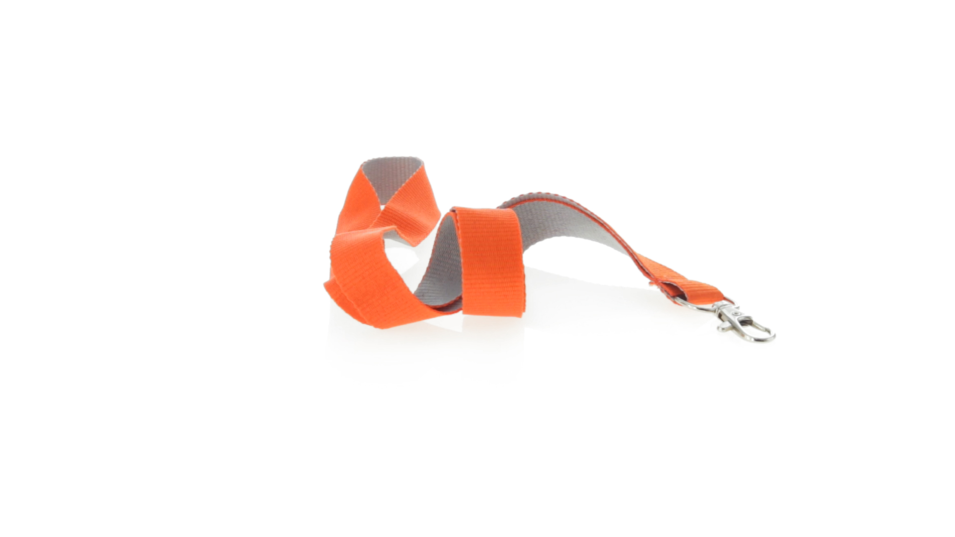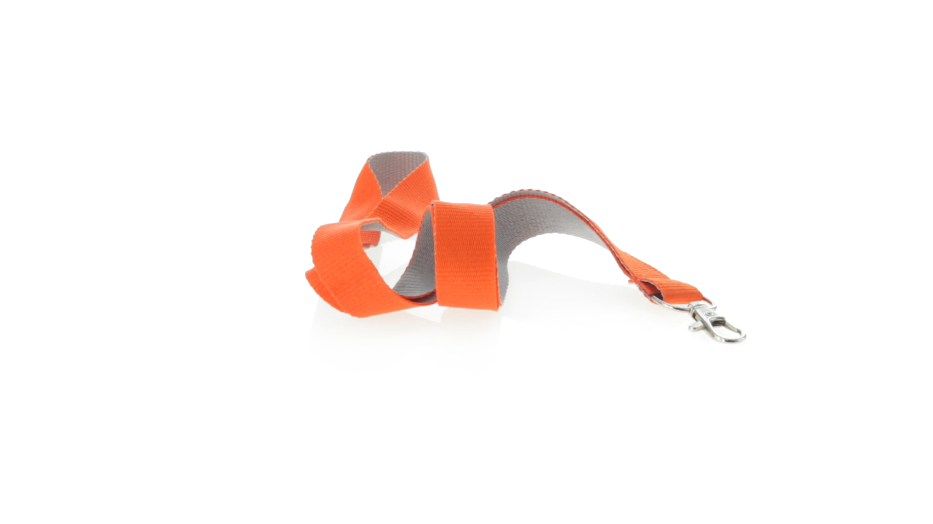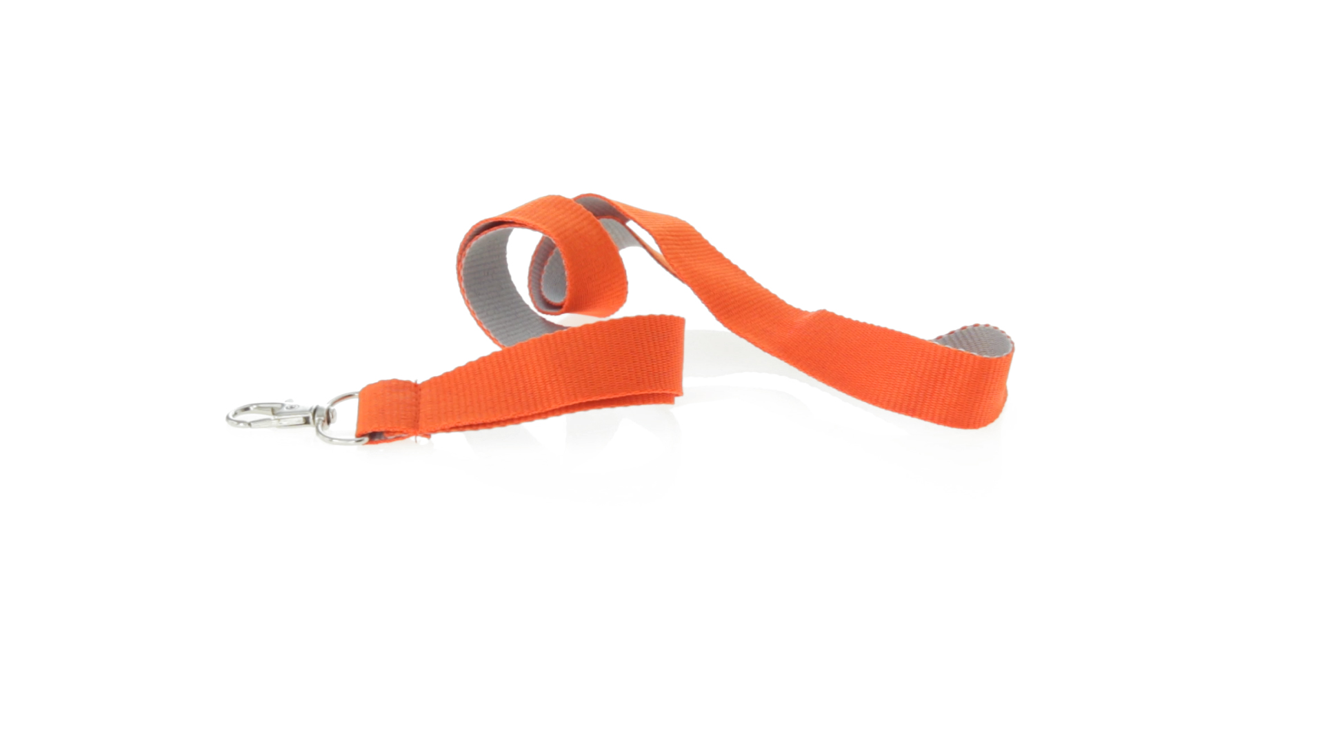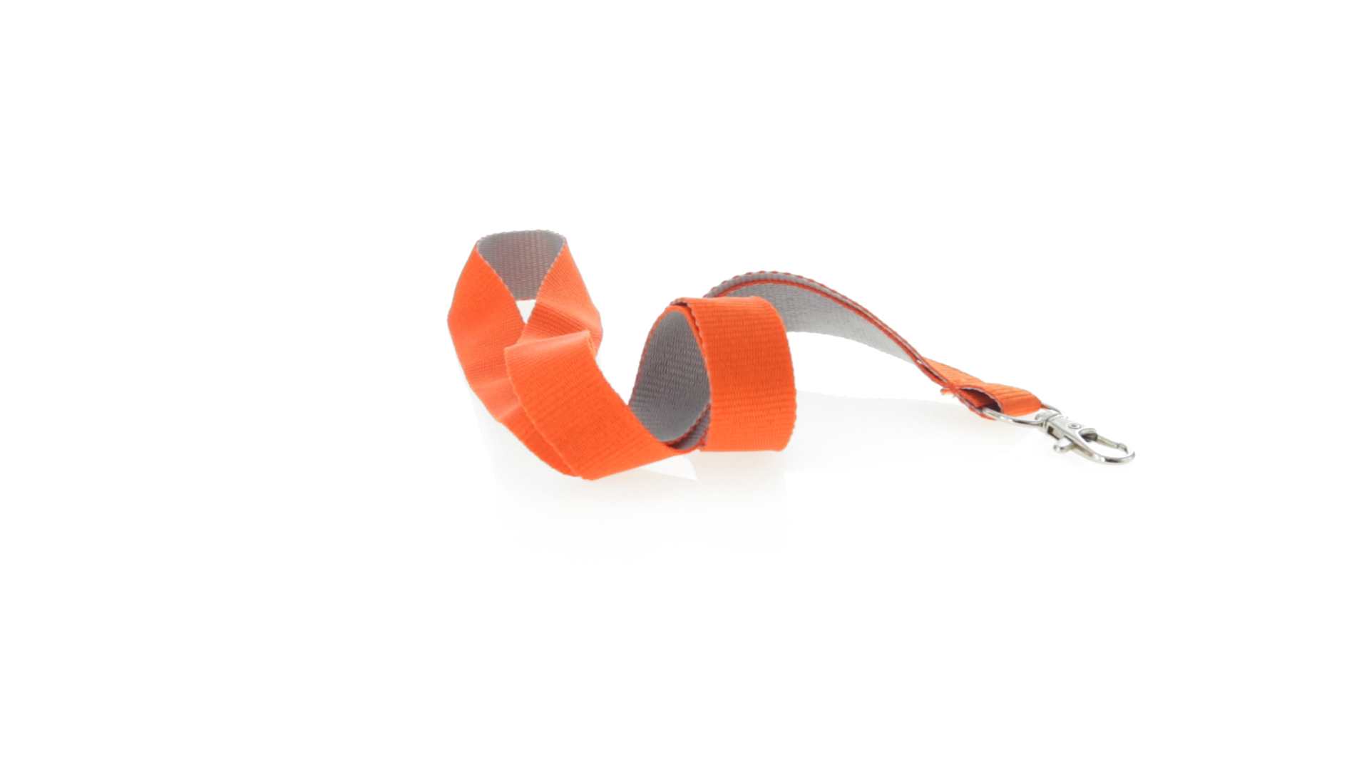 Origineller Lanyard aus resistentem Polyester mit zweifarbigem Design in lebendigen Farben mit Metallkarabiner.