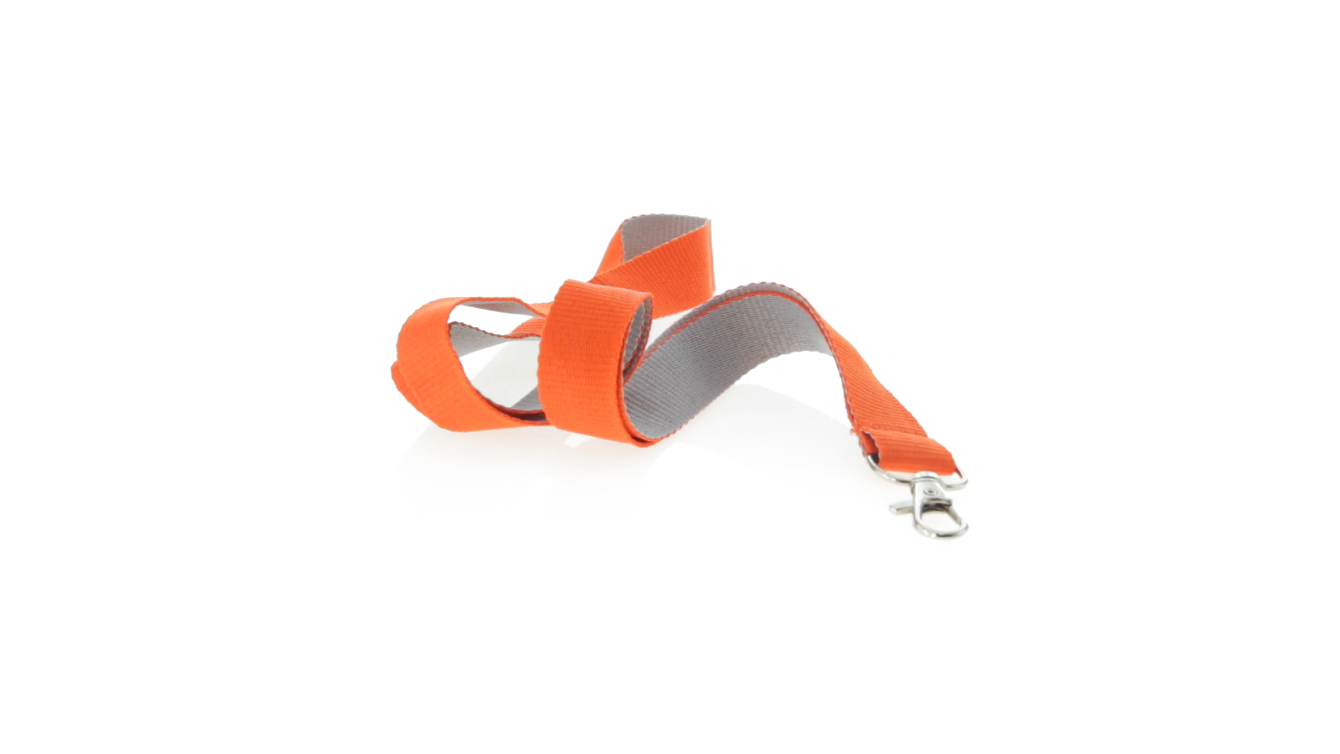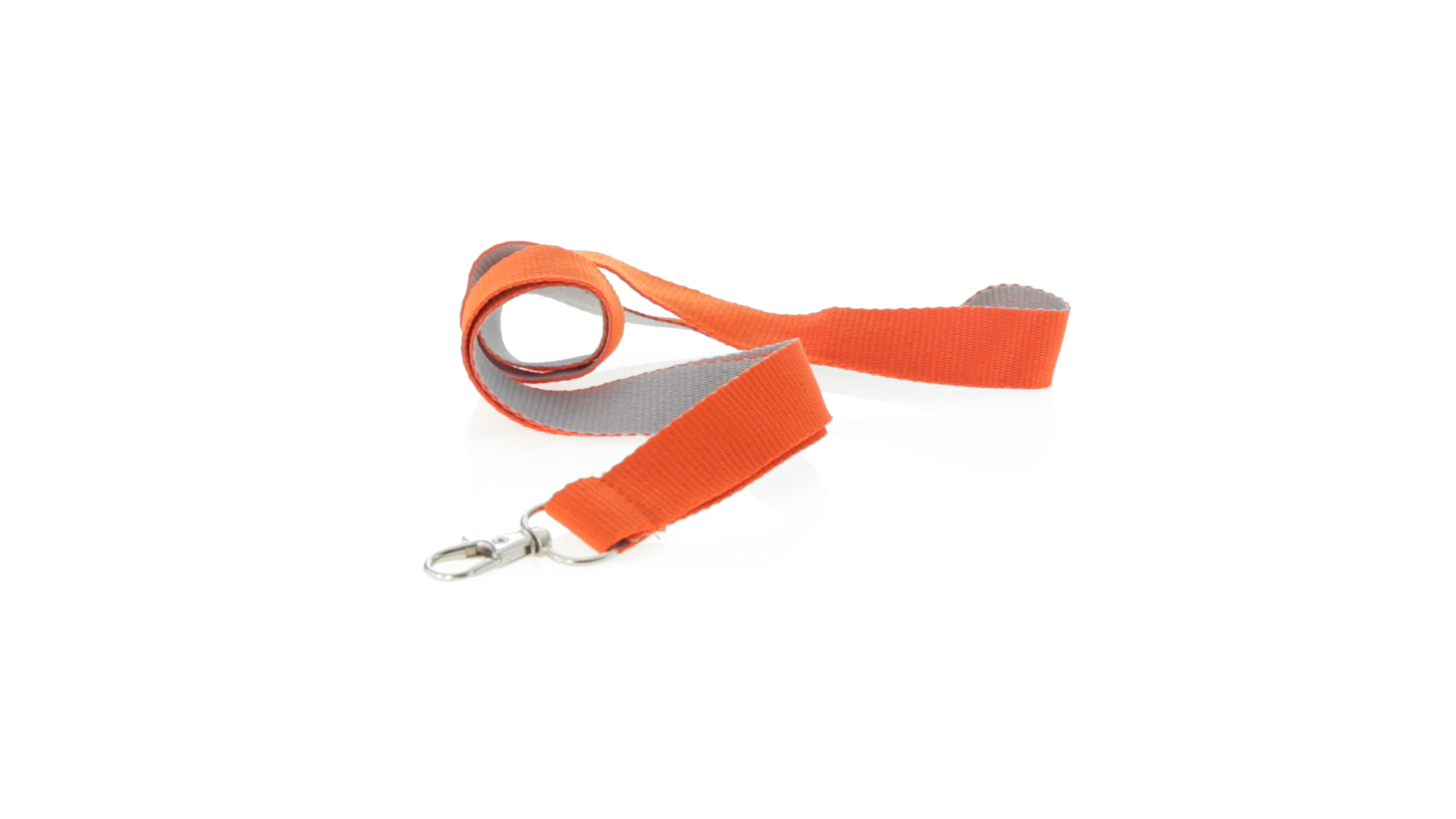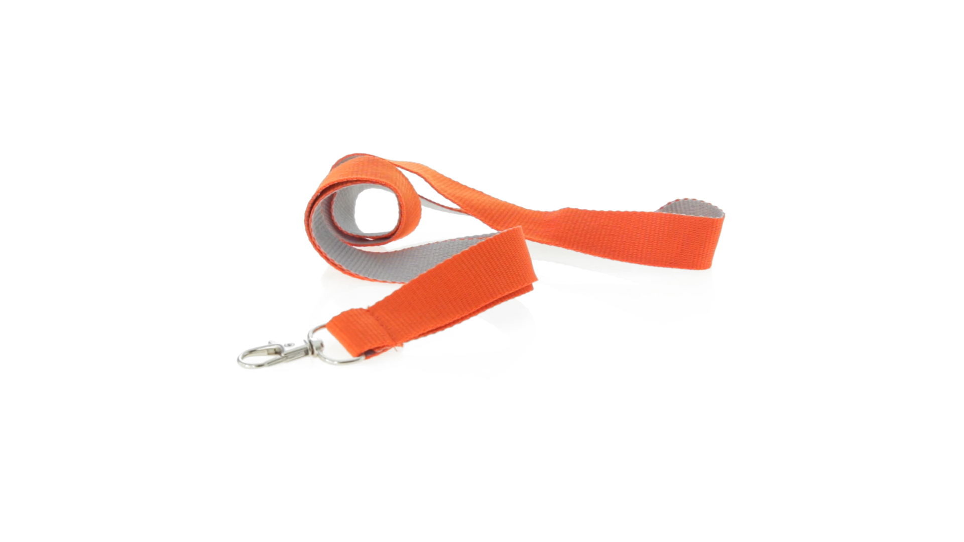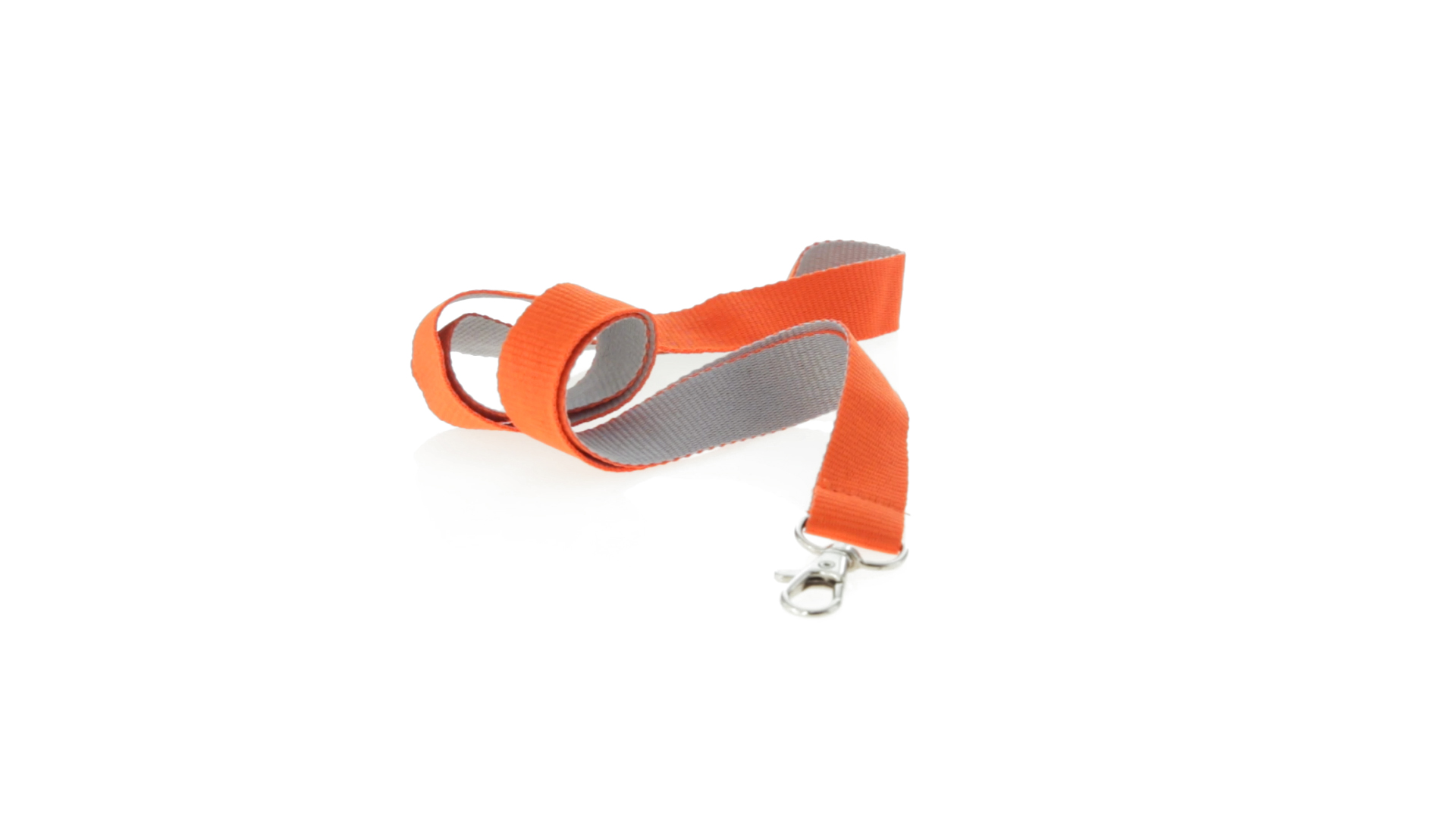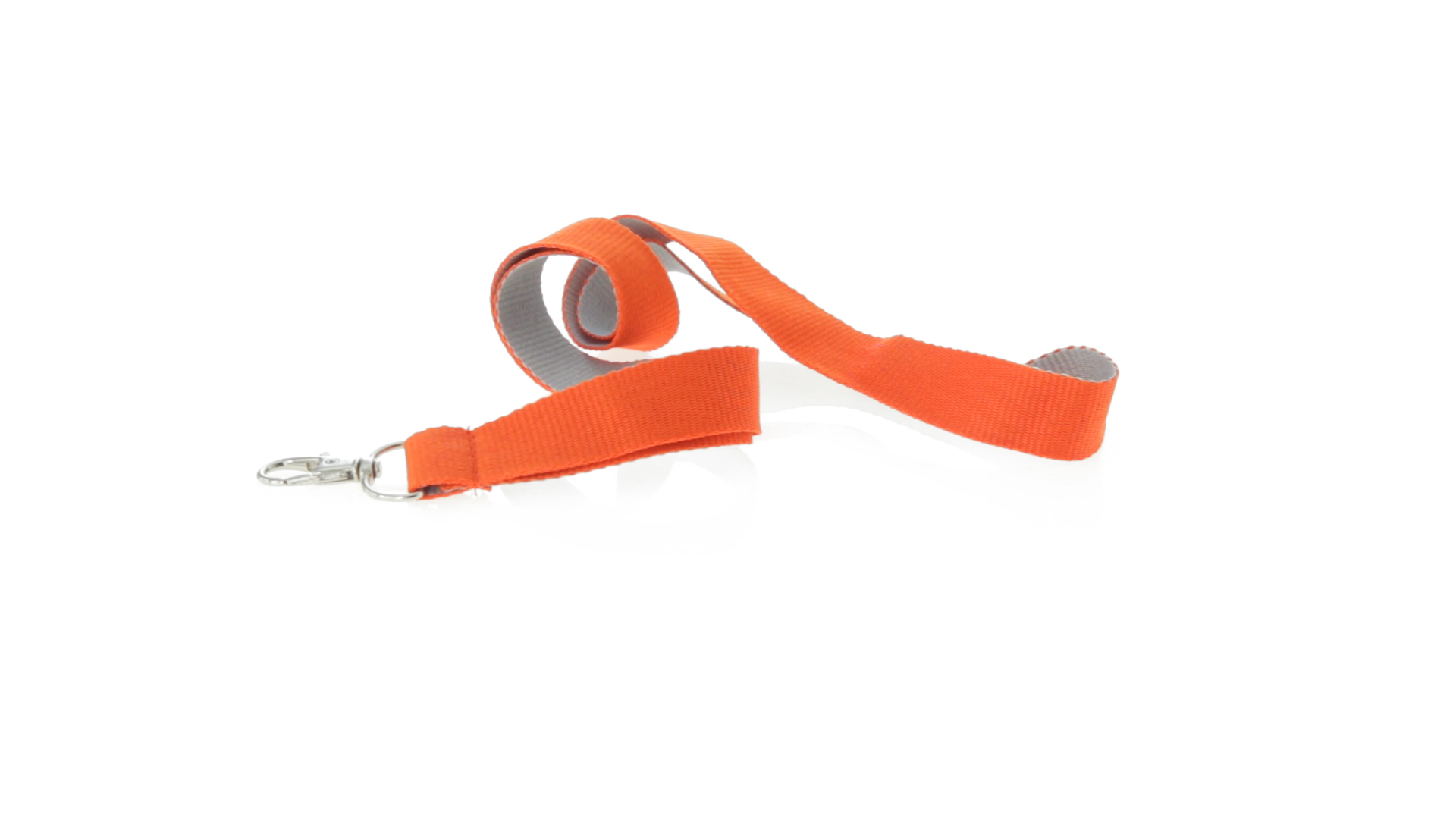 Origineller Lanyard aus resistentem Polyester mit zweifarbigem Design in lebendigen Farben mit Metallkarabiner.