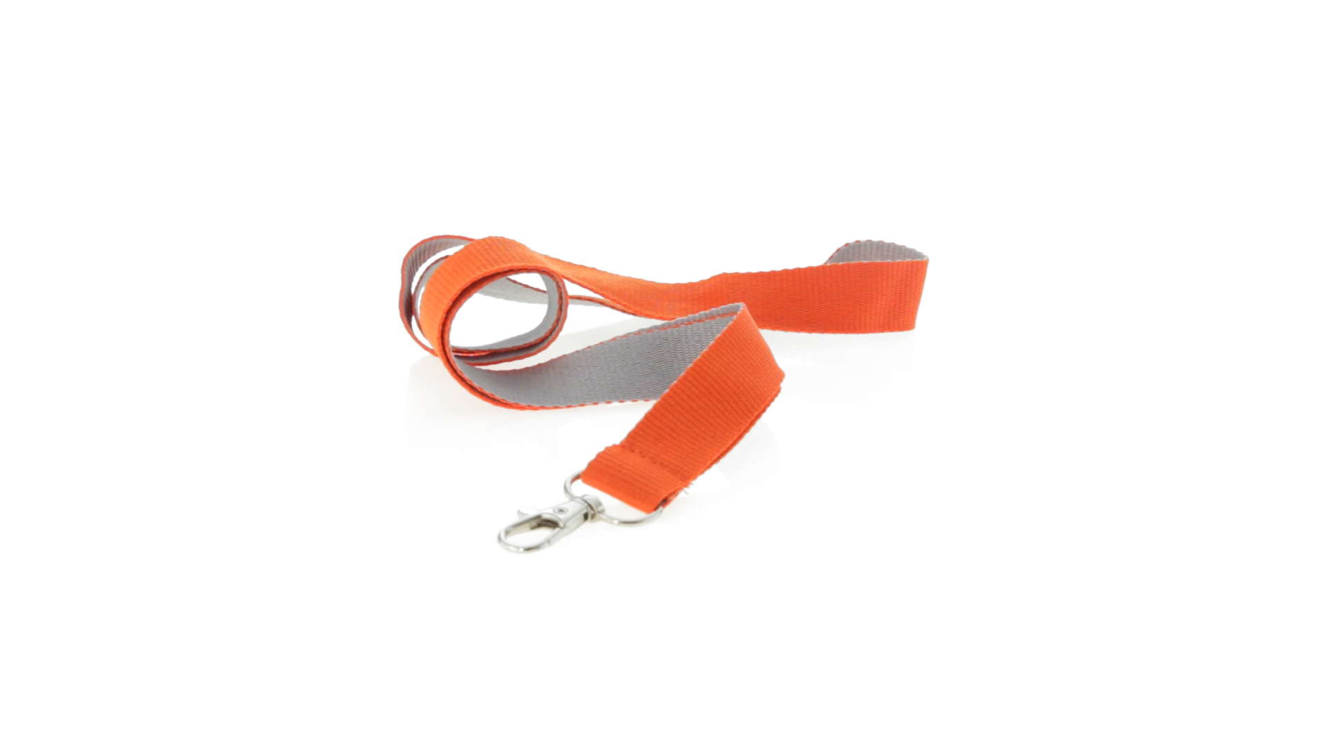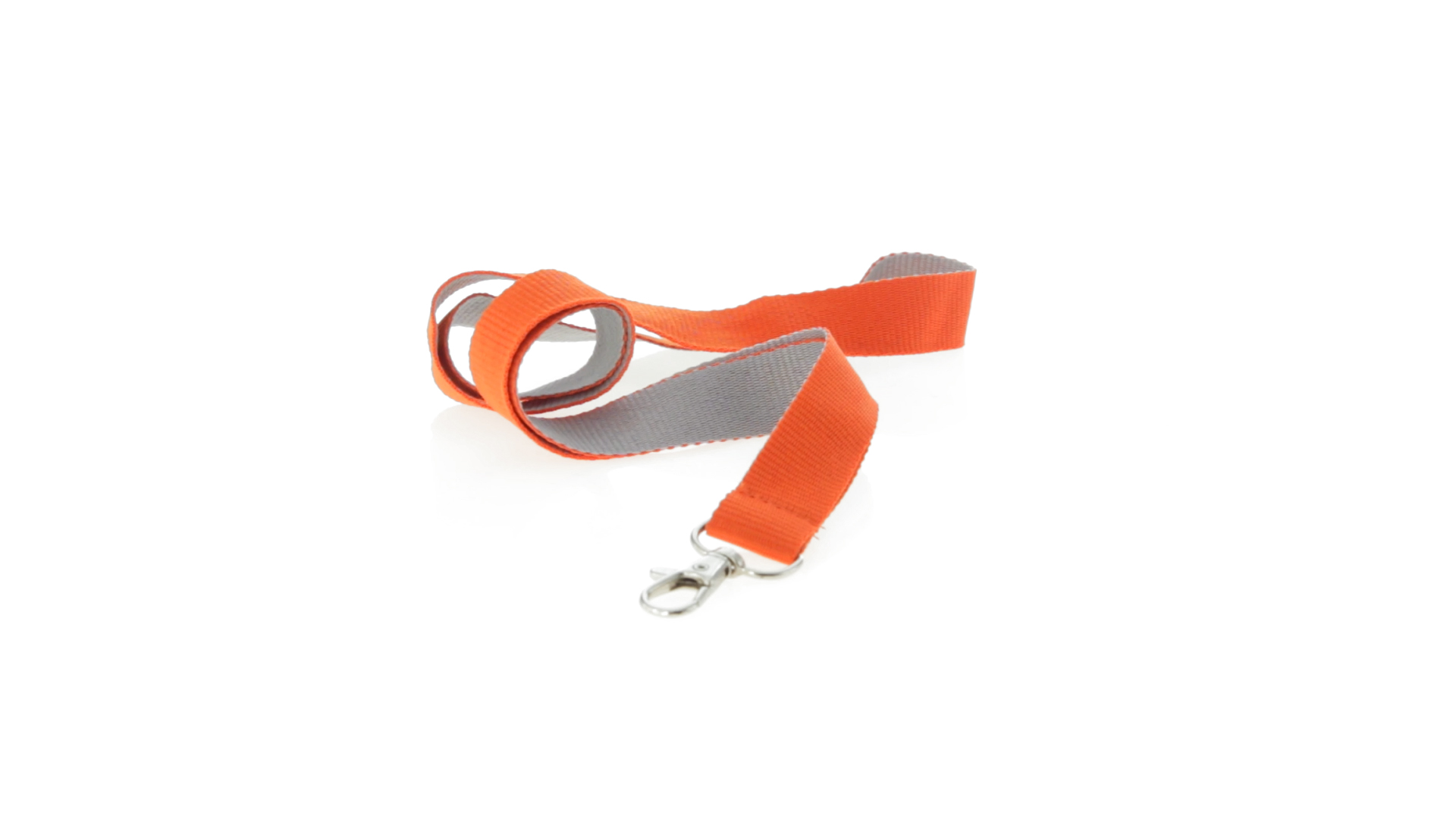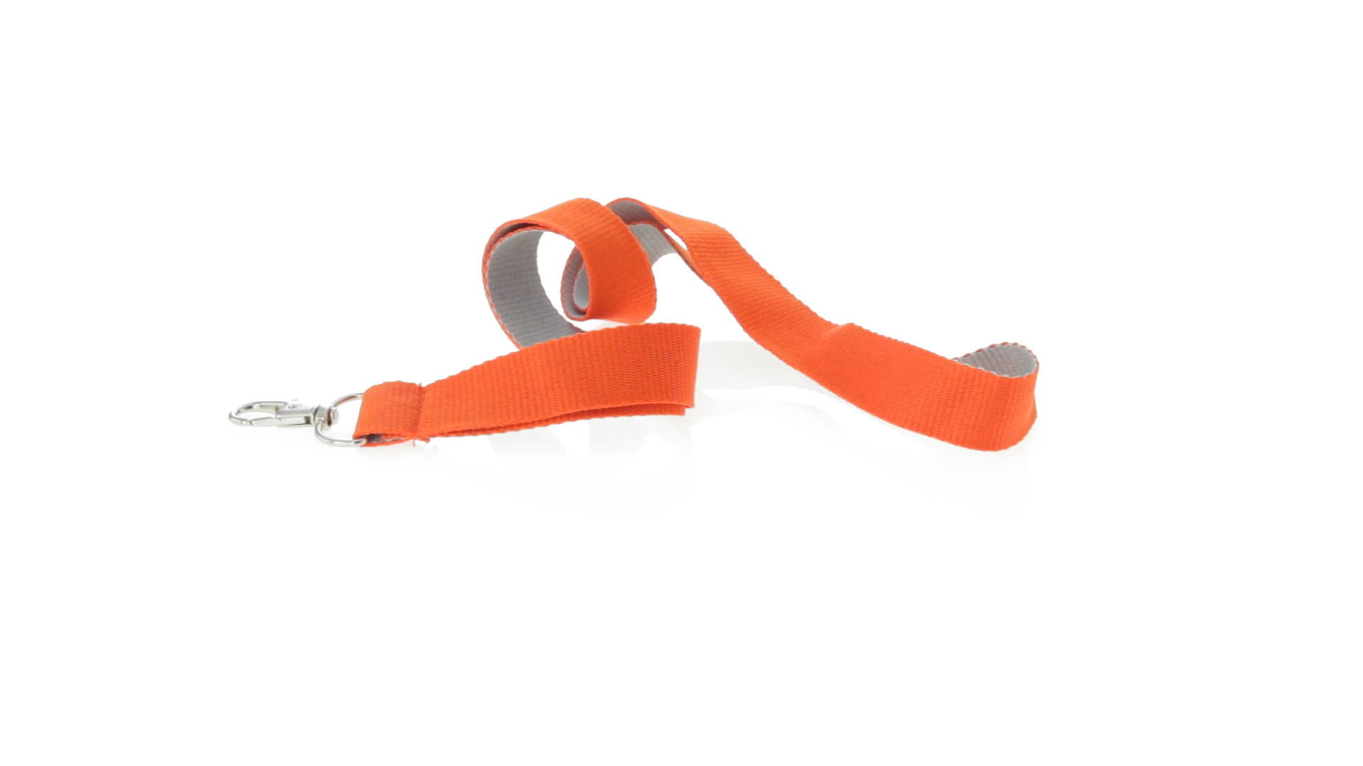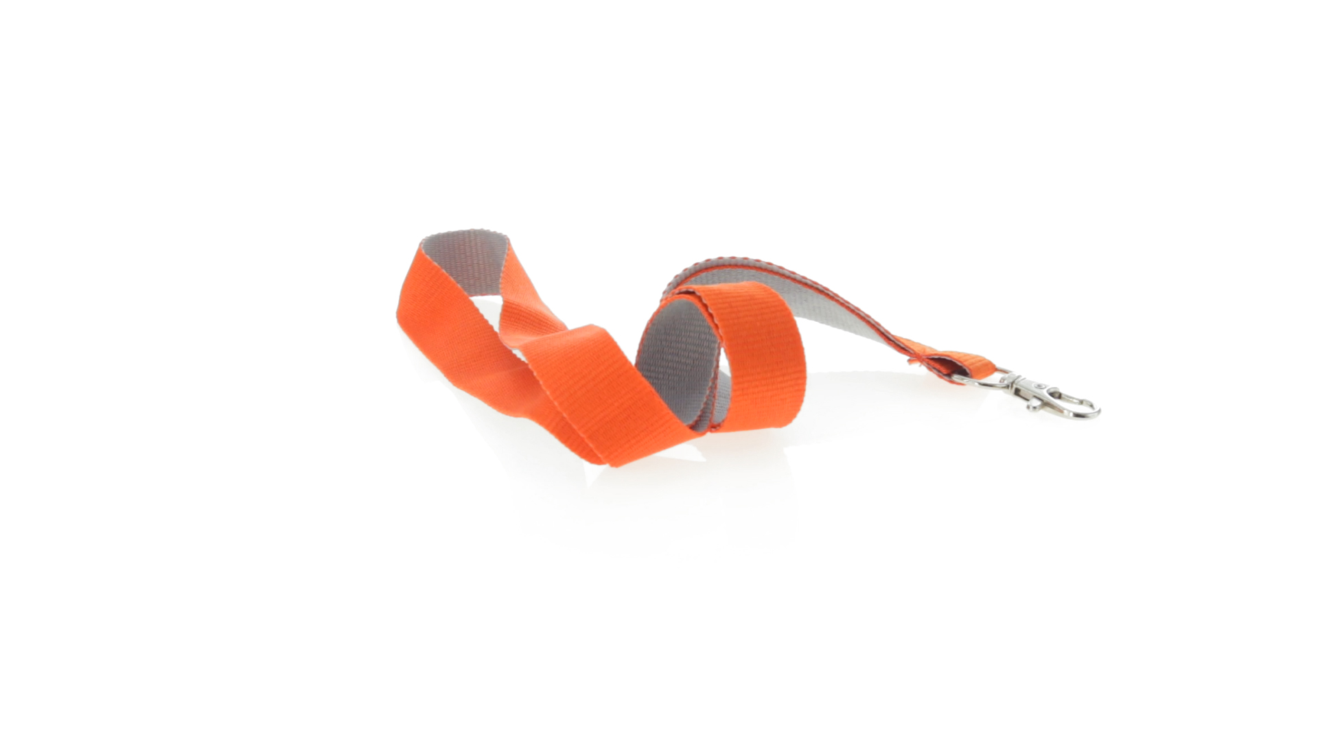Origineller Lanyard aus resistentem Polyester mit zweifarbigem Design in lebendigen Farben mit Metallkarabiner.