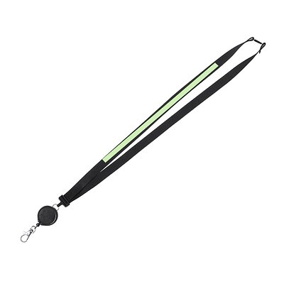 Praktischer Lanyard aus Polyester. Mit Sicherheitsverschluss im Nacken, ausziehbarem Zubehör und Metallkarabiner sowie Clip und Druckfläche für das Logo. Erhältlich in Schwarz und Weiss.