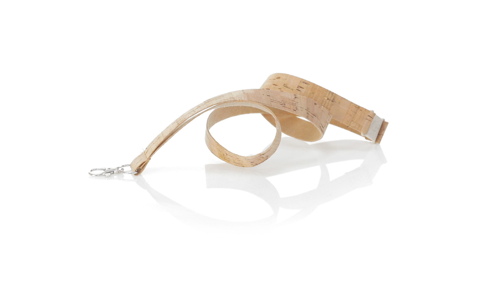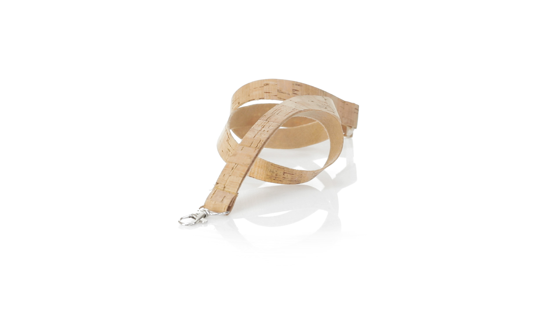 Nature Line Schlüsselband aus Naturkork. Sicherheitsverschluss am Hals aus Weizenrohr/PP, um die Verwendung von natürlichen Rohstoffen zu fördern und umweltschädliche Emissionen zu reduzieren.Mit Metall-Drehkarabiner und in Naturfarbe erhältlich.