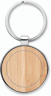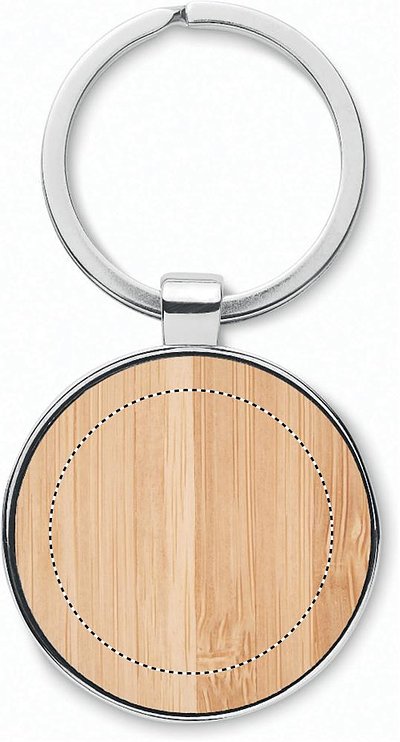 Schlüsselring aus Zinklegierung mit rundem Bambus-Anhänger. Da Bambus ein natürliches Material ist, können Farbton und Masse pro Artikel variieren. Dies kann zu Abweichungen im Ergebnis der Veredlung führen.