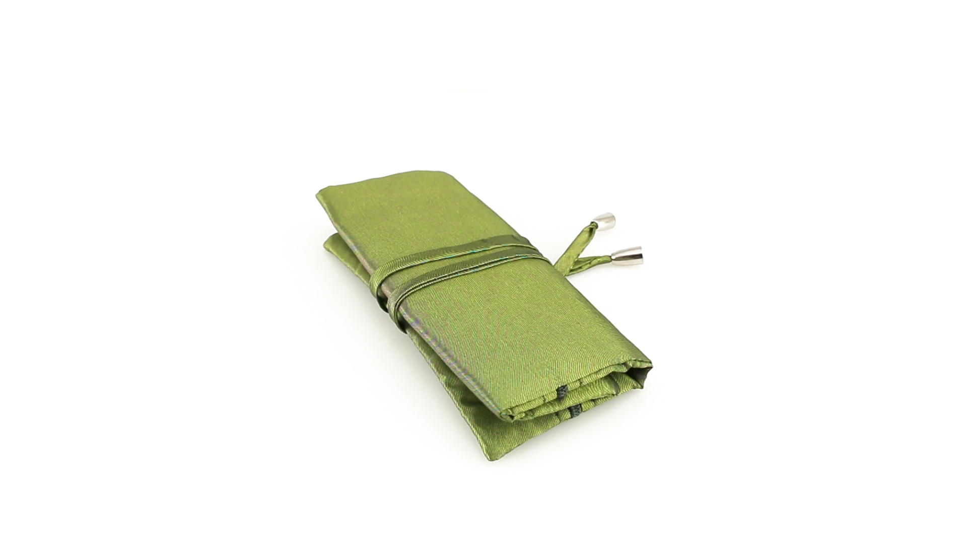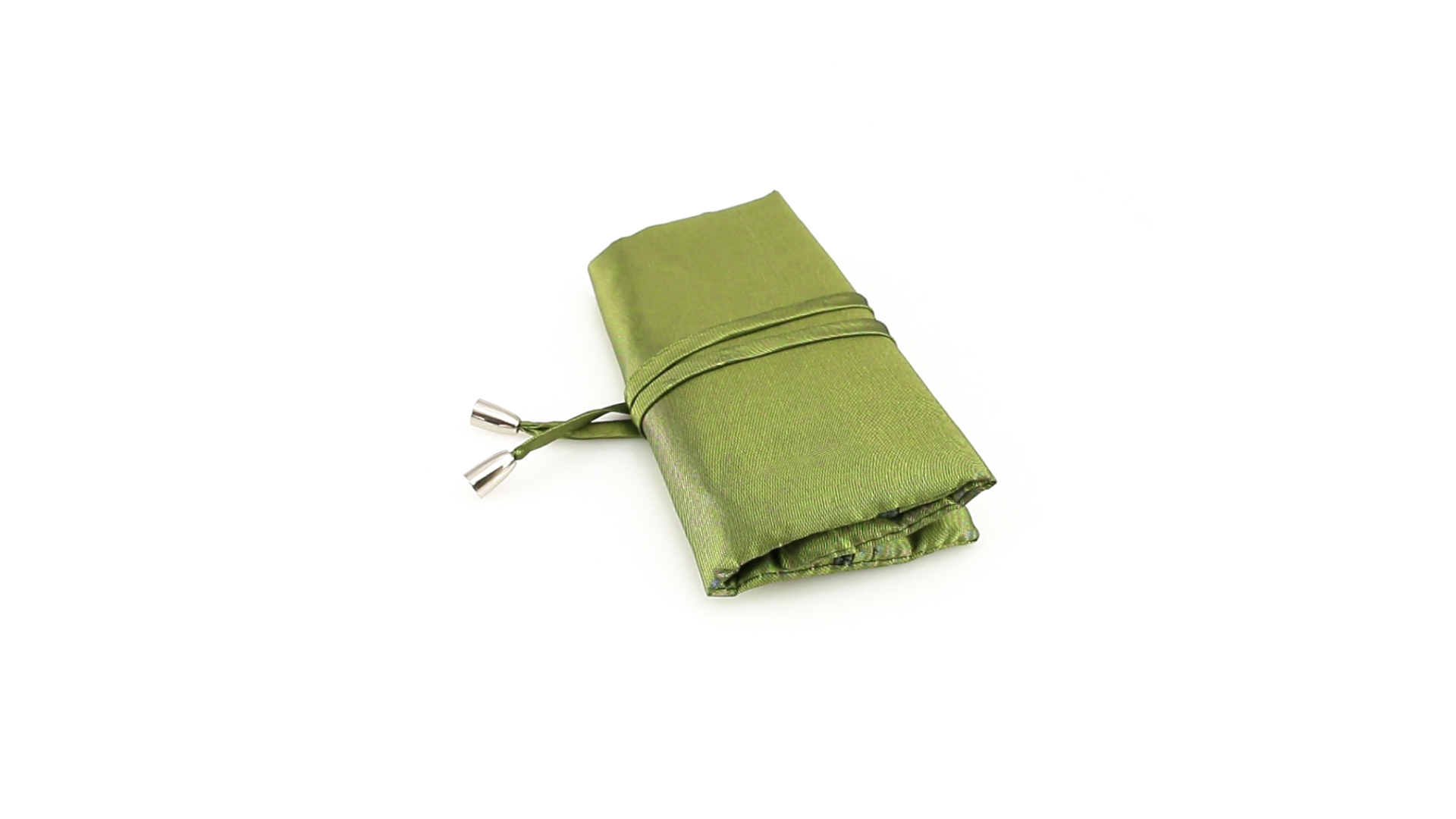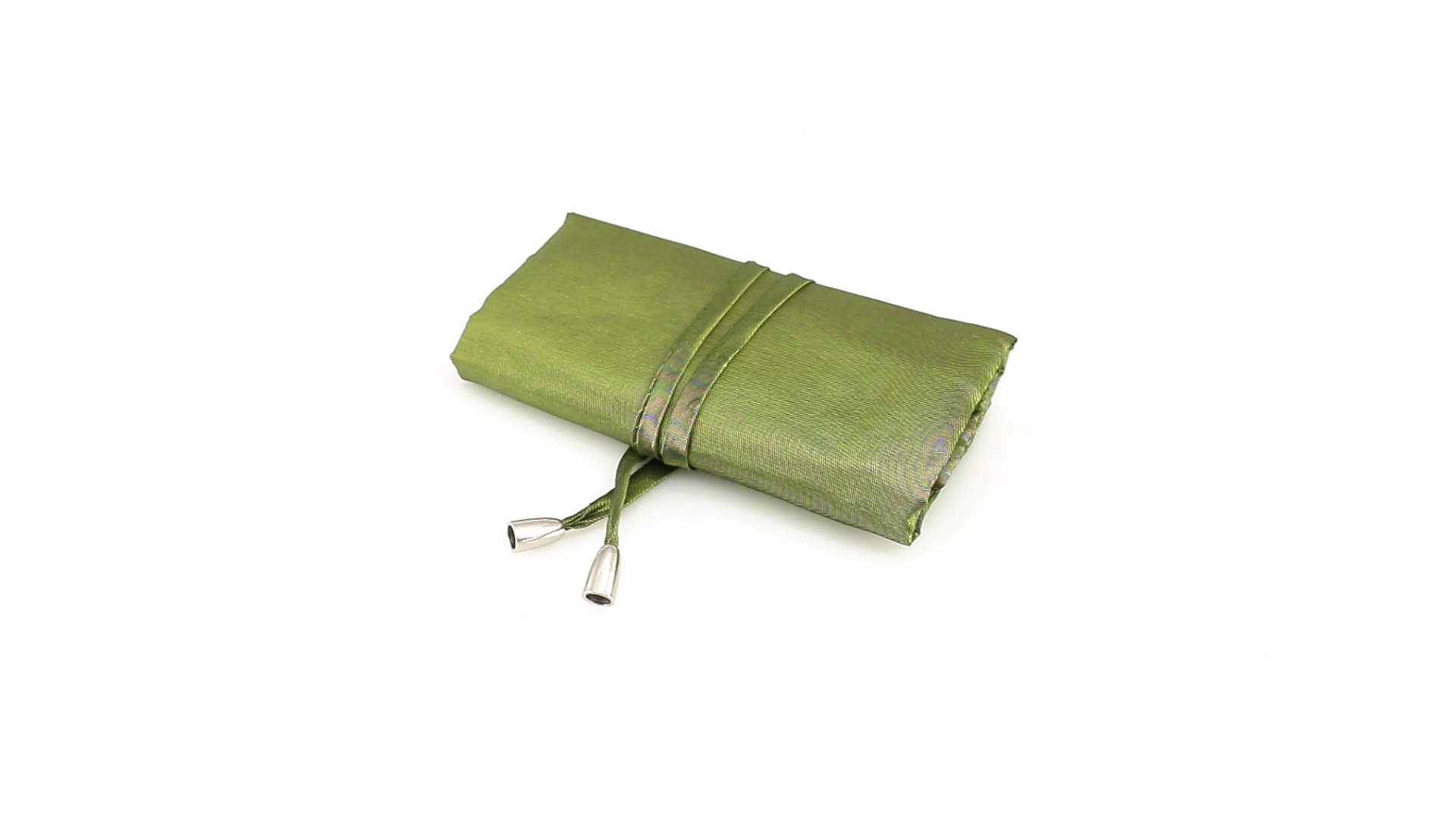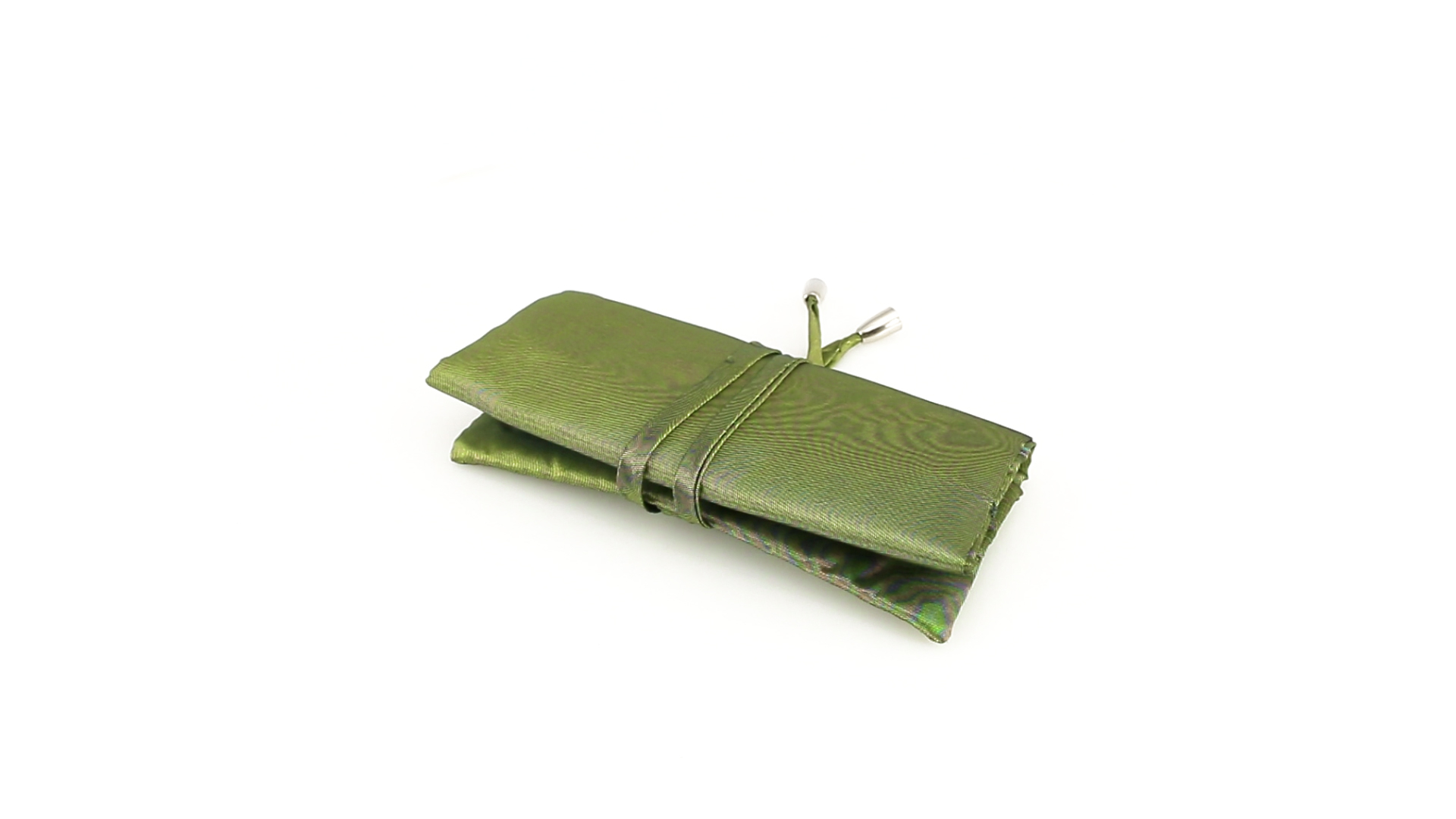 Faltbares Schmucketui aus weichem Polyester in schlichten Farben. Mit Ringhalter und zwei farblich passenden Reissverschlusstaschen. Verschluss durch Bänder mit silbernen Abschlüssen.