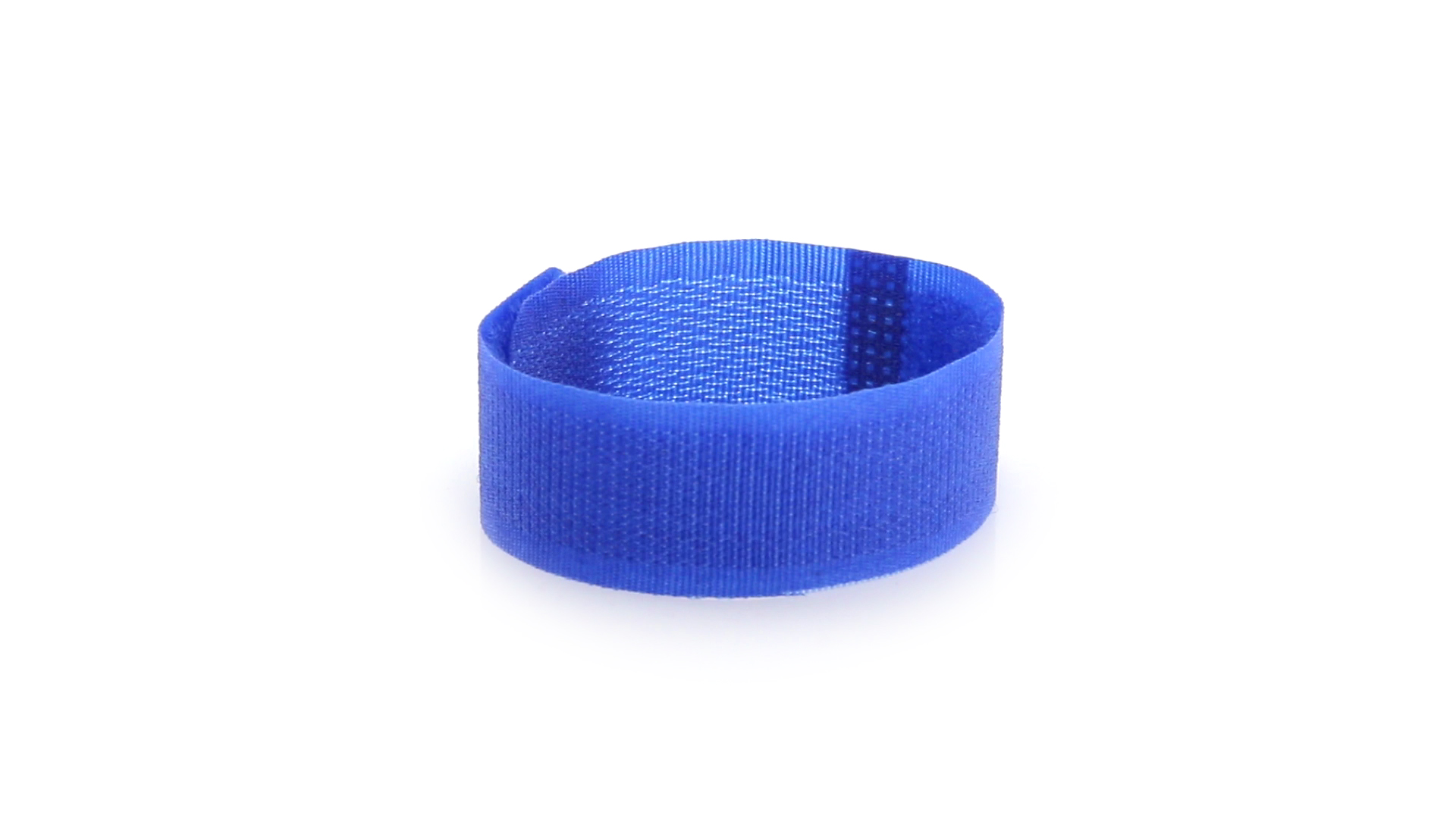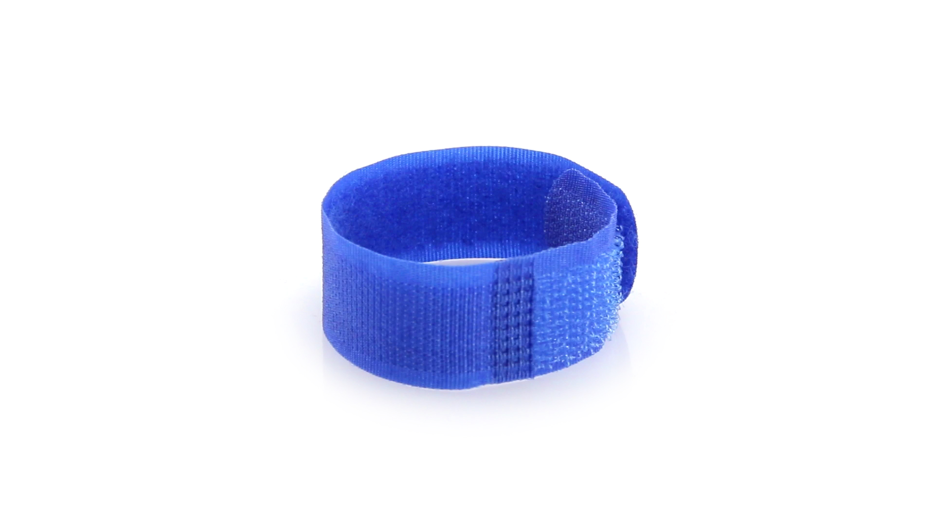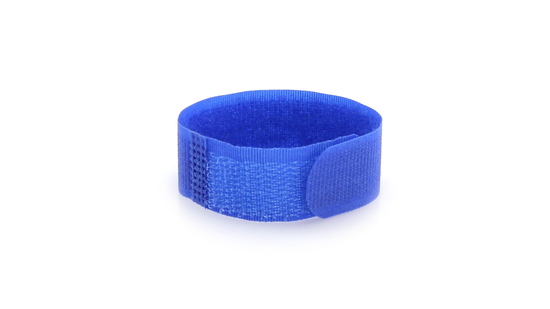 Kabelbinder aus weichem, widerstandsfähigem Nylon. In lebendigen Farben und mit verstellbarem Klettverschluss.