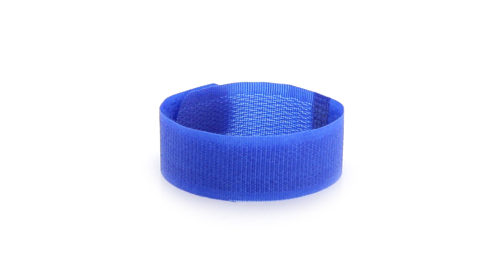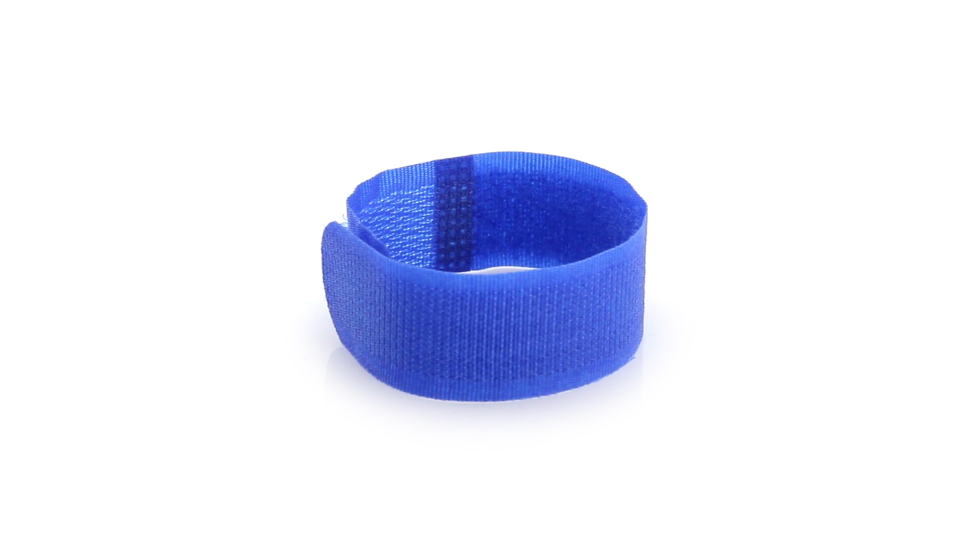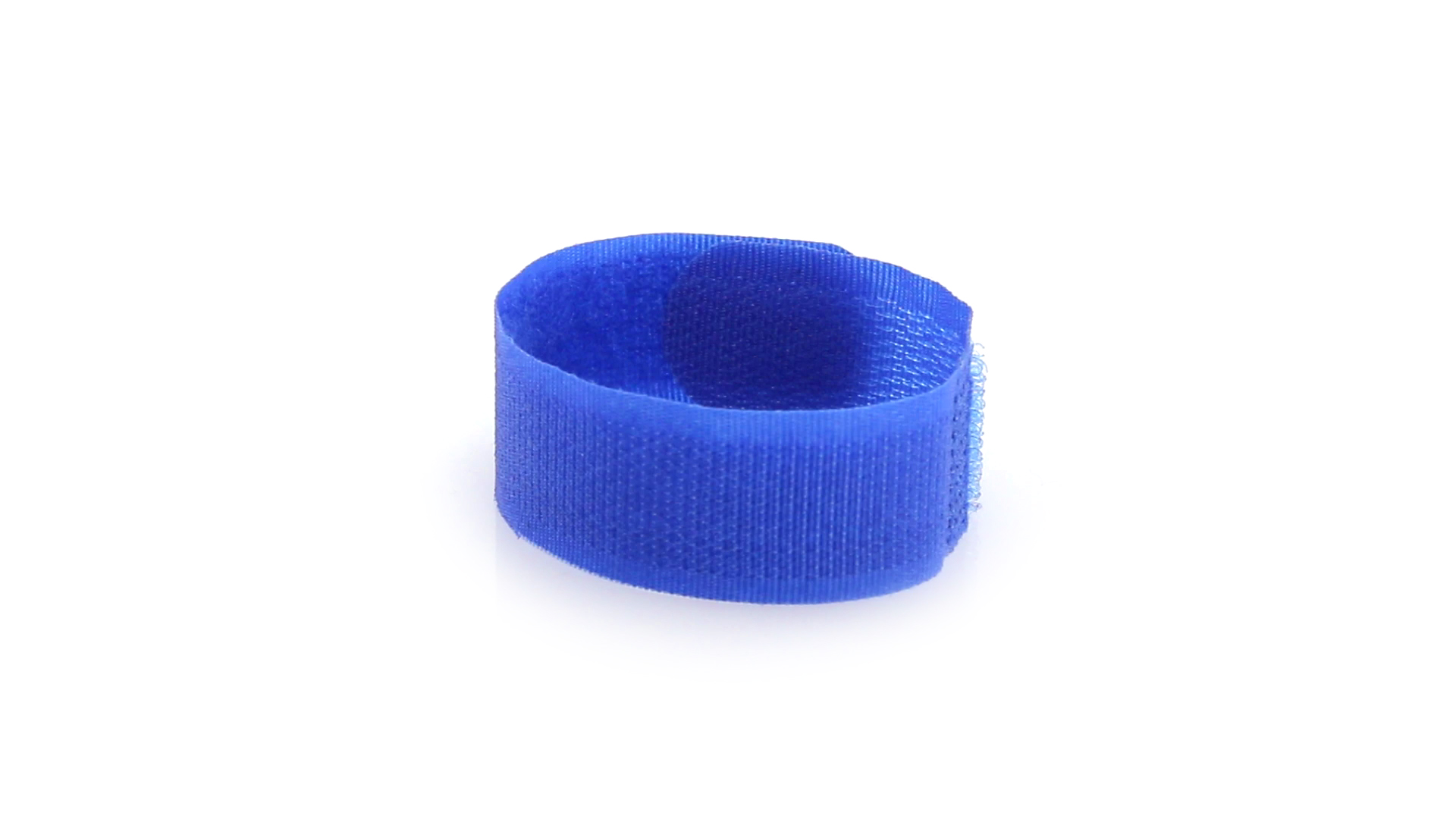 Kabelbinder aus weichem, widerstandsfähigem Nylon. In lebendigen Farben und mit verstellbarem Klettverschluss.