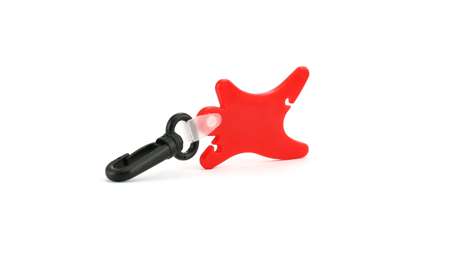 Praktischer Schlüsselanhänger mit Kabelhalter und Karabinerbefestigung in auffälligen Farben. Speziell für den Tampondruck entwickelt.