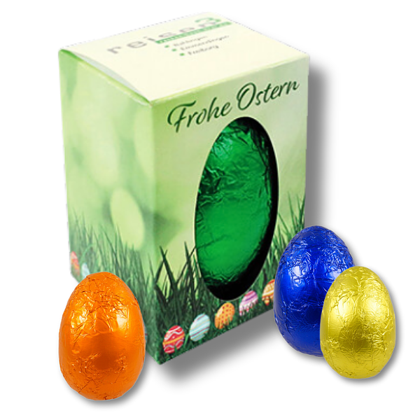 Stell Dir vor, wie Du Deine Artikel bedrucken und in einer modernen Box mit eiförmigem Sichtfenster präsentieren kannst. Das Schoko Osterei eignet sich nicht nur als Geschenk zu Ostern, sondern auch als kreative Aufmerksamkeit für einen Geburtstag, als kleine Überraschung für Kinder, als liebevolles Hochzeitsgeschenk oder als originelle Beigabe zu Weihnachten. Mit unseren personalisierten Geschenken bringst Du Deine Wertschätzung auf individuelle Weise zum Ausdruck.