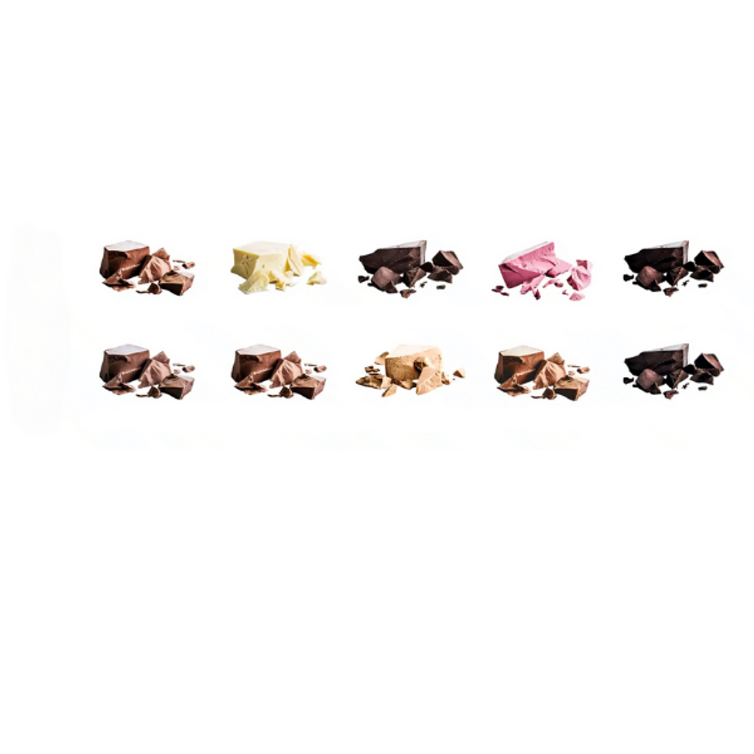 Verwöhne dich und deine Kunden mit unserem Schokoladen-Set "Schokoladenbausteine"! Diese schokoladige Vielfalt besteht aus 65 g leckeren Schokoladenbausteinen, die in verschiedenen köstlichen Geschmacksrichtungen erhältlich sind, Auf Anfrage, Karamell-Schokolade, Vollmilch-Schokolade mit Honig, Plant-based Schokolade, Whole Fruit Schokolade, zuckerfreie Vollmilch-Schokolade und viele mehr – für jeden Schokoladenliebhaber ist hier etwas dabei.