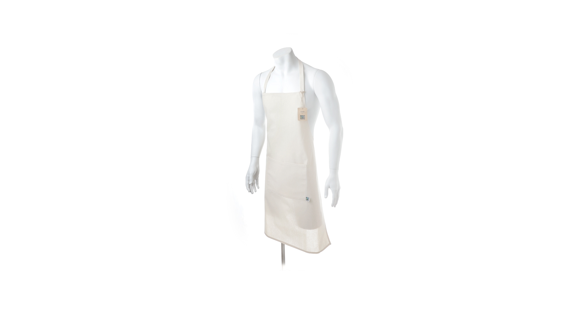 Linie "Natur" Schürze aus Baumwolle 180g/m2 in einem natürlichen Farbton. Mit Fairtrade-Zertifizierung, einer Alternative zum konventionellen Handelssystem, die die Entwicklung der Völker und den Kampf gegen die Armut verfolgt. Mit Fronttasche und Kordelzug, unterhalb des Knies passend. Inklusive Fairtrade-Etikett und Anhänger aus recyceltem Karton.